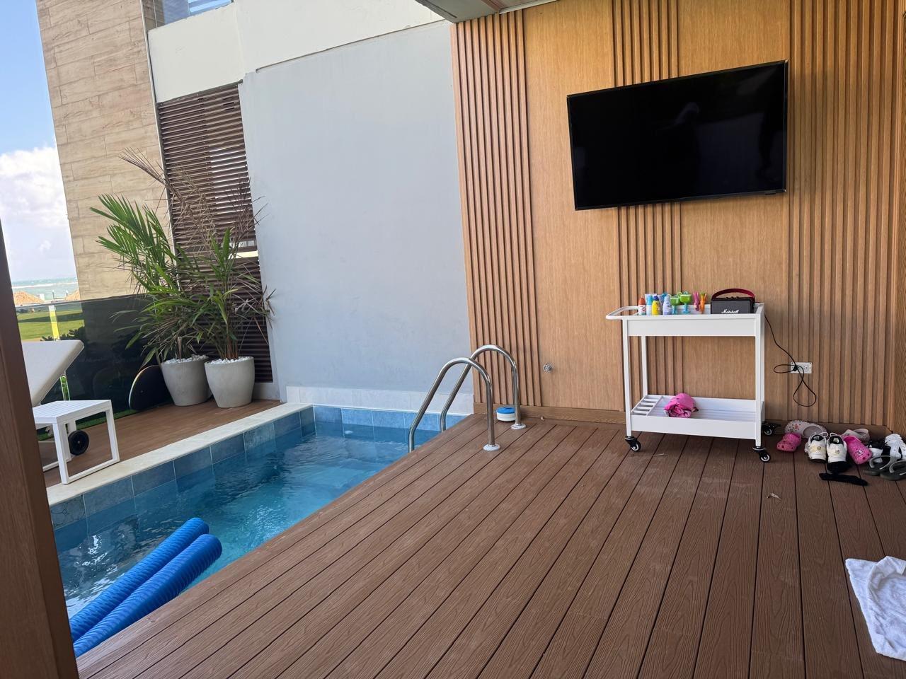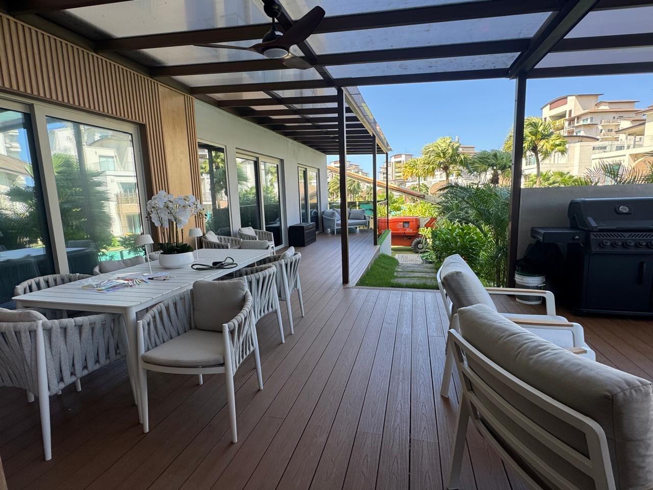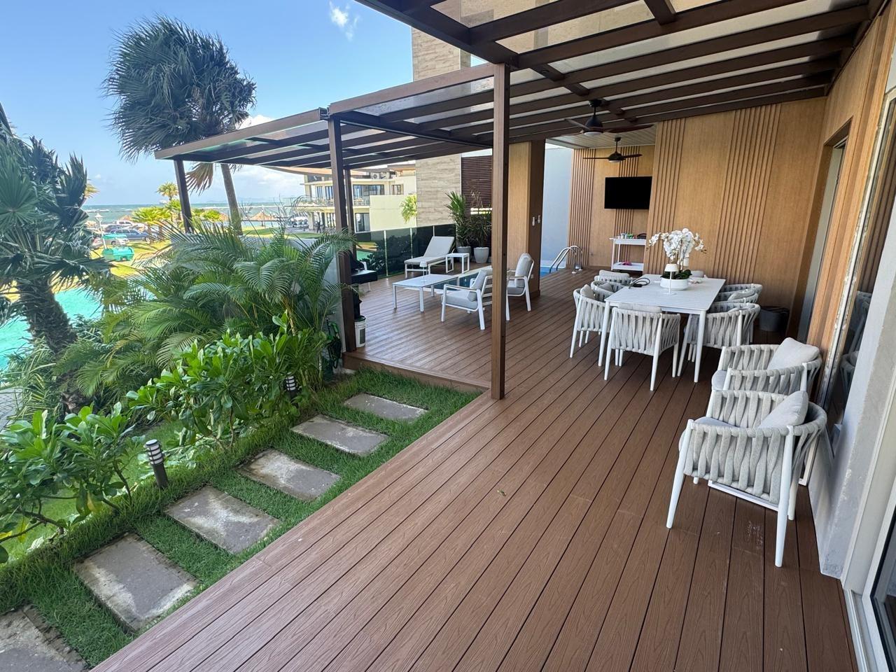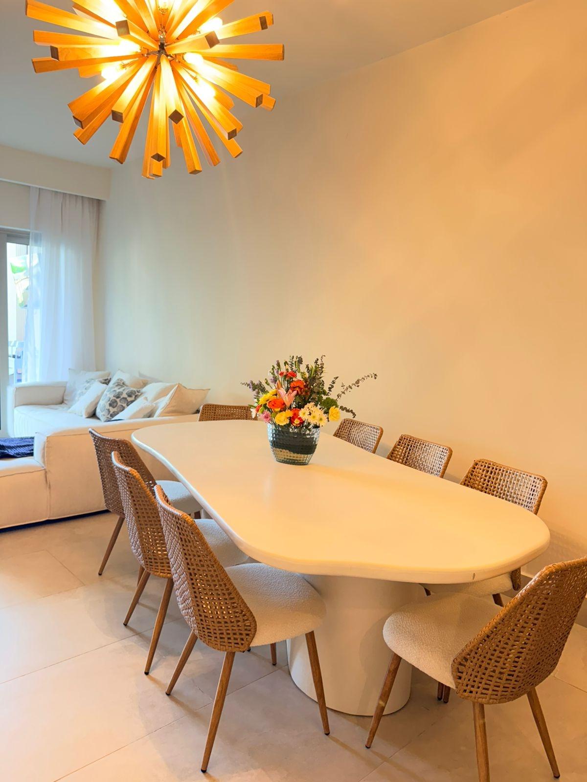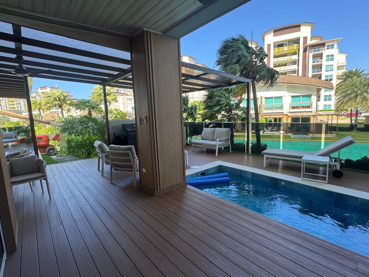 One of the finest apartments in Playa Escondida is for sale, located in the prestigious La Marina Village project. This ground-floor unit is designed for those seeking luxury, privacy, and an unparalleled beachfront experience. Exterior Features – Direct ocean view – Heated private pool on the terrace – Napoleon brand BBQ area – Panoramic roofs with solar thermal insulation Apartment Interior – Spacious living room with 70” TV – Electric blinds in social areas and bedrooms – High-end Italian living and dining room set – Natural wood wall decor – Fully equipped kitchen with high-quality utensils – Invisible water filtration system, German brand – Central inverter air conditioning, controllable via smartphone – Security camera system and smart access control with real-time alerts Layout * 4 bedrooms, each with its own private bathroom * Maid’s quarters with bathroom * Private study, equipped with a 100-inch TV Terraces and Amenities – Two private terraces – Second terrace of over 120 m², with artificial grass Two external parking spaces with direct access to the property (no need to use the parking garage). (Elevator) Size 260 m² of enclosed area 200 m² of terraces Ideal layout to fully enjoy the beach lifestyle Sale Price: $1,150,000 Contact us for more information or to schedule a private visit.