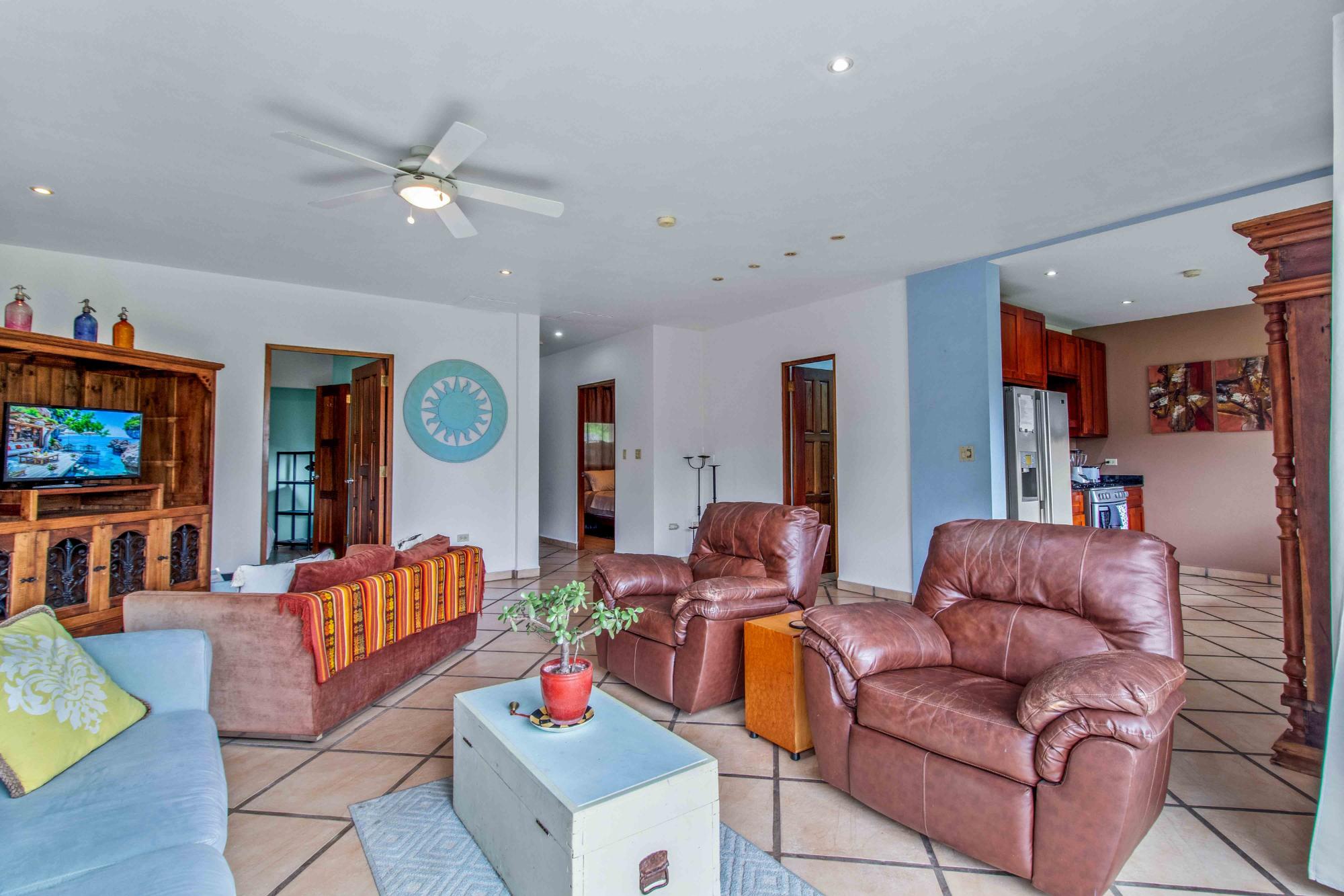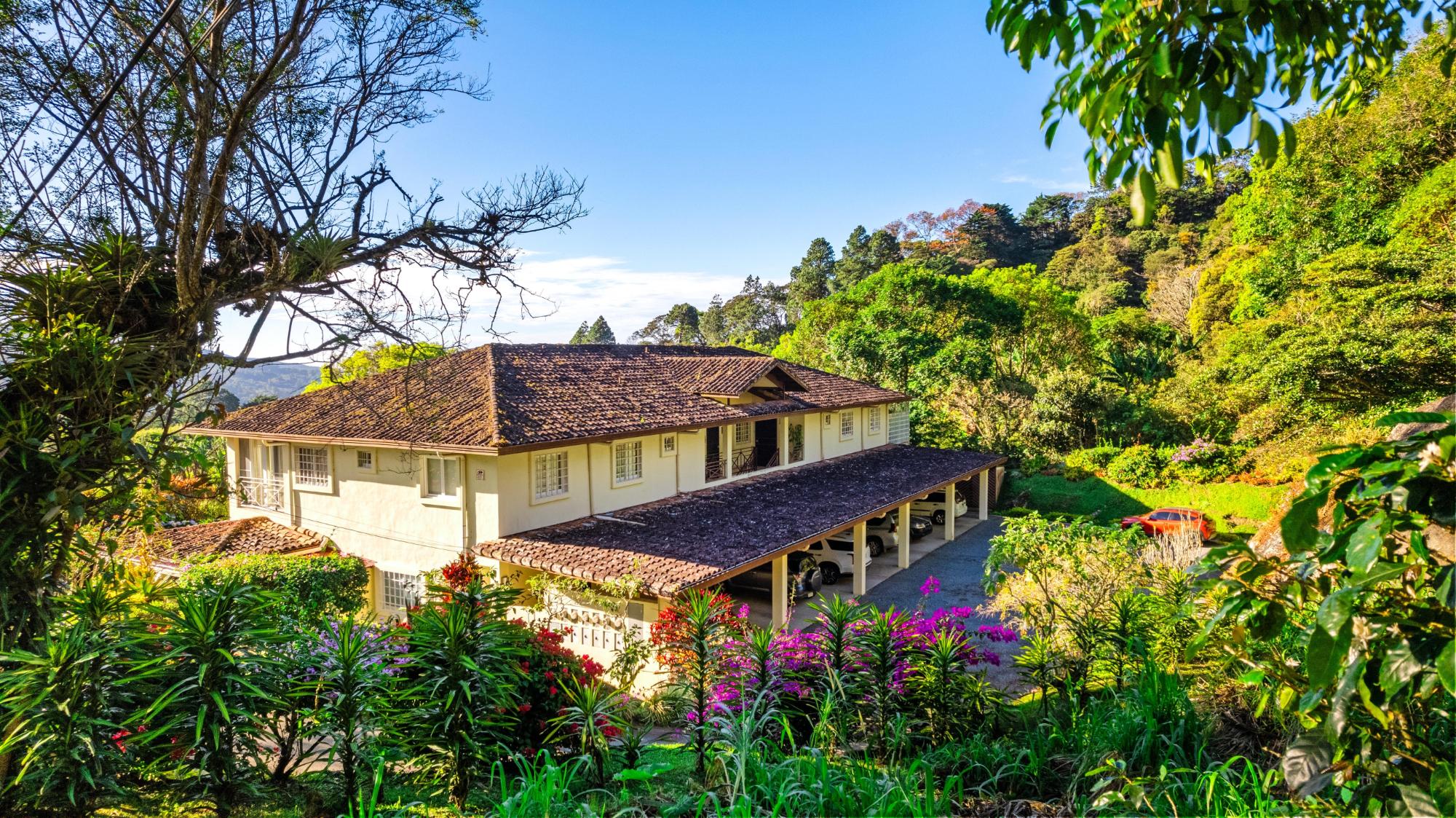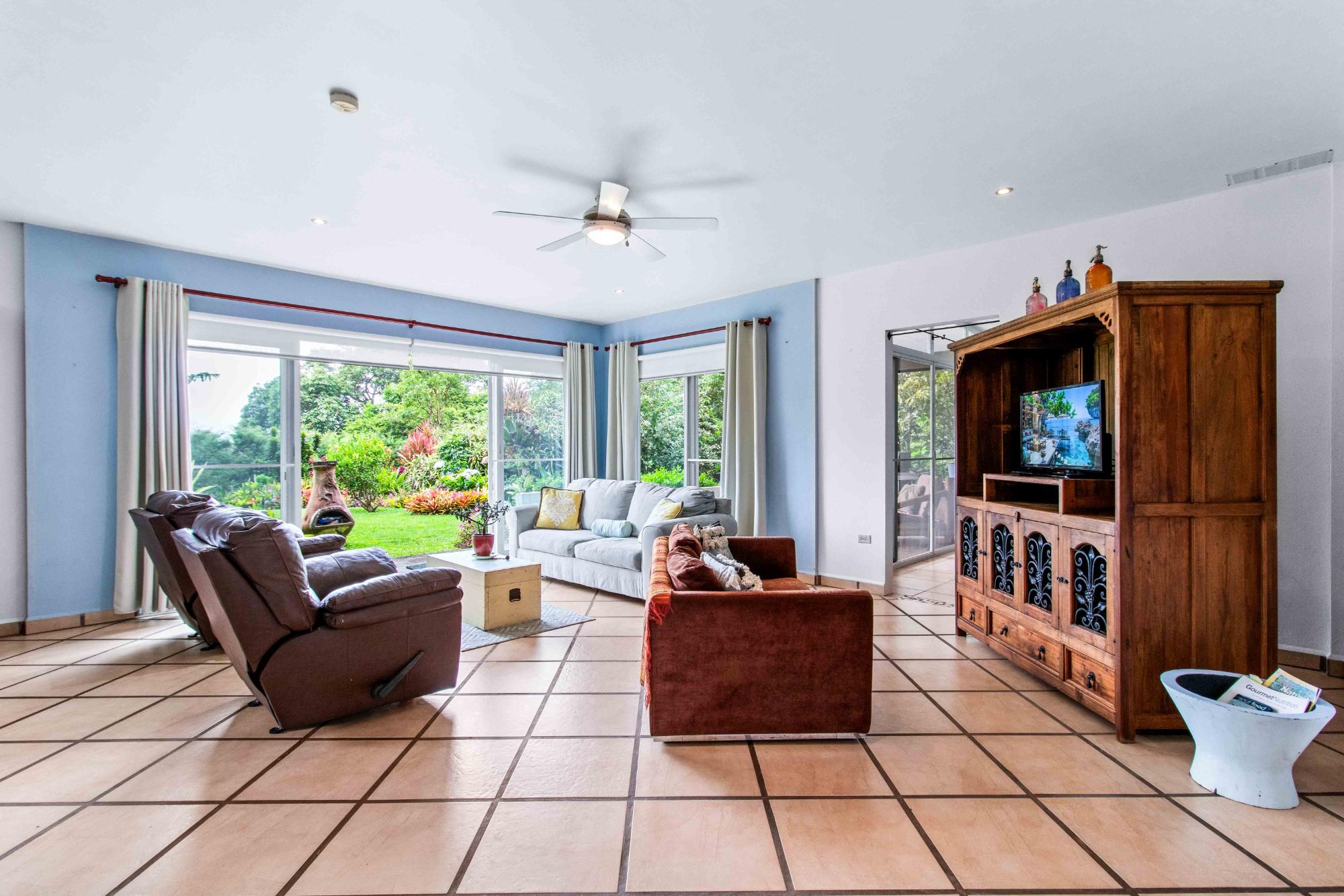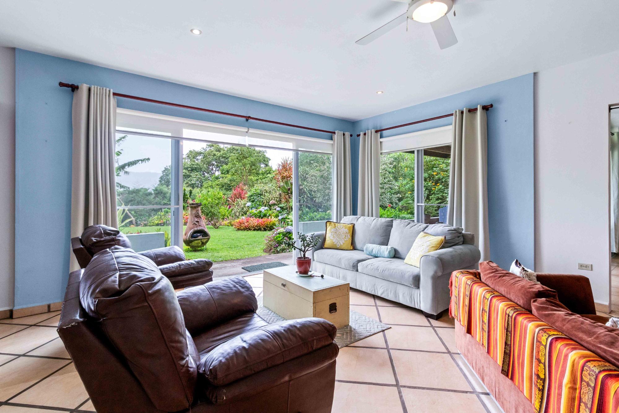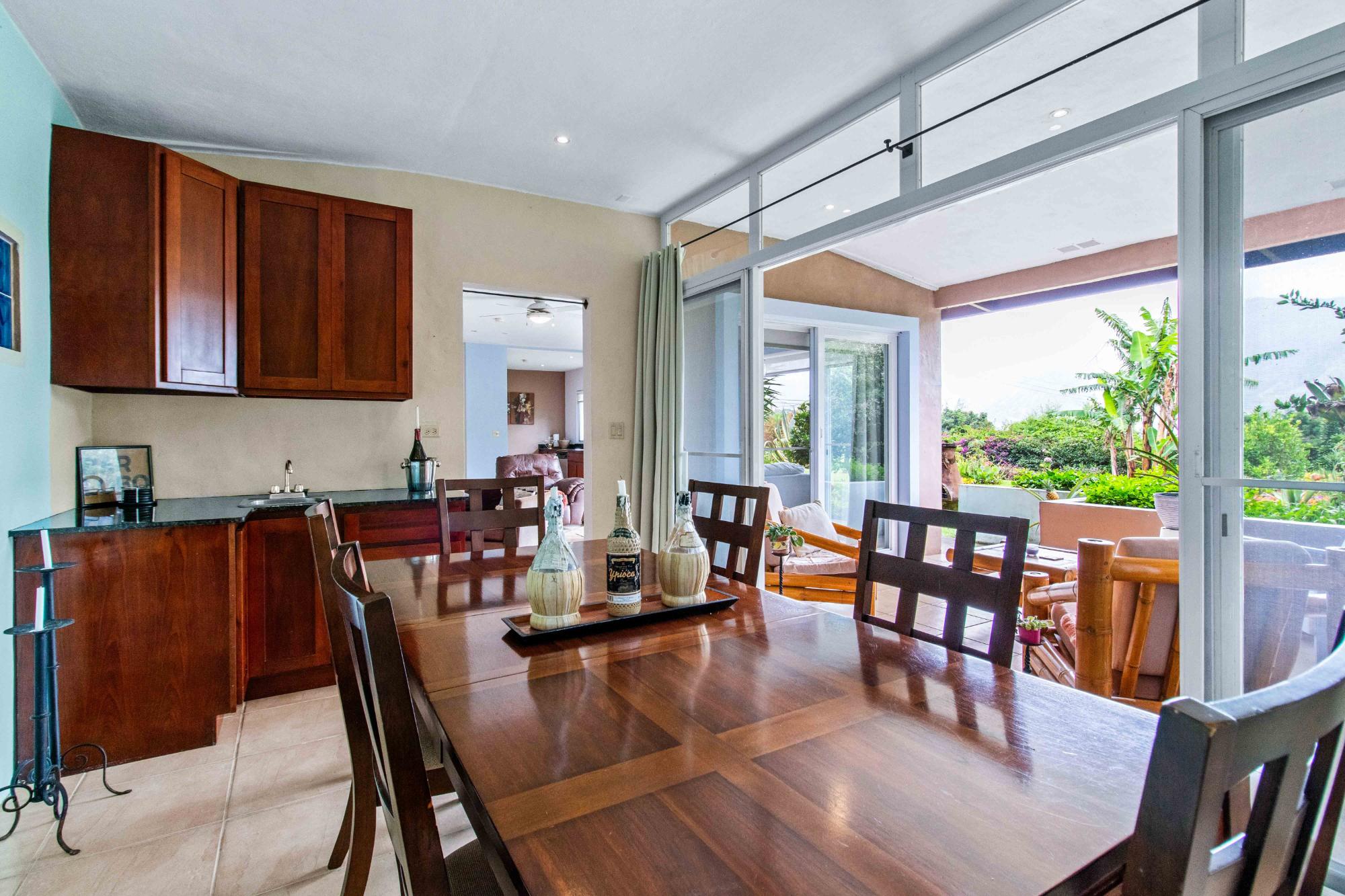 Discover Monte Verde, a hidden gem nestled in the lush greenery of Alto Lino, Boquete. This exclusive, private residence features just six condos, offering a tranquil retreat where comfort, privacy, and natural beauty blend seamlessly. Step into this ground-floor condo, where thoughtful design meets serene living. The spacious lounge leads to the main bedroom, complete with an en-suite bathroom and ample storage. The second bedroom also features an en-suite bathroom, offering generous cabinet space. Both bedrooms are equipped with 100% blackout blinds for restful sleep, while the living room boasts 95% UV-free pull-down blinds, complemented by curtains for complete darkness when needed. The comfortable sofa also doubles as a sofa bed, adding versatility to your living space. The kitchen, overlooking a lush garden, offers a peaceful backdrop for culinary adventures. From the kitchen window, enjoy stunning full double rainbows during the rainbow season, and let the soothing sounds of birdsong accompany your morning coffee on the patio. The separate dining room, with its cozy ambiance, comfortably hosts dinner parties for up to eight guests, featuring lovely views that transition into a warm and intimate setting after dark. For those who work from home, the dining area can easily be transformed into a functional office space, while the sofa bed makes hosting guests a breeze. The condo’s covered terrace offers a private, quiet space perfect for barbecues, morning coffee, or simply unwinding with garden views. Enjoy sunrise and moonrise from the Jaramillo mountains through the front windows, with breathtaking full moons as a highlight.