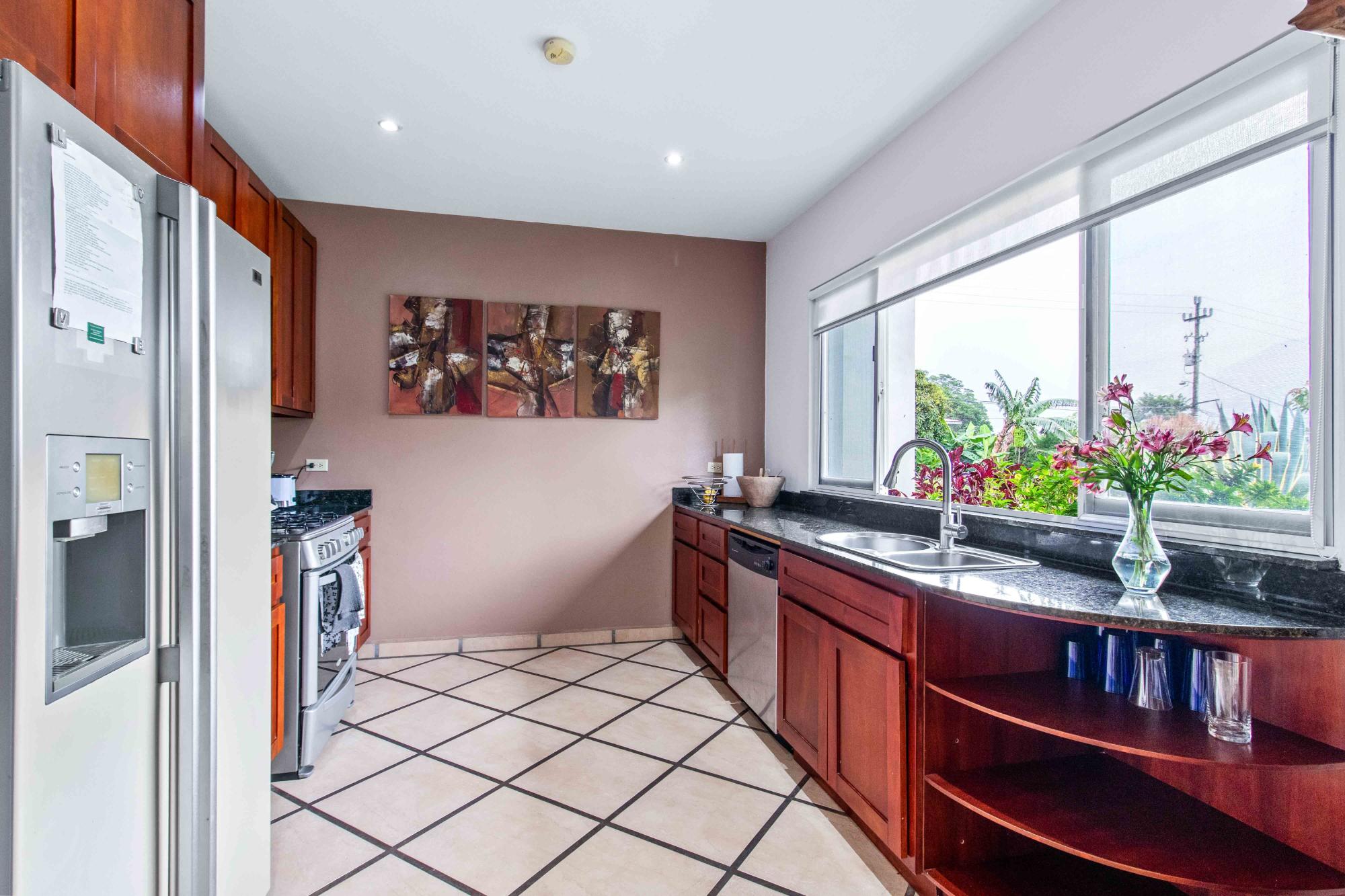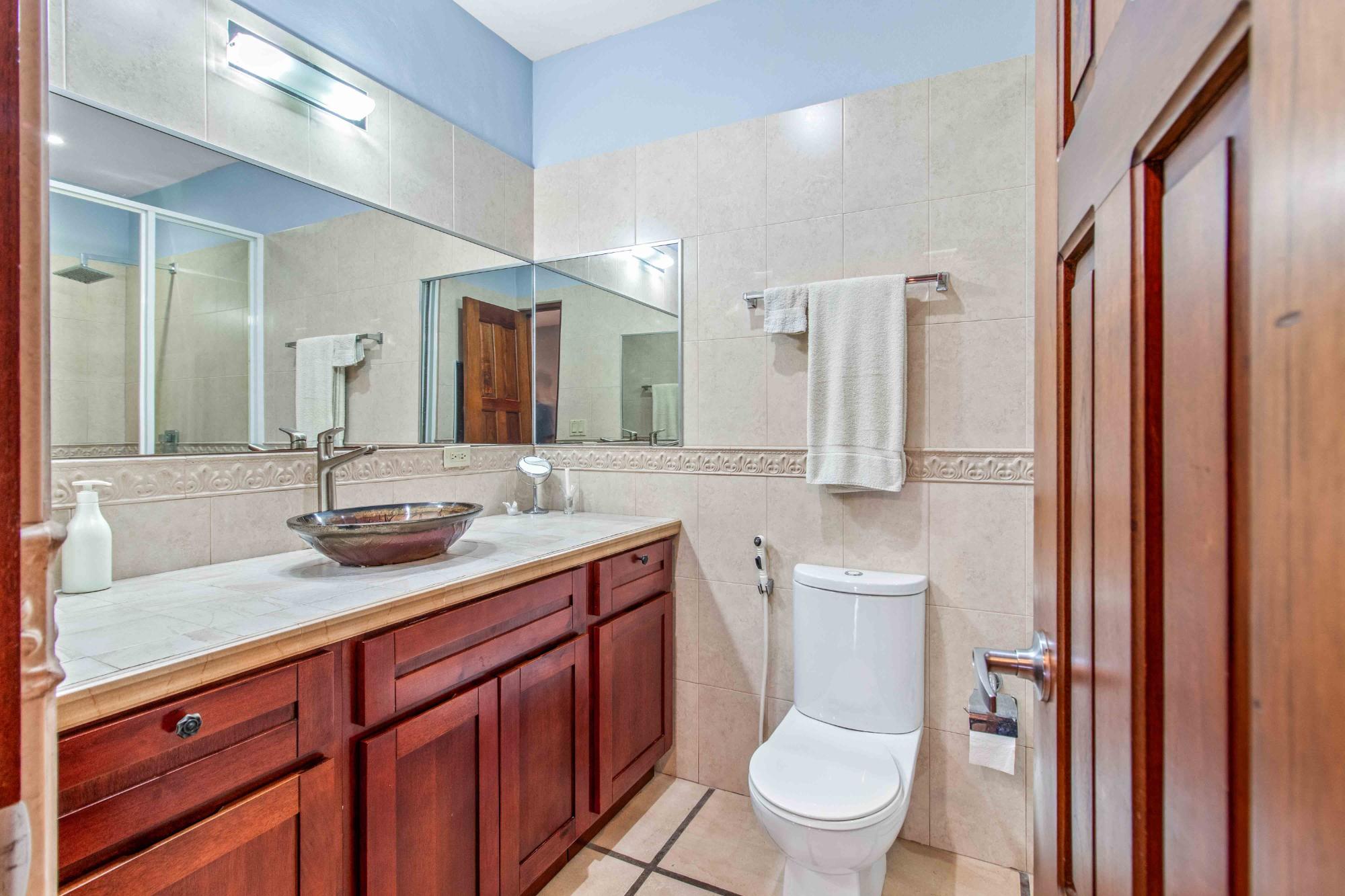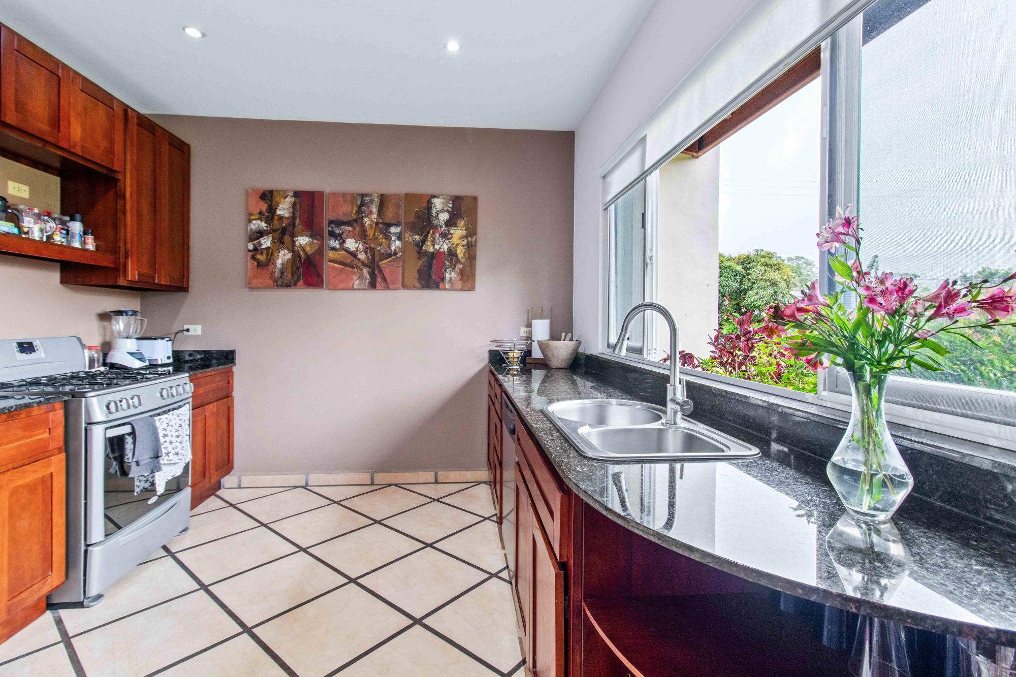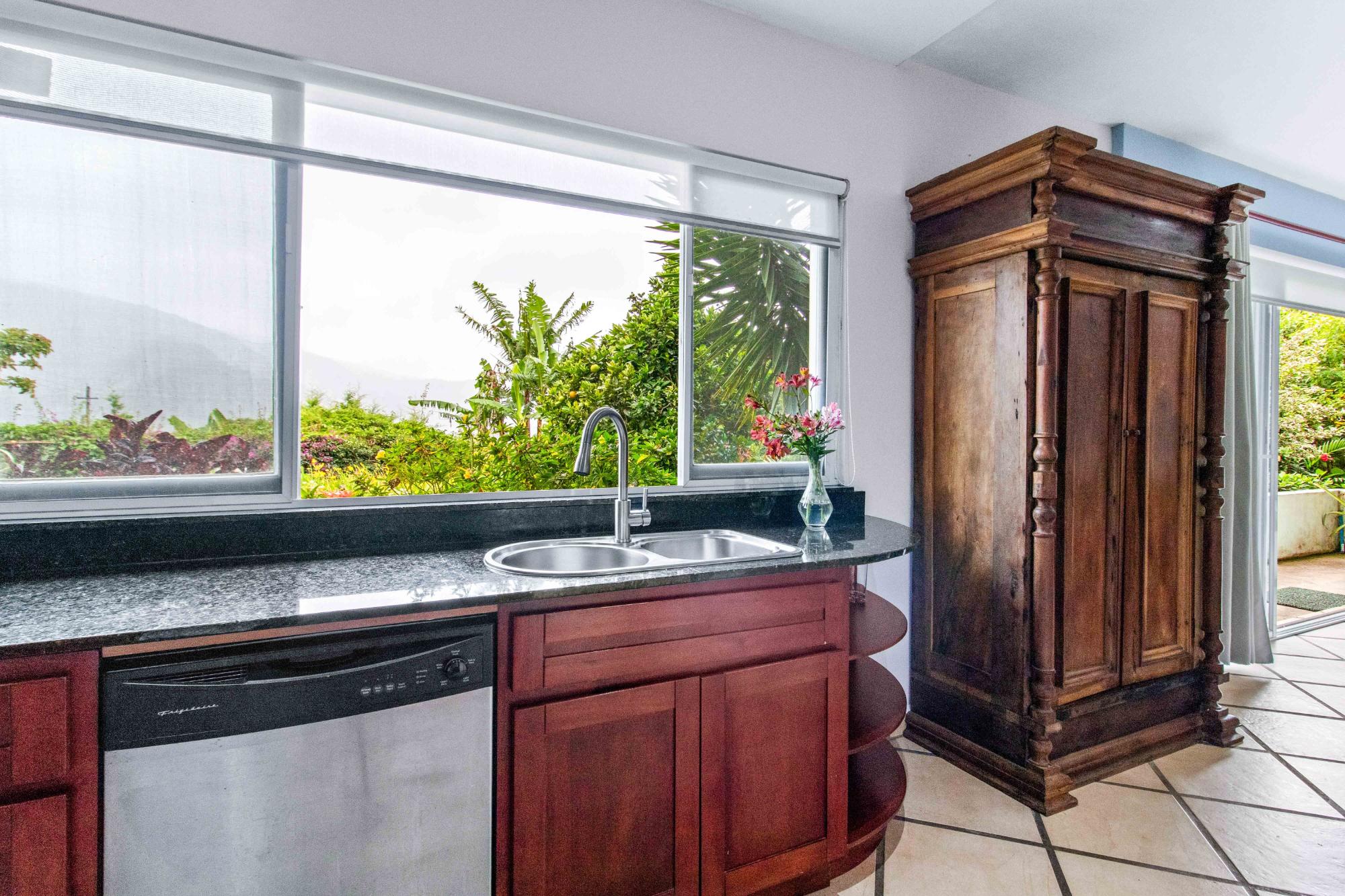 Discover Monte Verde, a hidden gem nestled in the lush greenery of Alto Lino, Boquete. This exclusive, private residence features just six condos, offering a tranquil retreat where comfort, privacy, and natural beauty blend seamlessly. Step into this ground-floor condo, where thoughtful design meets serene living. The spacious lounge leads to the main bedroom, complete with an en-suite bathroom and ample storage. The second bedroom also features an en-suite bathroom, offering generous cabinet space. Both bedrooms are equipped with 100% blackout blinds for restful sleep, while the living room boasts 95% UV-free pull-down blinds, complemented by curtains for complete darkness when needed. The comfortable sofa also doubles as a sofa bed, adding versatility to your living space. The kitchen, overlooking a lush garden, offers a peaceful backdrop for culinary adventures. From the kitchen window, enjoy stunning full double rainbows during the rainbow season, and let the soothing sounds of birdsong accompany your morning coffee on the patio. The separate dining room, with its cozy ambiance, comfortably hosts dinner parties for up to eight guests, featuring lovely views that transition into a warm and intimate setting after dark. For those who work from home, the dining area can easily be transformed into a functional office space, while the sofa bed makes hosting guests a breeze. The condo’s covered terrace offers a private, quiet space perfect for barbecues, morning coffee, or simply unwinding with garden views. Enjoy sunrise and moonrise from the Jaramillo mountains through the front windows, with breathtaking full moons as a highlight.