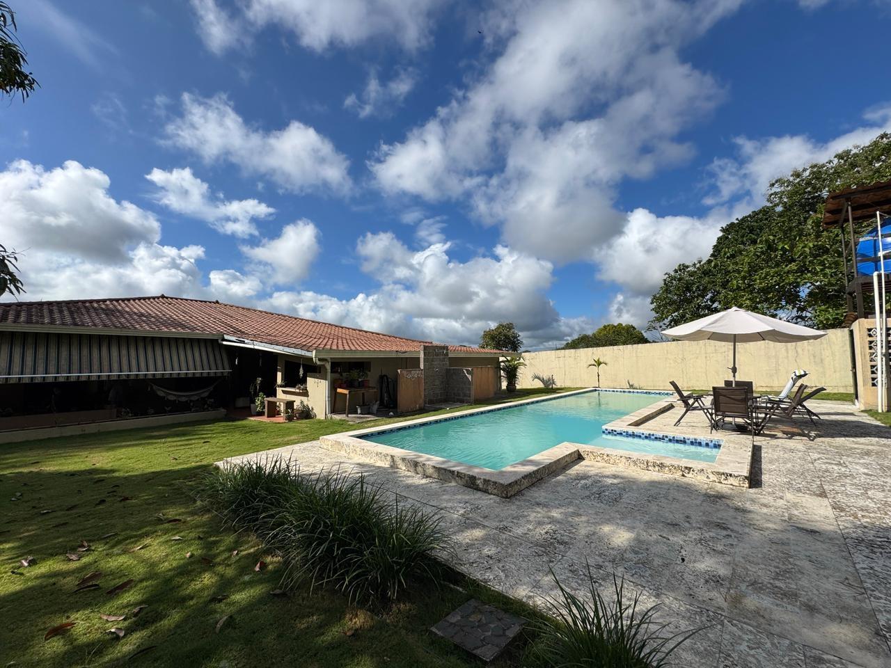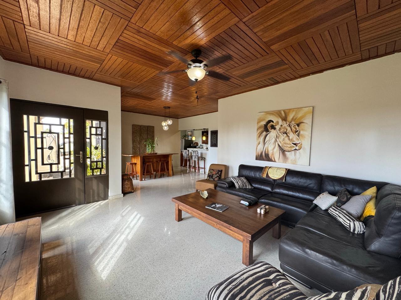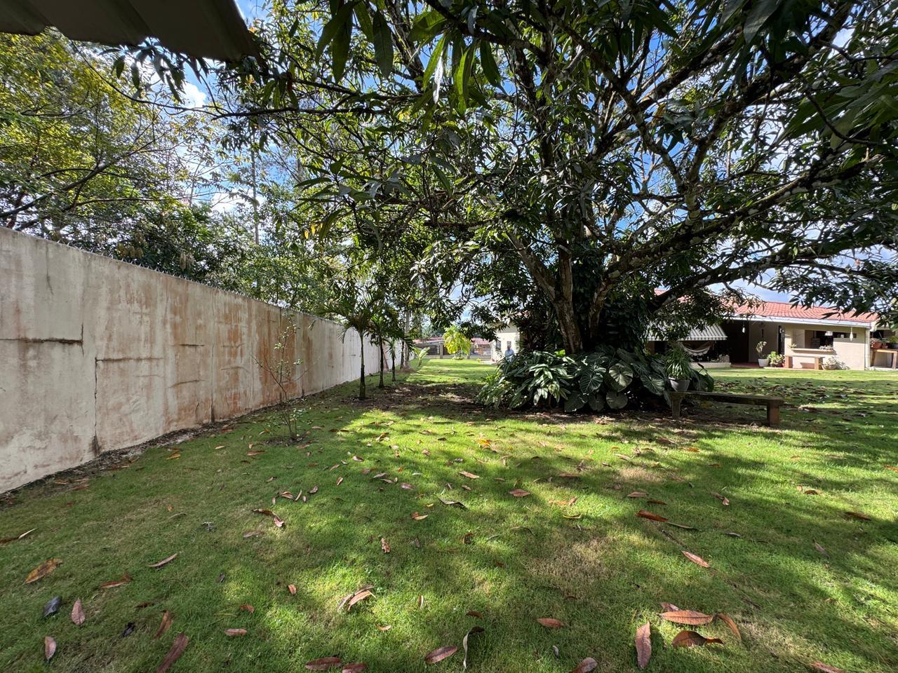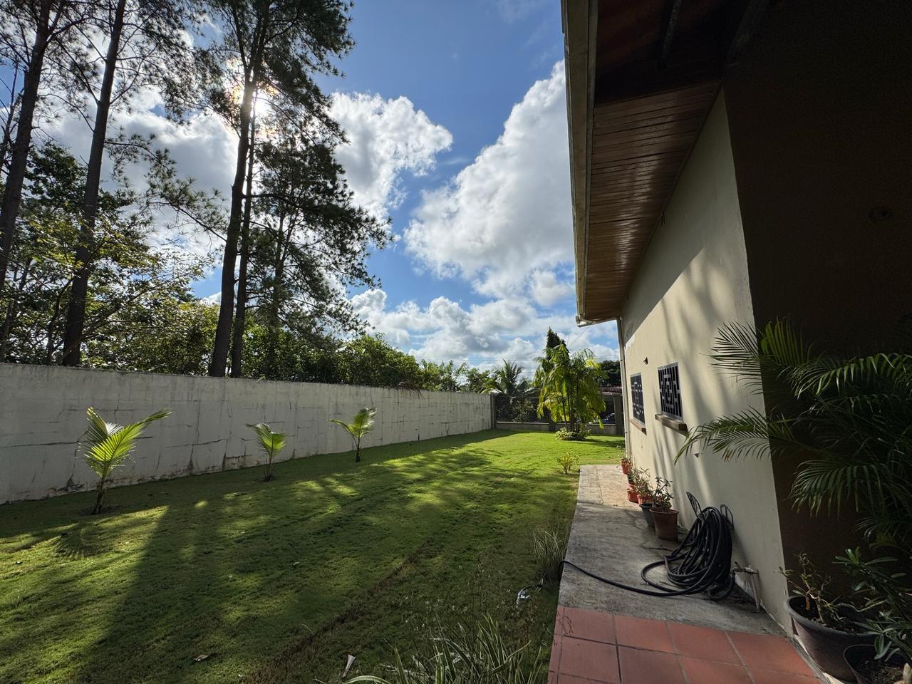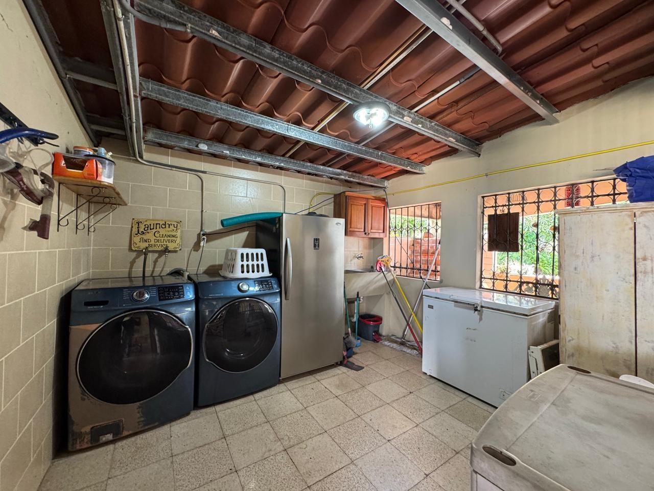 Single-family home with approximately 300 m² of construction on a flat 2,239.52 m² lot in Santiago, Veraguas. Four bedrooms, four bathrooms, swimming pool, defined interior and outdoor areas, perimeter fencing, and gated access. Located about 2 minutes from the Inter-American Highway and approximately 5 minutes from Santiago’s commercial center. The house is not directly adjacent to the highway. The House – Interior Layout The house features a functional layout with granite flooring throughout. The main living area features a wood-paneled ceiling and receives natural light, connecting directly to the dining area and kitchen. These spaces form the central living area of the home. The kitchen features granite countertops, solid wood upper and lower cabinetry, a stainless-steel stove, a range hood, and a large walk-in pantry. It also includes bench seating for four and a secondary dining area that opens toward the living room. Bedrooms and Bathrooms The property includes four bedrooms and four bathrooms. Two bedrooms function as primary suites. The main primary suite measures approximately 20.5 ft by 12.5 ft and includes an inlaid ceiling, double French doors that open directly to an outdoor patio, and separate walk-in closets. The en-suite bathroom includes double sinks, an oversized shower, and a soaking tub. The second primary suite provides space for a king-size bed and includes natural light and a private bathroom with an oversized shower. Two additional bedrooms are located in a separate section of the house. Two bedrooms are served by non-attached three-quarter bathrooms with dedicated shower areas.