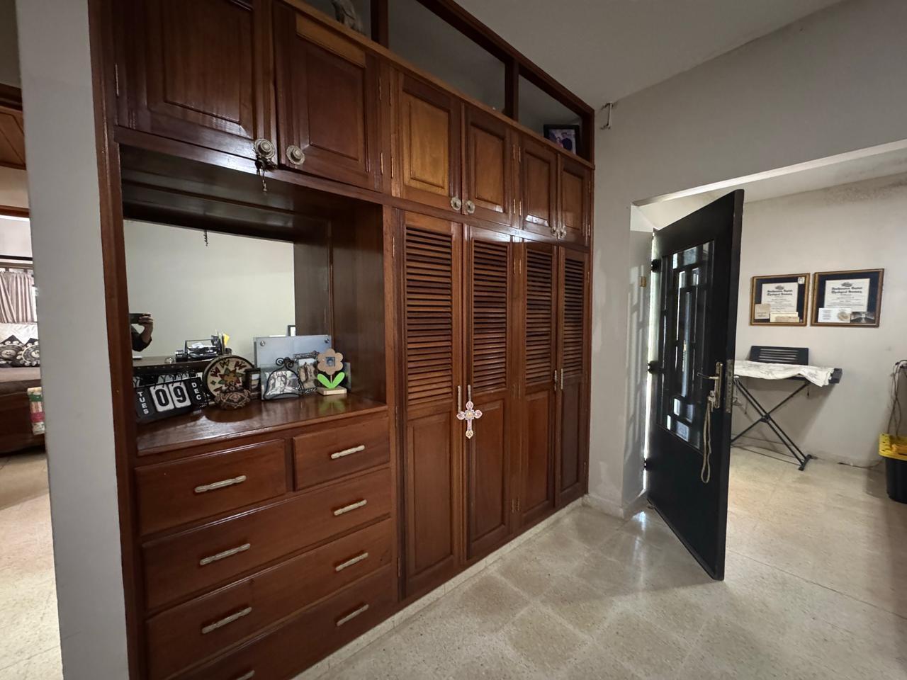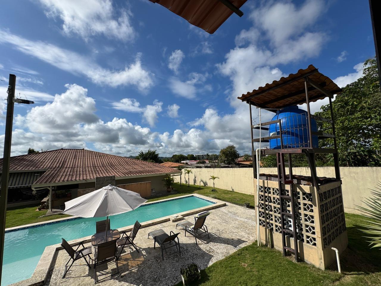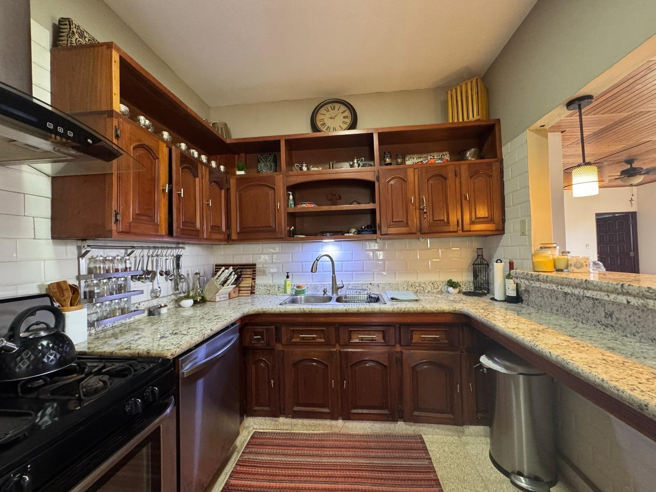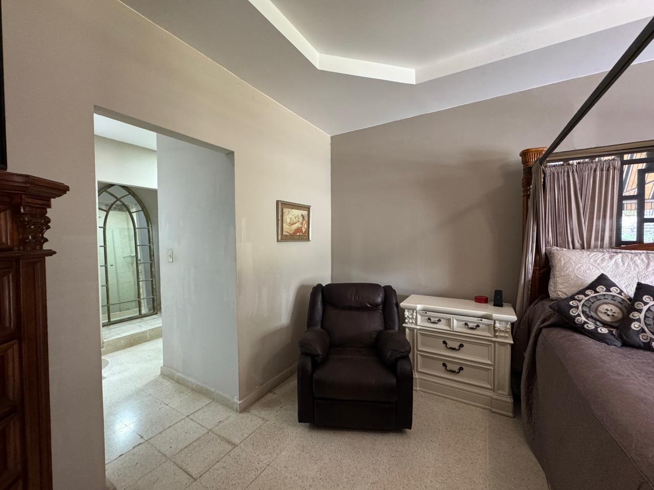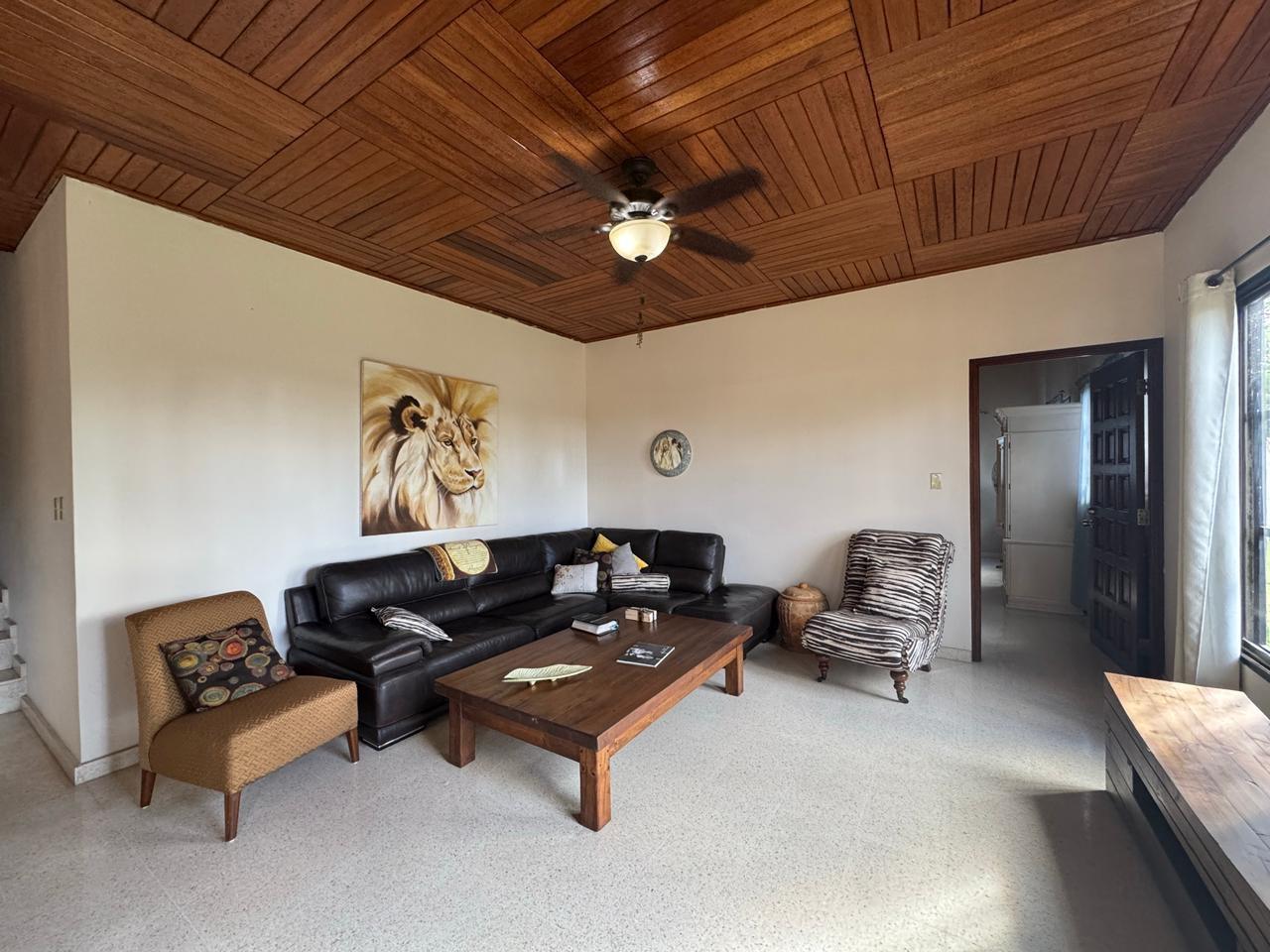 Single-family home with approximately 300 m² of construction on a flat 2,239.52 m² lot in Santiago, Veraguas. Four bedrooms, four bathrooms, swimming pool, defined interior and outdoor areas, perimeter fencing, and gated access. Located about 2 minutes from the Inter-American Highway and approximately 5 minutes from Santiago’s commercial center. The house is not directly adjacent to the highway. The House – Interior Layout The house features a functional layout with granite flooring throughout. The main living area features a wood-paneled ceiling and receives natural light, connecting directly to the dining area and kitchen. These spaces form the central living area of the home. The kitchen features granite countertops, solid wood upper and lower cabinetry, a stainless-steel stove, a range hood, and a large walk-in pantry. It also includes bench seating for four and a secondary dining area that opens toward the living room. Bedrooms and Bathrooms The property includes four bedrooms and four bathrooms. Two bedrooms function as primary suites. The main primary suite measures approximately 20.5 ft by 12.5 ft and includes an inlaid ceiling, double French doors that open directly to an outdoor patio, and separate walk-in closets. The en-suite bathroom includes double sinks, an oversized shower, and a soaking tub. The second primary suite provides space for a king-size bed and includes natural light and a private bathroom with an oversized shower. Two additional bedrooms are located in a separate section of the house. Two bedrooms are served by non-attached three-quarter bathrooms with dedicated shower areas.