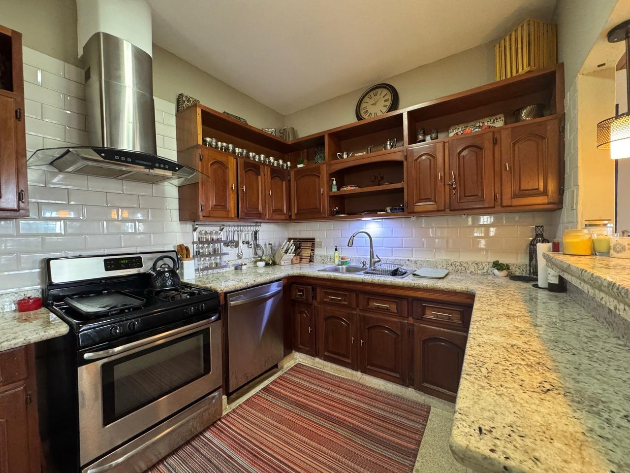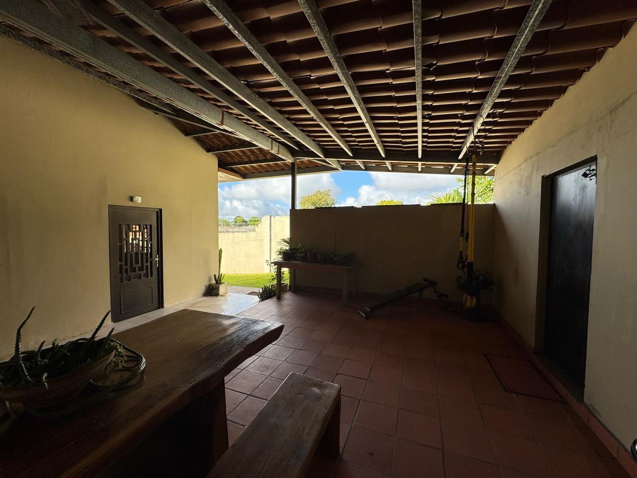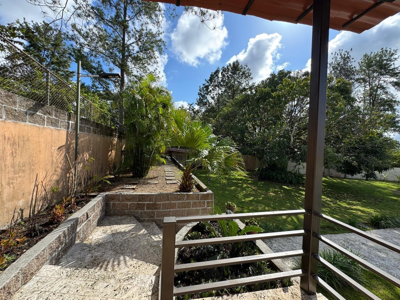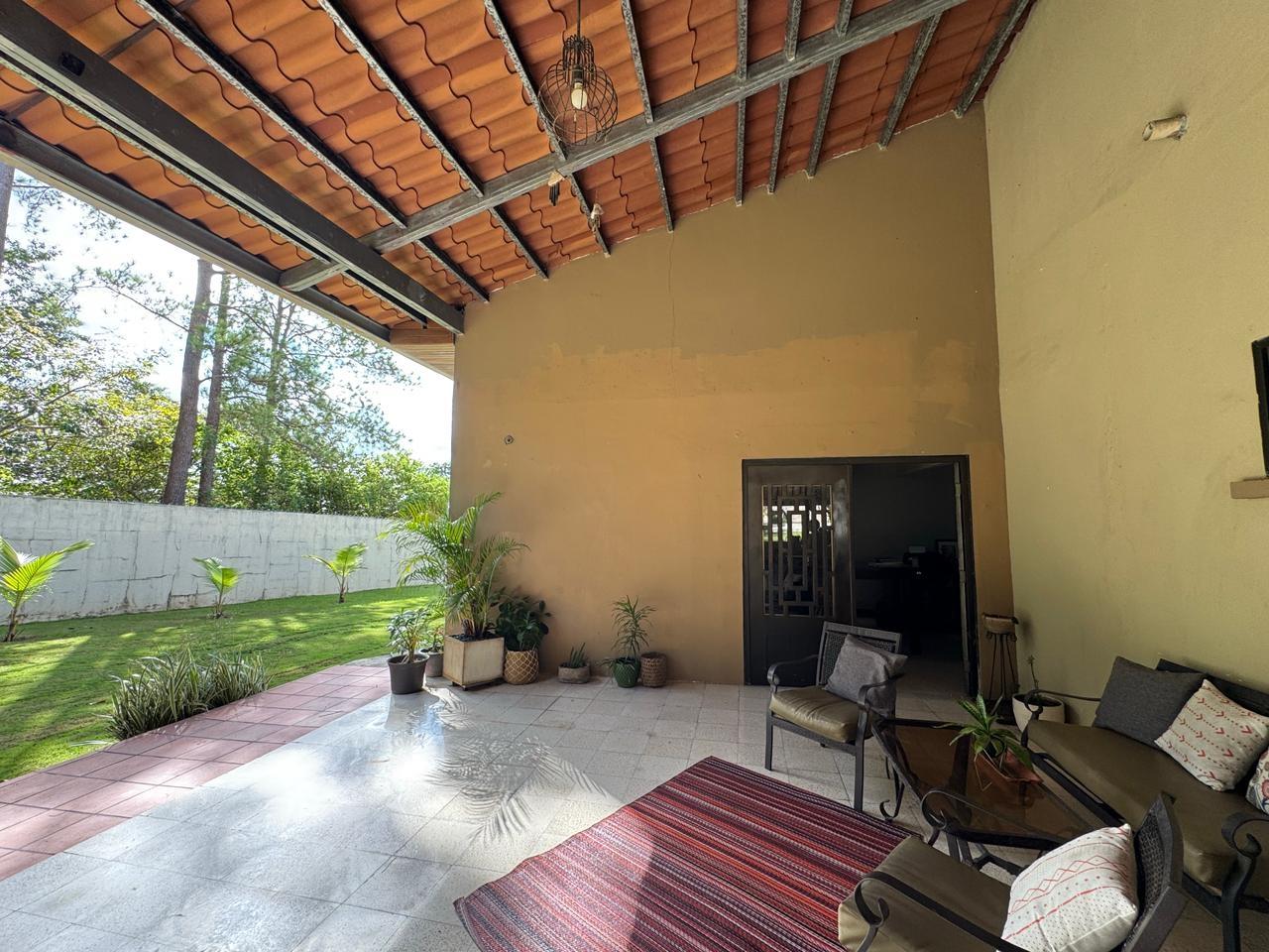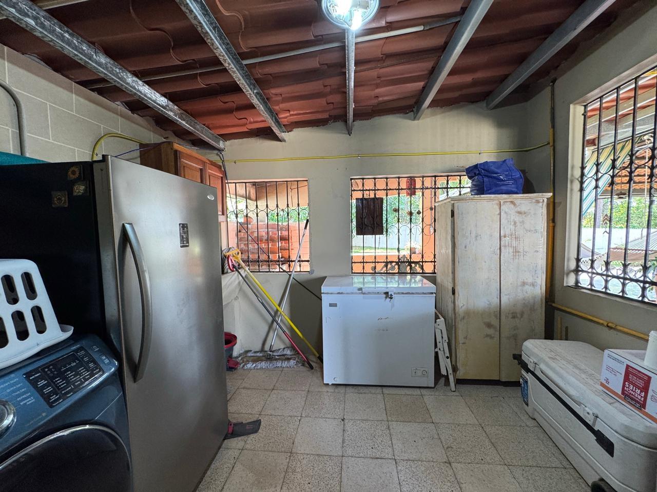 Single-family home with approximately 300 m² of construction on a flat 2,239.52 m² lot in Santiago, Veraguas. Four bedrooms, four bathrooms, swimming pool, defined interior and outdoor areas, perimeter fencing, and gated access. Located about 2 minutes from the Inter-American Highway and approximately 5 minutes from Santiago’s commercial center. The house is not directly adjacent to the highway. The House – Interior Layout The house features a functional layout with granite flooring throughout. The main living area features a wood-paneled ceiling and receives natural light, connecting directly to the dining area and kitchen. These spaces form the central living area of the home. The kitchen features granite countertops, solid wood upper and lower cabinetry, a stainless-steel stove, a range hood, and a large walk-in pantry. It also includes bench seating for four and a secondary dining area that opens toward the living room. Bedrooms and Bathrooms The property includes four bedrooms and four bathrooms. Two bedrooms function as primary suites. The main primary suite measures approximately 20.5 ft by 12.5 ft and includes an inlaid ceiling, double French doors that open directly to an outdoor patio, and separate walk-in closets. The en-suite bathroom includes double sinks, an oversized shower, and a soaking tub. The second primary suite provides space for a king-size bed and includes natural light and a private bathroom with an oversized shower. Two additional bedrooms are located in a separate section of the house. Two bedrooms are served by non-attached three-quarter bathrooms with dedicated shower areas.