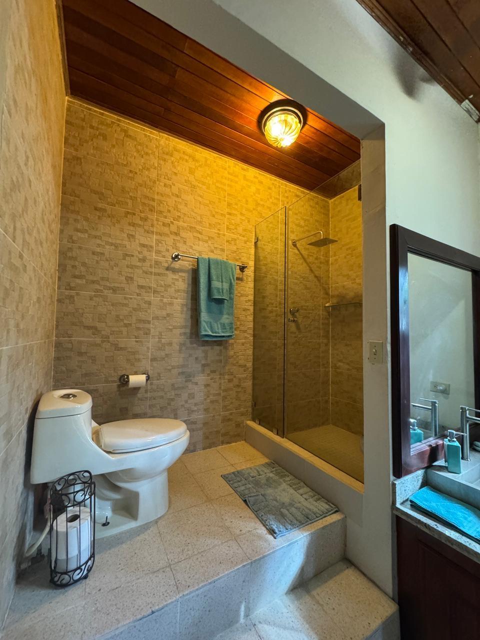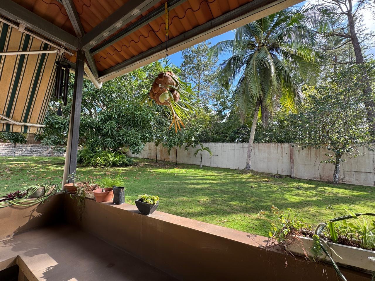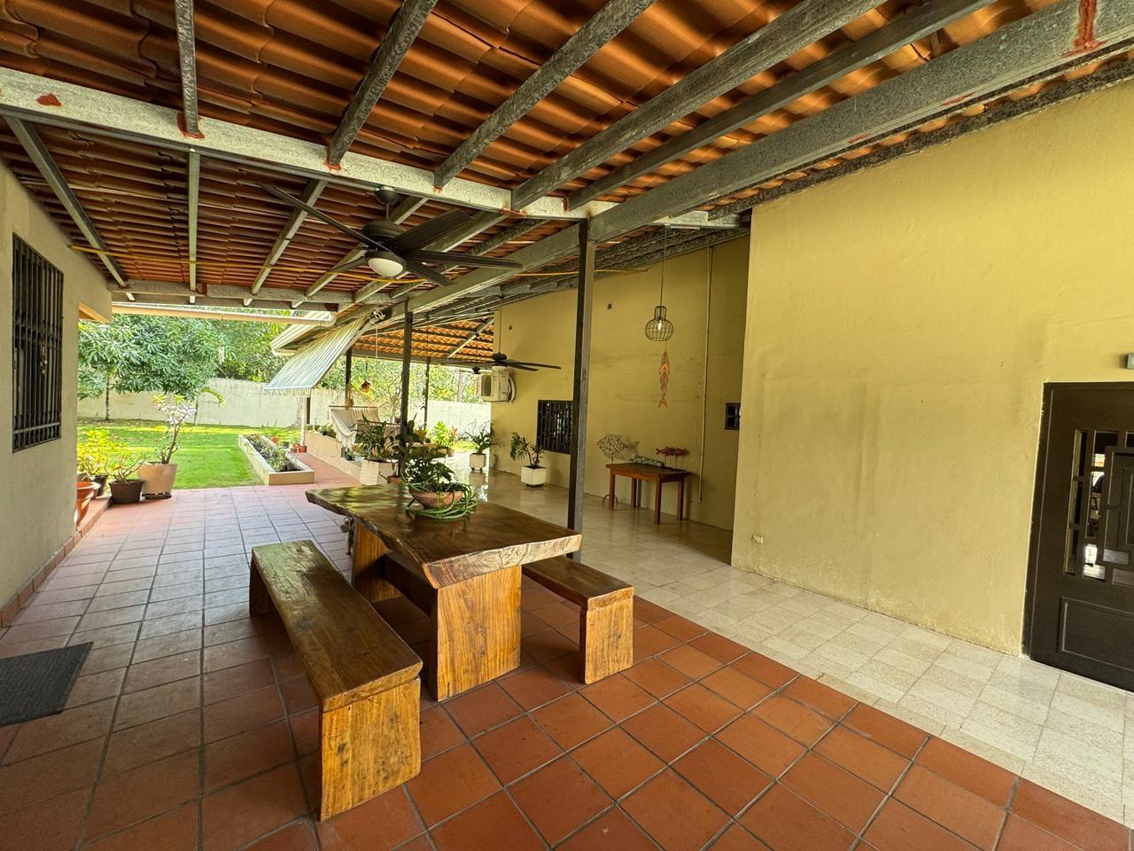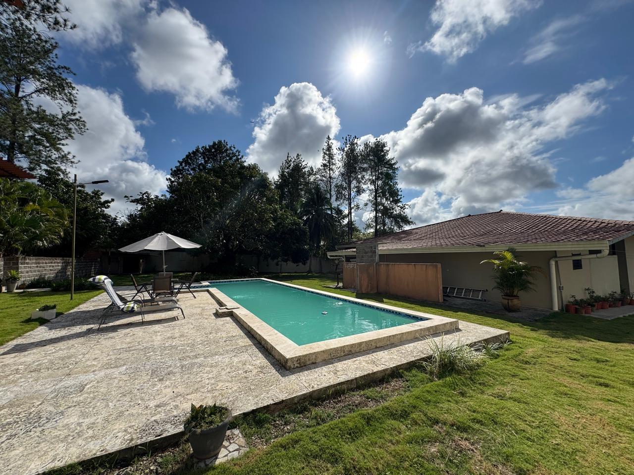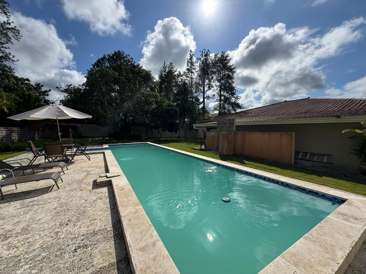 Single-family home with approximately 300 m² of construction on a flat 2,239.52 m² lot in Santiago, Veraguas. Four bedrooms, four bathrooms, swimming pool, defined interior and outdoor areas, perimeter fencing, and gated access. Located about 2 minutes from the Inter-American Highway and approximately 5 minutes from Santiago’s commercial center. The house is not directly adjacent to the highway. The House – Interior Layout The house features a functional layout with granite flooring throughout. The main living area features a wood-paneled ceiling and receives natural light, connecting directly to the dining area and kitchen. These spaces form the central living area of the home. The kitchen features granite countertops, solid wood upper and lower cabinetry, a stainless-steel stove, a range hood, and a large walk-in pantry. It also includes bench seating for four and a secondary dining area that opens toward the living room. Bedrooms and Bathrooms The property includes four bedrooms and four bathrooms. Two bedrooms function as primary suites. The main primary suite measures approximately 20.5 ft by 12.5 ft and includes an inlaid ceiling, double French doors that open directly to an outdoor patio, and separate walk-in closets. The en-suite bathroom includes double sinks, an oversized shower, and a soaking tub. The second primary suite provides space for a king-size bed and includes natural light and a private bathroom with an oversized shower. Two additional bedrooms are located in a separate section of the house. Two bedrooms are served by non-attached three-quarter bathrooms with dedicated shower areas.