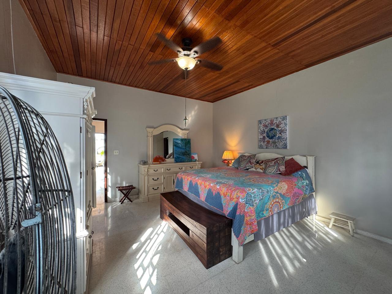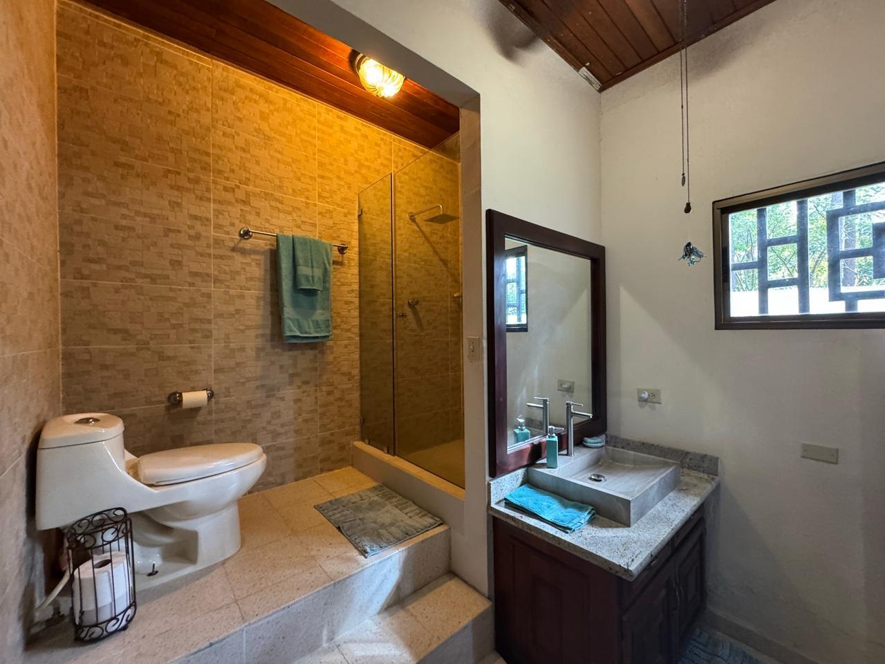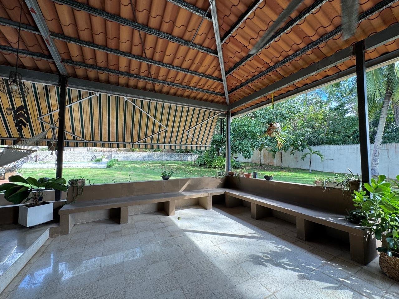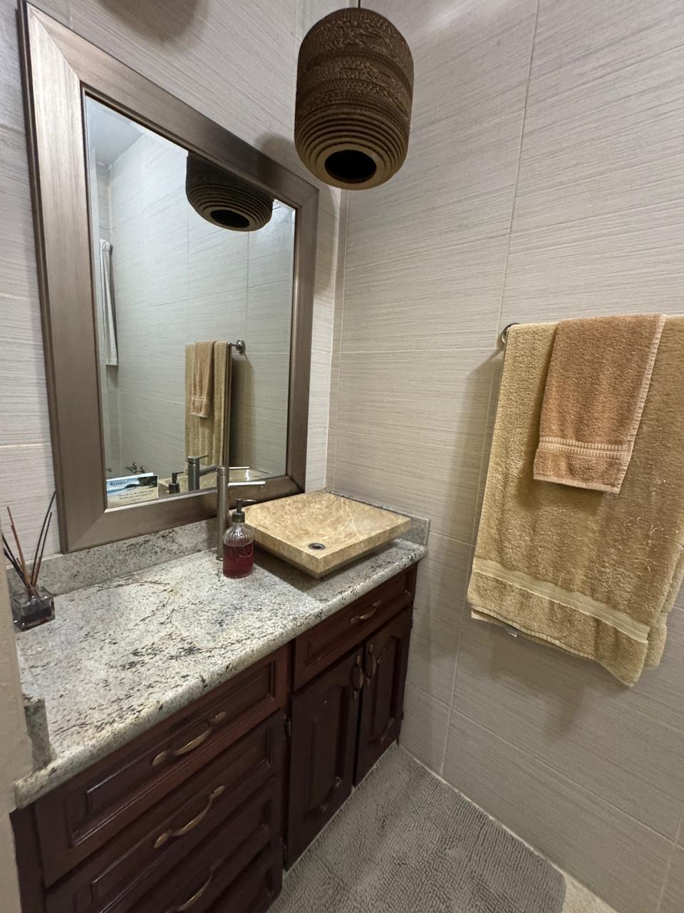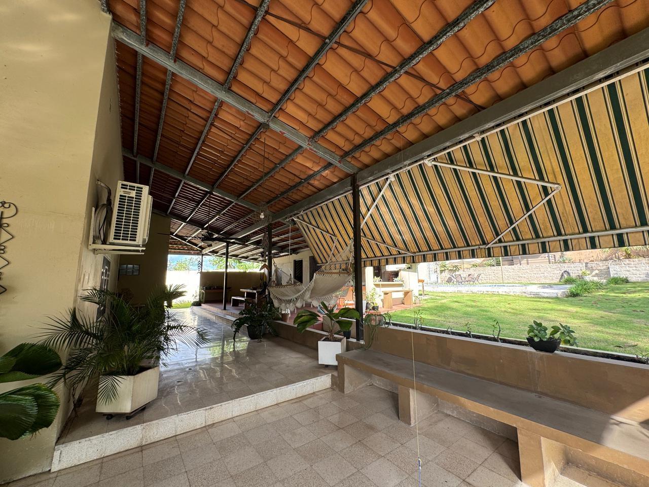 Single-family home with approximately 300 m² of construction on a flat 2,239.52 m² lot in Santiago, Veraguas. Four bedrooms, four bathrooms, swimming pool, defined interior and outdoor areas, perimeter fencing, and gated access. Located about 2 minutes from the Inter-American Highway and approximately 5 minutes from Santiago’s commercial center. The house is not directly adjacent to the highway. The House – Interior Layout The house features a functional layout with granite flooring throughout. The main living area features a wood-paneled ceiling and receives natural light, connecting directly to the dining area and kitchen. These spaces form the central living area of the home. The kitchen features granite countertops, solid wood upper and lower cabinetry, a stainless-steel stove, a range hood, and a large walk-in pantry. It also includes bench seating for four and a secondary dining area that opens toward the living room. Bedrooms and Bathrooms The property includes four bedrooms and four bathrooms. Two bedrooms function as primary suites. The main primary suite measures approximately 20.5 ft by 12.5 ft and includes an inlaid ceiling, double French doors that open directly to an outdoor patio, and separate walk-in closets. The en-suite bathroom includes double sinks, an oversized shower, and a soaking tub. The second primary suite provides space for a king-size bed and includes natural light and a private bathroom with an oversized shower. Two additional bedrooms are located in a separate section of the house. Two bedrooms are served by non-attached three-quarter bathrooms with dedicated shower areas.