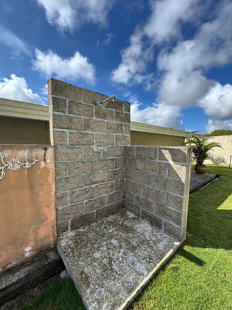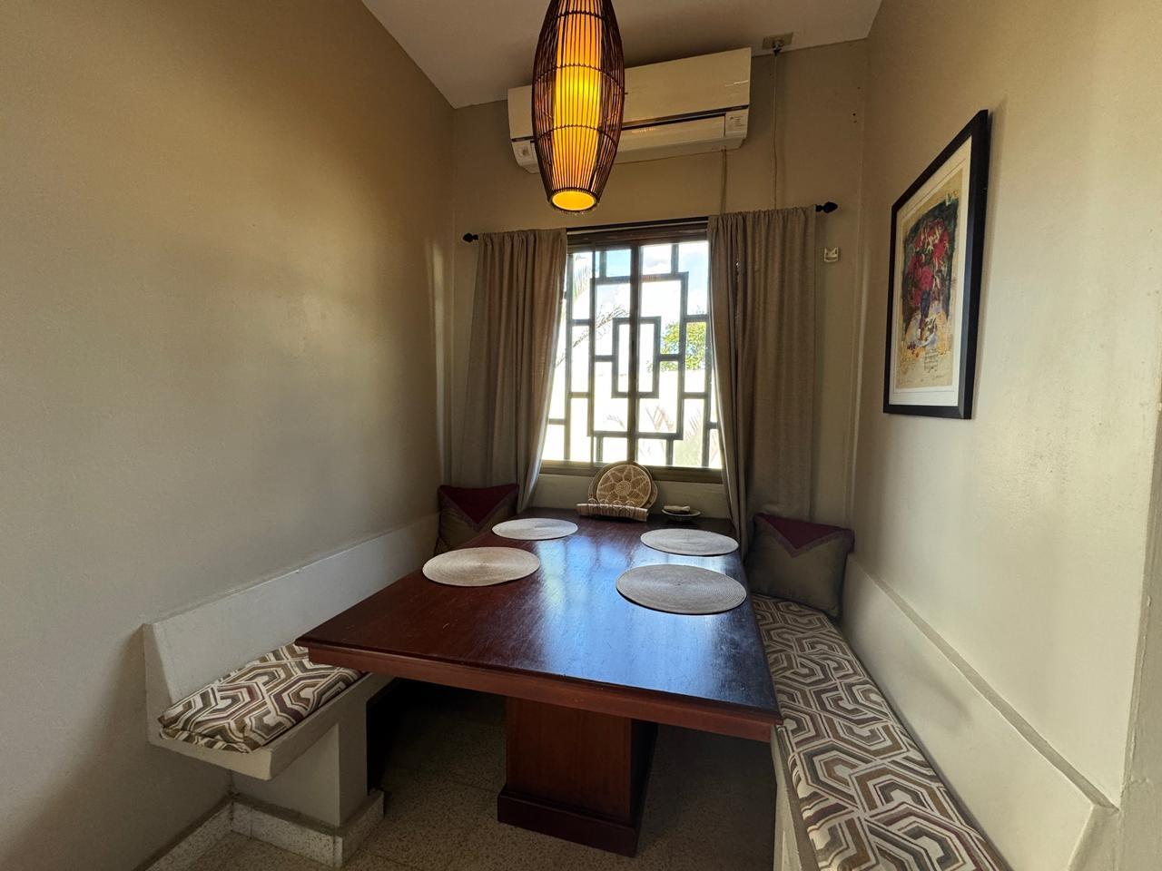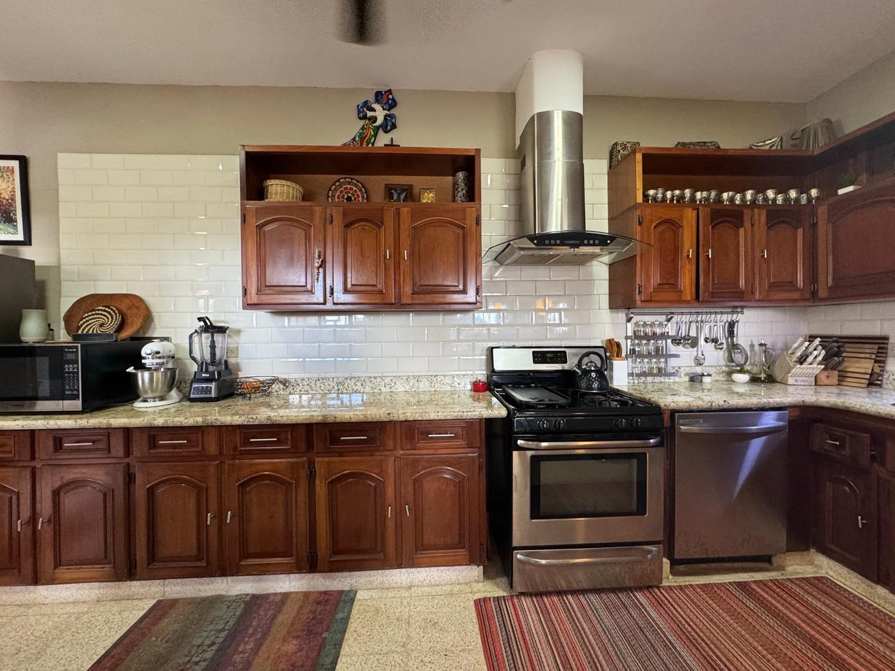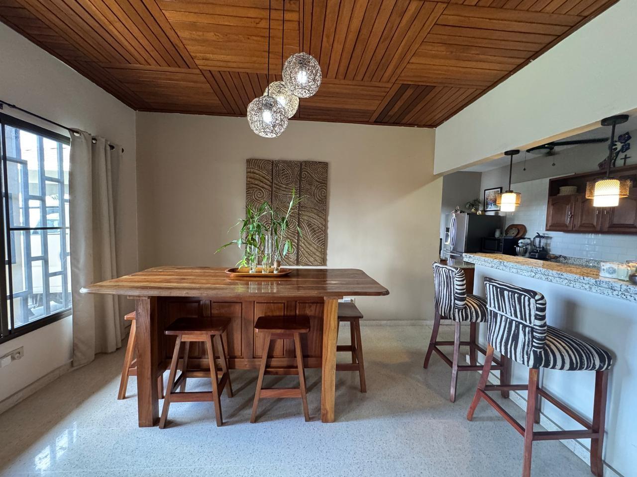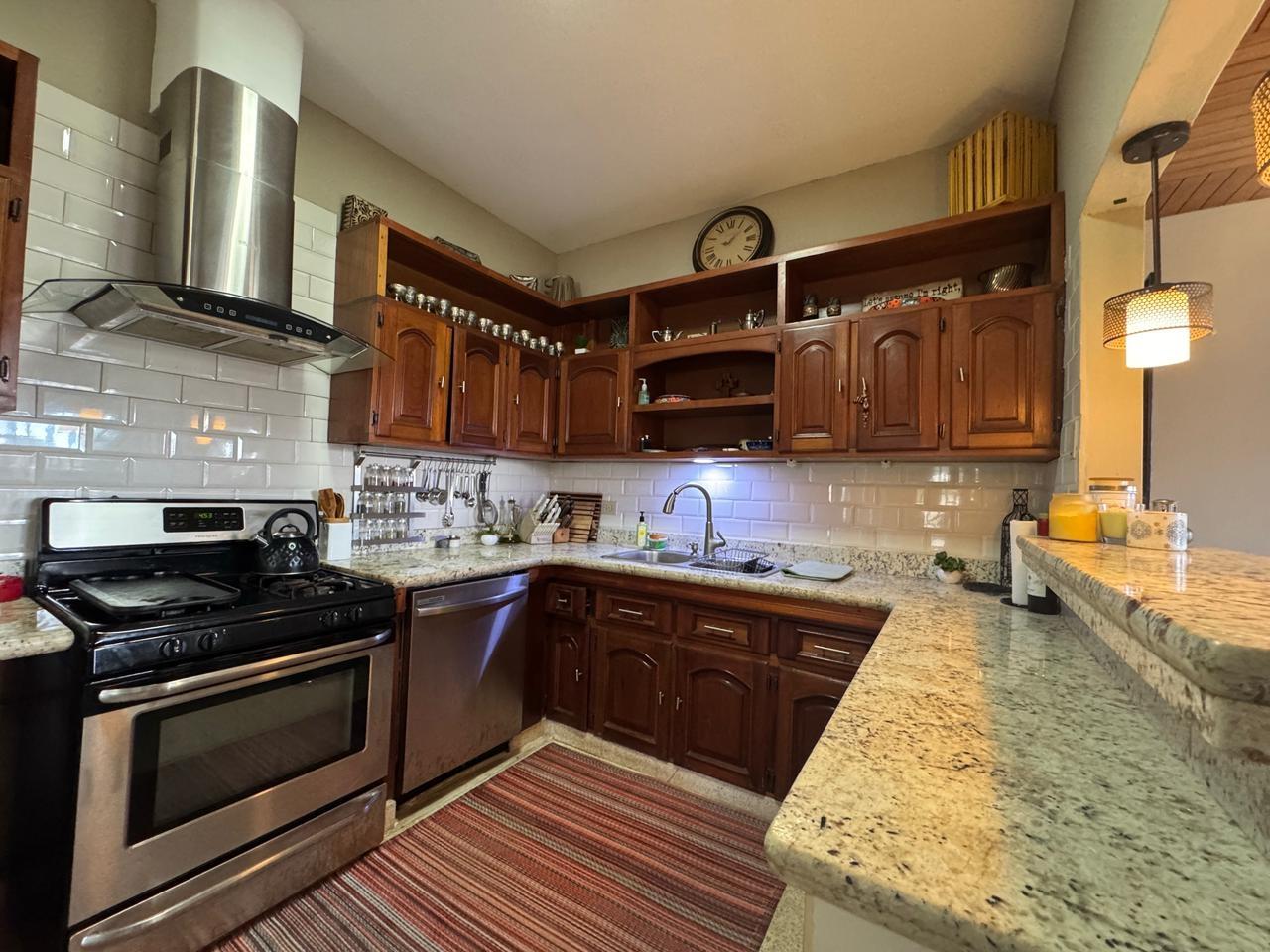 Single-family home with approximately 300 m² of construction on a flat 2,239.52 m² lot in Santiago, Veraguas. Four bedrooms, four bathrooms, swimming pool, defined interior and outdoor areas, perimeter fencing, and gated access. Located about 2 minutes from the Inter-American Highway and approximately 5 minutes from Santiago’s commercial center. The house is not directly adjacent to the highway. The House – Interior Layout The house features a functional layout with granite flooring throughout. The main living area features a wood-paneled ceiling and receives natural light, connecting directly to the dining area and kitchen. These spaces form the central living area of the home. The kitchen features granite countertops, solid wood upper and lower cabinetry, a stainless-steel stove, a range hood, and a large walk-in pantry. It also includes bench seating for four and a secondary dining area that opens toward the living room. Bedrooms and Bathrooms The property includes four bedrooms and four bathrooms. Two bedrooms function as primary suites. The main primary suite measures approximately 20.5 ft by 12.5 ft and includes an inlaid ceiling, double French doors that open directly to an outdoor patio, and separate walk-in closets. The en-suite bathroom includes double sinks, an oversized shower, and a soaking tub. The second primary suite provides space for a king-size bed and includes natural light and a private bathroom with an oversized shower. Two additional bedrooms are located in a separate section of the house. Two bedrooms are served by non-attached three-quarter bathrooms with dedicated shower areas.