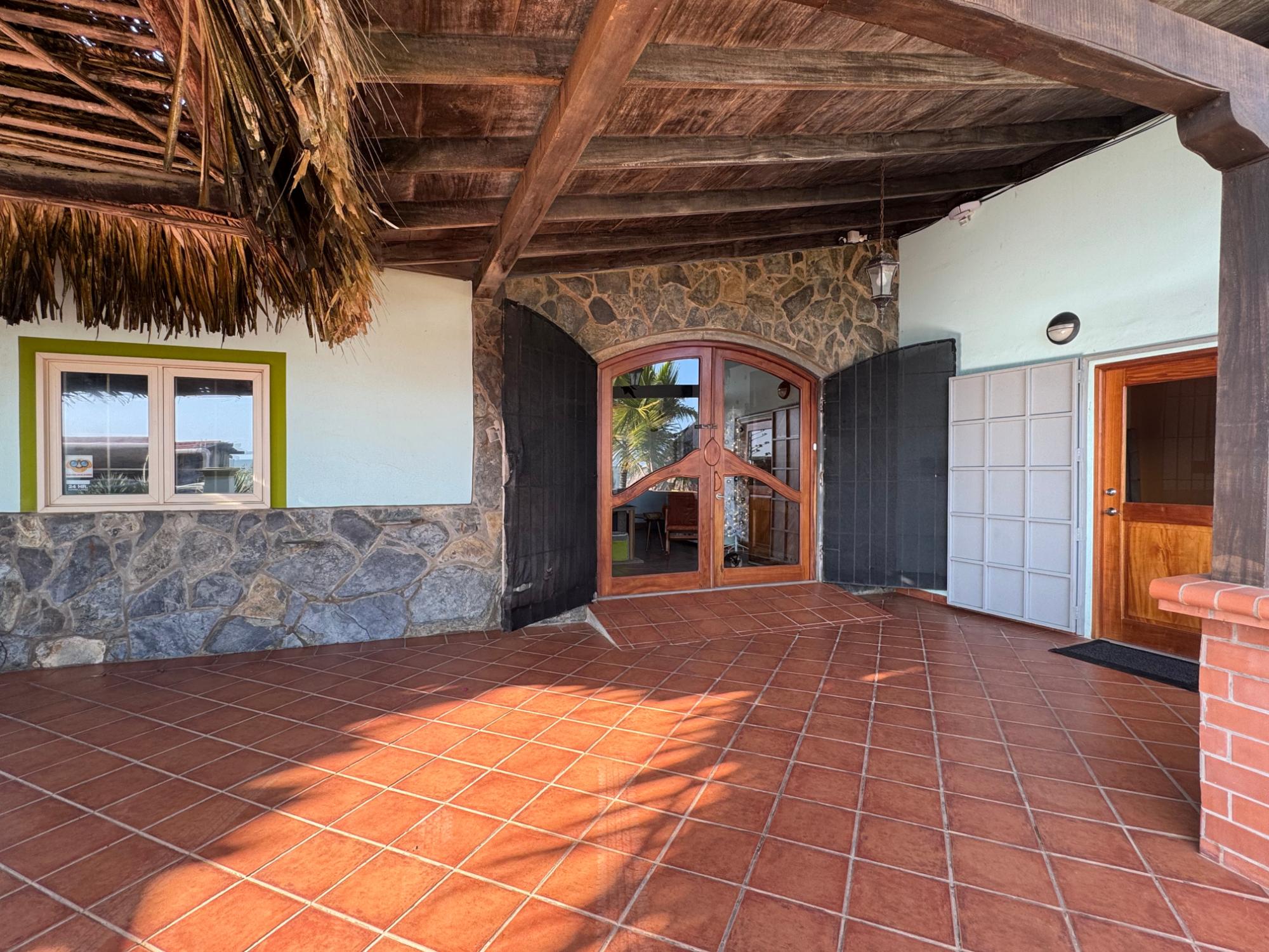 A private beachfront oasis designed for tranquility, privacy, and sweeping views of the Pacific Ocean. From the elevated panoramic-view rancho to the private rancho directly on the beach, this property delivers a truly unique coastal lifestyle in Panama. Located in Playa Uverito, just 12 minutes from Las Tablas with supermarkets, hardware stores, hospitals, and essential services. Within 45 minutes, reach Pedasí or Chitré, offering larger shopping options and a golf course. Main House 2 spacious king-size bedrooms (primary with ensuite). 2 full bathrooms with stone-tiled showers and generous storage. Sold fully furnished. Large living area with ocean-view glass doors, wooden doors, and steel security gates; also functions as a secure enclosed garage for extended absences. Bright open-concept kitchen with direct access to the outdoor dining rancho and outdoor kitchen/cabana with full bathroom and laundry (washer & gas dryer). Interior secure storage room with loft. 4-layer insulated security roof. Whole-house surge protection. Tightly sealed construction, pest-free. Premium Construction Canadian-designed and built using ICF (Insulated Concrete Forms). High-quality imported materials. 13-inch (33 cm) thick exterior walls. Excellent thermal insulation → low electricity costs. Independent Apartment 1 queen-size bedroom. Private entrance. Living area, kitchen, and bathroom with shower. Air conditioning. Ideal for rental income or guests. Private Outdoor Area (Renovated 2021) Fully enclosed and secure yard. Saltwater swimming pool. Automatic irrigation system. Large technical/utility room for pool equipment, tools, and BBQ. Outdoor shower and spa-s