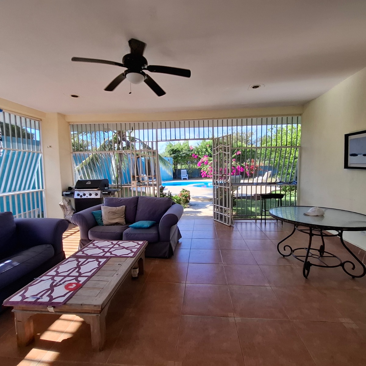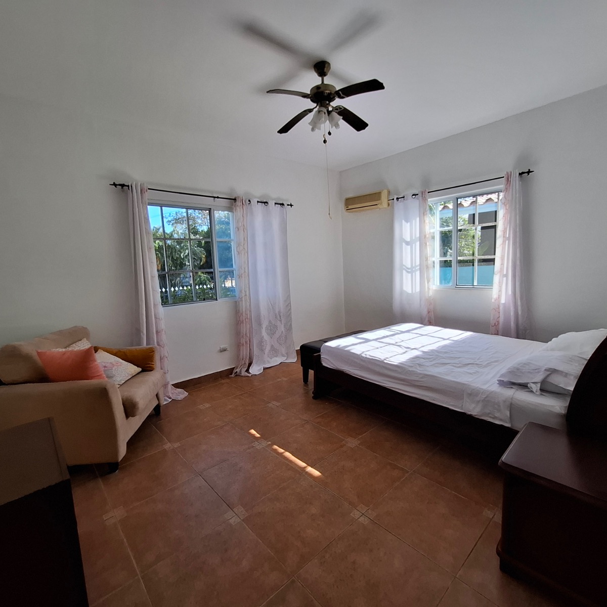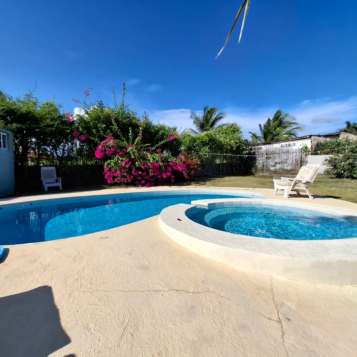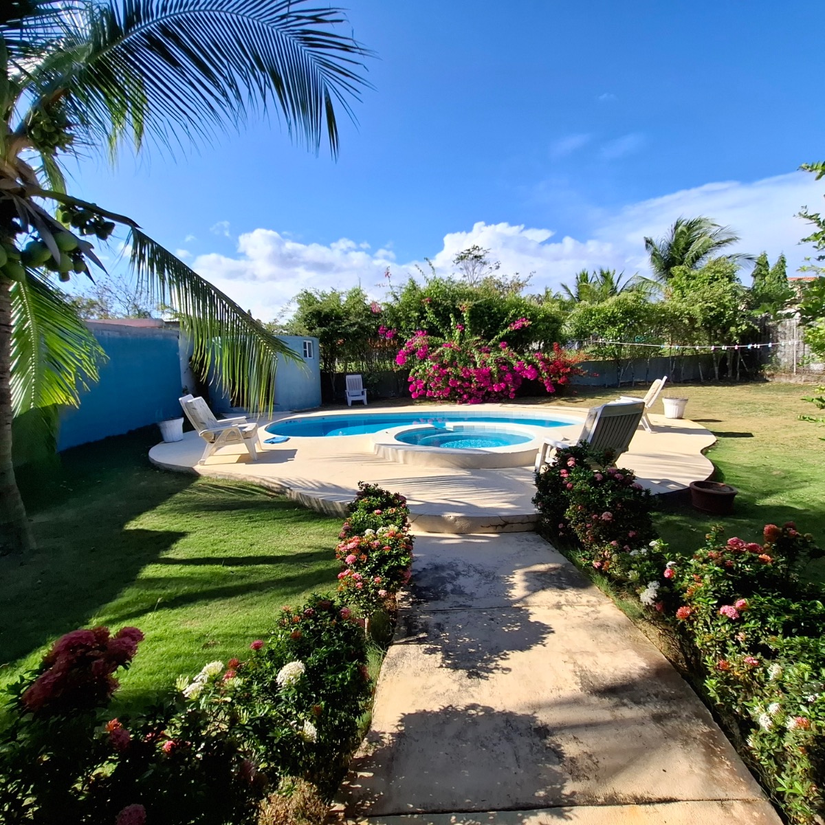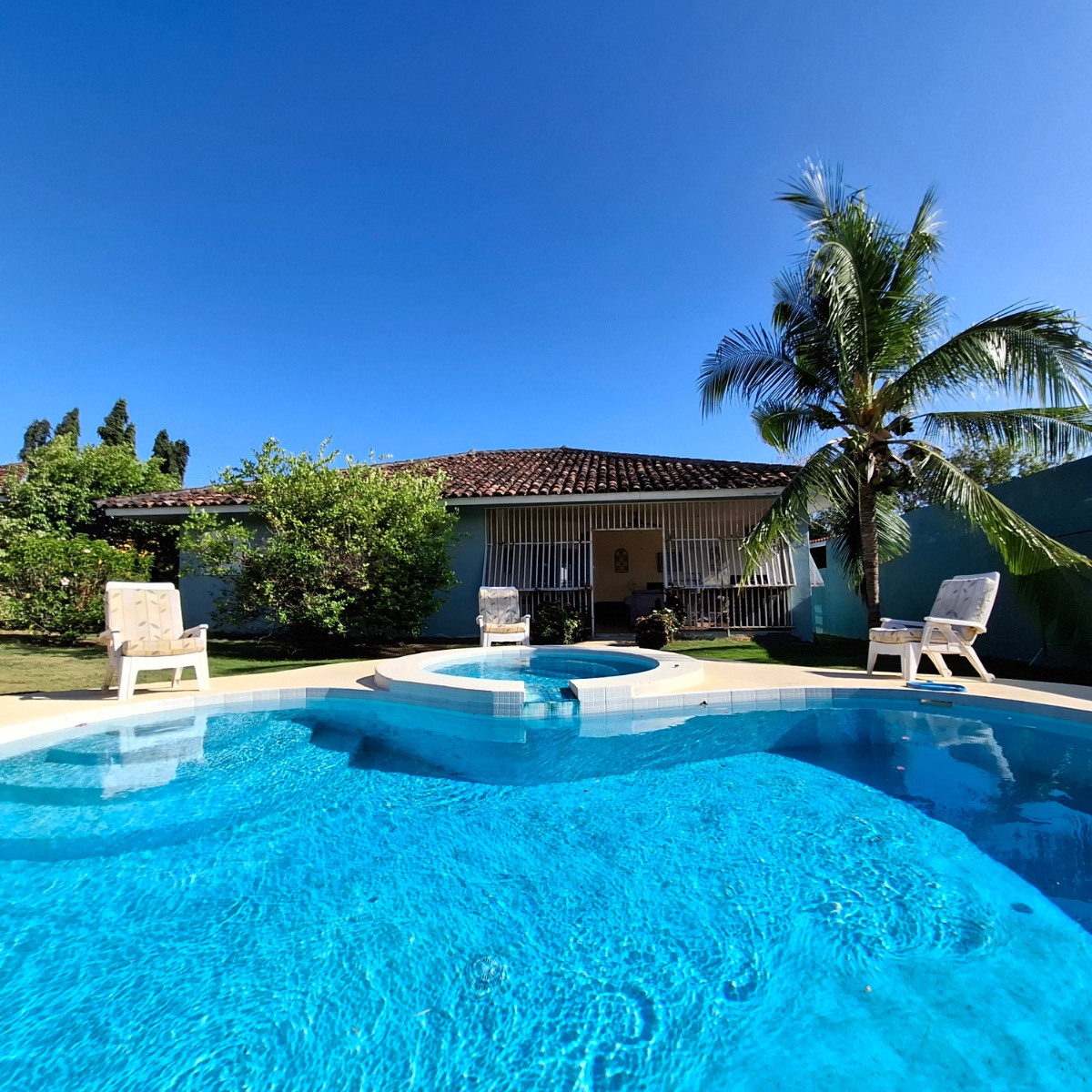 Step inside to discover an open-concept living and dining area, a functional kitchen perfect for entertaining, and a large covered terrace ideal for outdoor living. Enjoy sunny days by your private swimming pool, surrounded by a lush tropical garden and tranquil atmosphere. The property also includes a maid’s quarters with private bathroom and covered parking for two vehicles.