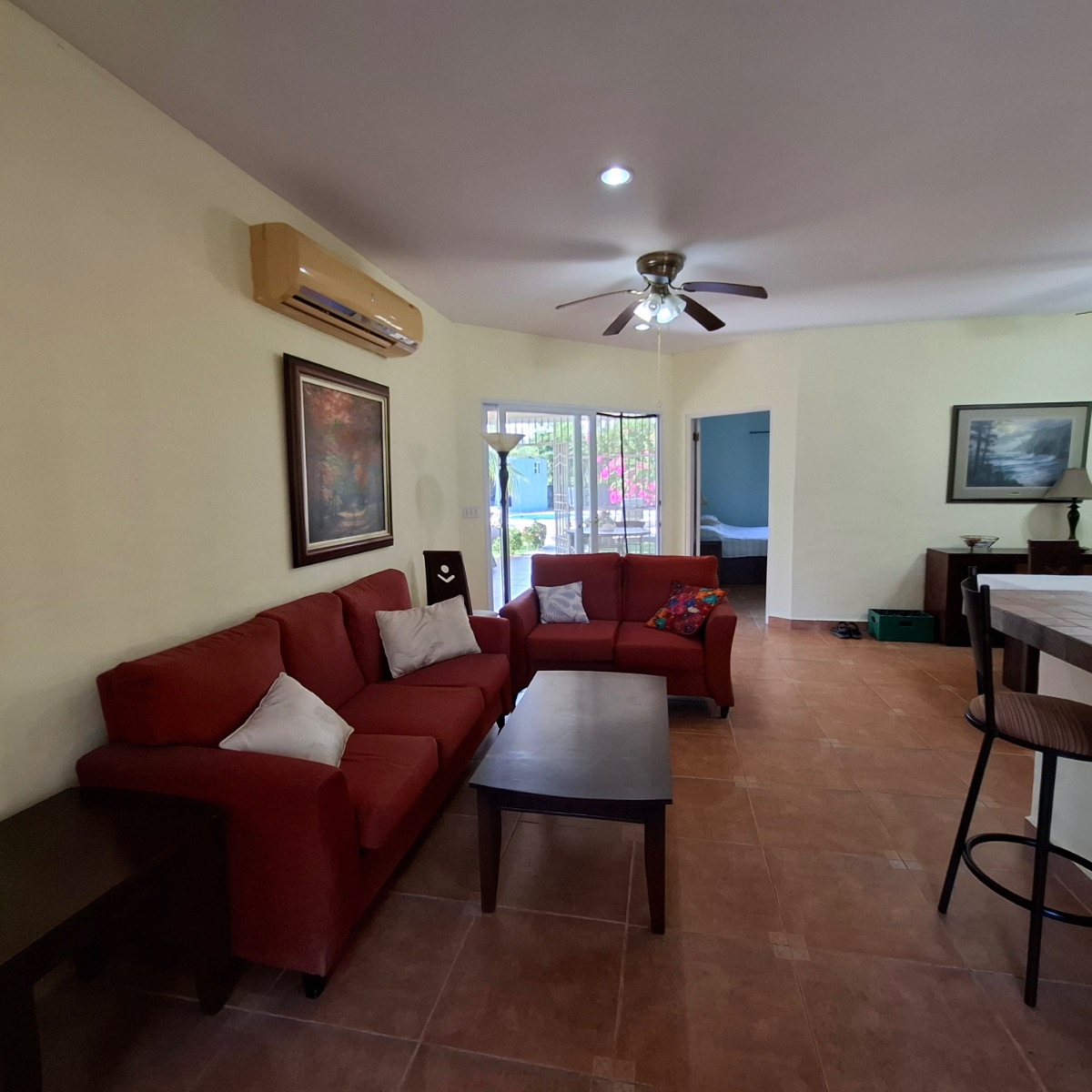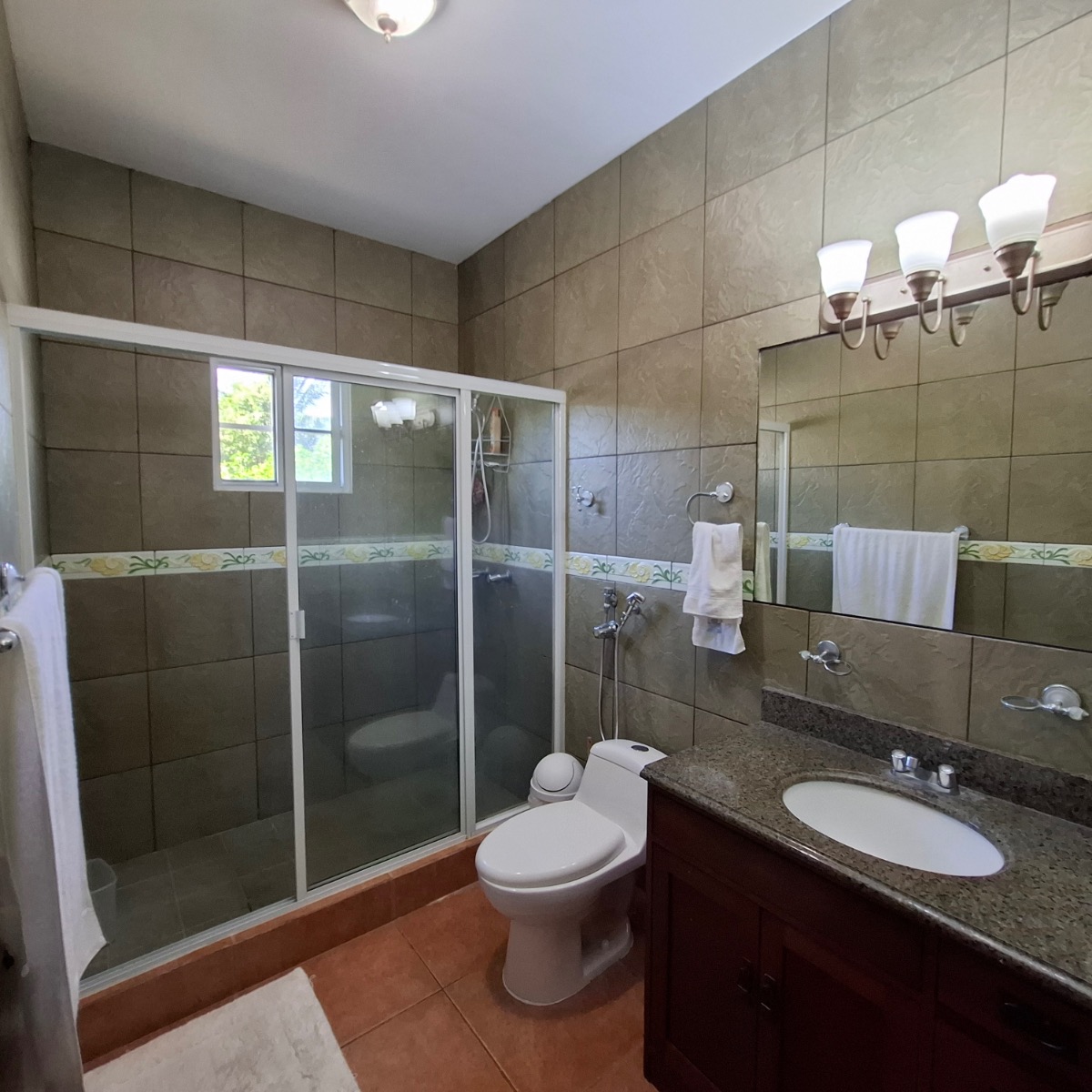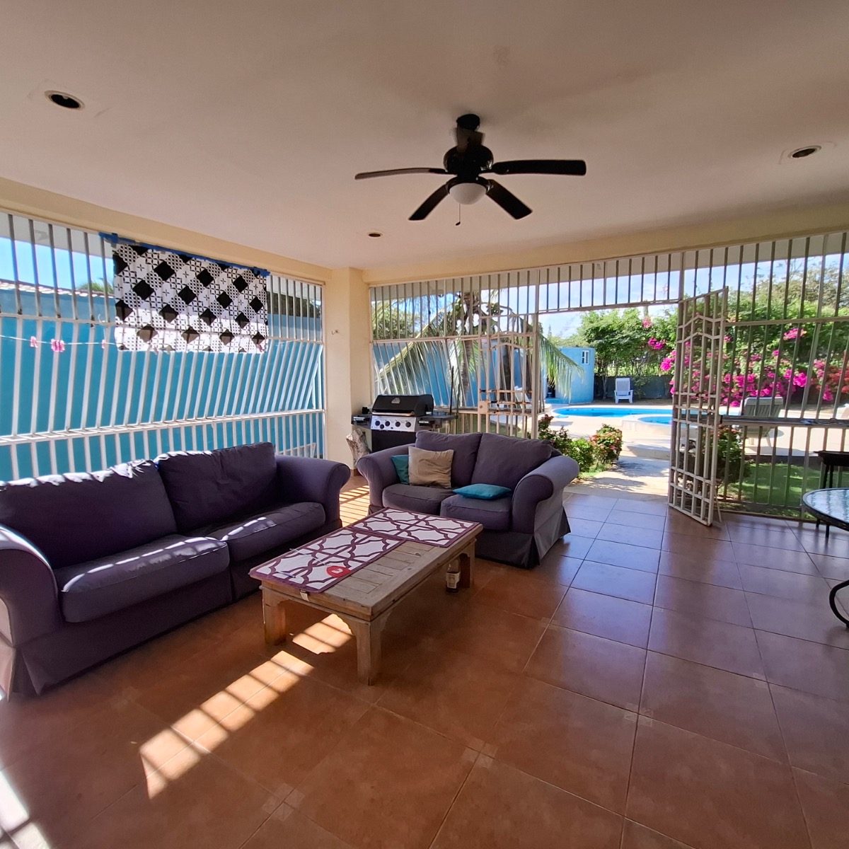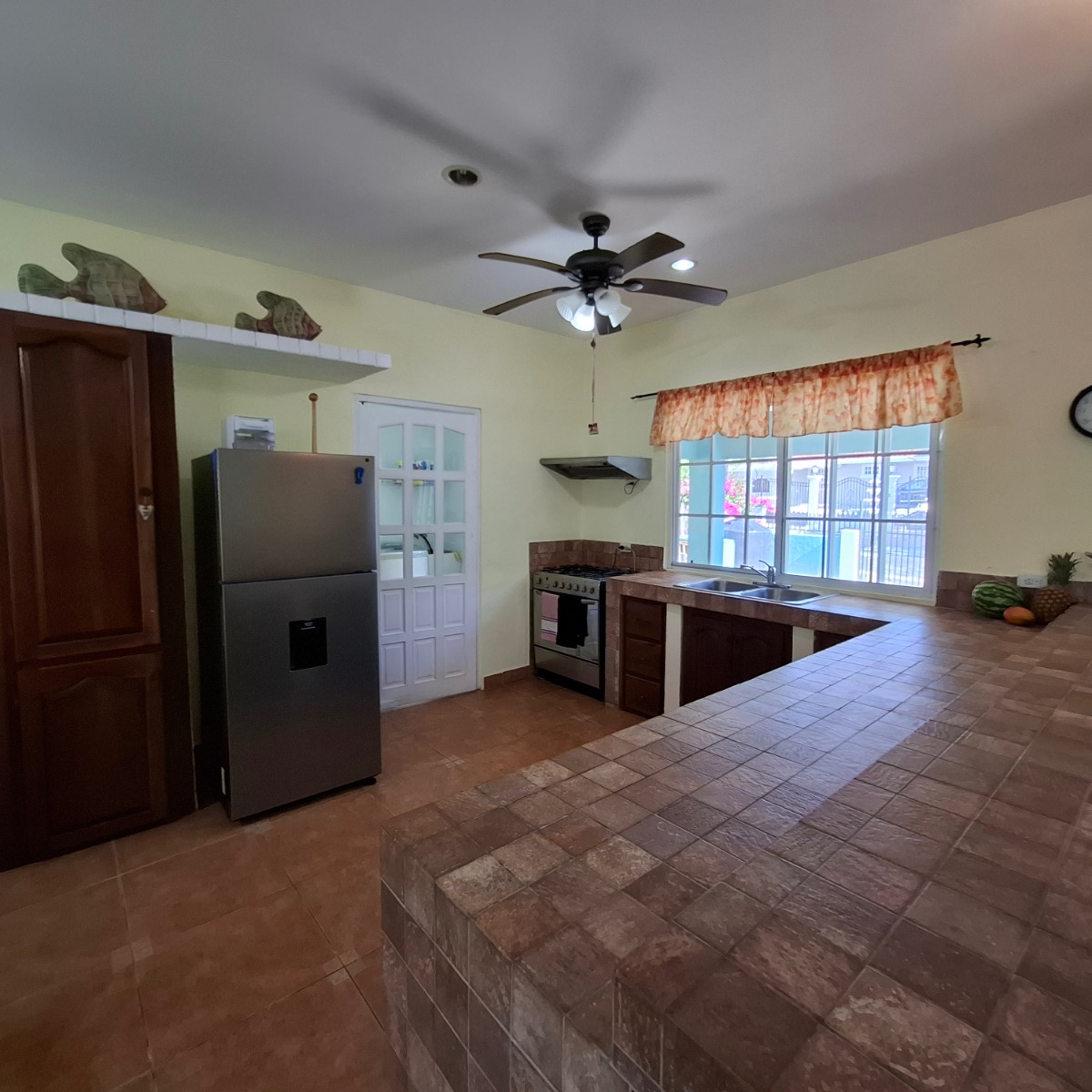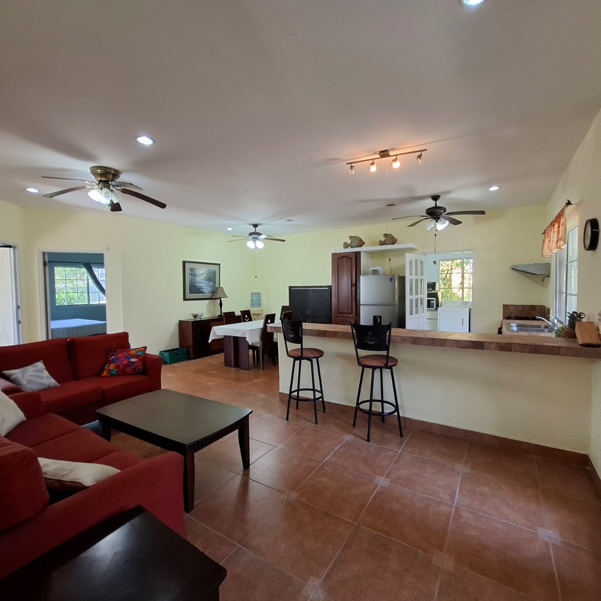 Step inside to discover an open-concept living and dining area, a functional kitchen perfect for entertaining, and a large covered terrace ideal for outdoor living. Enjoy sunny days by your private swimming pool, surrounded by a lush tropical garden and tranquil atmosphere. The property also includes a maid’s quarters with private bathroom and covered parking for two vehicles.