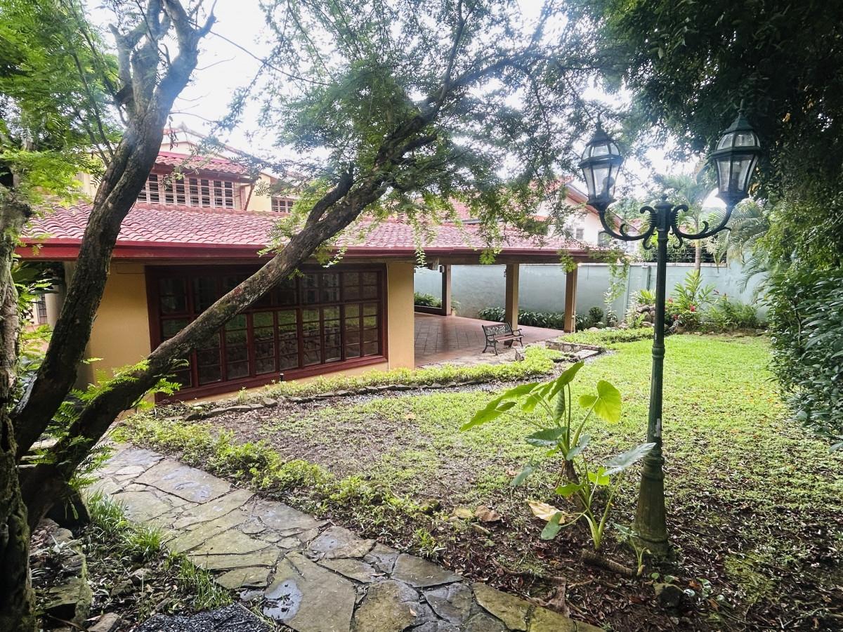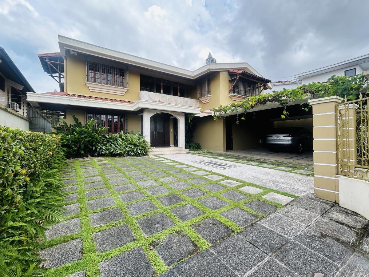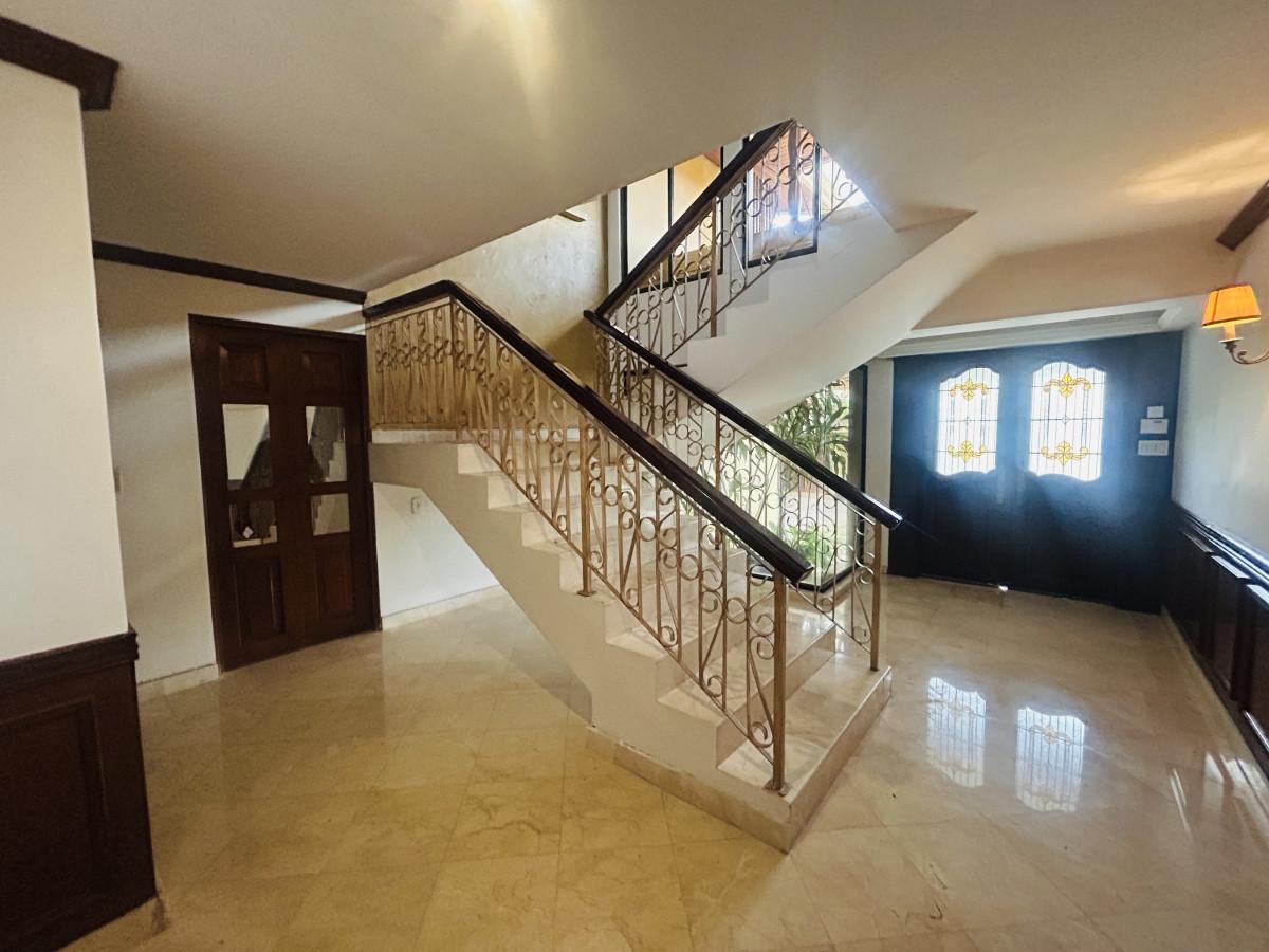 Living in La Alameda means enjoying a well-established residential area with high added value, where family life and urban comfort meet in one place. Surrounded by nature, wide streets, and elegant residences. A serene setting that invites you to walk, exercise, or simply relax. This residence is spread over two floors. The ground floor consists of a foyer, living room, dining room, kitchen, family room, study, guest bathroom, service bedroom and bathroom, laundry room, a large terrace with a bar, and four parking spaces and storage. The upper floor features three bedrooms, each with its own full bathroom, a den, and a balcony where you can enjoy nature. Outside, at the rear of the residence, you will find an annex with a bedroom and full bathroom, and a storage room. There is also a pump room for controlled watering of your plants. The residence features various finishes, including marble and granite floors, wood structures and a tongue-and-groove ceiling, and a gypsum ceiling in the family room. This exclusive neighborhood offers the perfect combination of exclusivity, tranquility, and a strategic location in Panama City.