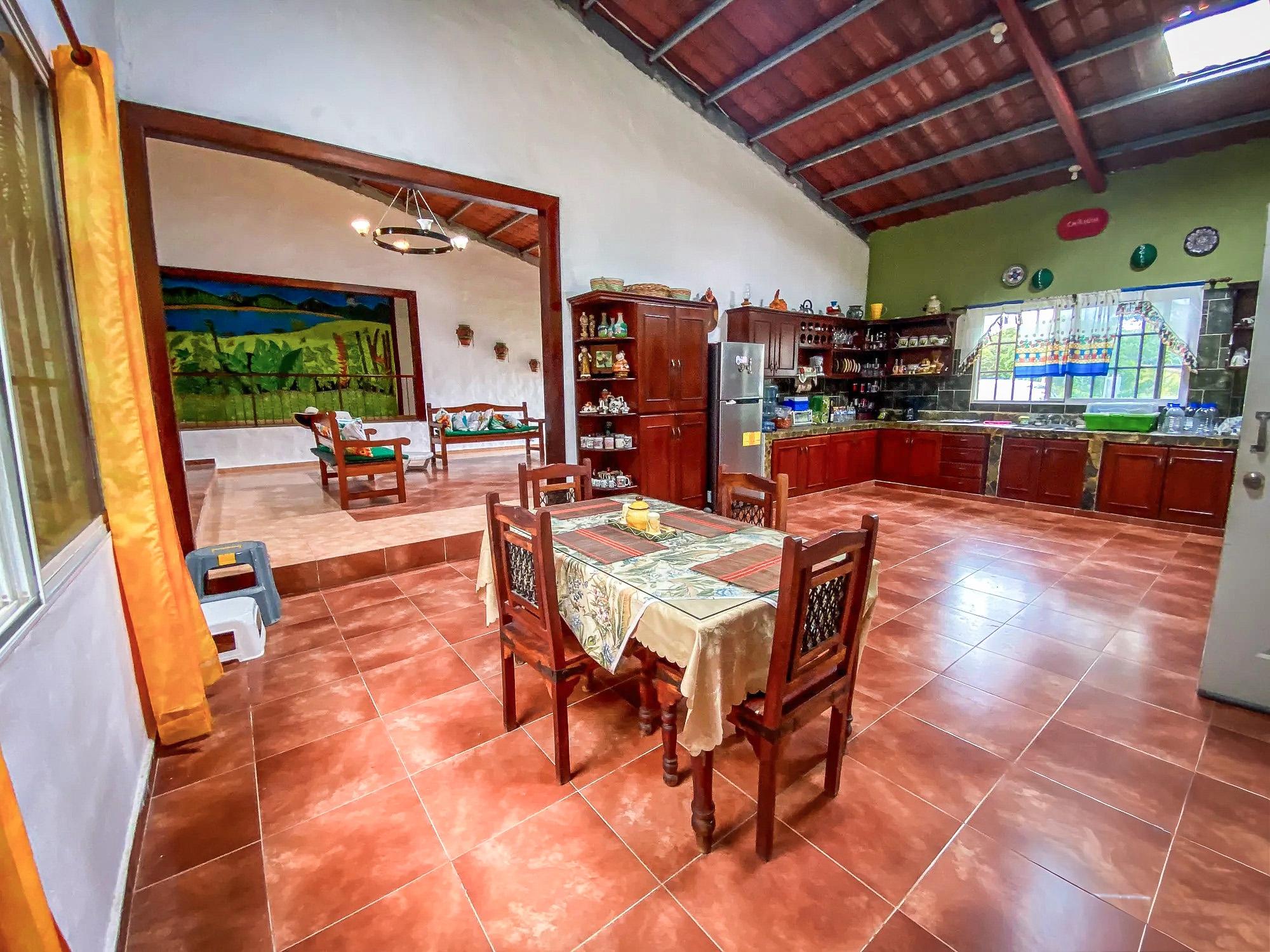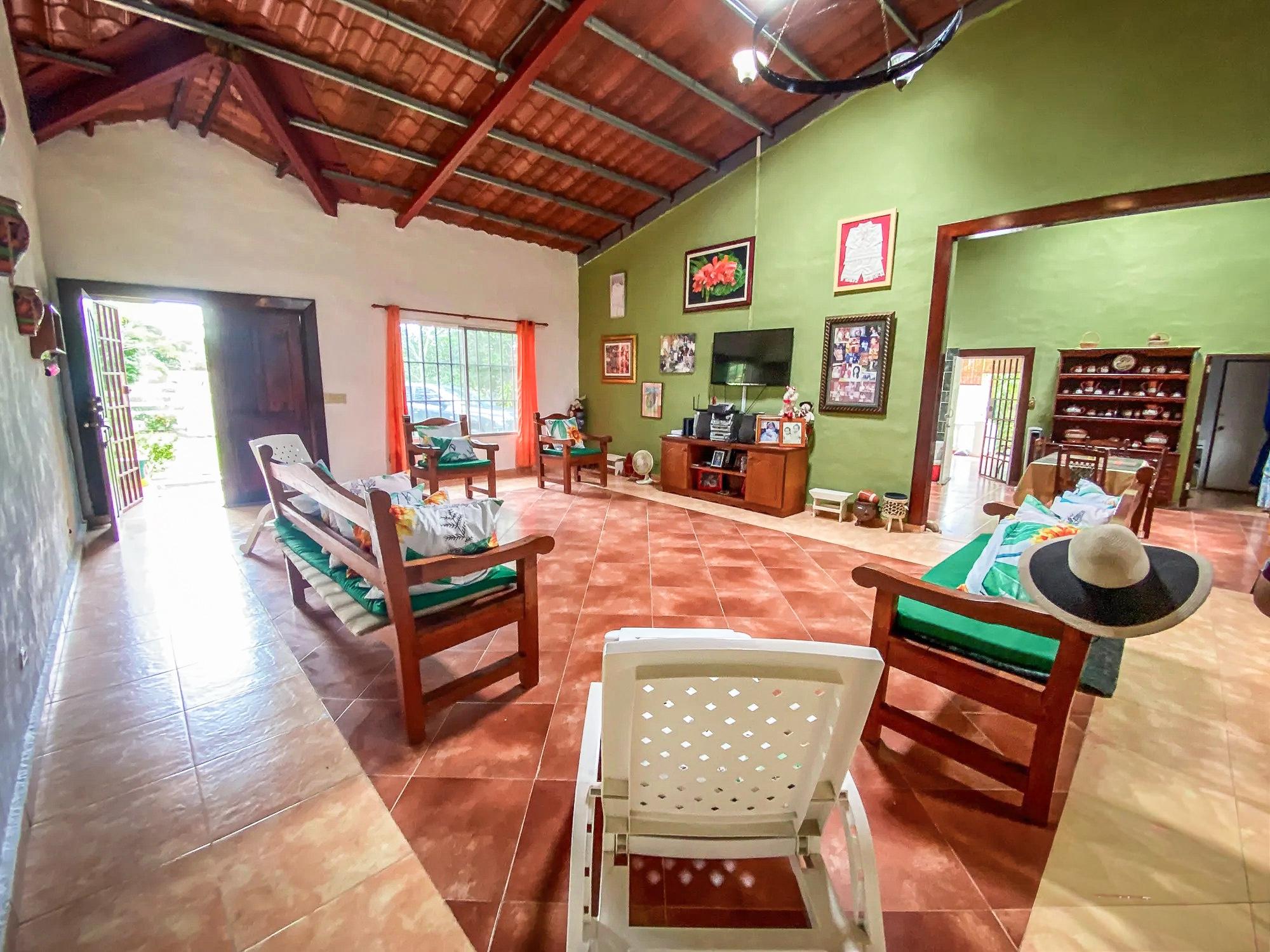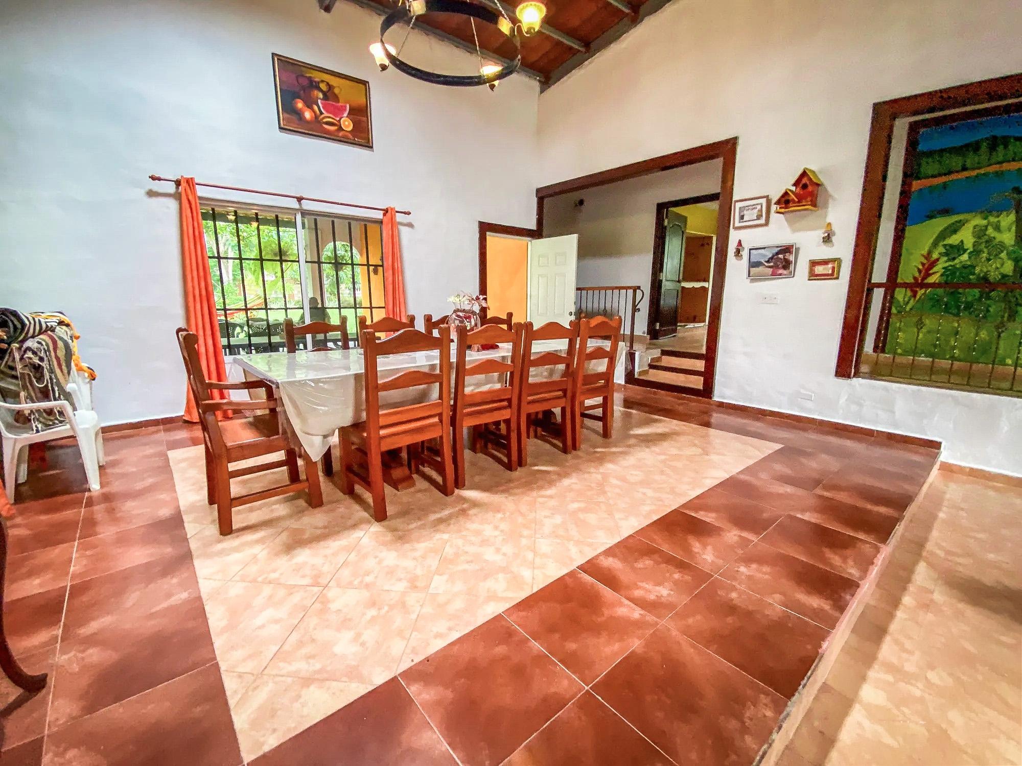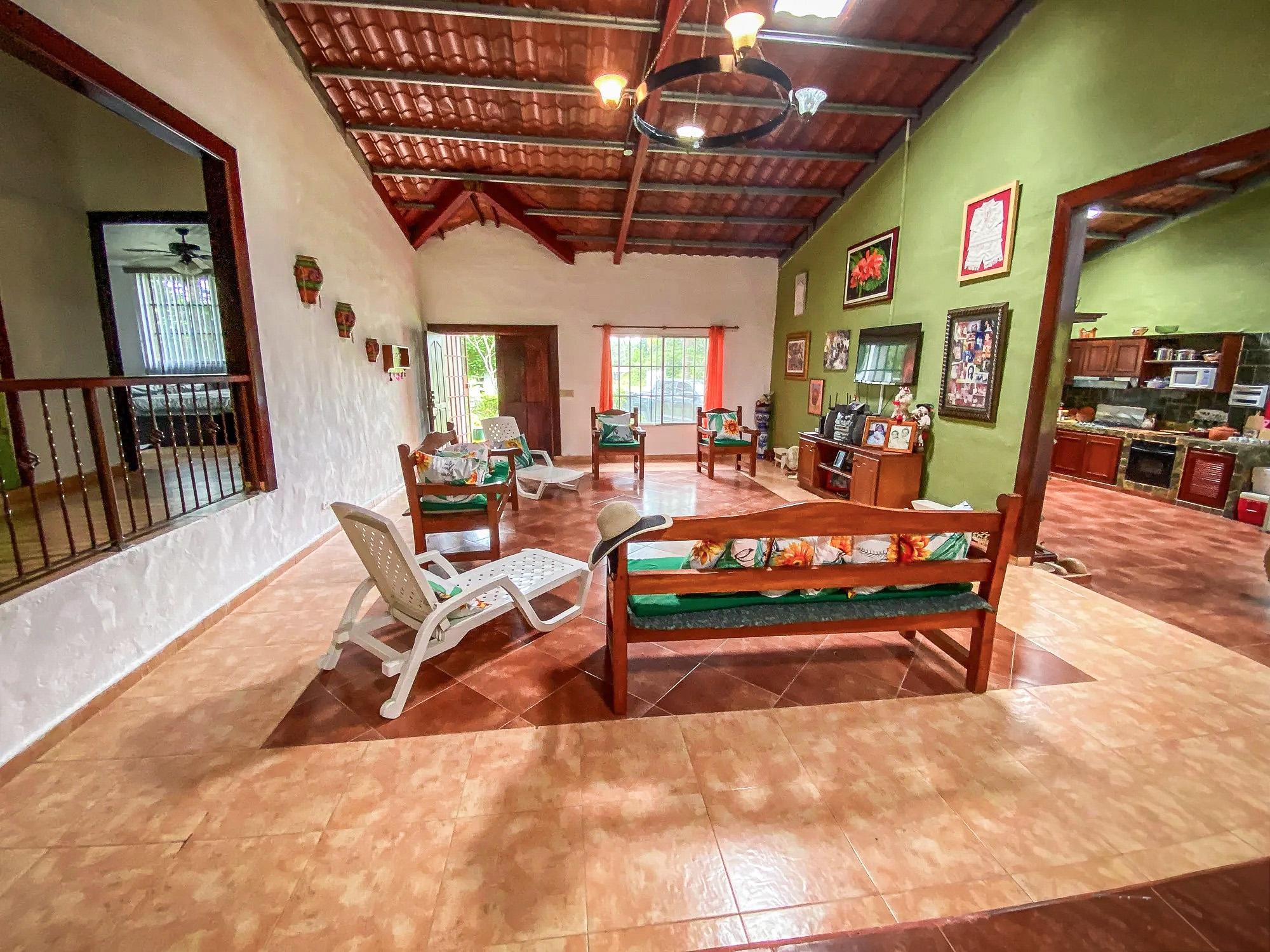 This property is located in Valle Santa Catalina, directly in front of the El Espino community center in San Carlos, Panama. It sits on a flat 1,647.76 m² lot with approximately 494 m² of construction, positioned along the neighborhood’s main street. Property Features The home offers four bedrooms and four bathrooms, along with two covered terraces and one balcony that create multiple outdoor living spaces. The property includes a private well, water reserve tank, filtration system, and an irrigation system for the gardens. The lot features fruit and ornamental trees, mountain views, and a river located about 500 meters away. Interior Spaces Inside, the home includes spacious living and dining areas and a large kitchen with custom wooden cabinetry. High ceilings and terracotta floors give the interior a traditional feel. The sale includes two dining sets and one living room set. Community and Fees The monthly maintenance fee is $15 and covers water, common area maintenance, and the neighborhood park. Location: El Espino de San Carlos El Espino is part of the San Carlos district along Panama’s Pacific coast. The area has quick access to the Pan-American Highway, connecting to nearby beaches and towns like Coronado, where supermarkets, banks, restaurants, and medical services are available. The location combines green surroundings with coastal proximity, suitable for residential use or weekend stays.