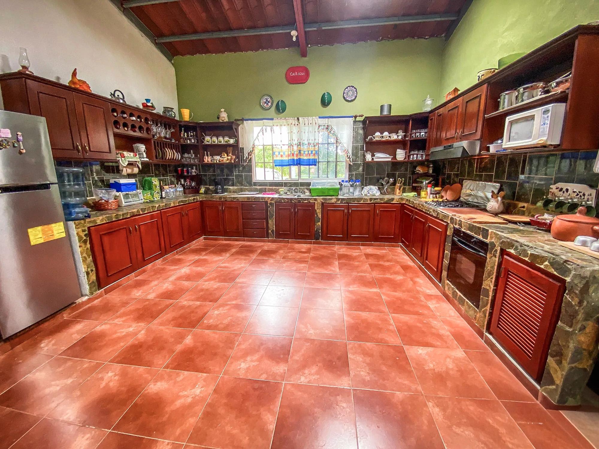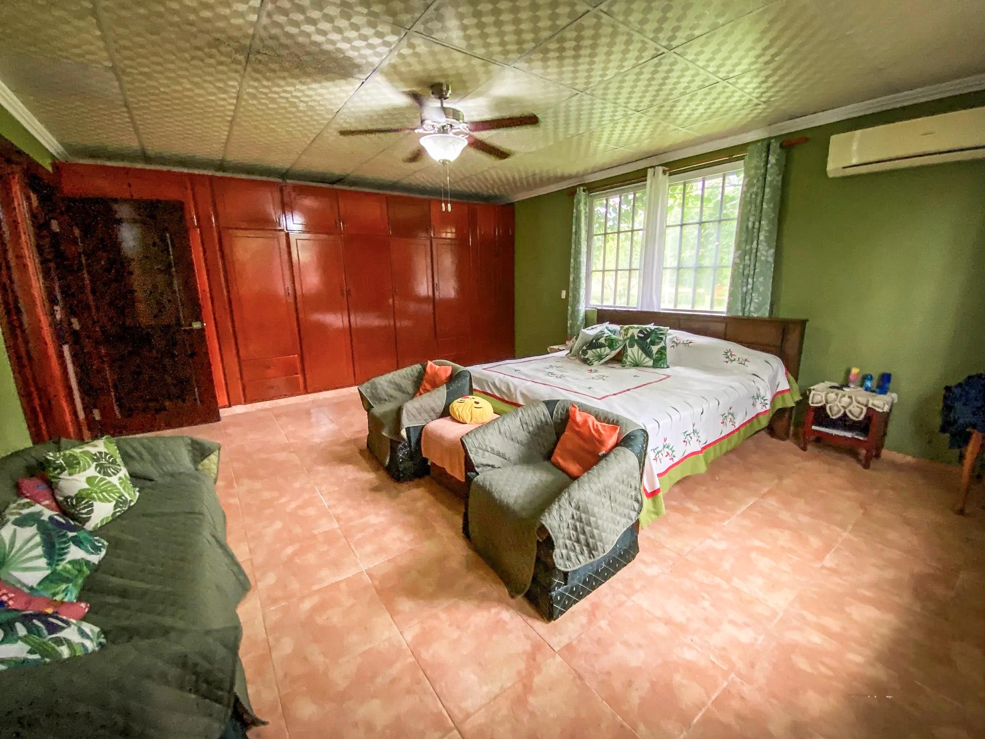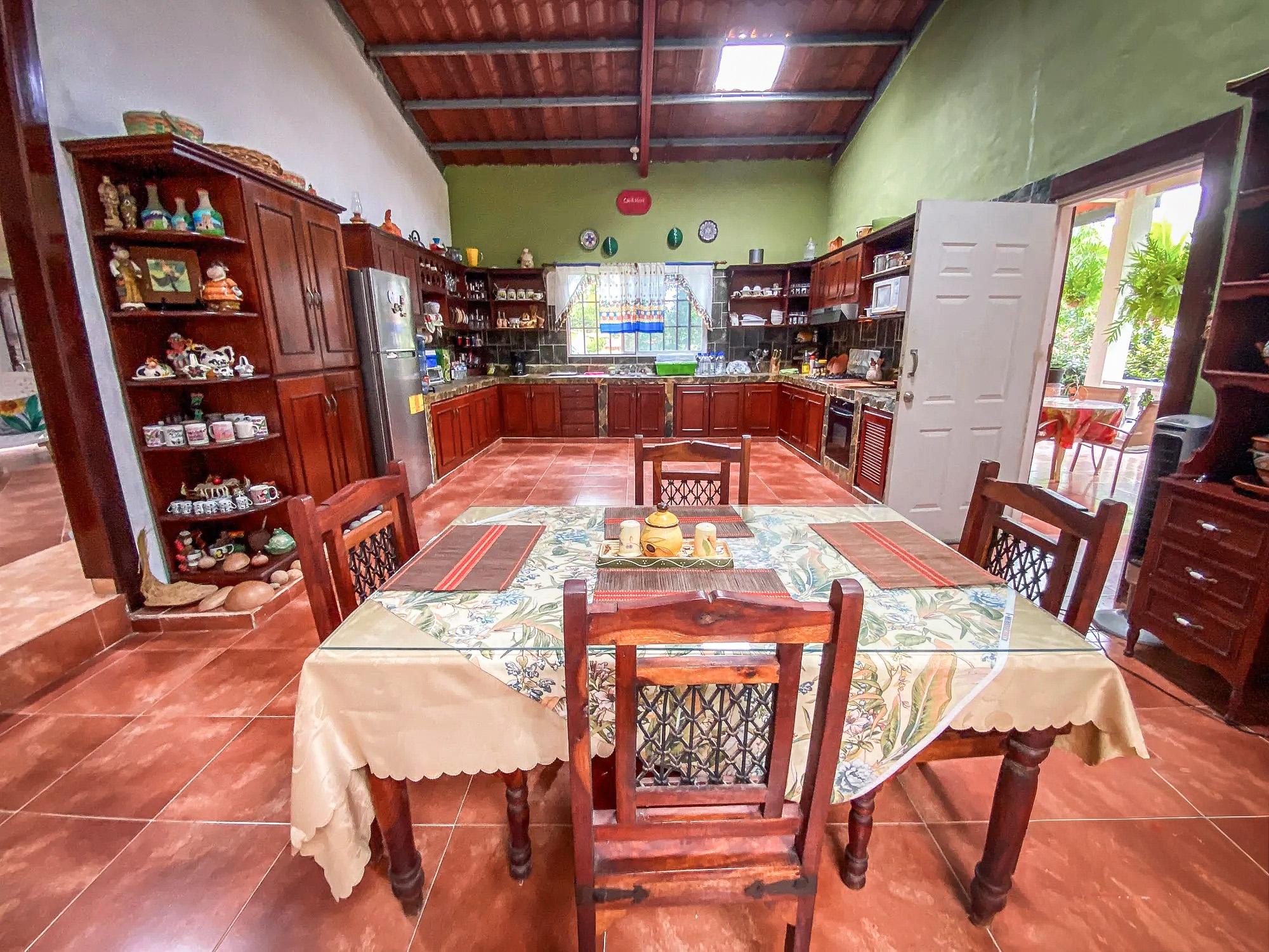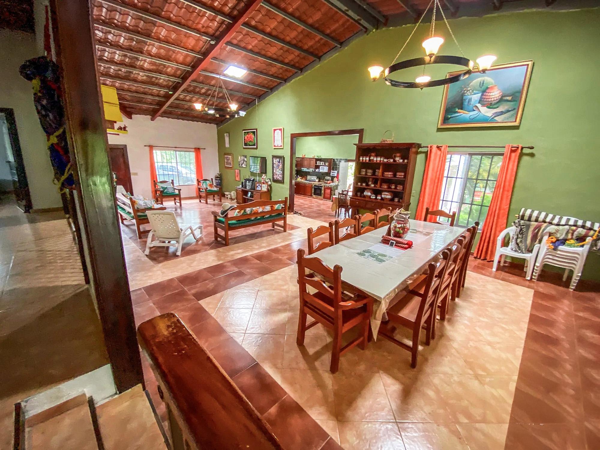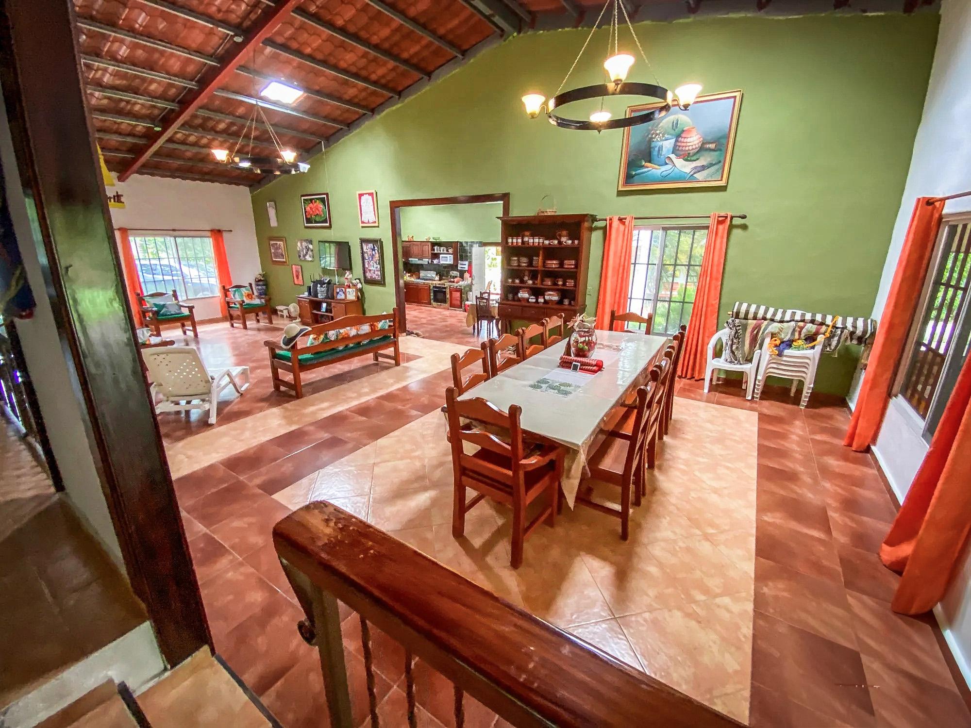 This property is located in Valle Santa Catalina, directly in front of the El Espino community center in San Carlos, Panama. It sits on a flat 1,647.76 m² lot with approximately 494 m² of construction, positioned along the neighborhood’s main street. Property Features The home offers four bedrooms and four bathrooms, along with two covered terraces and one balcony that create multiple outdoor living spaces. The property includes a private well, water reserve tank, filtration system, and an irrigation system for the gardens. The lot features fruit and ornamental trees, mountain views, and a river located about 500 meters away. Interior Spaces Inside, the home includes spacious living and dining areas and a large kitchen with custom wooden cabinetry. High ceilings and terracotta floors give the interior a traditional feel. The sale includes two dining sets and one living room set. Community and Fees The monthly maintenance fee is $15 and covers water, common area maintenance, and the neighborhood park. Location: El Espino de San Carlos El Espino is part of the San Carlos district along Panama’s Pacific coast. The area has quick access to the Pan-American Highway, connecting to nearby beaches and towns like Coronado, where supermarkets, banks, restaurants, and medical services are available. The location combines green surroundings with coastal proximity, suitable for residential use or weekend stays.