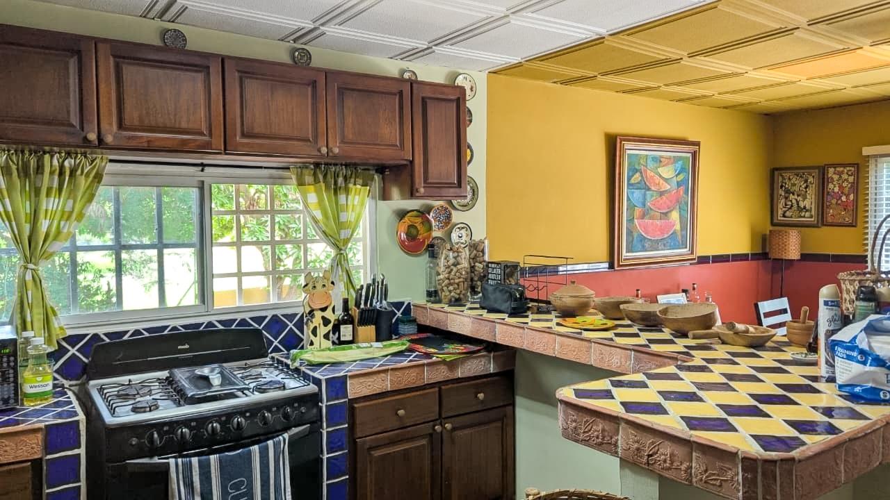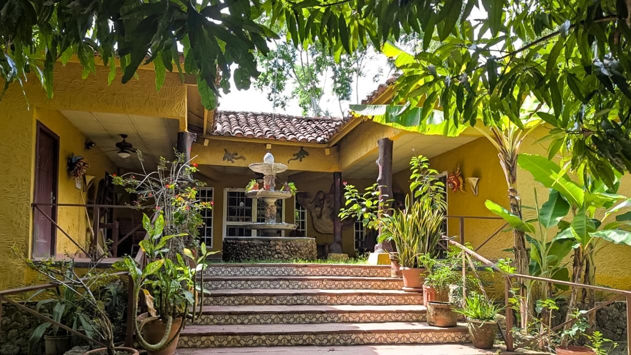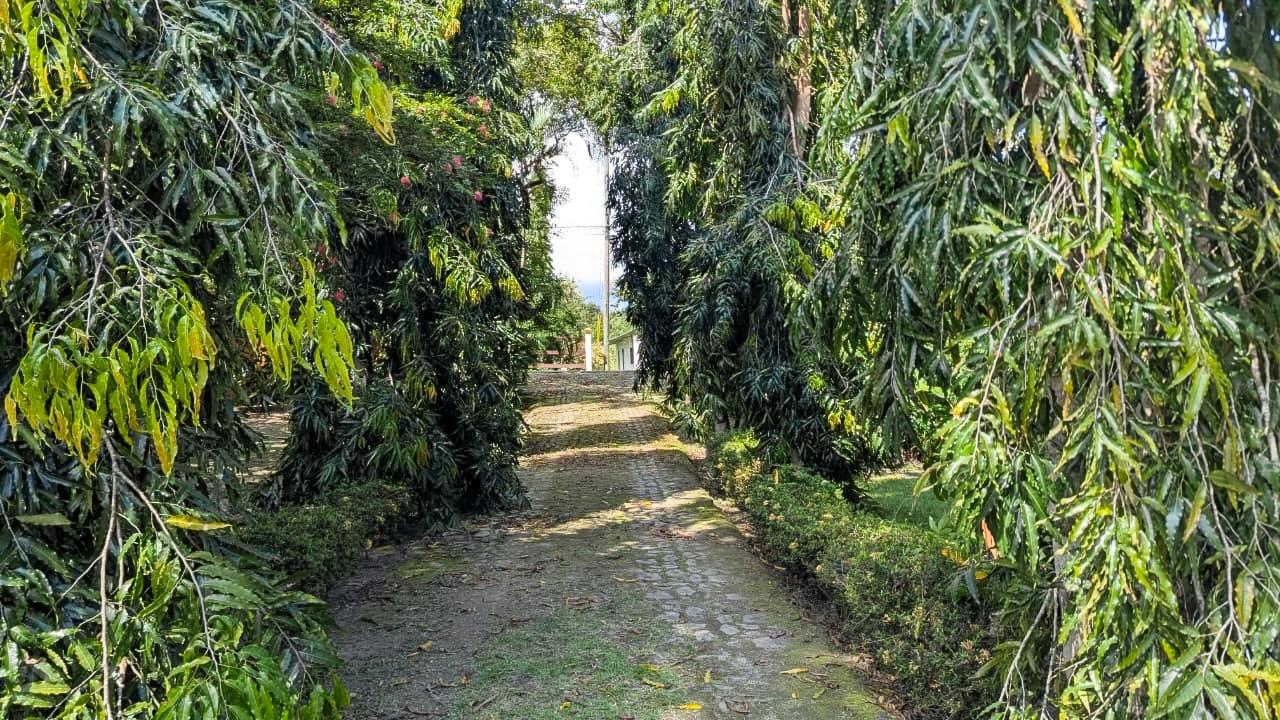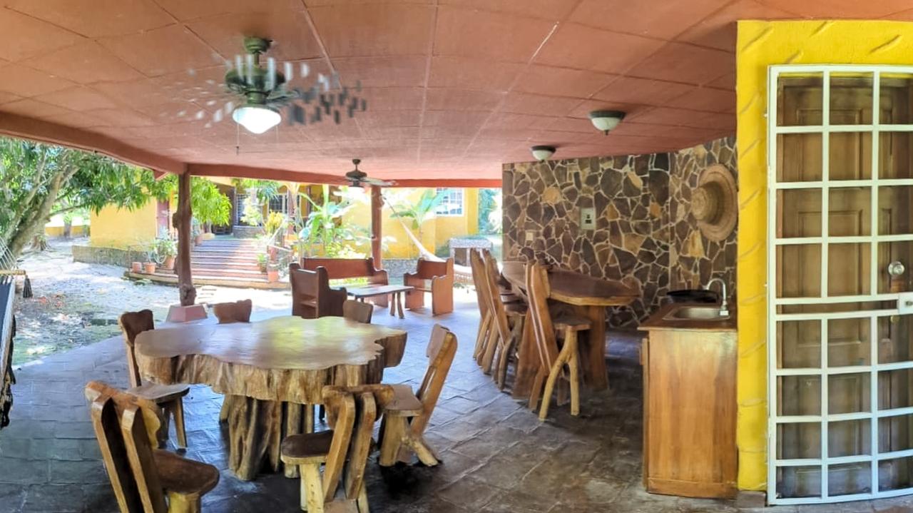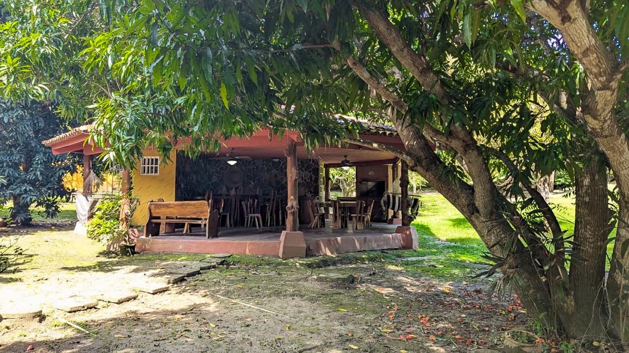 It’s a small farm with various fruit trees and a Mexican-style house, as well as a ranch with a bar and an Argentinian-style BBQ. The front of the property has a hacienda-style wall. The entire property is fenced.
