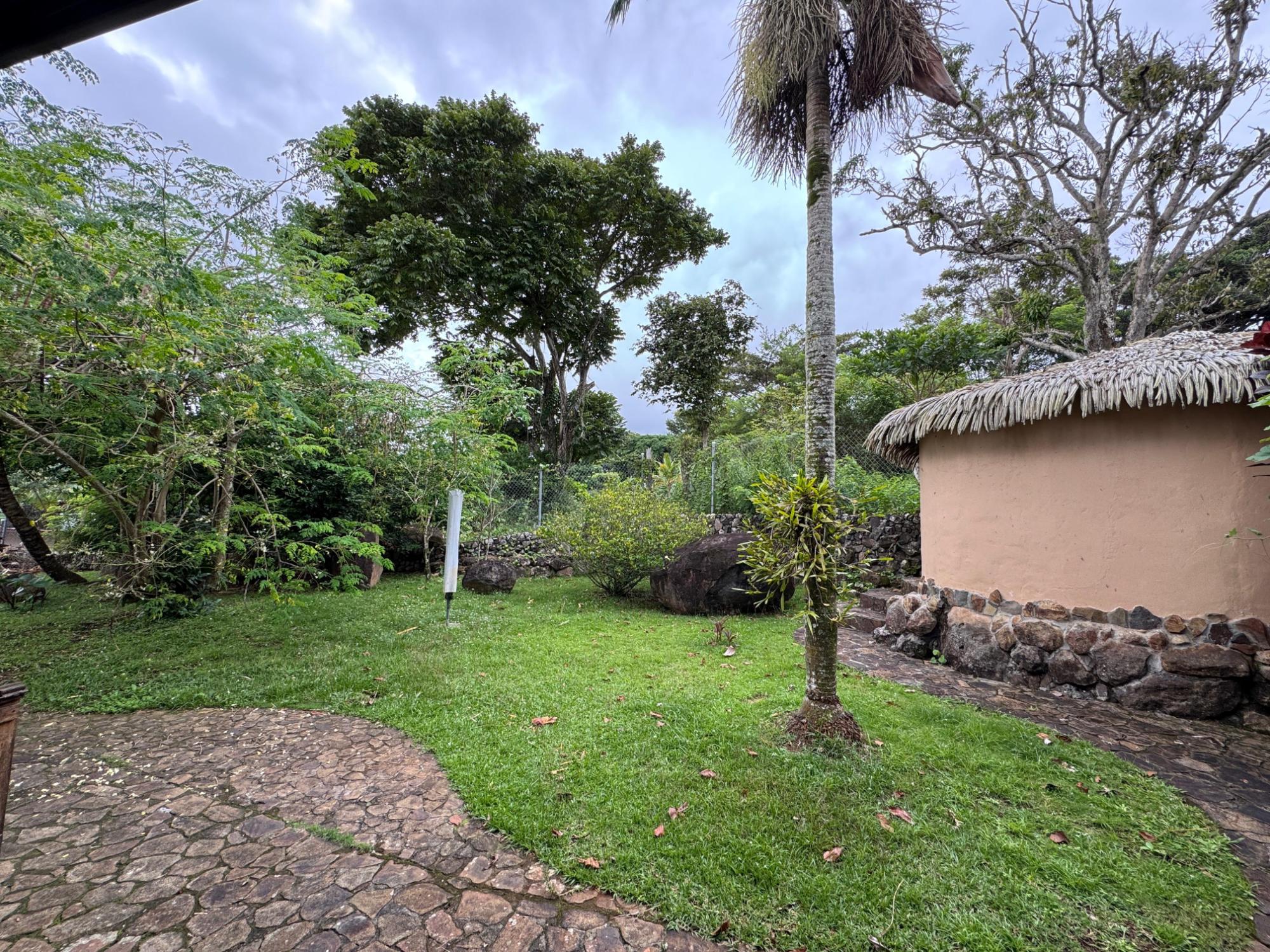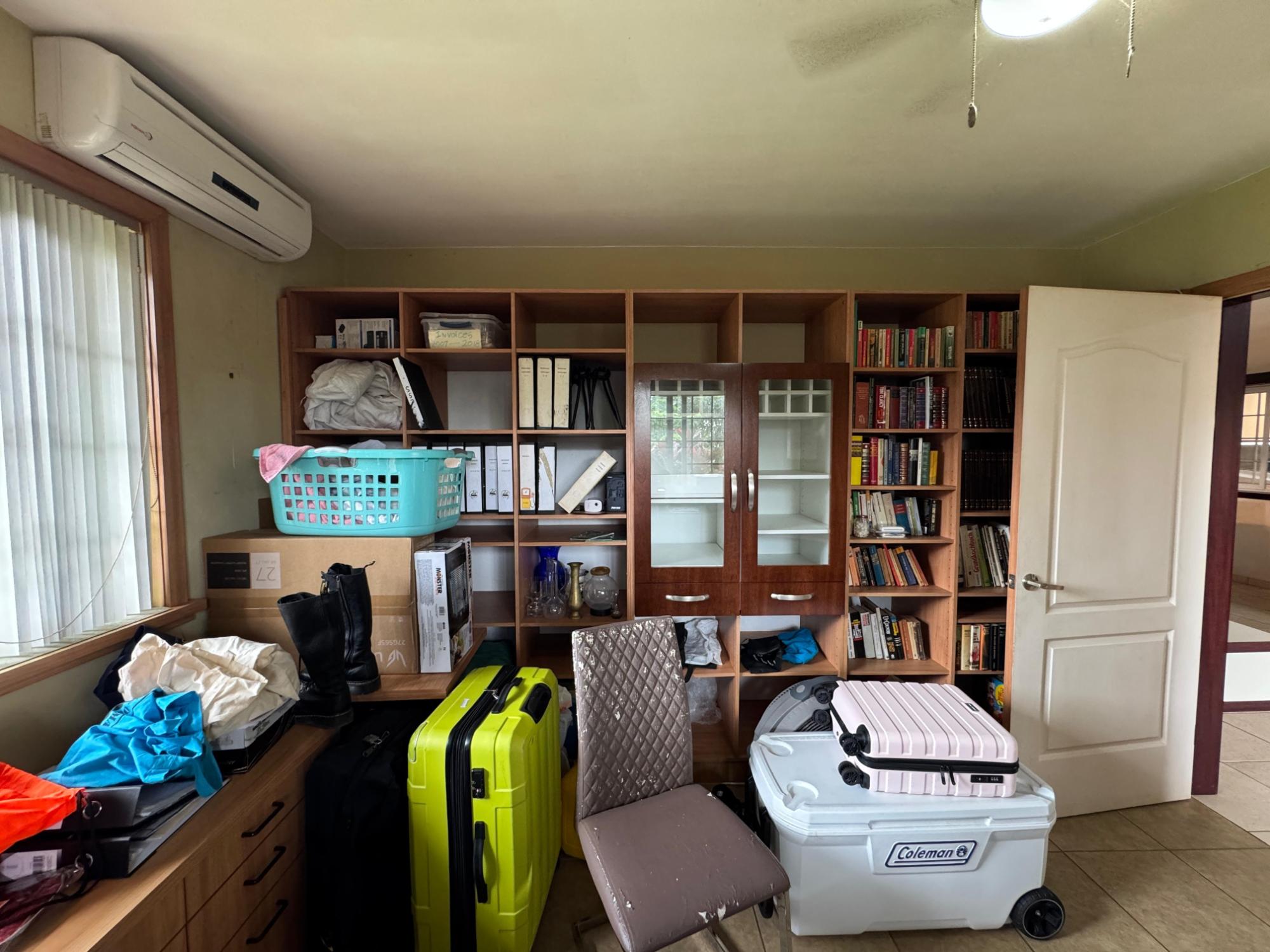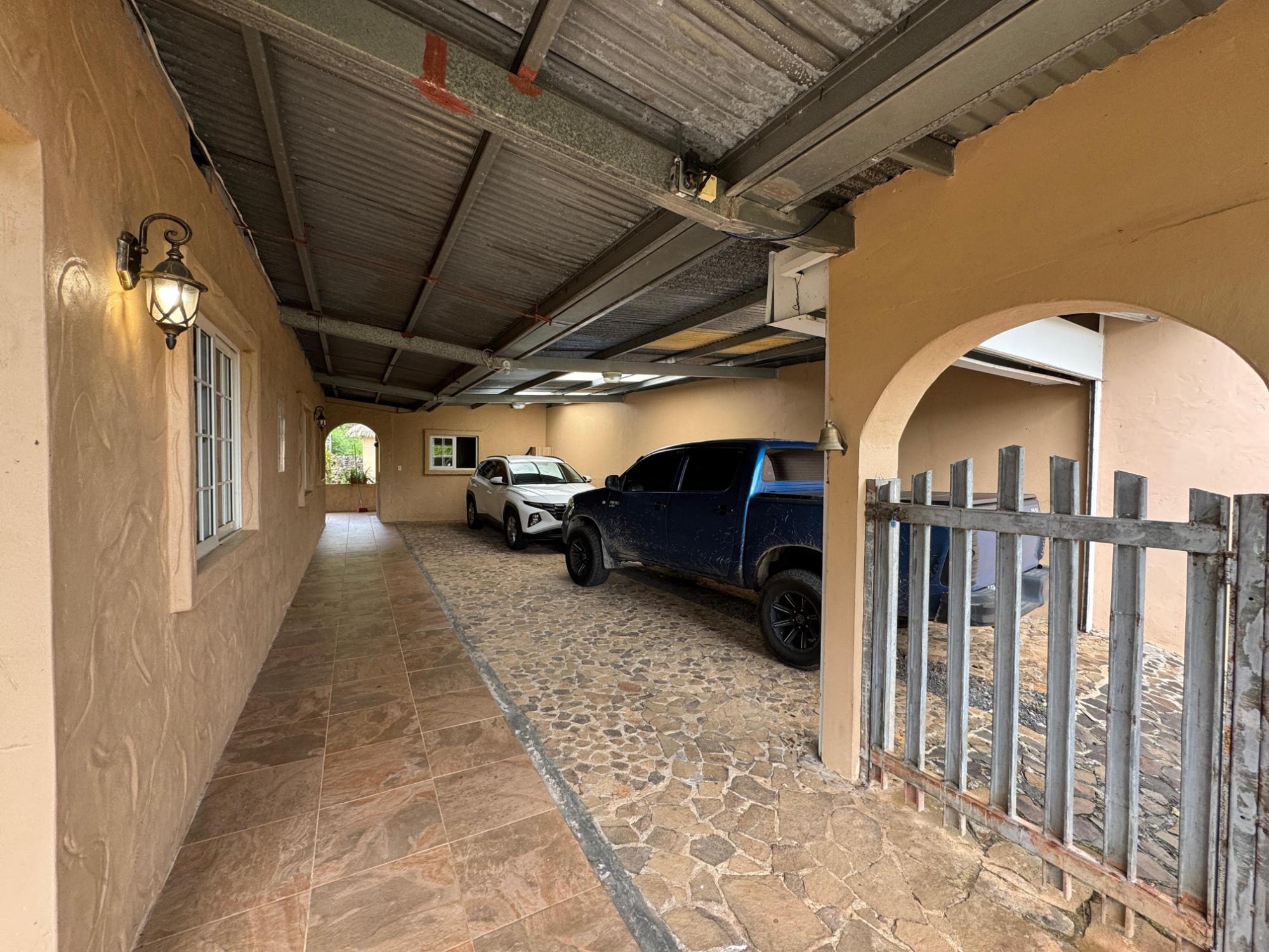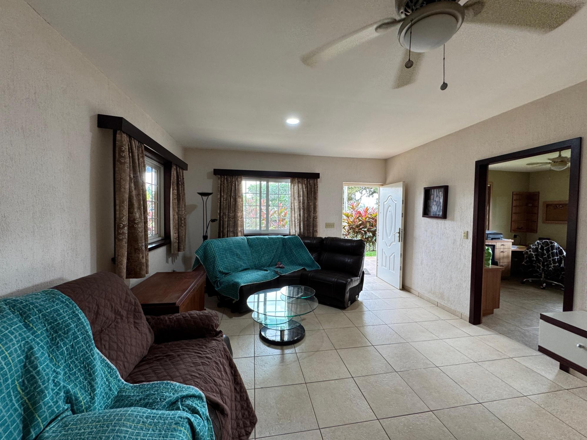 This house for sale in Sora, Chame, Panama sits about 150 meters from the Sora town park, 20 minutes from the Inter-American Highway, and 30 minutes from Coronado. The location provides quick access to supermarkets, restaurants, and medical services. The property enjoys a quiet residential atmosphere with mountain views and cooler temperatures common in this part of Panama. Property Overview The property covers 612.22 square meters of land with 307.71 square meters of construction. The layout includes the main house, a guest room, terrace, laundry area, two-car carport, and a pump room. The flat terrain allows easy access and low maintenance. The garden includes lemon and banana trees, creating a practical and pleasant outdoor space. Main House The main structure includes a living and dining room, kitchen, one bedroom, an office, and one full bathroom. The kitchen features granite countertops, a double stainless-steel sink, and modular cabinetry. PVC sliding windows bring in natural light and ventilation. Tiled floors run throughout the home, and gypsum ceilings give a clean and consistent finish. The living area connects easily to the dining and kitchen spaces, designed for comfortable everyday use. The office includes built-in furniture and large windows that open to mountain views, making it suitable for remote work or a personal project space. Guest Quarters and Additional Areas The guest room stands separate from the main house and includes a shower area with full-height wall tiles. It maintains the same solid construction quality, with PVC windows, tiled floors, and decorative wall finishes.