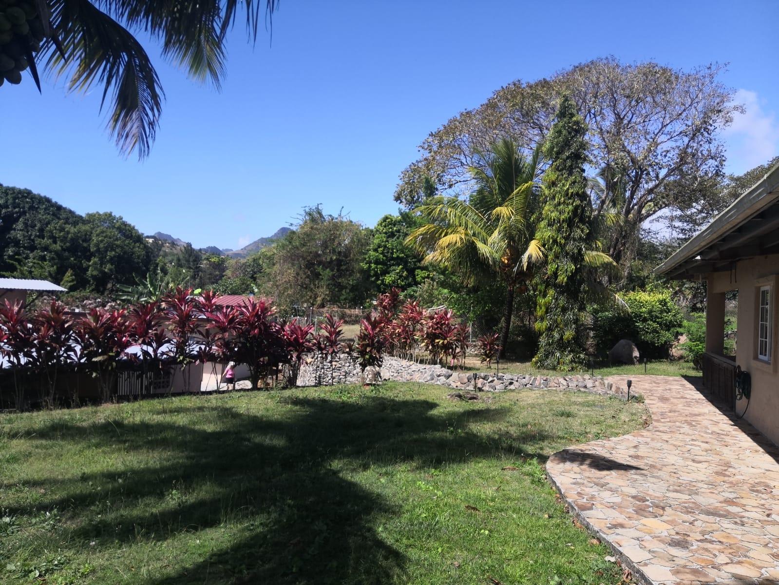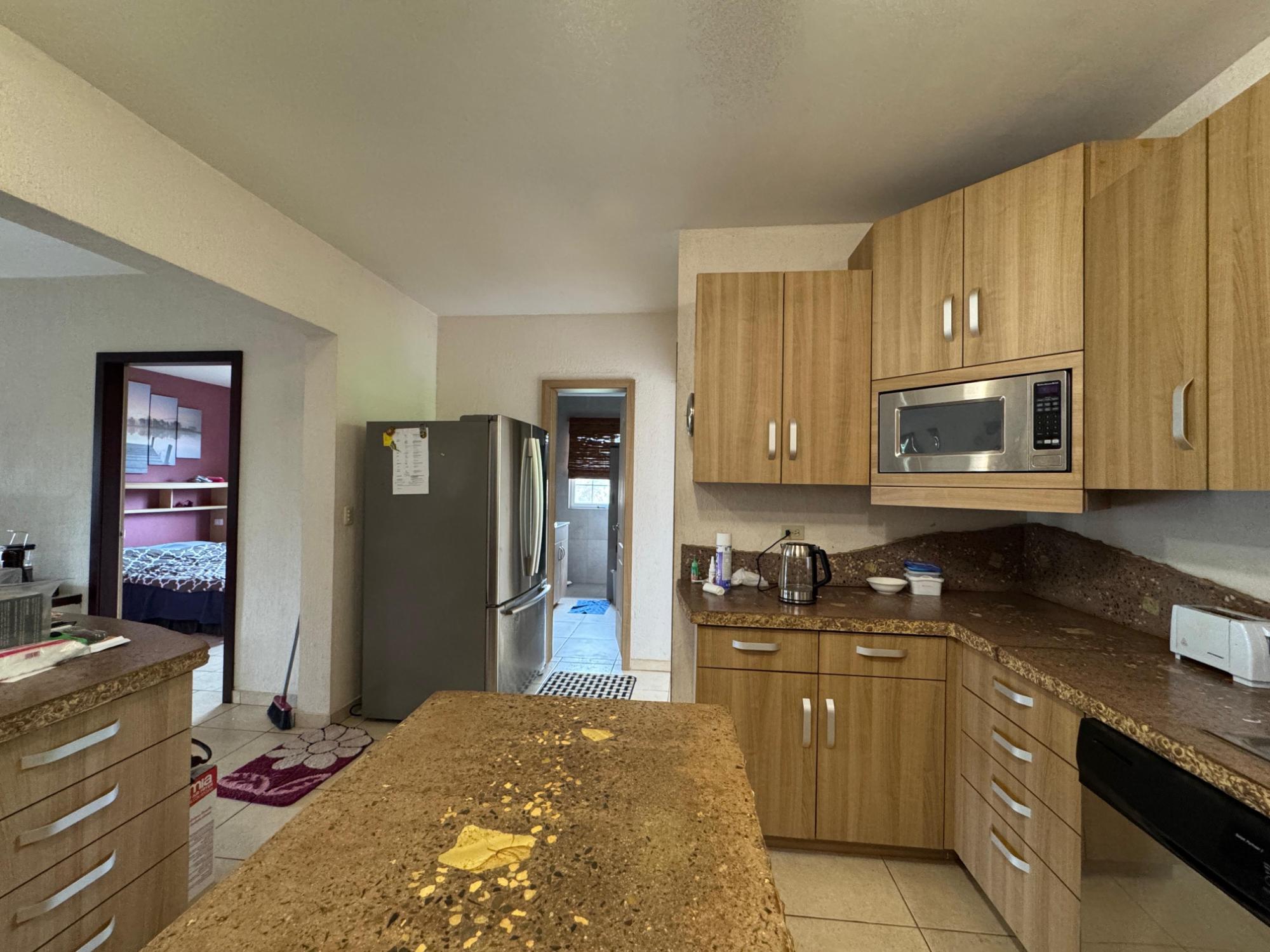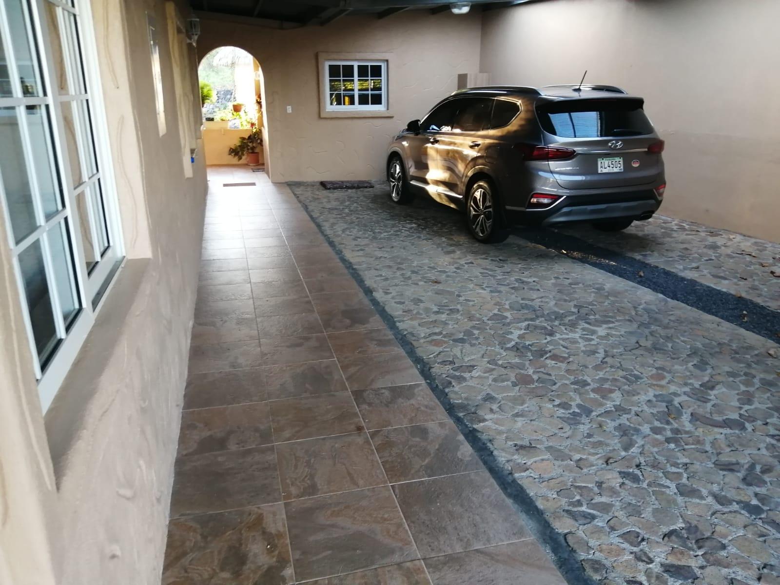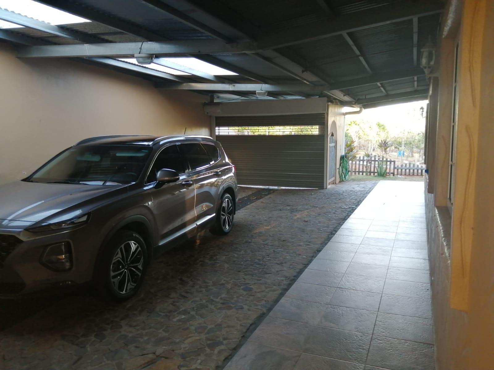 This house for sale in Sora, Chame, Panama sits about 150 meters from the Sora town park, 20 minutes from the Inter-American Highway, and 30 minutes from Coronado. The location provides quick access to supermarkets, restaurants, and medical services. The property enjoys a quiet residential atmosphere with mountain views and cooler temperatures common in this part of Panama. Property Overview The property covers 612.22 square meters of land with 307.71 square meters of construction. The layout includes the main house, a guest room, terrace, laundry area, two-car carport, and a pump room. The flat terrain allows easy access and low maintenance. The garden includes lemon and banana trees, creating a practical and pleasant outdoor space. Main House The main structure includes a living and dining room, kitchen, one bedroom, an office, and one full bathroom. The kitchen features granite countertops, a double stainless-steel sink, and modular cabinetry. PVC sliding windows bring in natural light and ventilation. Tiled floors run throughout the home, and gypsum ceilings give a clean and consistent finish. The living area connects easily to the dining and kitchen spaces, designed for comfortable everyday use. The office includes built-in furniture and large windows that open to mountain views, making it suitable for remote work or a personal project space. Guest Quarters and Additional Areas The guest room stands separate from the main house and includes a shower area with full-height wall tiles. It maintains the same solid construction quality, with PVC windows, tiled floors, and decorative wall finishes.