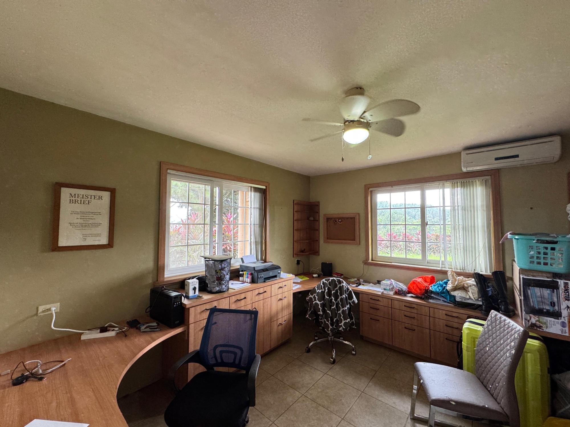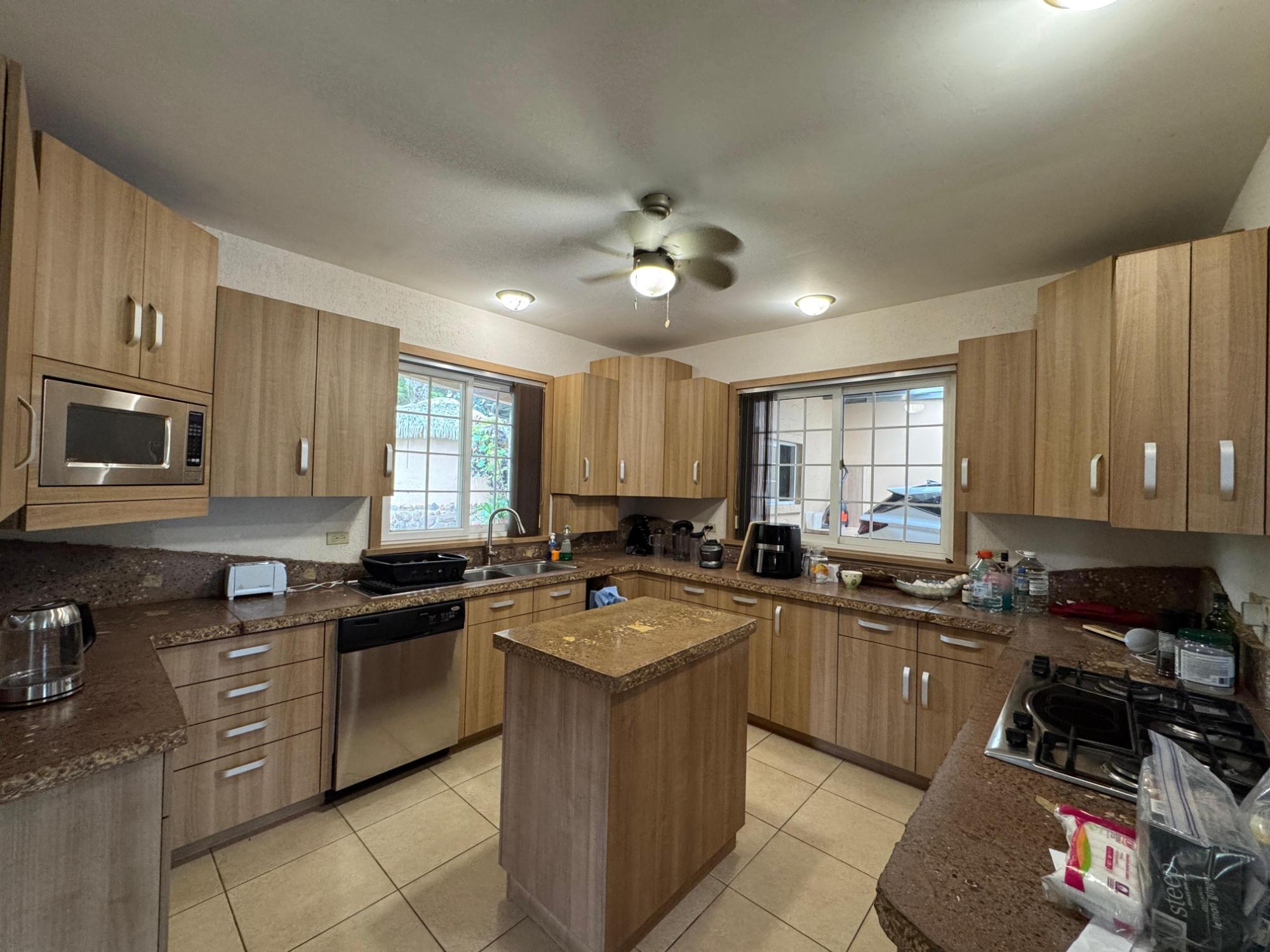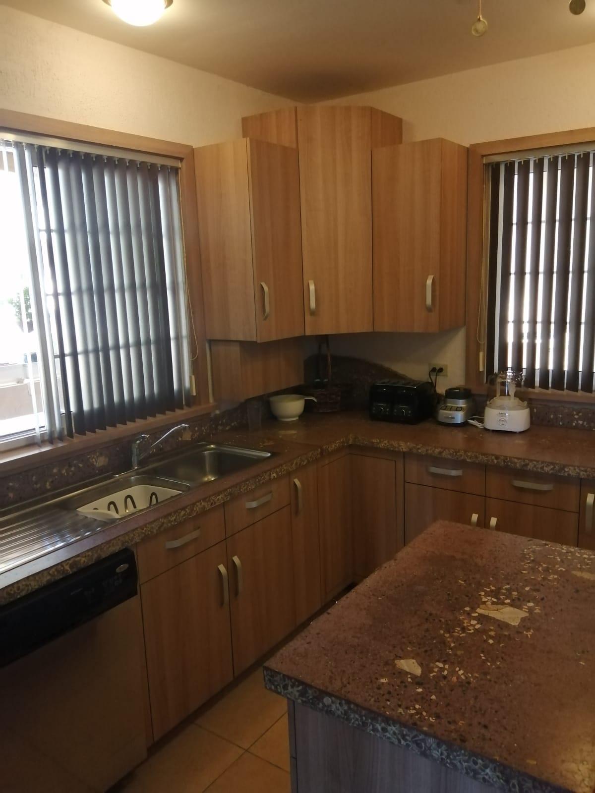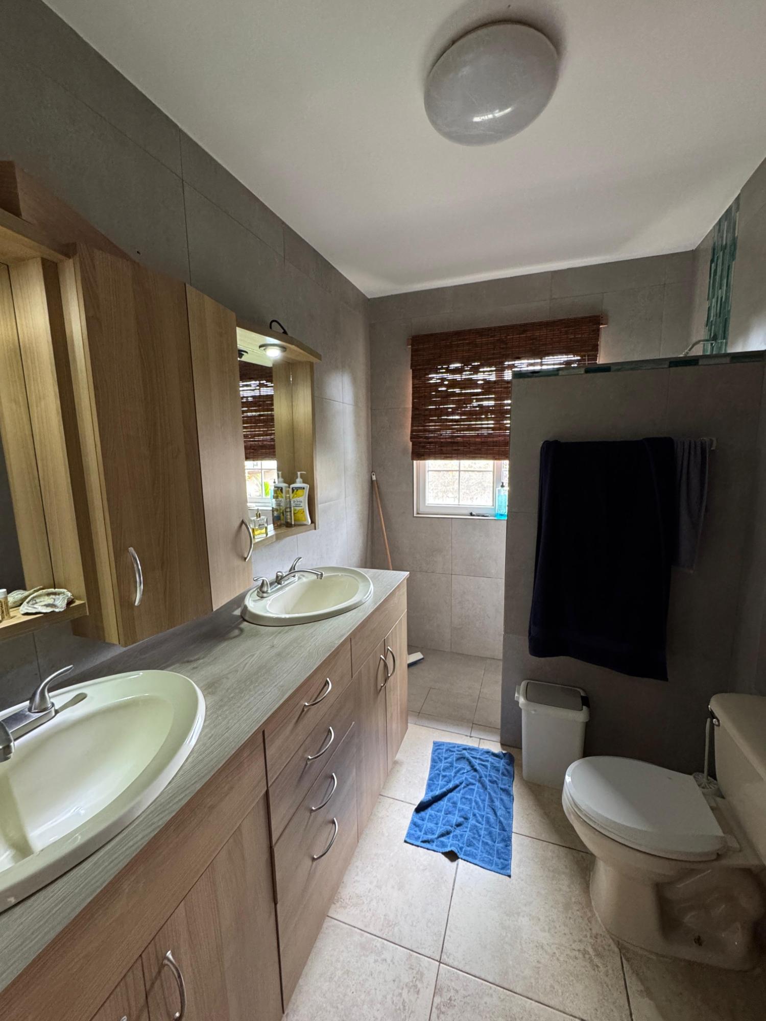 This house for sale in Sora, Chame, Panama sits about 150 meters from the Sora town park, 20 minutes from the Inter-American Highway, and 30 minutes from Coronado. The location provides quick access to supermarkets, restaurants, and medical services. The property enjoys a quiet residential atmosphere with mountain views and cooler temperatures common in this part of Panama. Property Overview The property covers 612.22 square meters of land with 307.71 square meters of construction. The layout includes the main house, a guest room, terrace, laundry area, two-car carport, and a pump room. The flat terrain allows easy access and low maintenance. The garden includes lemon and banana trees, creating a practical and pleasant outdoor space. Main House The main structure includes a living and dining room, kitchen, one bedroom, an office, and one full bathroom. The kitchen features granite countertops, a double stainless-steel sink, and modular cabinetry. PVC sliding windows bring in natural light and ventilation. Tiled floors run throughout the home, and gypsum ceilings give a clean and consistent finish. The living area connects easily to the dining and kitchen spaces, designed for comfortable everyday use. The office includes built-in furniture and large windows that open to mountain views, making it suitable for remote work or a personal project space. Guest Quarters and Additional Areas The guest room stands separate from the main house and includes a shower area with full-height wall tiles. It maintains the same solid construction quality, with PVC windows, tiled floors, and decorative wall finishes.