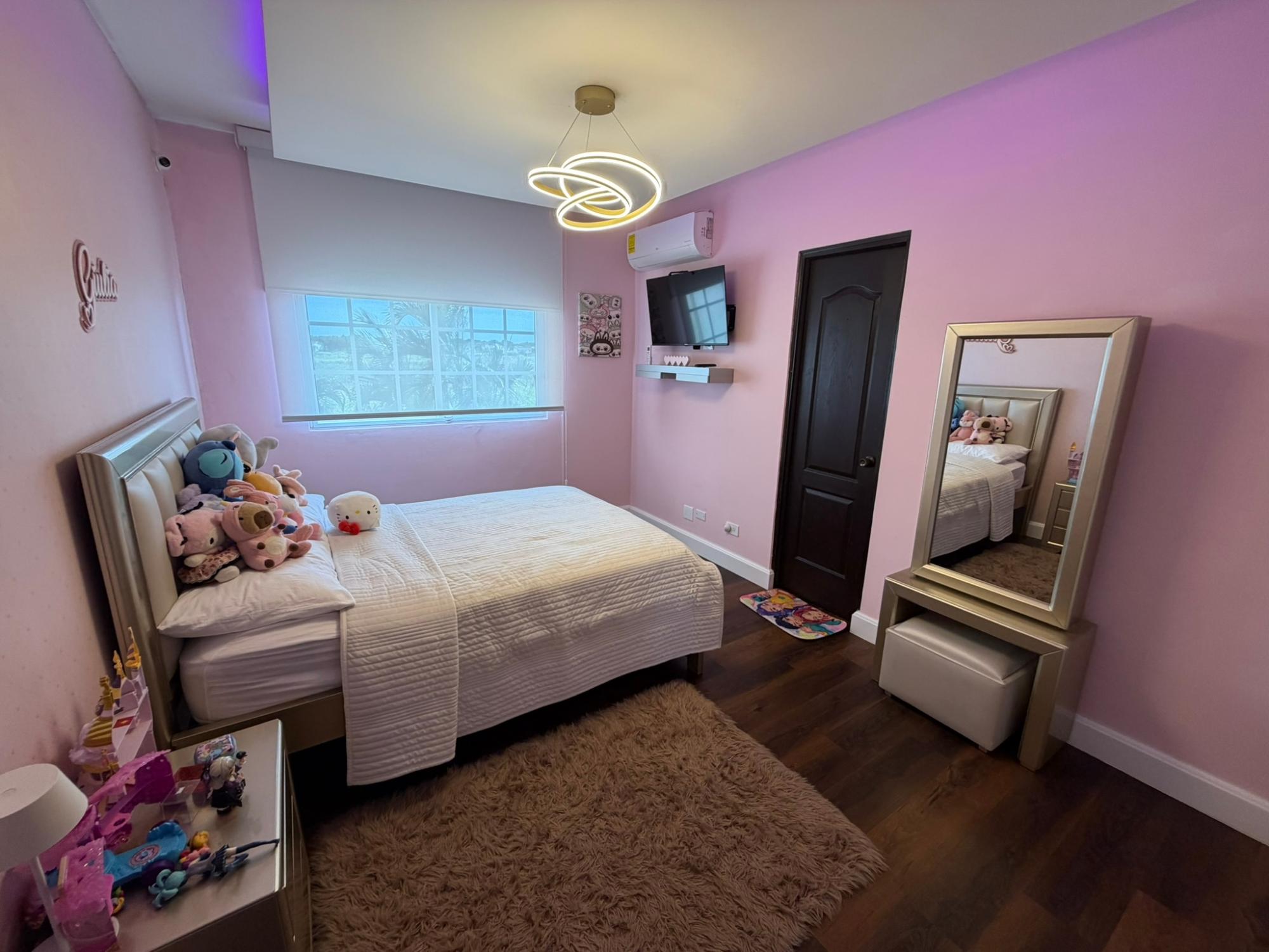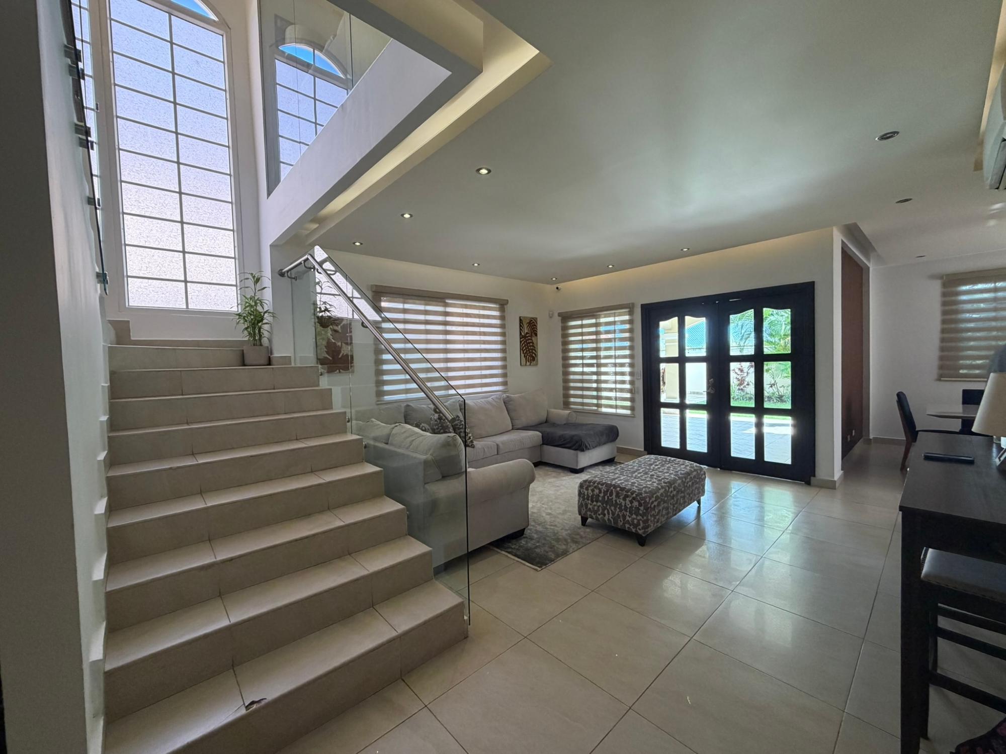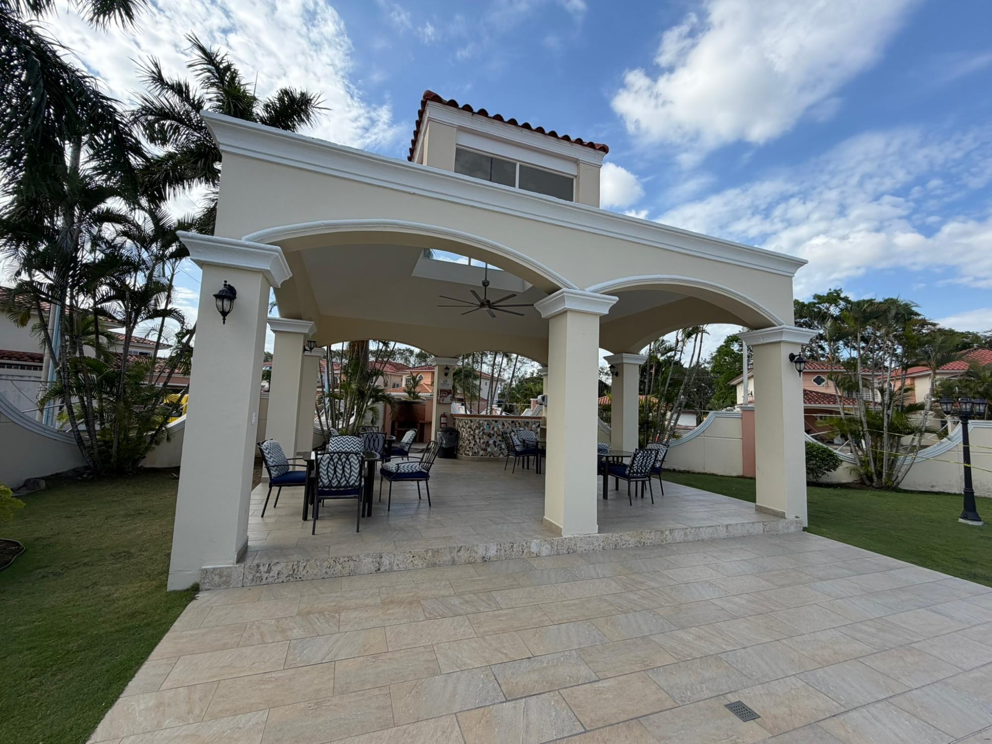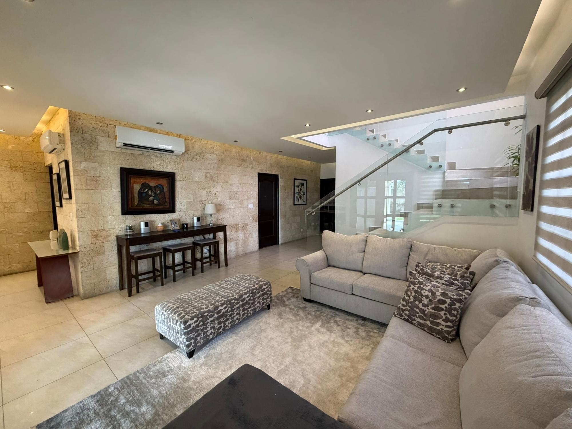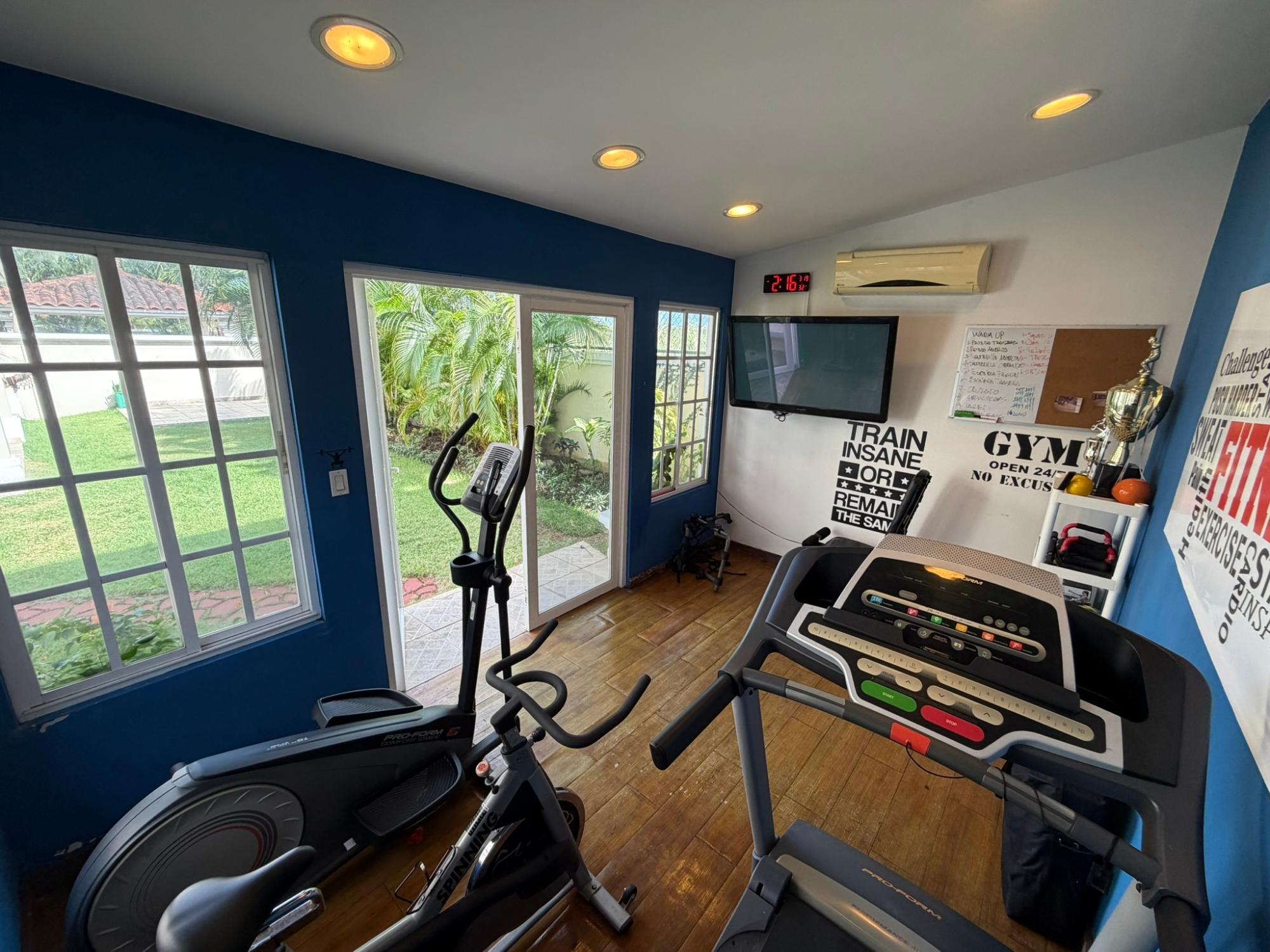 468.72 m² of land, 401.17 m² of construction, 2 parking spaces, 4 bedrooms, 4.5 bathrooms, maid’s quarters with bathroom, laundry area, den, TV room, breakfast nook, water tank room, attached house in the garden currently housing a private gym, BBQ area, and interior garden. Amenities include a social area with a pool, gym, BBQ, and 24/7 security. Maintenance fee: $200 (covers security, maintenance of common areas, gardening, and pest control). Located 5 minutes from the South Corridor, 10 minutes from the city’s financial center, and 10 minutes from Tocumen International Airport. Also within 5 minutes of shopping centers, pharmacies, schools, supermarkets, and much more.