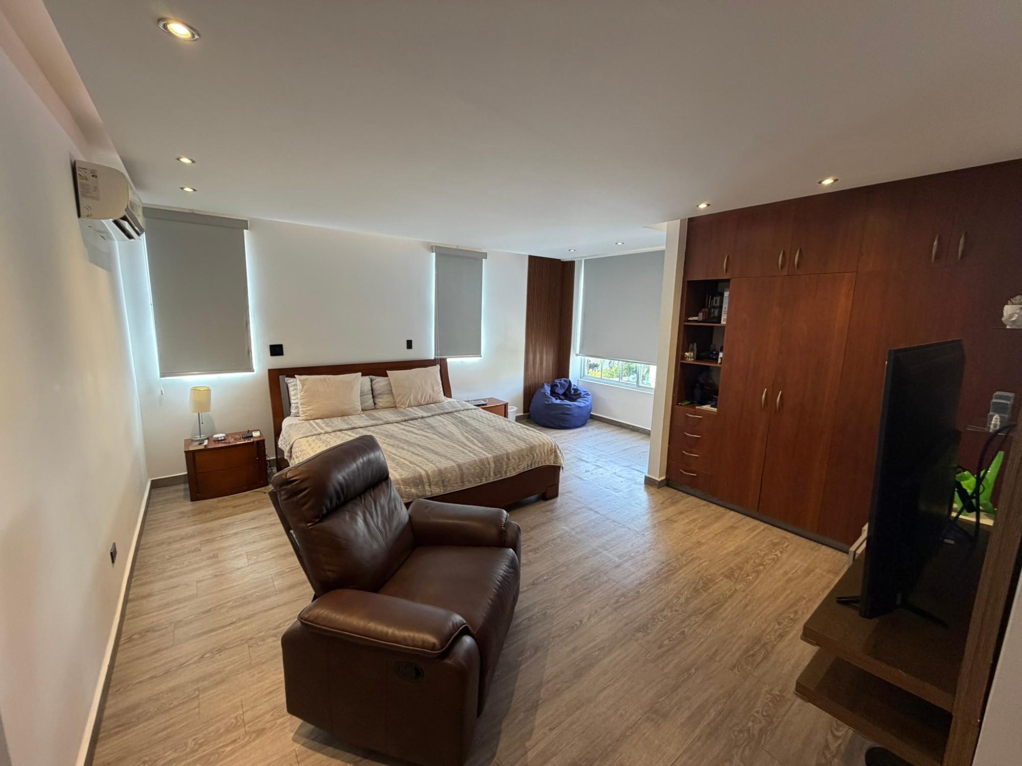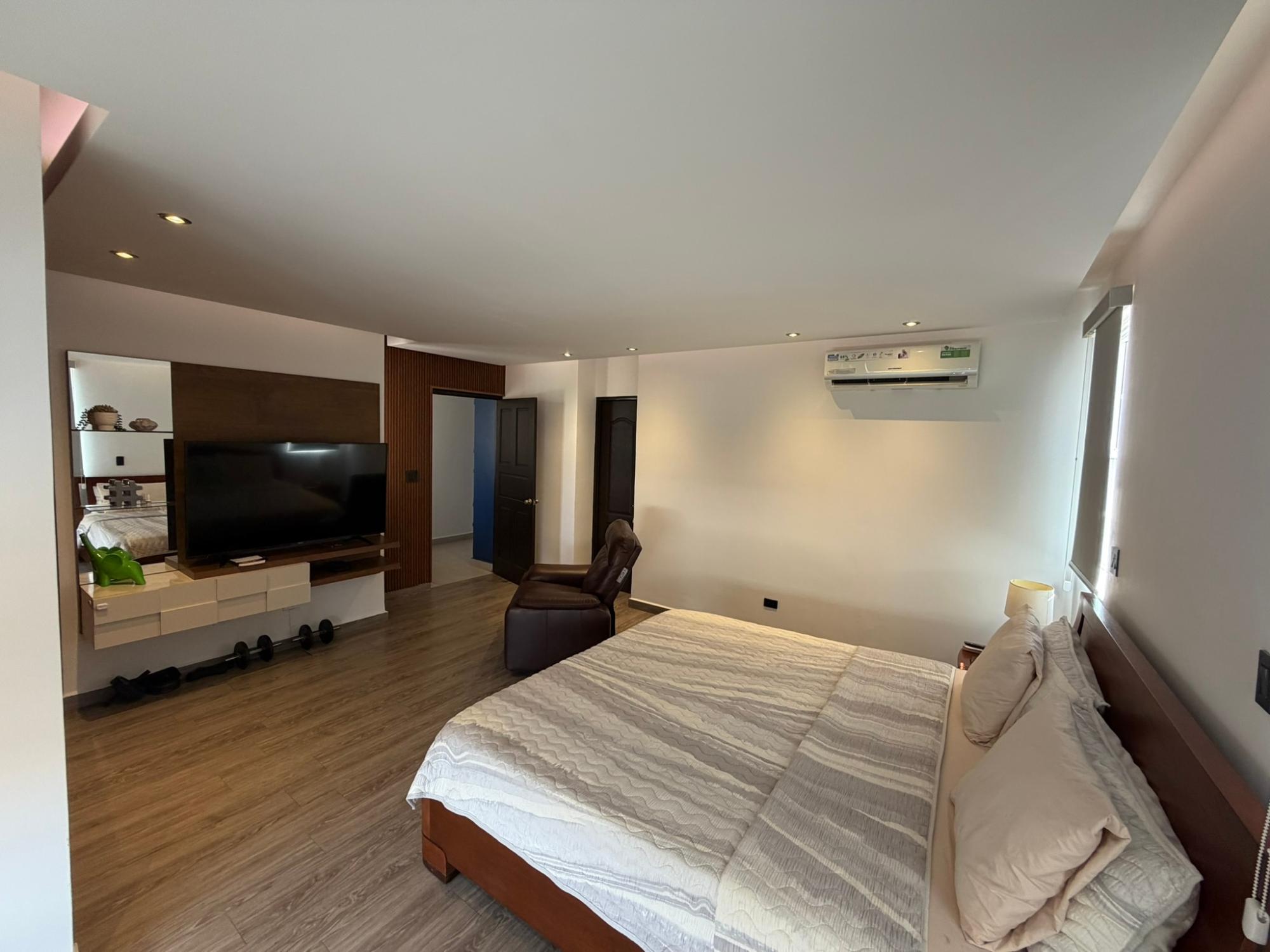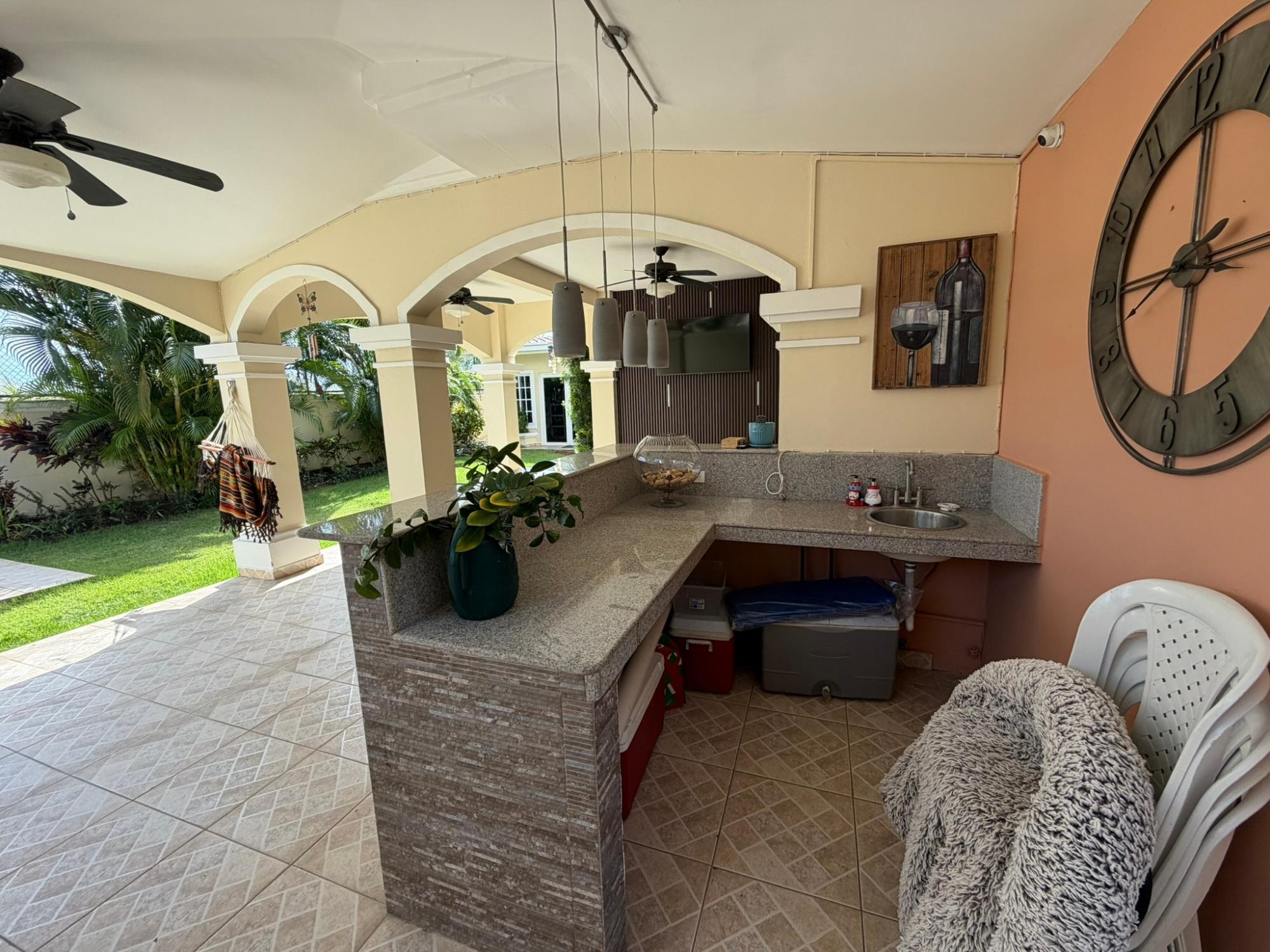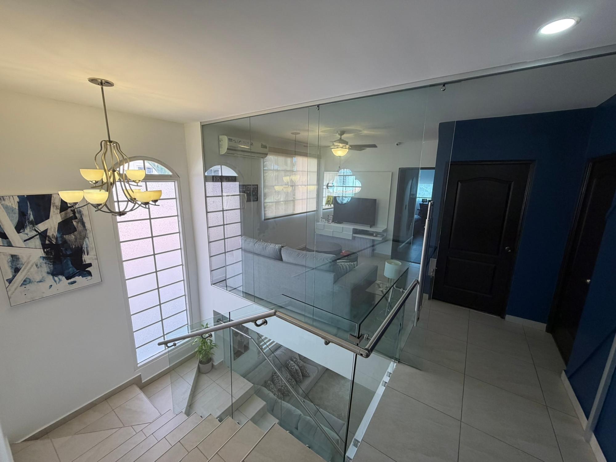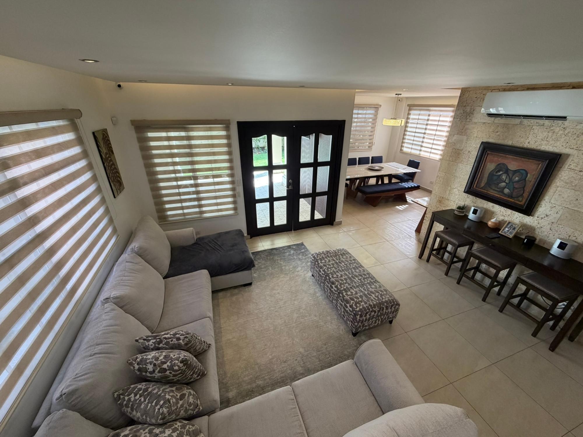 468.72 m² of land, 401.17 m² of construction, 2 parking spaces, 4 bedrooms, 4.5 bathrooms, maid’s quarters with bathroom, laundry area, den, TV room, breakfast nook, water tank room, attached house in the garden currently housing a private gym, BBQ area, and interior garden. Amenities include a social area with a pool, gym, BBQ, and 24/7 security. Maintenance fee: $200 (covers security, maintenance of common areas, gardening, and pest control). Located 5 minutes from the South Corridor, 10 minutes from the city’s financial center, and 10 minutes from Tocumen International Airport. Also within 5 minutes of shopping centers, pharmacies, schools, supermarkets, and much more.