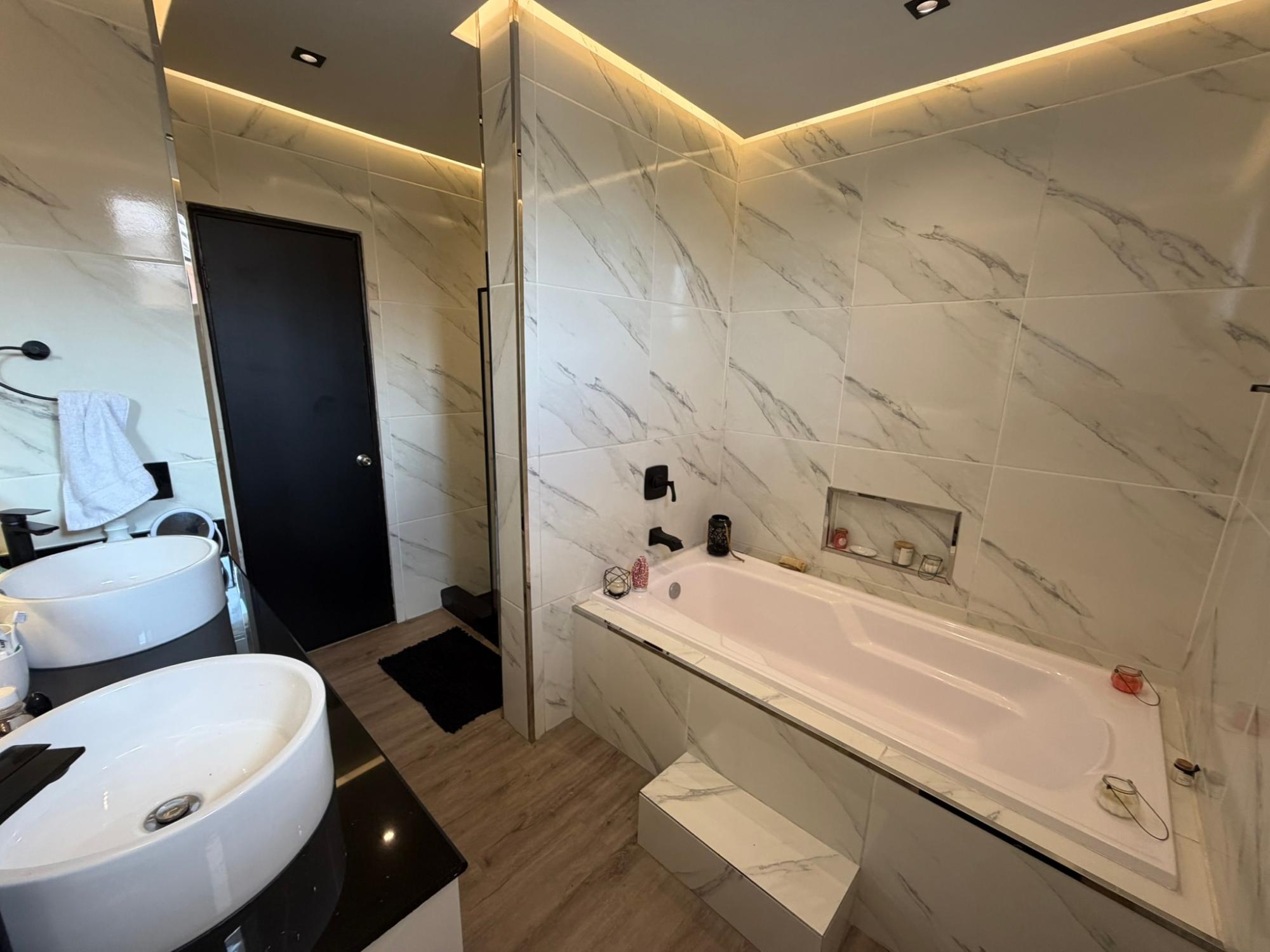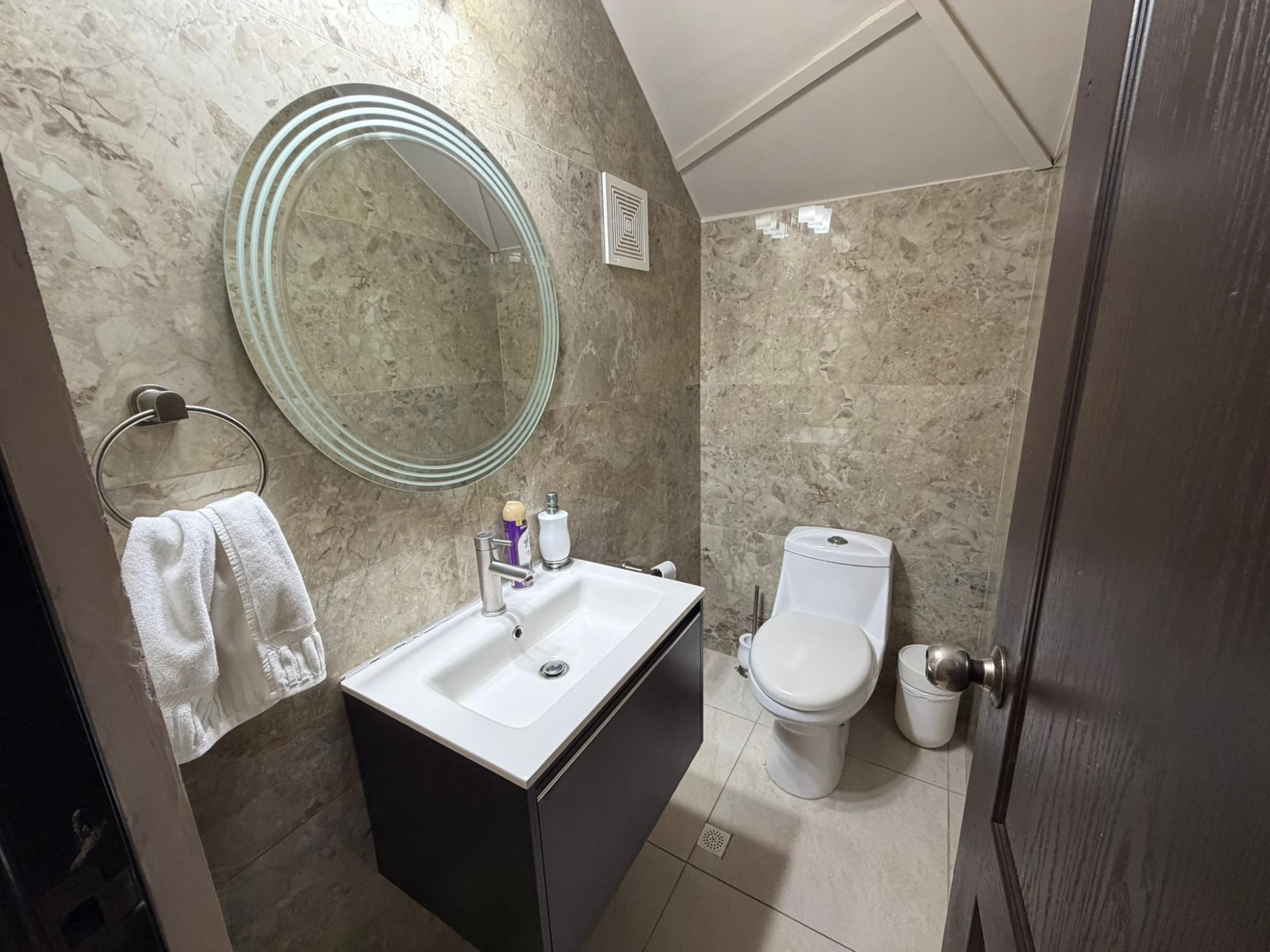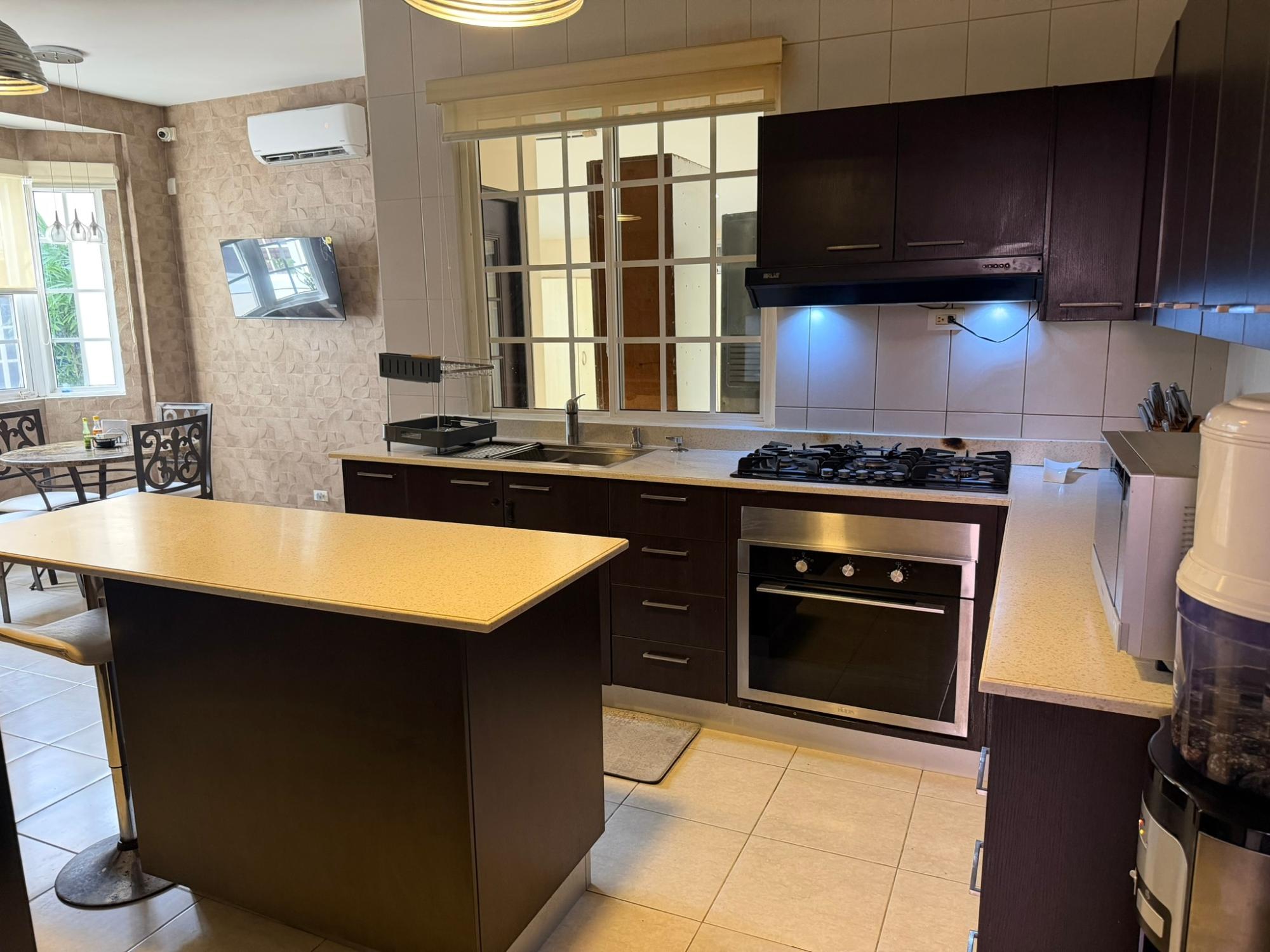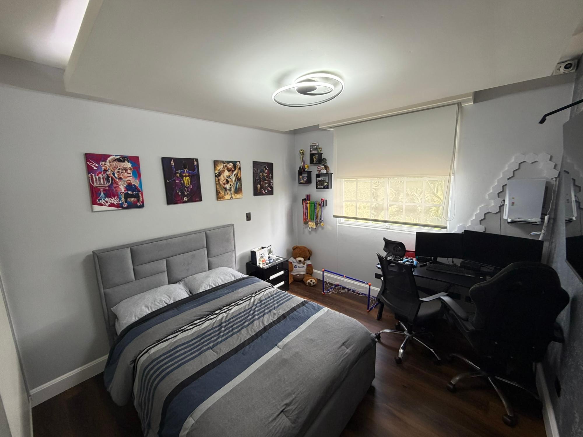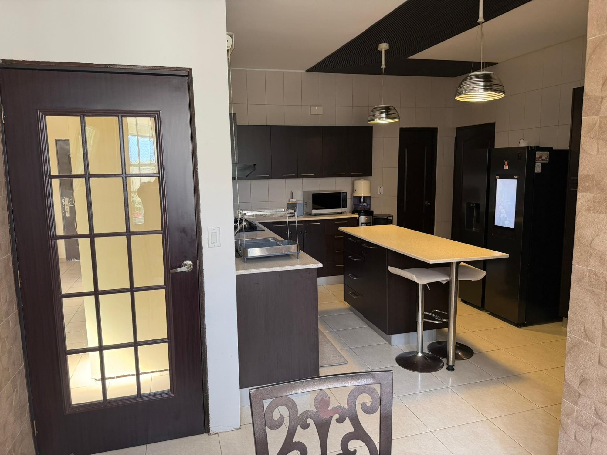 468.72 m² of land, 401.17 m² of construction, 2 parking spaces, 4 bedrooms, 4.5 bathrooms, maid’s quarters with bathroom, laundry area, den, TV room, breakfast nook, water tank room, attached house in the garden currently housing a private gym, BBQ area, and interior garden. Amenities include a social area with a pool, gym, BBQ, and 24/7 security. Maintenance fee: $200 (covers security, maintenance of common areas, gardening, and pest control). Located 5 minutes from the South Corridor, 10 minutes from the city’s financial center, and 10 minutes from Tocumen International Airport. Also within 5 minutes of shopping centers, pharmacies, schools, supermarkets, and much more.