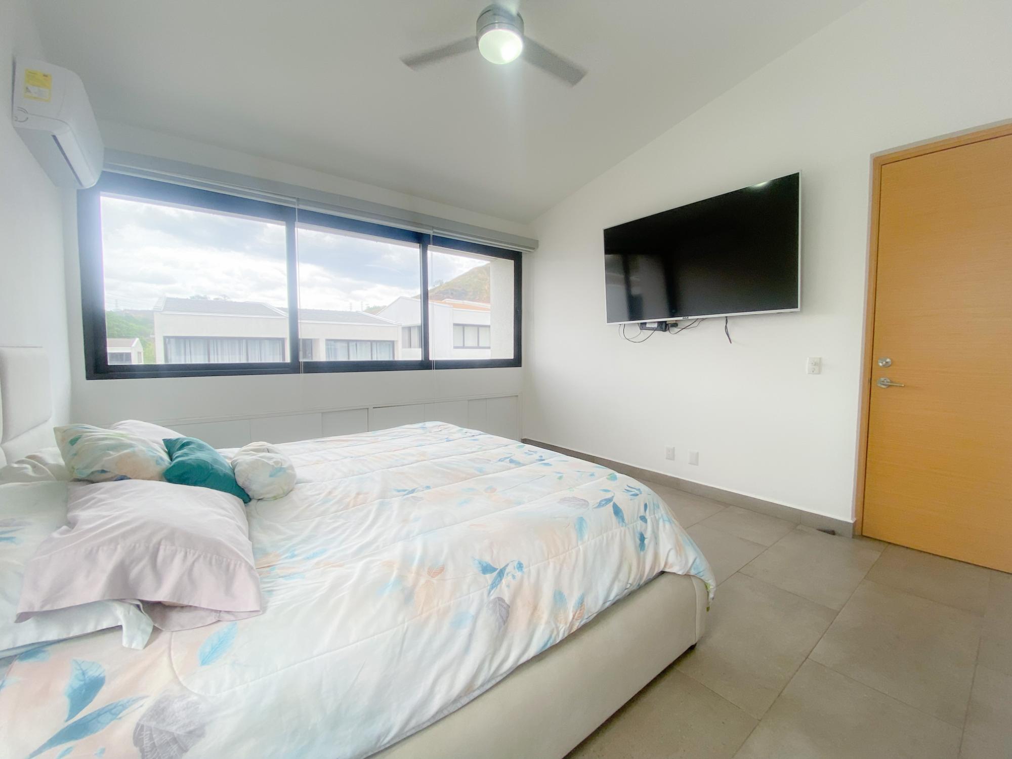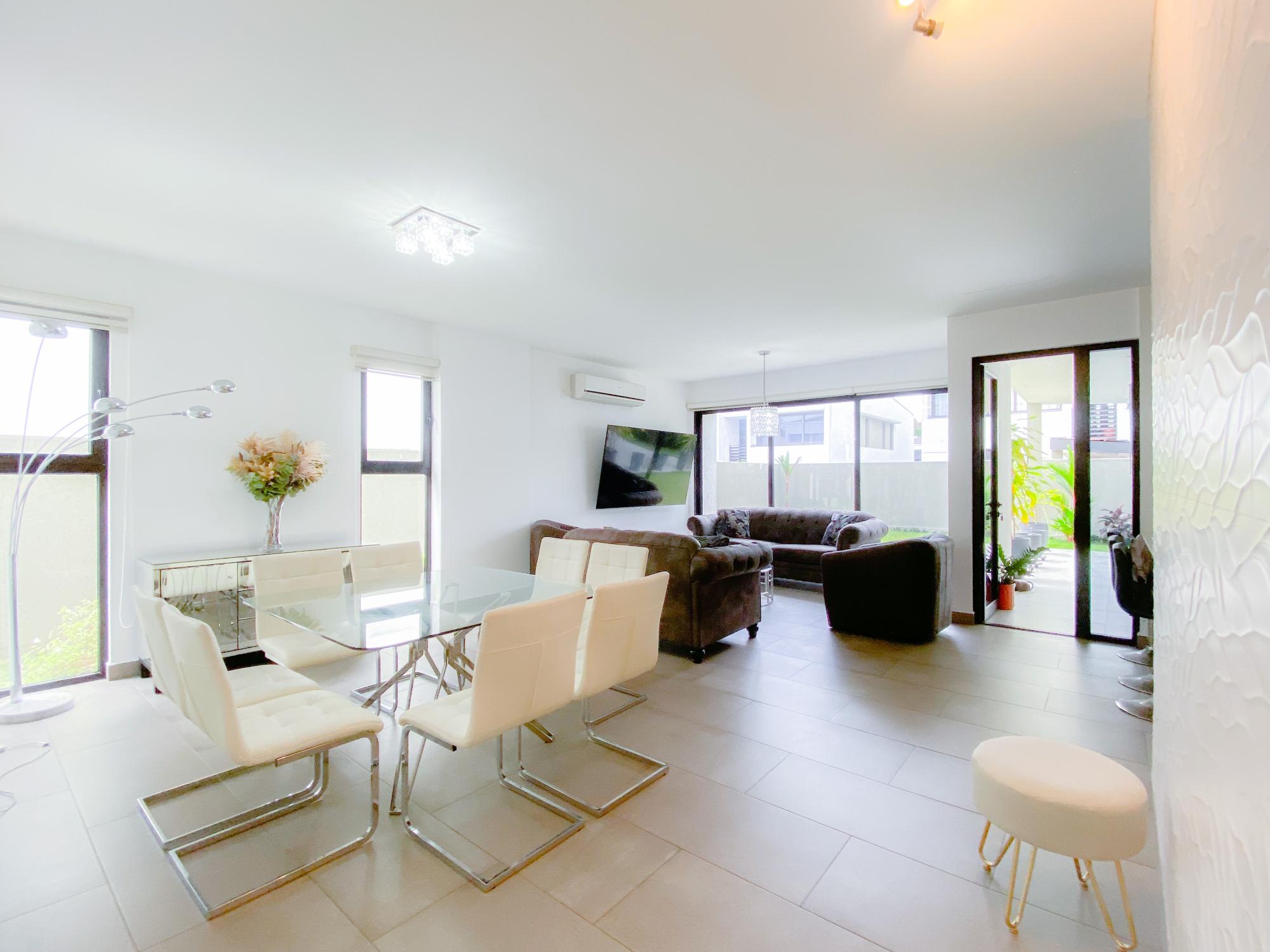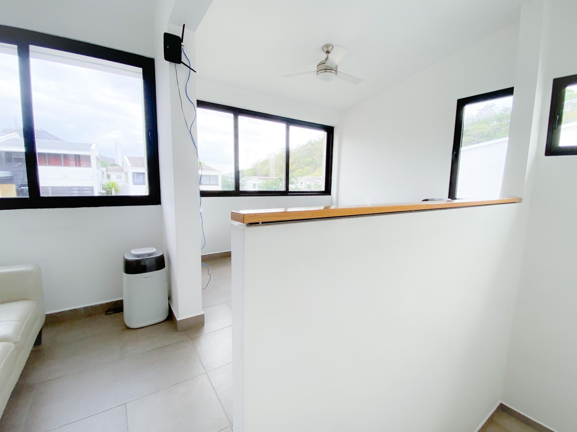 Modern modern house of 389 m2 San Telmo with large patio in a new and exclusive residential located in Altos de Panamá – Barrio Alto It has: UPSTAIRS – 3 bedrooms – 3 bathrooms – den – balcony GROUND FLOOR – living room – dining room – den – kitchen – 1/2 guest bathroom – service room and bathroom – storage room – terrace – patio – 2 parking spaces AMENITIES Club House with gym, event room, BBQ, semi-Olympic pool, children’s pool and jacuzzi. Sports area with multipurpose court, paddle tennis, wet bar and biosaludable equipment. Children’s area with playground, games, multipurpose room and ecological benches. Outstanding benefits: Modern house ready to move in Gated residential area with 24/7 security Large patio to enjoy with the family Exclusive and quiet community