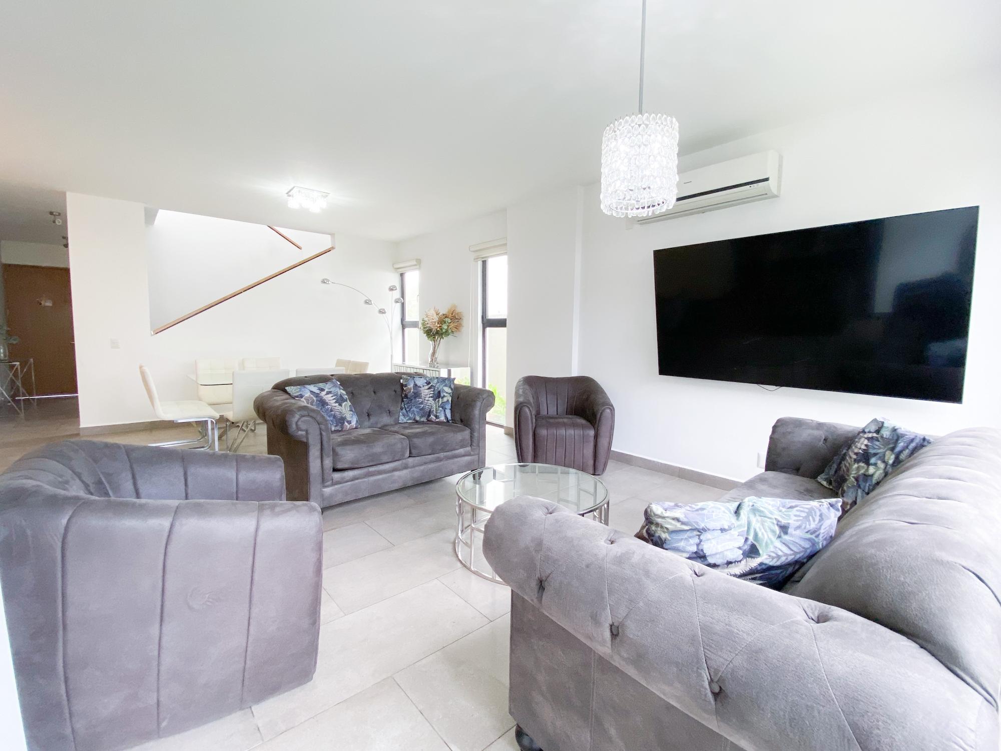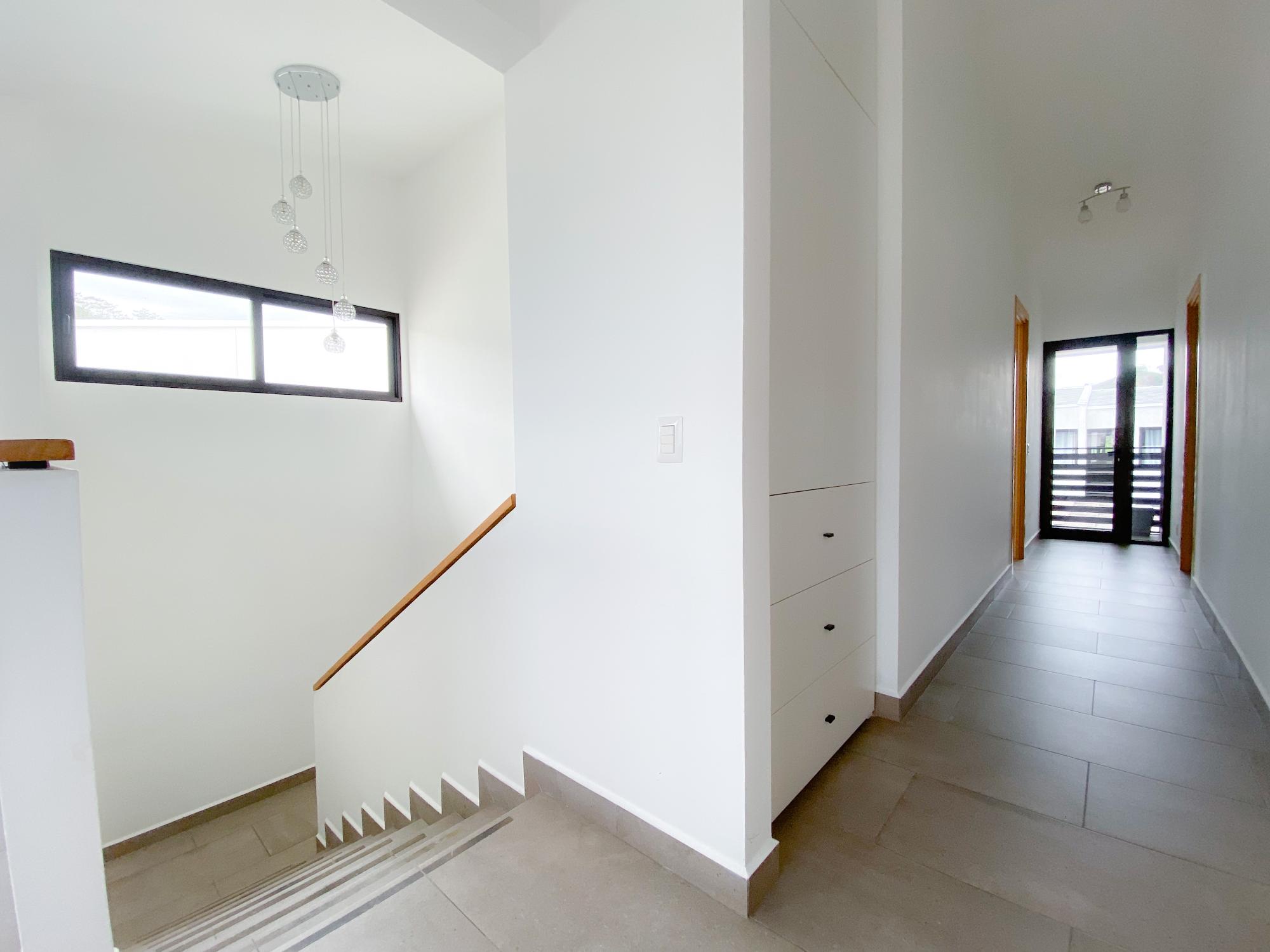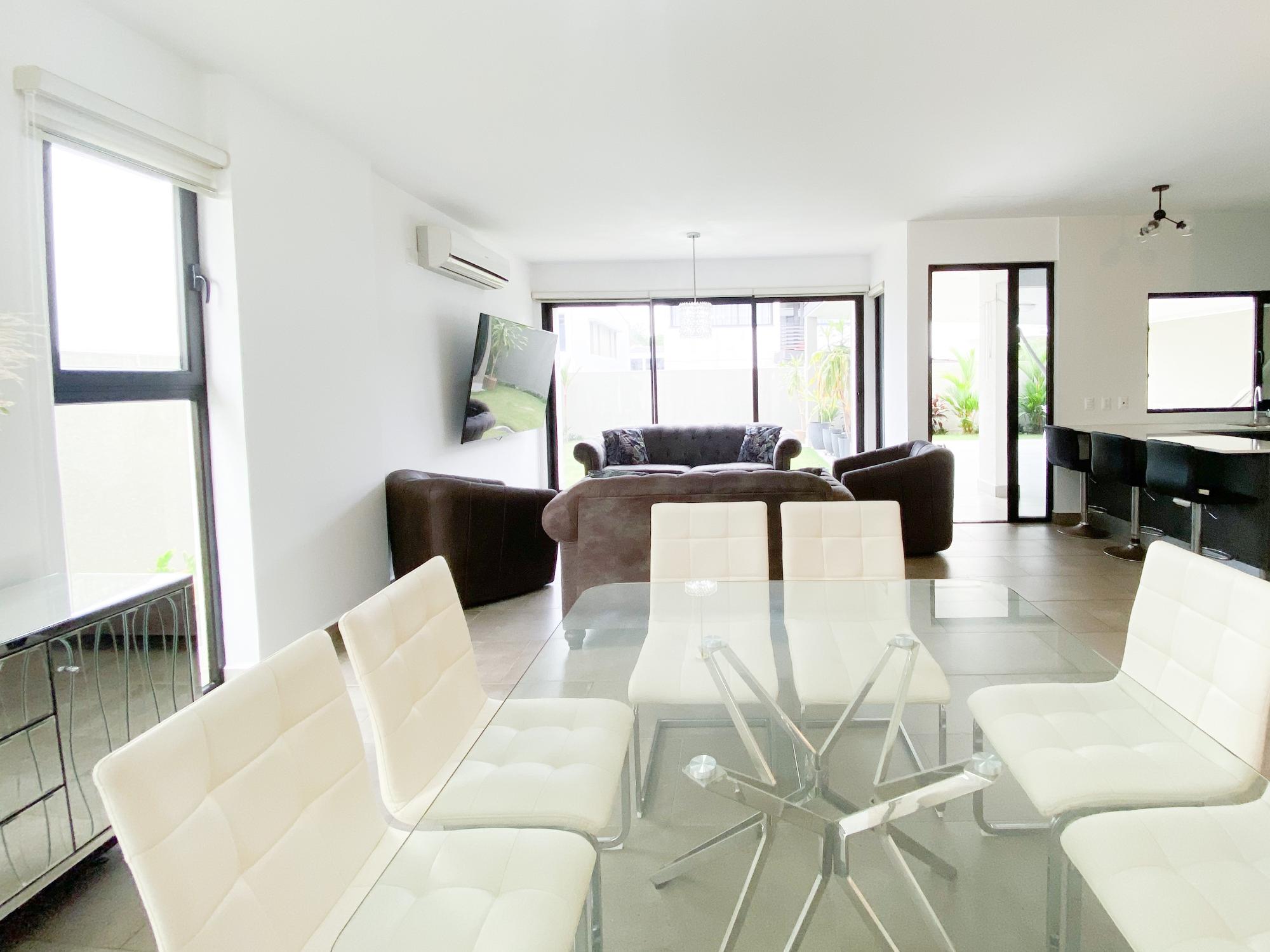 Modern modern house of 389 m2 San Telmo with large patio in a new and exclusive residential located in Altos de Panamá – Barrio Alto It has: UPSTAIRS – 3 bedrooms – 3 bathrooms – den – balcony GROUND FLOOR – living room – dining room – den – kitchen – 1/2 guest bathroom – service room and bathroom – storage room – terrace – patio – 2 parking spaces AMENITIES Club House with gym, event room, BBQ, semi-Olympic pool, children’s pool and jacuzzi. Sports area with multipurpose court, paddle tennis, wet bar and biosaludable equipment. Children’s area with playground, games, multipurpose room and ecological benches. Outstanding benefits: Modern house ready to move in Gated residential area with 24/7 security Large patio to enjoy with the family Exclusive and quiet community