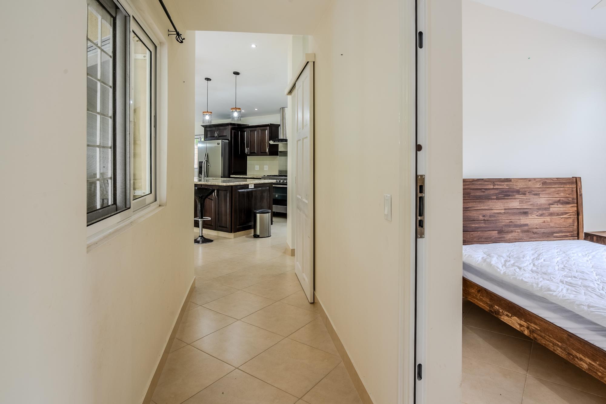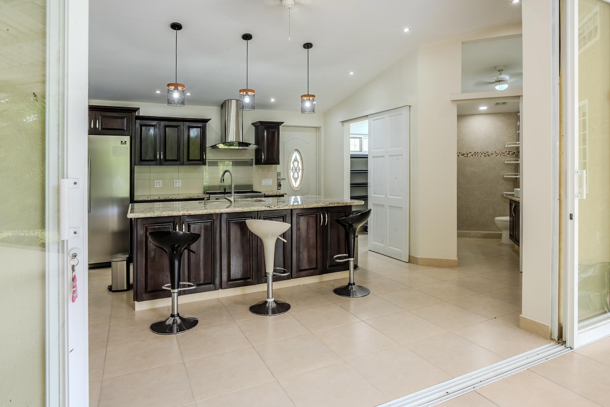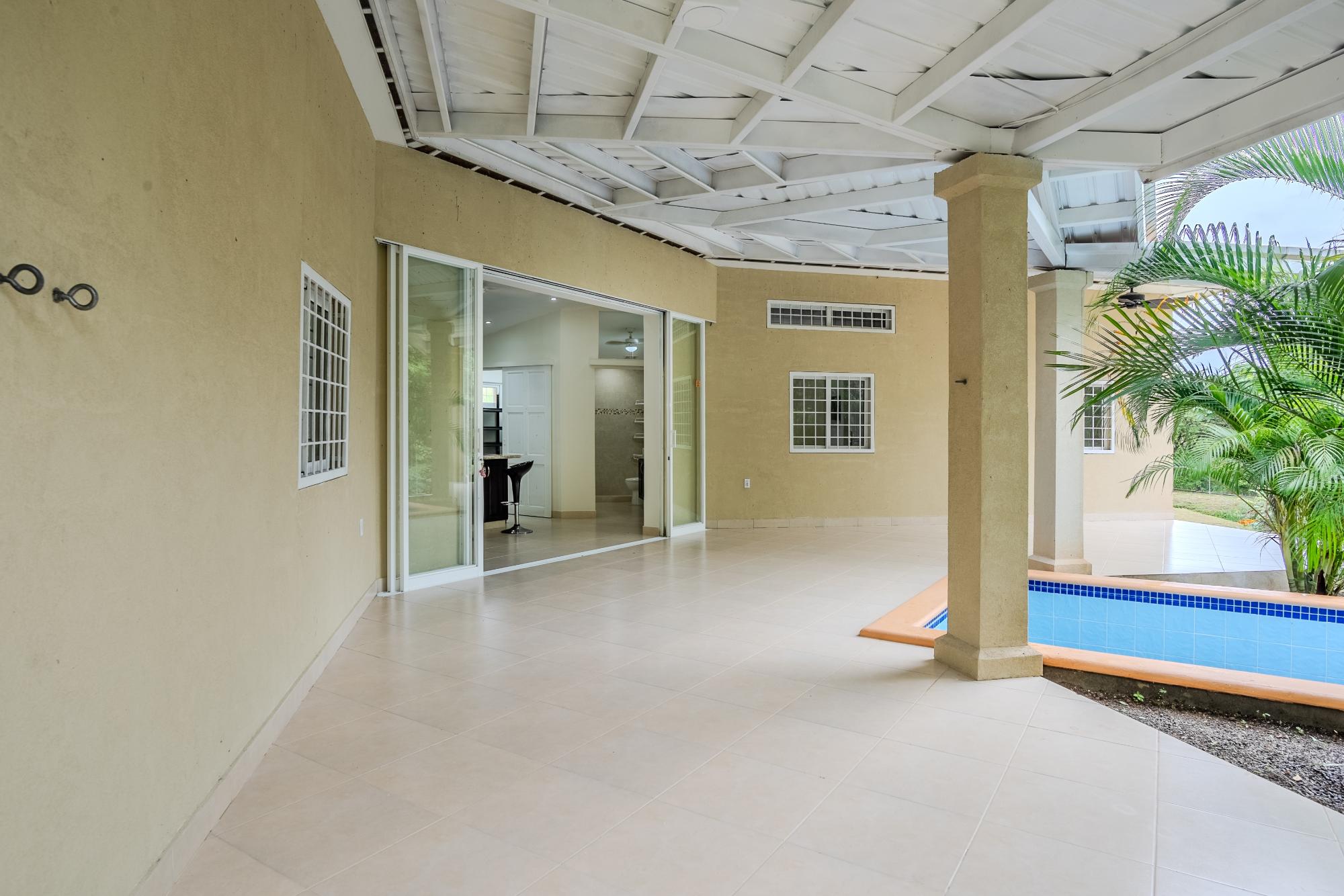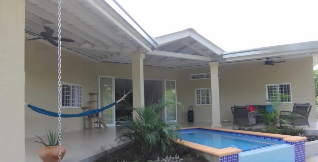 Located on the road to El Valle, just 20 minutes from Coronado, you’ll find this beautiful and bright newly constructed 3-bedroom, 2-bathroom house. This home is situated in a private subdivision of 5 lots. Built to North American standards, this house has 95.5m2 of interior space with a total of 149m2, and sits on more than 3/4 acre of land that is completely fenced and enclosed. The house features many amenities such as underground utilities, a refreshing pool, ceramic tiles throughout, granite countertops in the kitchen and bathrooms, high-quality European windows, a spacious covered patio next to the kitchen and living room, wired USB outlets for convenient charging of electronic devices, air conditioning, and multi-lock security doors in each room. The water source is supplied by a community well that serves all 5 lots. This beauty comes furnished and includes all appliances, including the oven, dishwasher, refrigerator, and washing machine. Dryer too! The community well for the 5 lots costs only $5 per month for electricity.