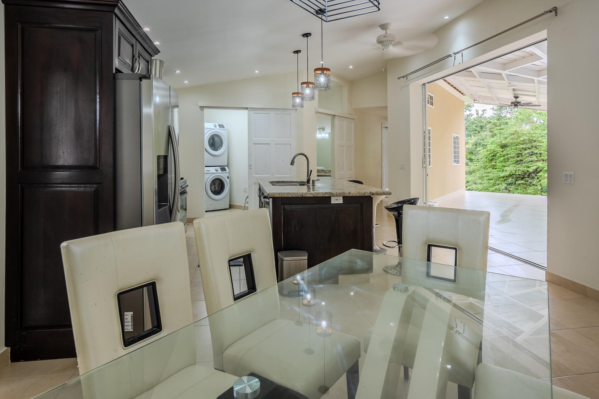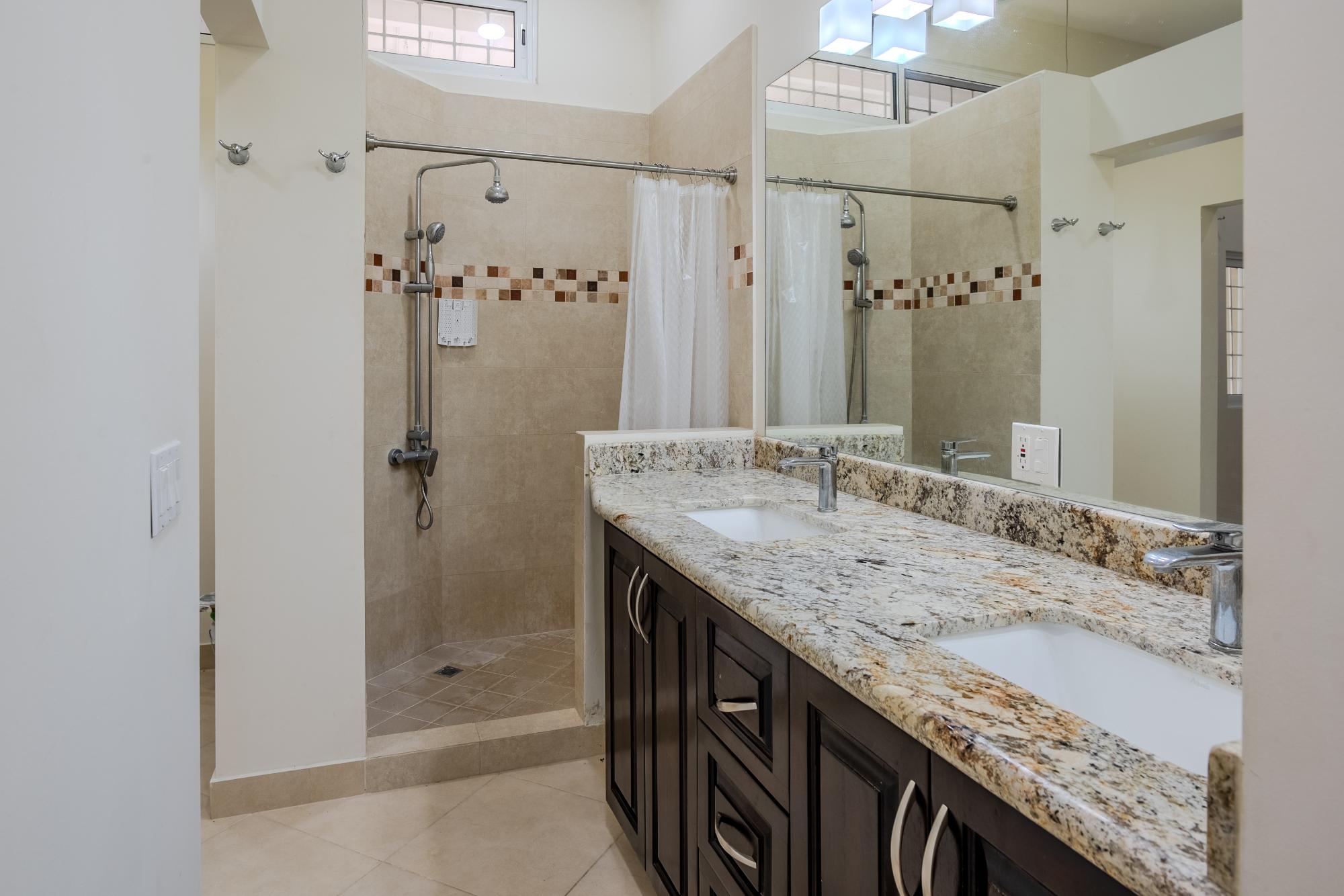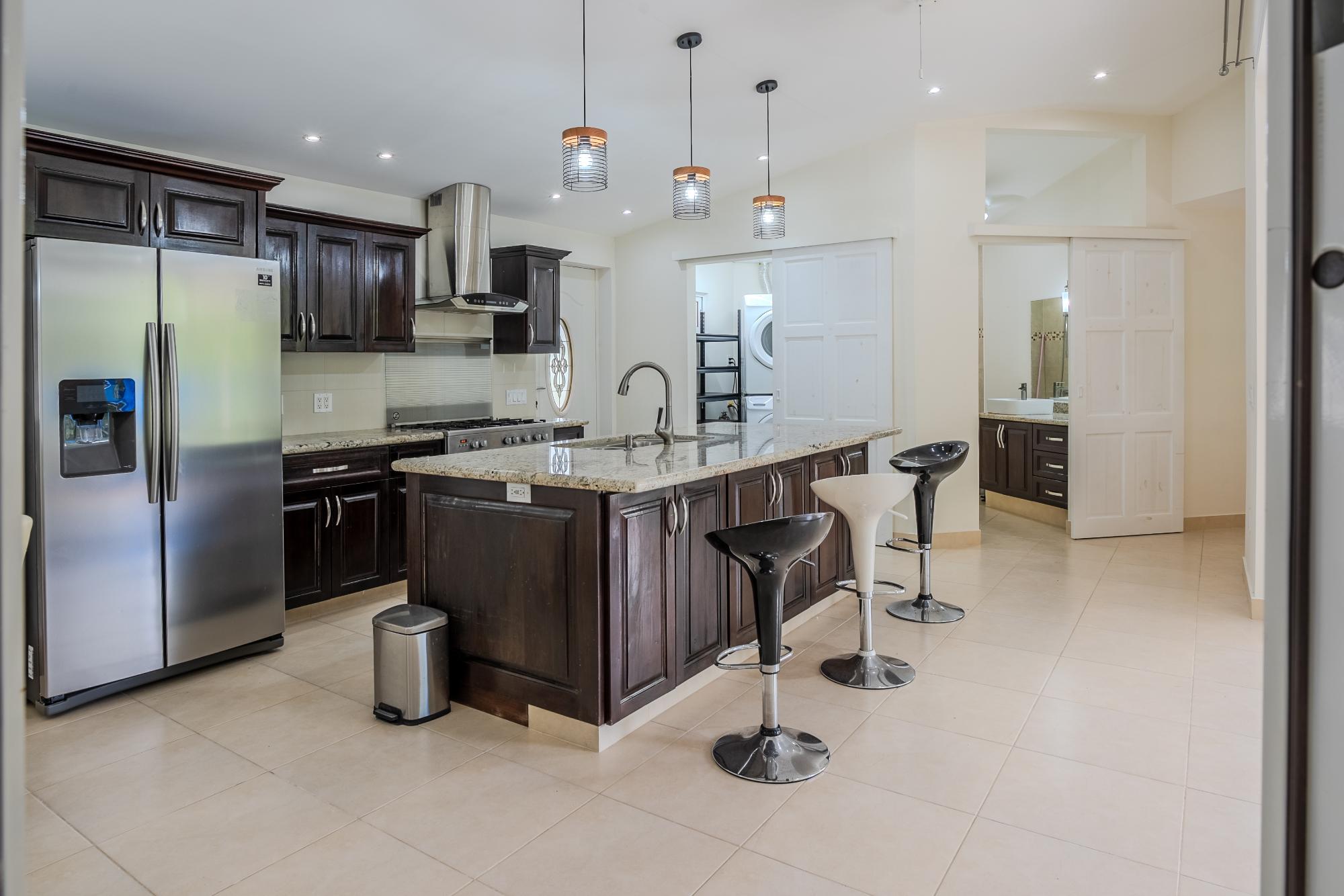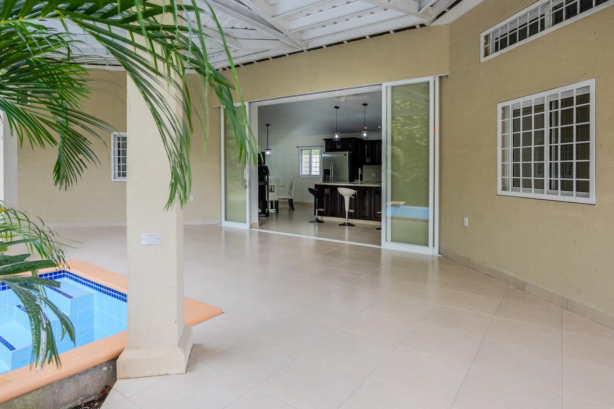 Located on the road to El Valle, just 20 minutes from Coronado, you’ll find this beautiful and bright newly constructed 3-bedroom, 2-bathroom house. This home is situated in a private subdivision of 5 lots. Built to North American standards, this house has 95.5m2 of interior space with a total of 149m2, and sits on more than 3/4 acre of land that is completely fenced and enclosed. The house features many amenities such as underground utilities, a refreshing pool, ceramic tiles throughout, granite countertops in the kitchen and bathrooms, high-quality European windows, a spacious covered patio next to the kitchen and living room, wired USB outlets for convenient charging of electronic devices, air conditioning, and multi-lock security doors in each room. The water source is supplied by a community well that serves all 5 lots. This beauty comes furnished and includes all appliances, including the oven, dishwasher, refrigerator, and washing machine. Dryer too! The community well for the 5 lots costs only $5 per month for electricity.