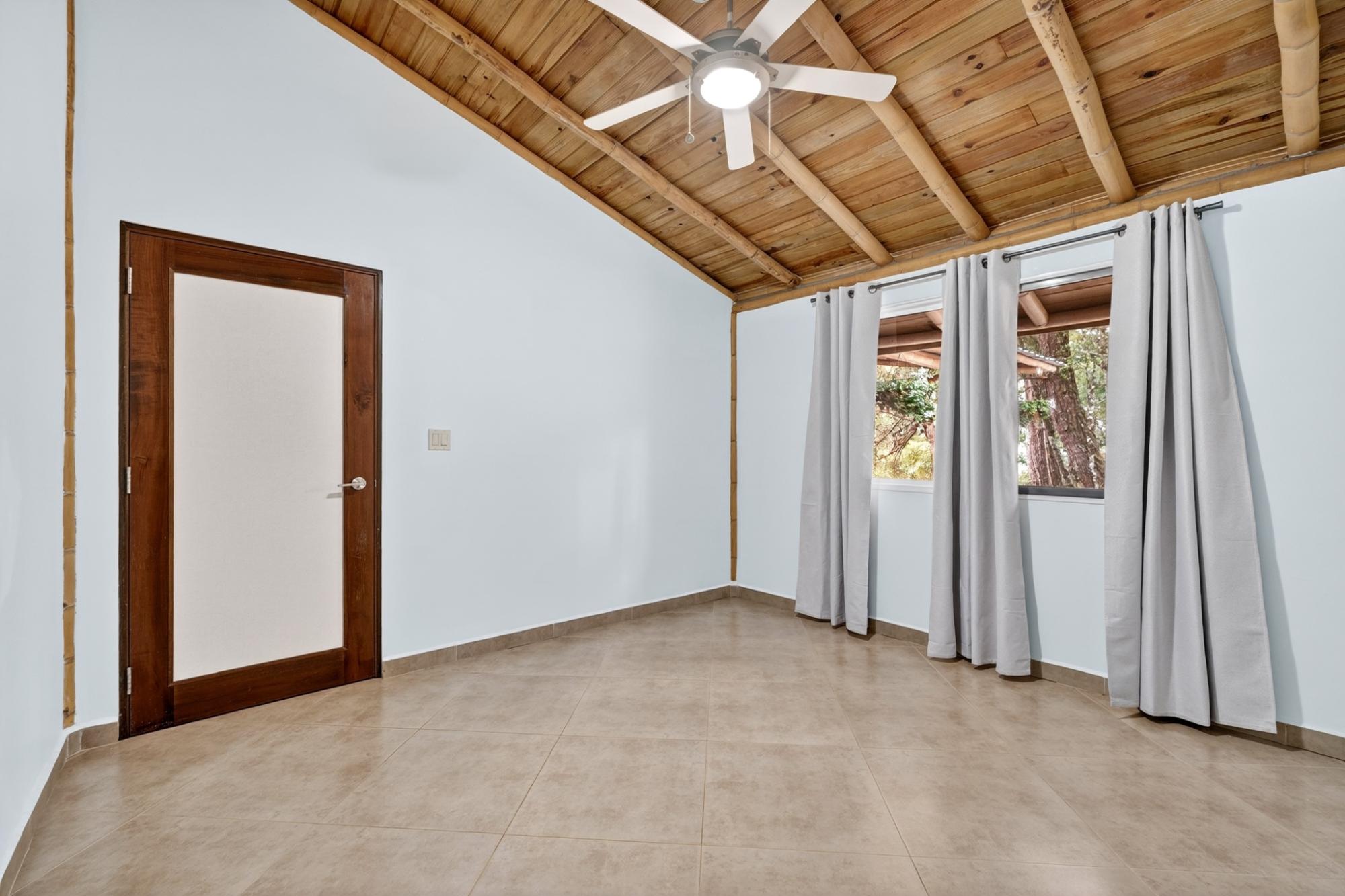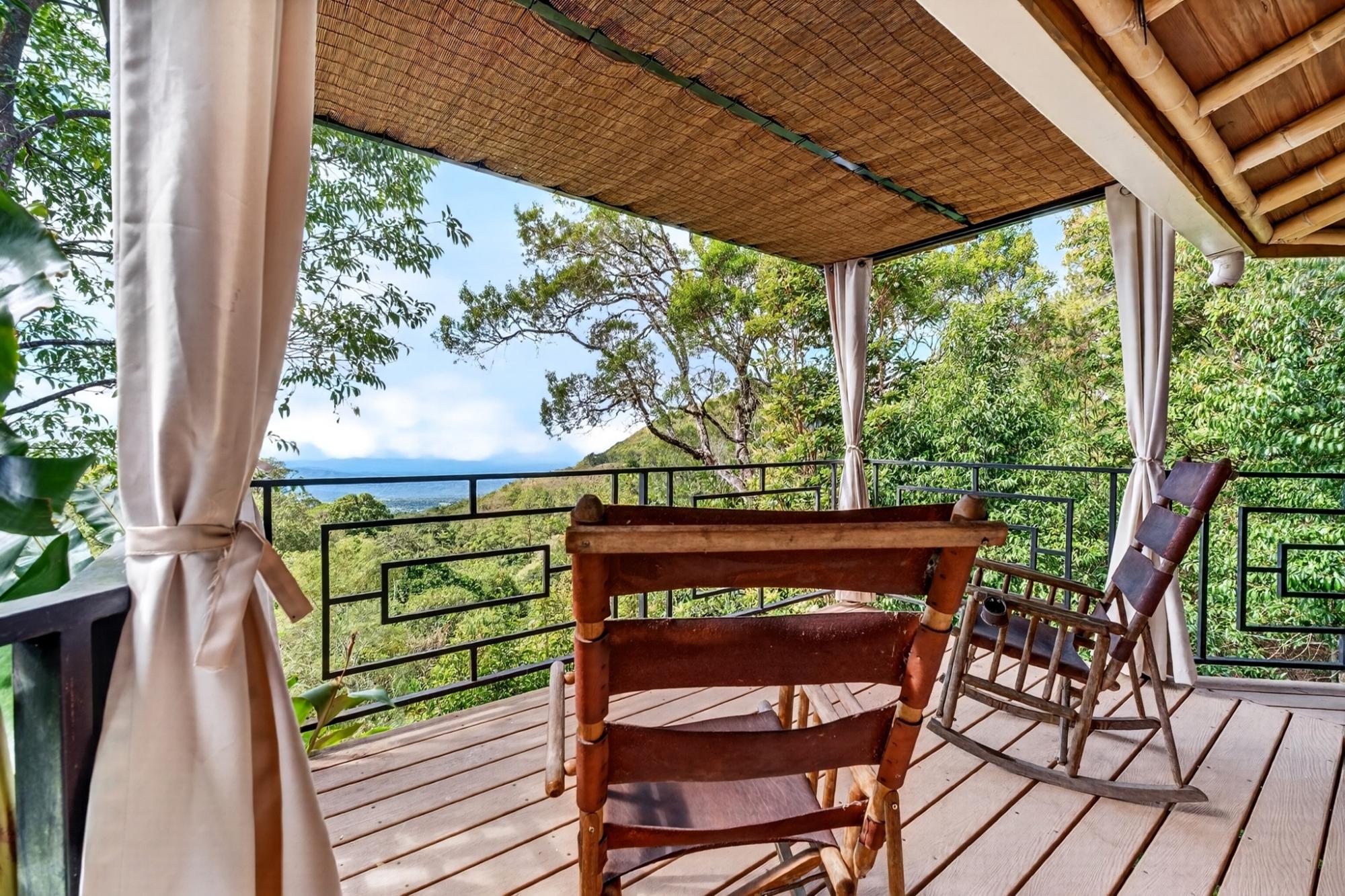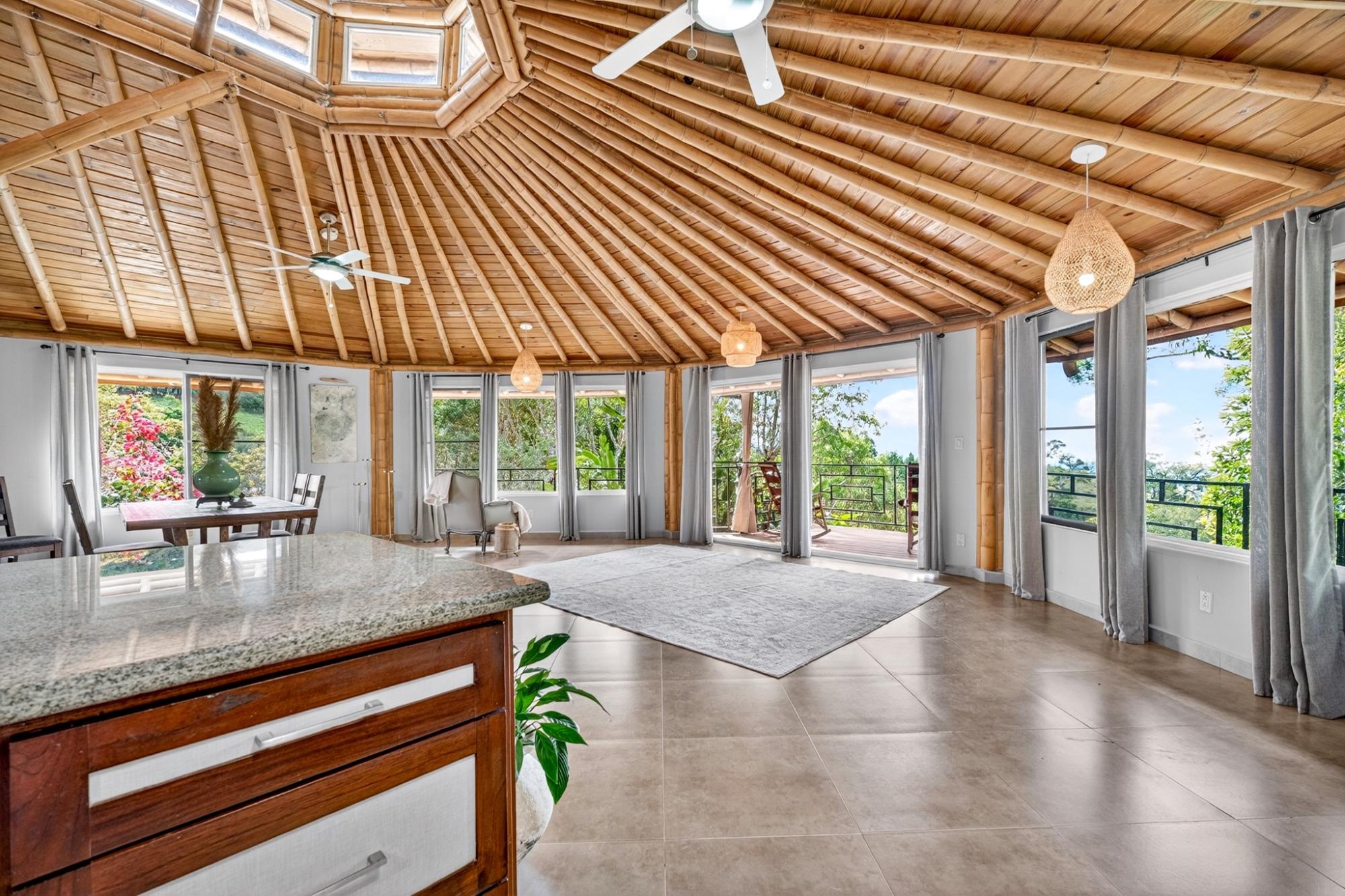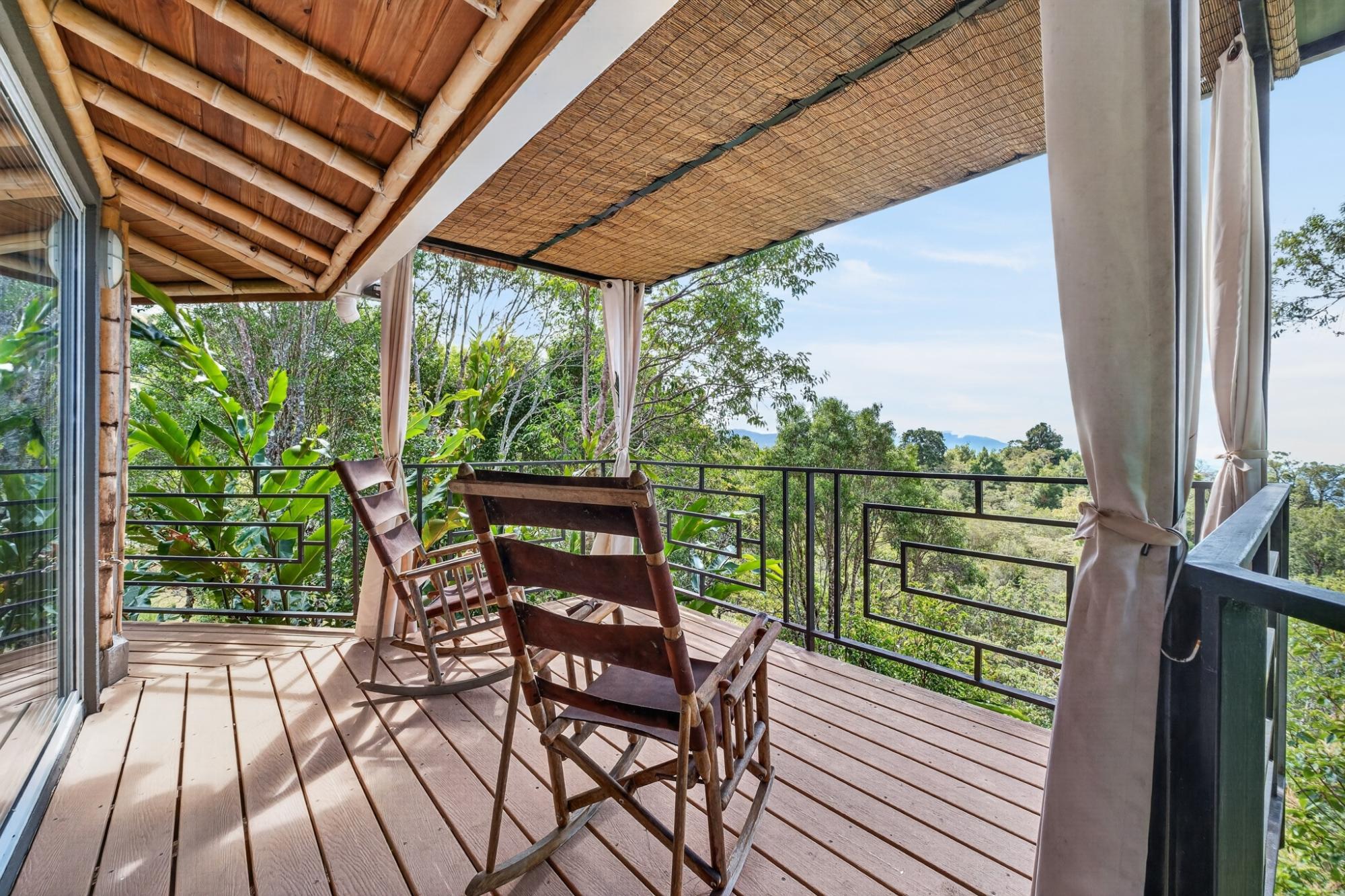Tucked into the peaceful hills of Alto Jaramillo in the sought after Lemon Grove area, this charming two bedroom, two bath home blends warmth, character, and breathtaking natural beauty just 10 minutes from downtown Boquete. Inside, soaring bamboo ceilings create a striking architectural feature, while freshly painted interiors and modern decor offer a clean, updated feel. Natural light fills the open concept living, dining, and kitchen area, complete with quality appliances, ample counter space, and a central island for easy entertaining. The living space flows to a covered terrace with sensational mountain and greenery views, perfect for morning coffee or evening sunsets. Both bedrooms are generously sized, with a private primary suite. A beautifully designed home ideal for full time living or a peaceful retreat.