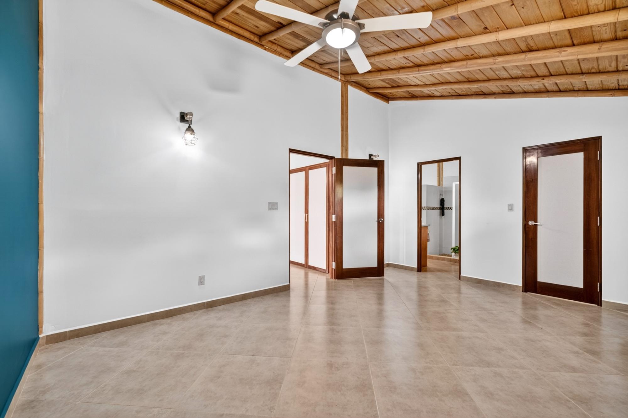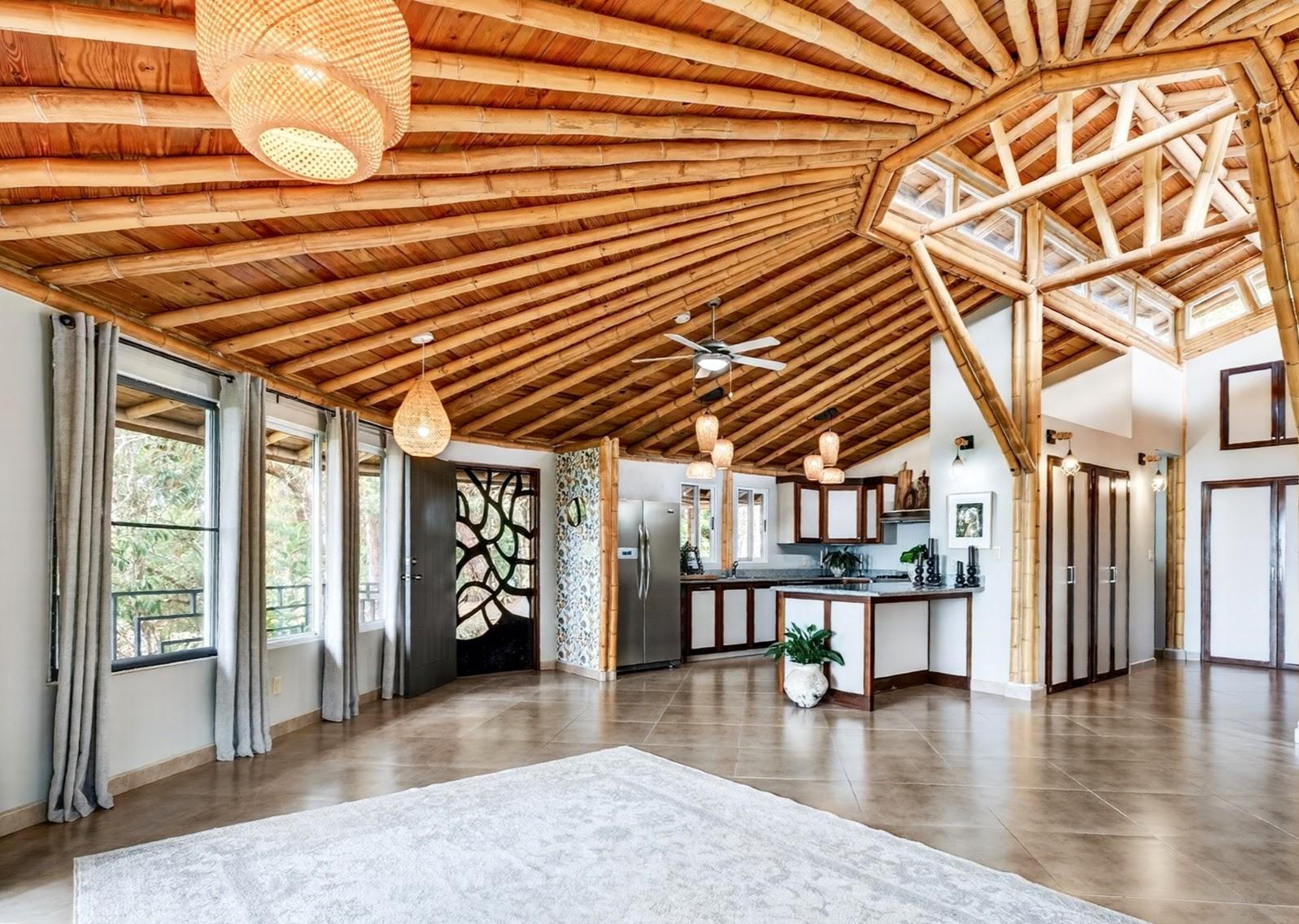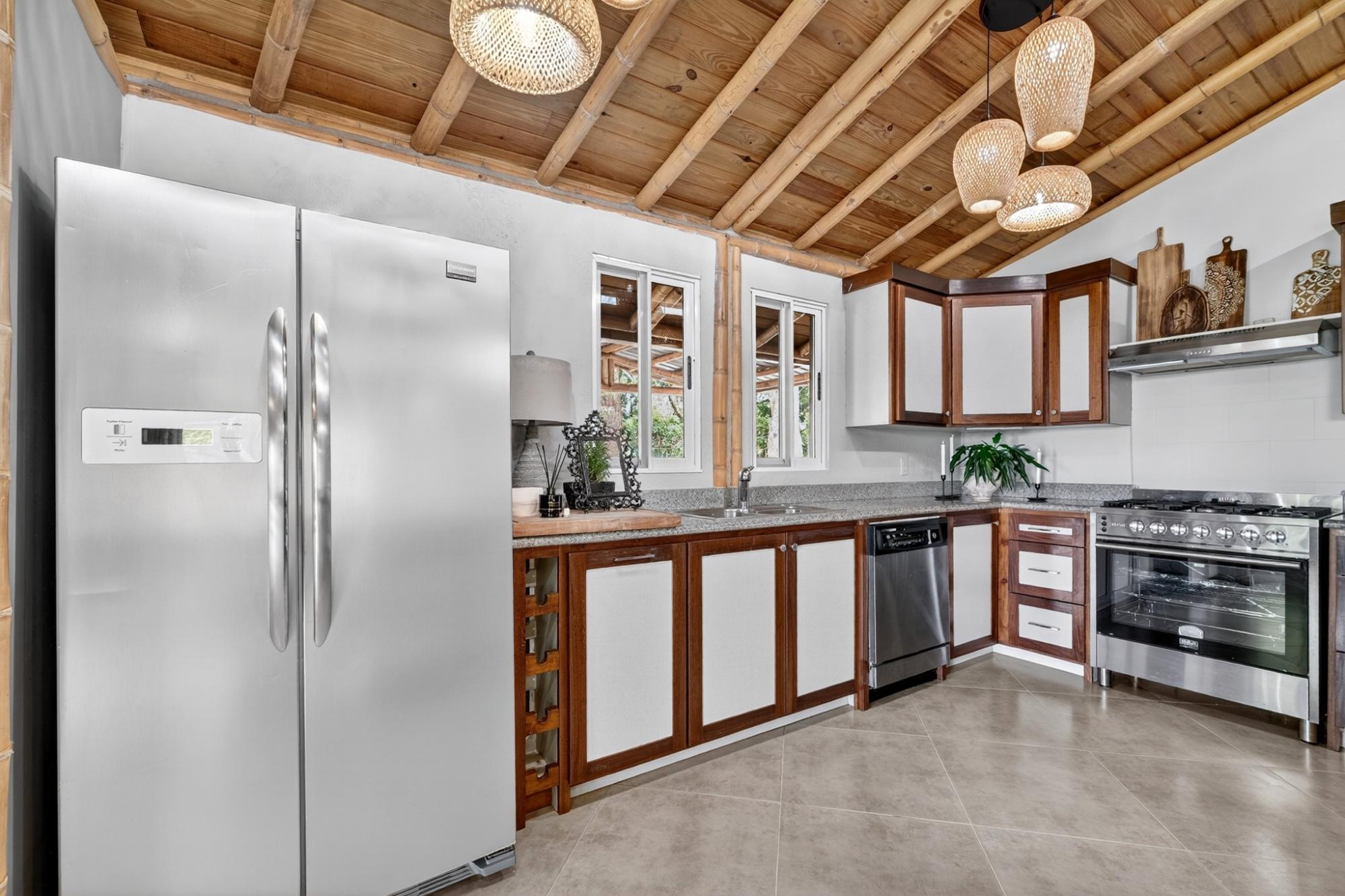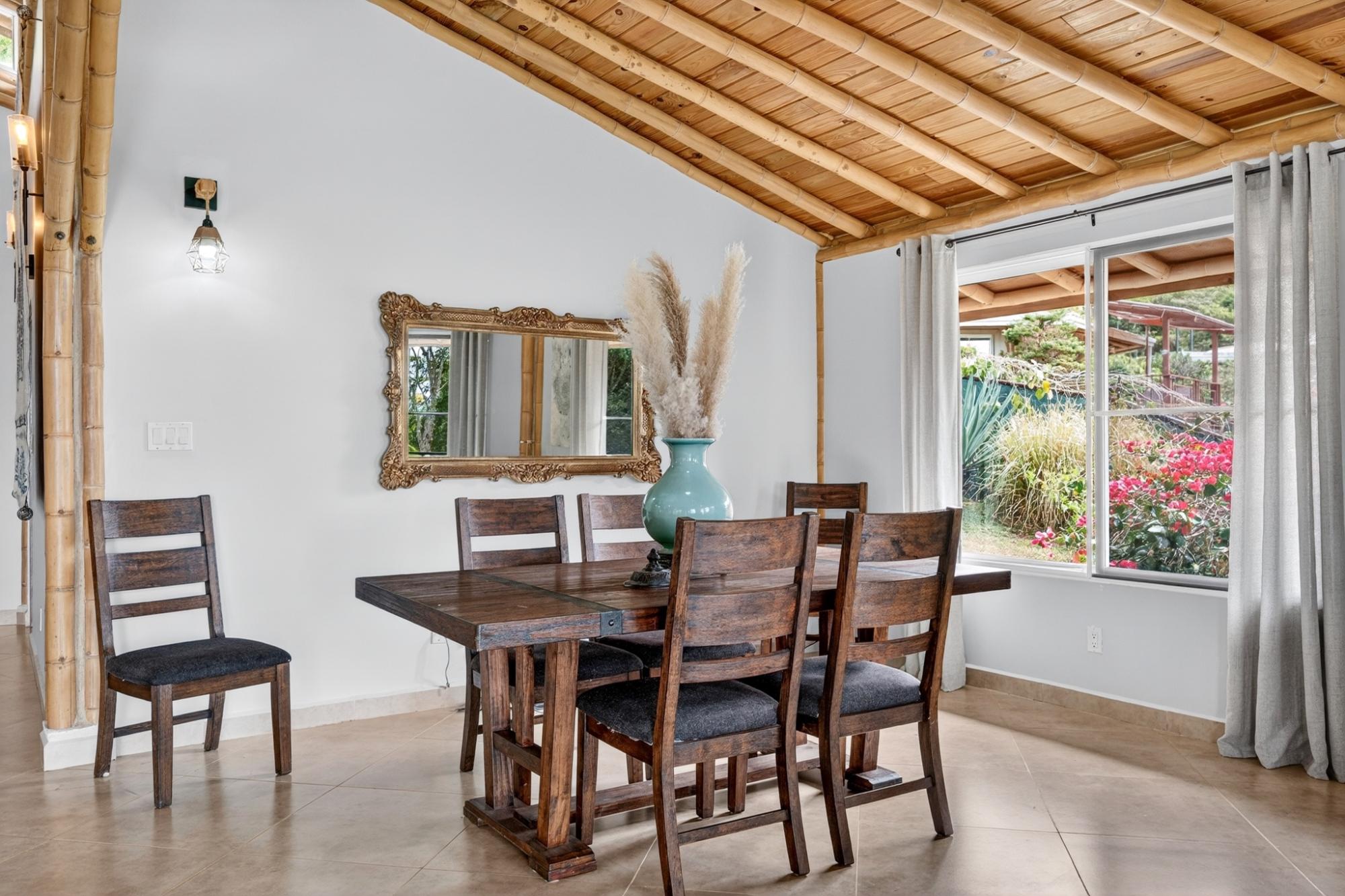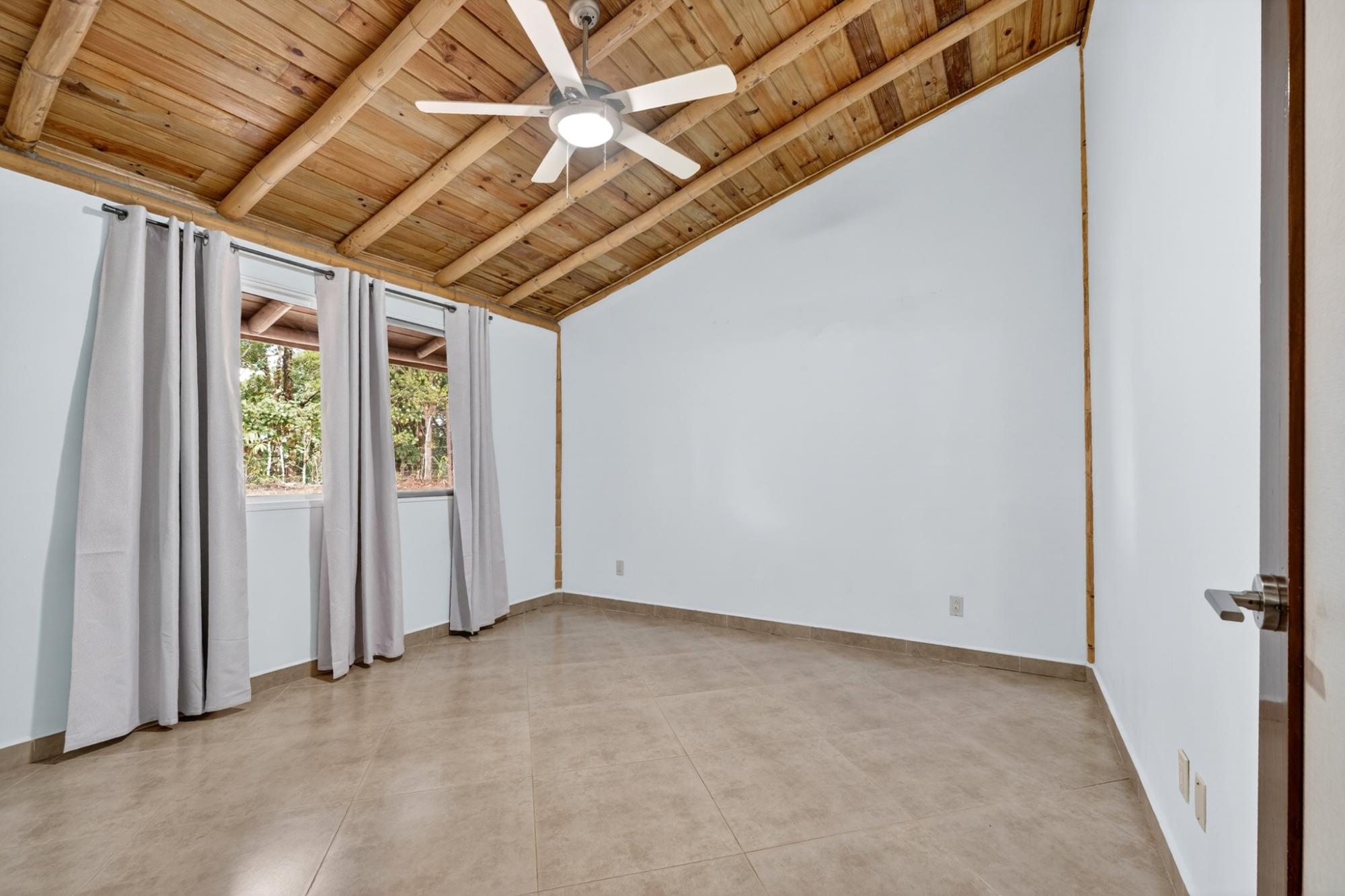 Tucked into the peaceful hills of Alto Jaramillo in the sought after Lemon Grove area, this charming two bedroom, two bath home blends warmth, character, and breathtaking natural beauty just 10 minutes from downtown Boquete. Inside, soaring bamboo ceilings create a striking architectural feature, while freshly painted interiors and modern decor offer a clean, updated feel. Natural light fills the open concept living, dining, and kitchen area, complete with quality appliances, ample counter space, and a central island for easy entertaining. The living space flows to a covered terrace with sensational mountain and greenery views, perfect for morning coffee or evening sunsets. Both bedrooms are generously sized, with a private primary suite. A beautifully designed home ideal for full time living or a peaceful retreat.