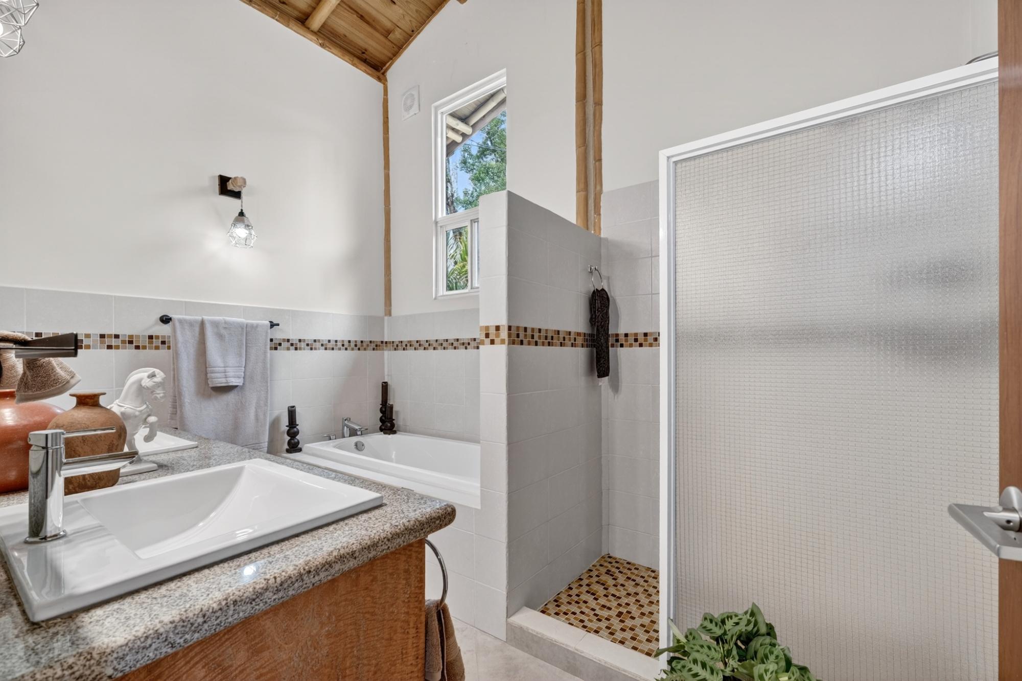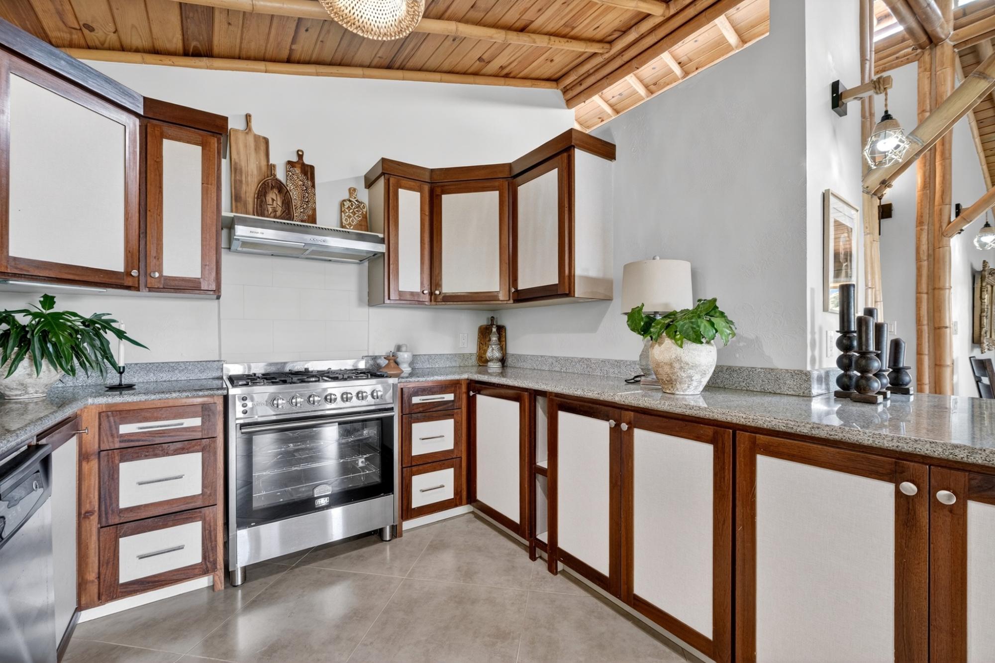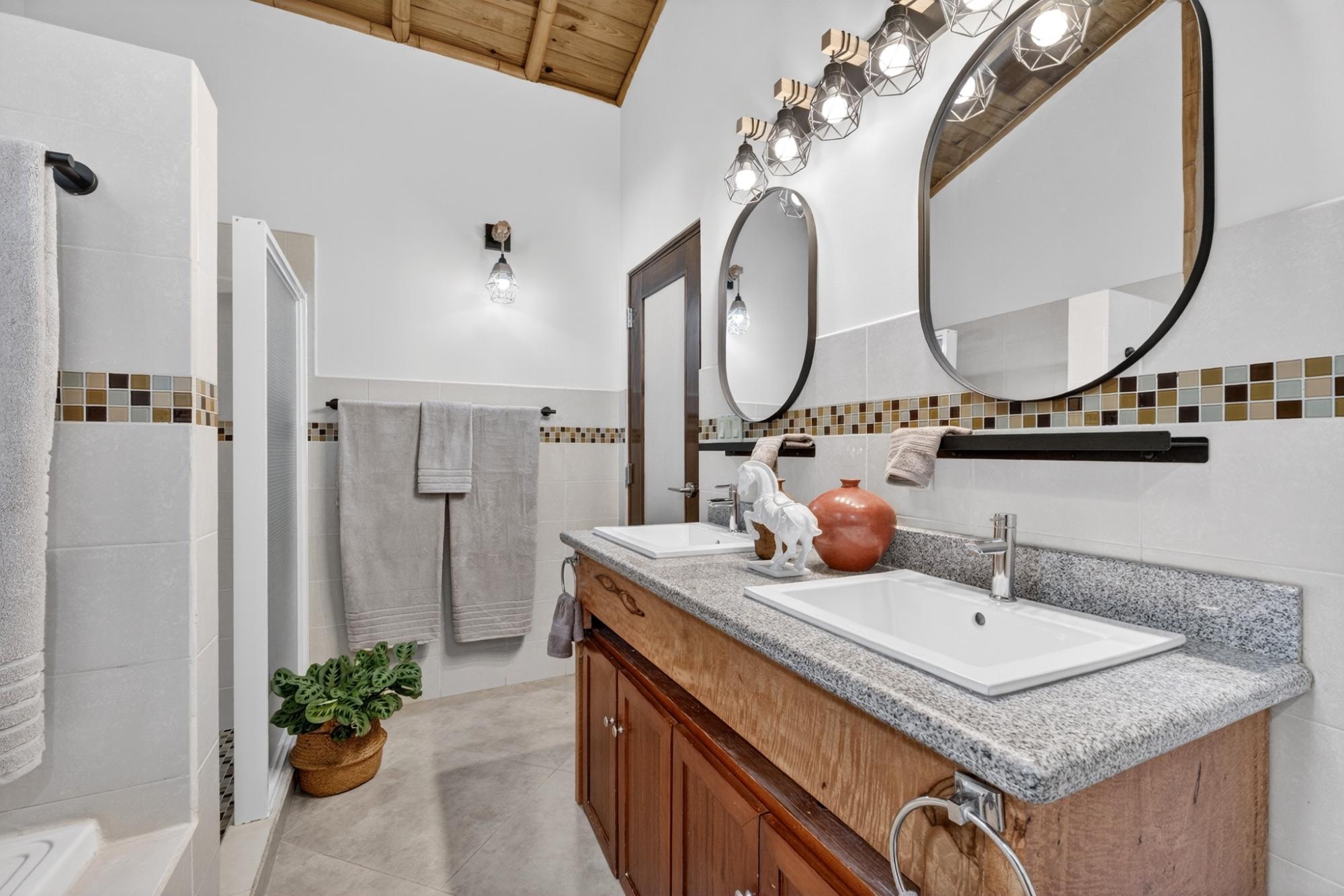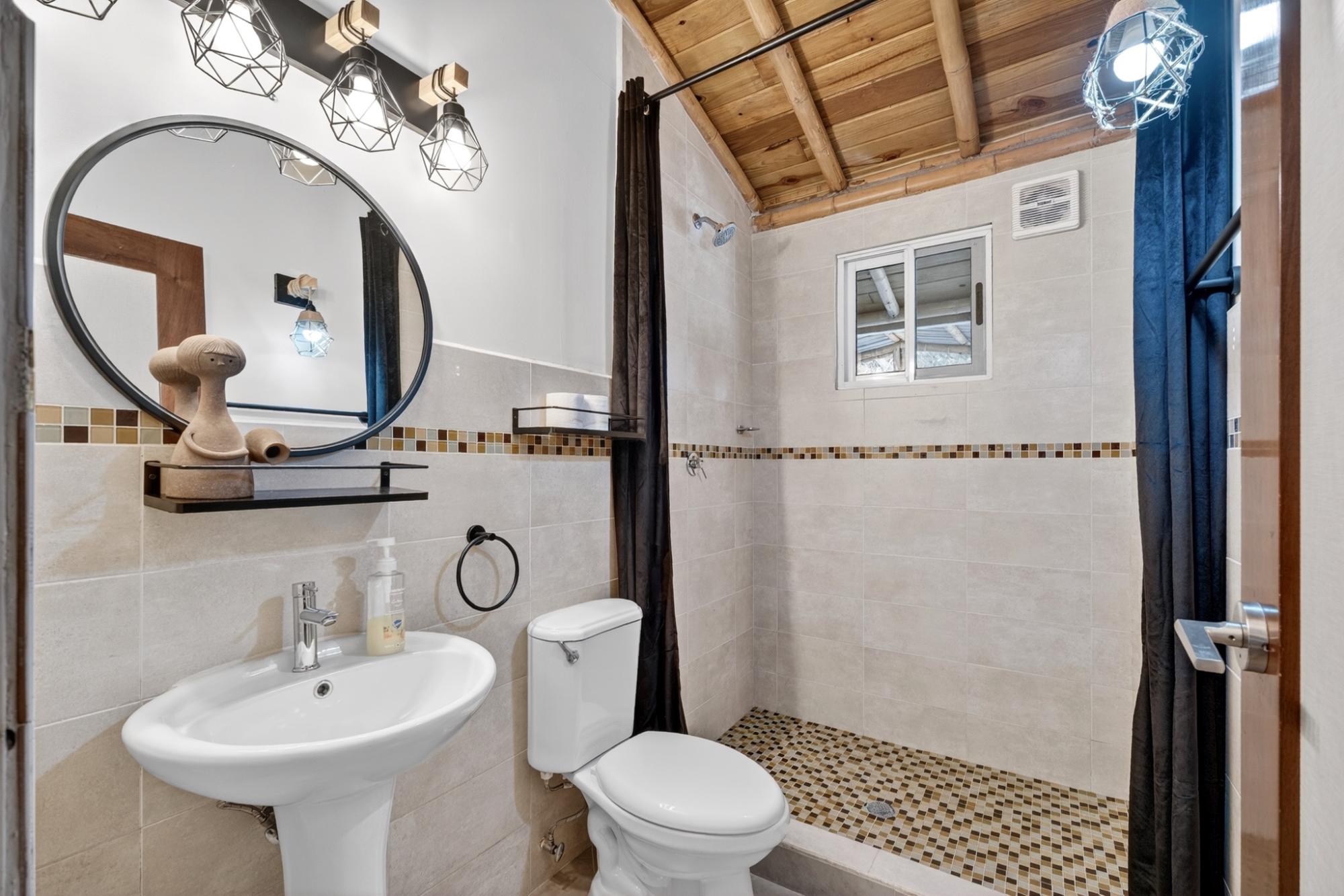 Tucked into the peaceful hills of Alto Jaramillo in the sought after Lemon Grove area, this charming two bedroom, two bath home blends warmth, character, and breathtaking natural beauty just 10 minutes from downtown Boquete. Inside, soaring bamboo ceilings create a striking architectural feature, while freshly painted interiors and modern decor offer a clean, updated feel. Natural light fills the open concept living, dining, and kitchen area, complete with quality appliances, ample counter space, and a central island for easy entertaining. The living space flows to a covered terrace with sensational mountain and greenery views, perfect for morning coffee or evening sunsets. Both bedrooms are generously sized, with a private primary suite. A beautifully designed home ideal for full time living or a peaceful retreat.