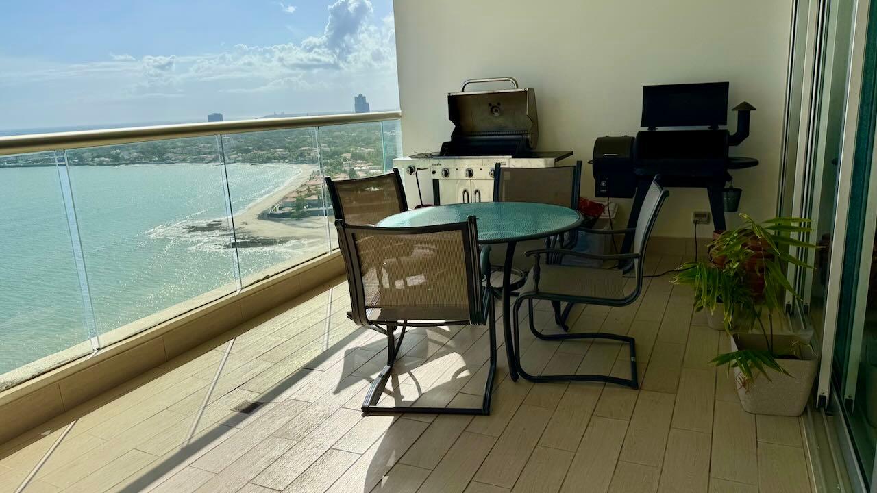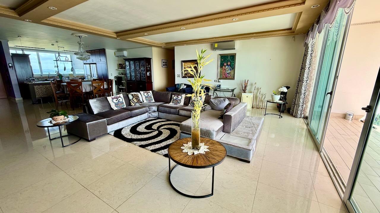 Welcome to the junior penthouse located on the 25th floor of the Bahía 100 Tower, offering stunning ocean views. This spacious apartment features 290 m2 of construction and features a modern open concept kitchen, living and dining room, ideal for entertaining. The junior penthouse includes 3 spacious bedrooms, with a large and luxurious jacuzzi in the master bedroom bathroom. One of the secondary bedrooms also includes a bathtub for added relaxation. Additionally, there is a maid’s quarters and bathroom for added convenience. Step out onto the large balcony with ocean views, perfect for enjoying the fresh sea breeze. The unit has been updated with marble floors in the kitchen, living and dining room, while bamboo floors throughout the rest of the apartment. This penthouse comes with 2 parking spaces and a large storage room measuring 5.5 meters long by 1.25 meters wide. Building amenities include swimming pools, gym, sauna and 24-hour security for added peace of mind. Don’t miss the opportunity to live in this luxurious junior penthouse with all the amenities and comfort you desire.