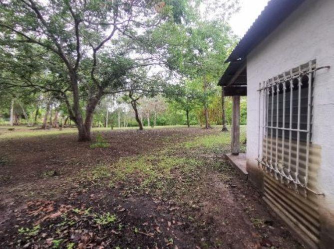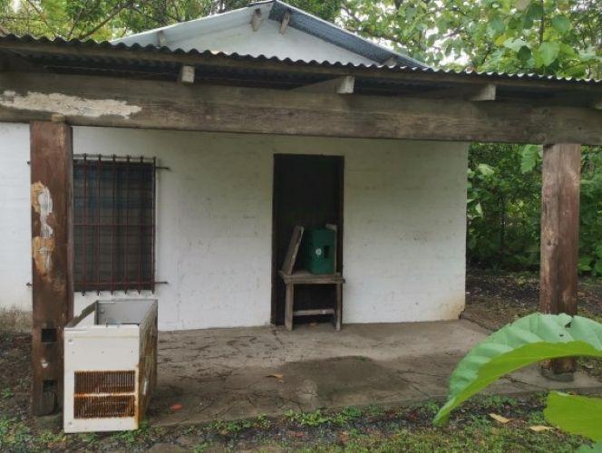 Almost empty lot, except for a small house used as a caretaker. Built of blocks, with a zinc roof, clay floor, iron bars on the windows, and wooden doors. Uninhabitable.