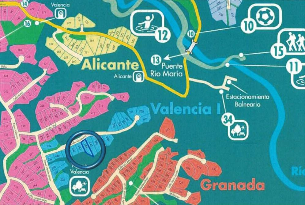 This 1,789.89 m² lot is located in the gated mountain community of Altos del María, specifically in the Valencia neighborhood, along Calle Almasserra. The land sits within a sub-urban residential zone and is suitable for building a private home surrounded by nature. The lot features an inclined topography with a relatively flat area near the road frontage and sloped areas toward the rear, offering potential for elevated views. Access is via a paved road, with neighboring lots on the east and west sides. The southern boundary borders a larger parcel of land that is not currently set for development, providing added privacy and a more natural backdrop. It’s classified for residential and agricultural use and comes with access to essential services including electricity, public water (acueducto), and street lighting. The property is free of liens and ready for transfer. Located at approximately 700 to 1,000 meters above sea level, Altos del María offers a cooler climate and lush mountain scenery year-round. The area is known for its security, internal hiking trails, waterfalls, and birdwatching. It’s a community that attracts both full-time residents and part-time homeowners looking for peace and proximity to nature. More photos coming soon.