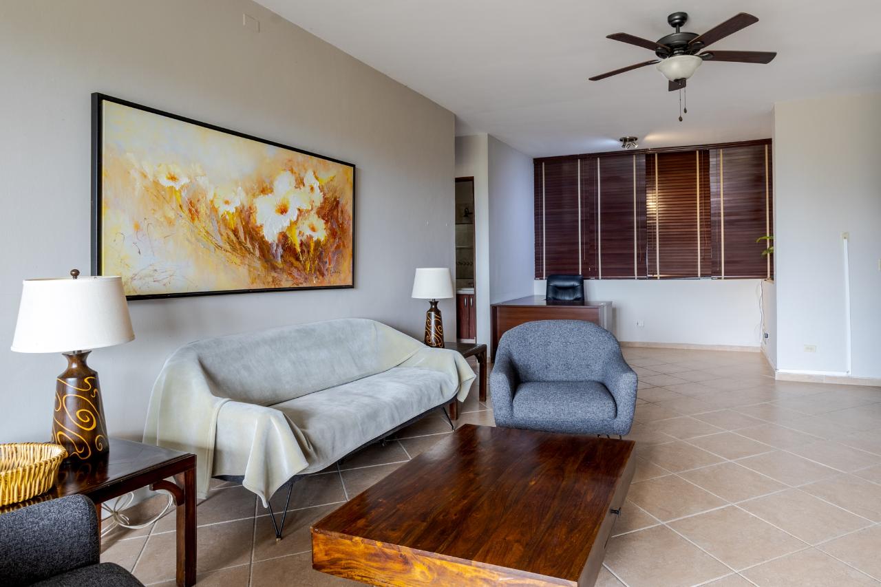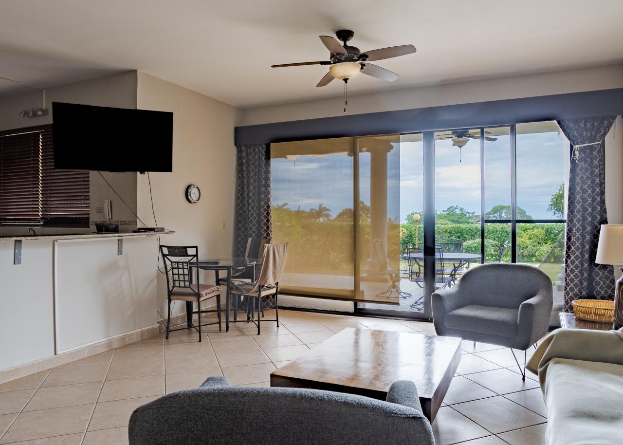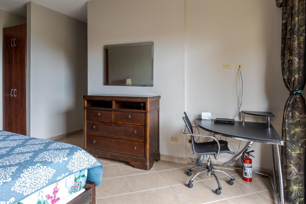 Enjoy life in this lovely Boquete Country Club condominium. With its high quality construction and charming views from every room to a live green fenced garden you will love life in this great Boquete, Panama condo for sale. The garden land belongs to you and is easily accessed from the condo’s three terraces that lead from each of the main rooms. The ground floor condominium enjoys abundant natural light with all of those picture window sliding glass doors. It has a great layout designed for easy living. The open-concept living area seamlessly integrates the living room, dining area, and kitchen. Floor-to-ceiling sliding glass doors and large windows allow natural light into the space. Those three terraces combined with the private garden make this a unique offering in an excellent Boquete community. And the main terrace is quite large making for a great place to relax or entertain. The living room is spacious and has great finishes. The condominium has two large bedrooms with big built-in closets and those adjoining terraces that encourage relaxation in the year around spring-like outdoors. These retreats provide a perfect spot for savoring your morning coffee or stargazing on clear Panamanian nights. The nice master bedroom comes with an ensuite full bathroom.