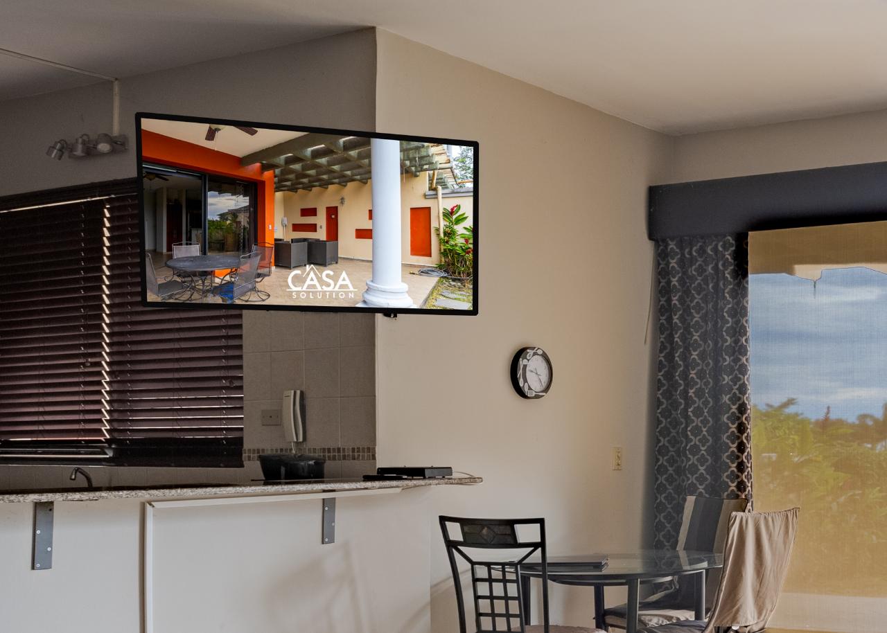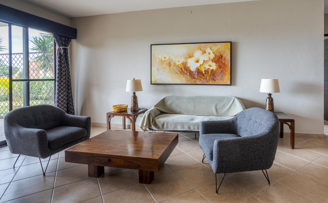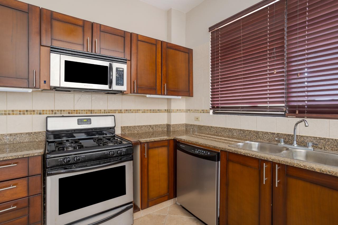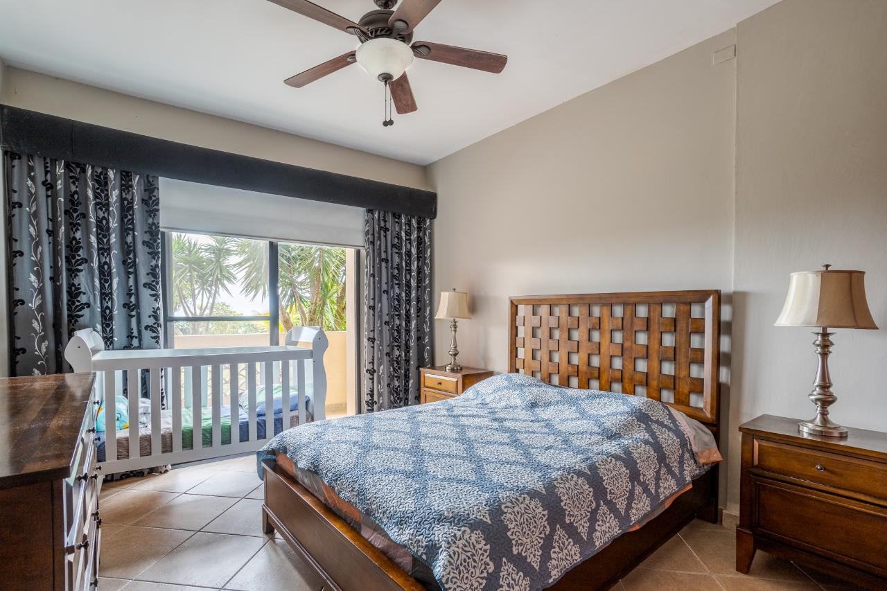 Enjoy life in this lovely Boquete Country Club condominium. With its high quality construction and charming views from every room to a live green fenced garden you will love life in this great Boquete, Panama condo for sale. The garden land belongs to you and is easily accessed from the condo’s three terraces that lead from each of the main rooms. The ground floor condominium enjoys abundant natural light with all of those picture window sliding glass doors. It has a great layout designed for easy living. The open-concept living area seamlessly integrates the living room, dining area, and kitchen. Floor-to-ceiling sliding glass doors and large windows allow natural light into the space. Those three terraces combined with the private garden make this a unique offering in an excellent Boquete community. And the main terrace is quite large making for a great place to relax or entertain. The living room is spacious and has great finishes. The condominium has two large bedrooms with big built-in closets and those adjoining terraces that encourage relaxation in the year around spring-like outdoors. These retreats provide a perfect spot for savoring your morning coffee or stargazing on clear Panamanian nights. The nice master bedroom comes with an ensuite full bathroom.