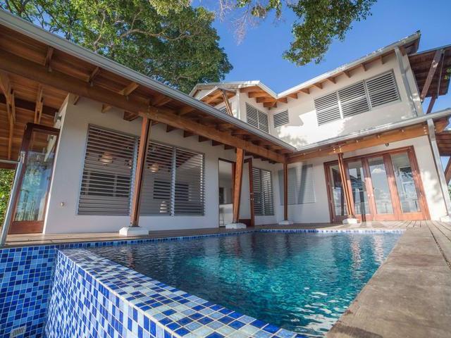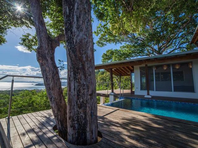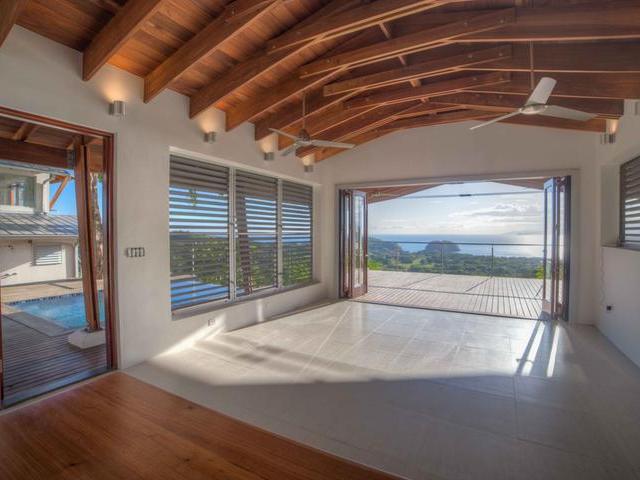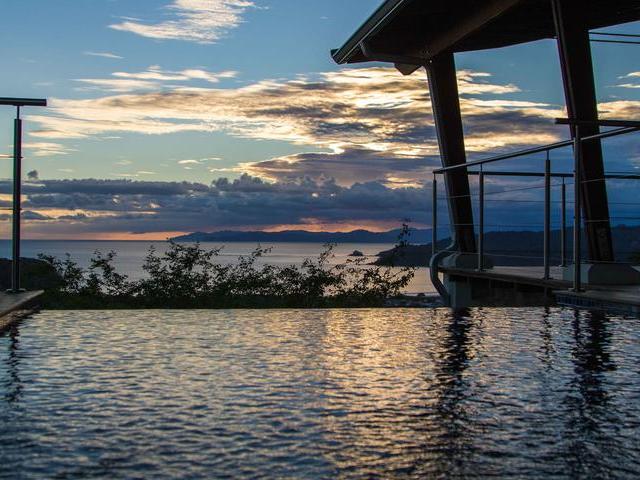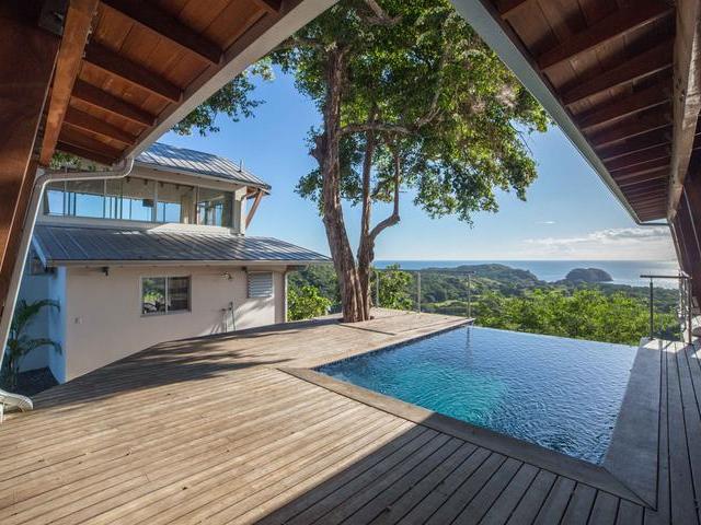 This luxurious home in Playa Venao is in a prime location at the top of the gated community Lomas de Playa Venao. The covered hardwood deck and infinity pool are simply stunning. The views from the home are among the best in the entire area. You have a commanding view of the whole bay of Playa Venao and also the hills around the bay. You’re also a short drive to the beach, but far enough into the trees so that deer and monkeys are regular visitors. This custom home was built in 2014. The builder is still one of the most sought-after in the area. The original owners own the home and they have used it sparingly as a vacation home. This is the first time it has ever come up for sale. The built area is distributed as follows: Main House: 274m2 total; 163m2 interior, 111m2 exterior. Guest House: 46m2, Car Port/Storage 60m2 The asking price of this luxurious home in Playa Venao includes furniture and appliances. Contact us for more details and to schedule a showing.