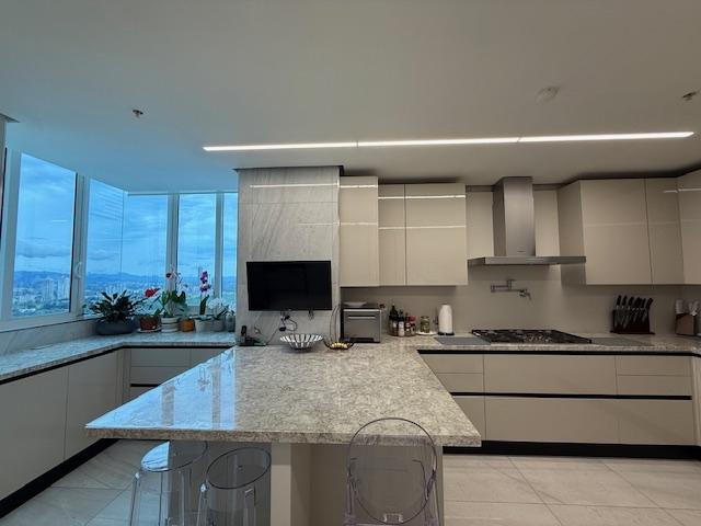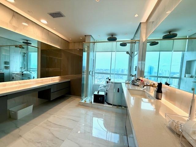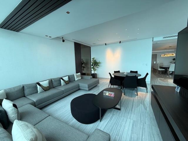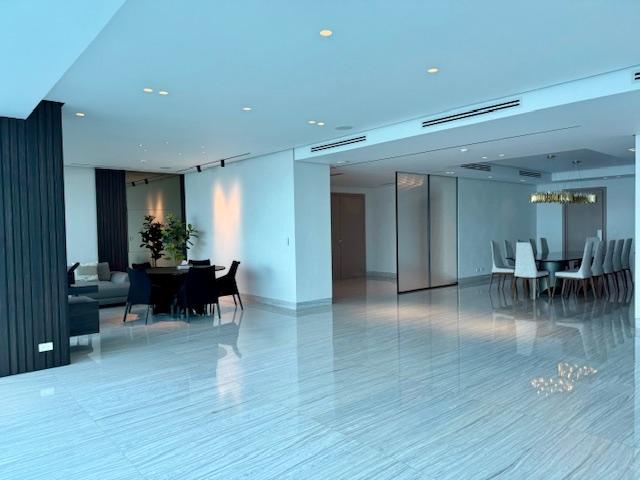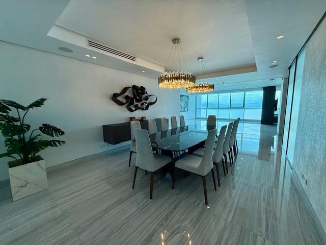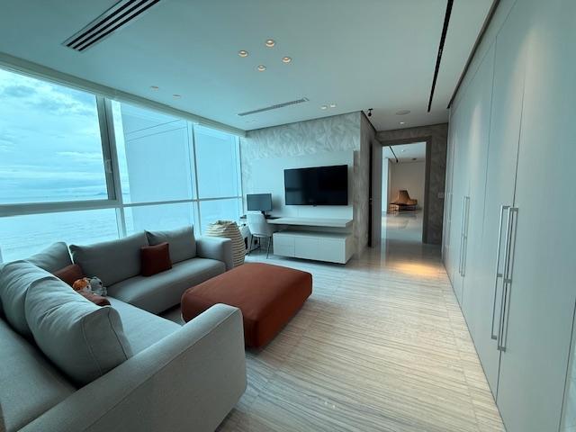 Apartment for sale in Vitri Tower, super luxurious, with many upgrades, premium quality, appliances included, in Costa del Este, oceanfront with spectacular views, two apartments per floor. 375 m2, optimal layout. 3 bedrooms with en-suite bathrooms, spacious living and dining room, den, balcony, family room, kitchen with breakfast area, guest bathroom, laundry room, maid’s quarters with bathroom, 3 parking spaces. Marble floors, all European finishes from premium brands, complete social area with heated pool and water slide, party room, children’s and teenagers’ play area, soccer, basketball, squash, and racquetball courts, sauna, steam room, cabanas, and a gym equipped with top-of-the-line equipment, high-speed elevators, resort-style social area. Super exclusive building, the tallest all-residential tower in Panama with only 90 apartments. Paseo del Mar Avenue, Costa del Este. Steps from Town Center Mall, hospital, medical offices, supermarkets, schools, restaurants, etc.