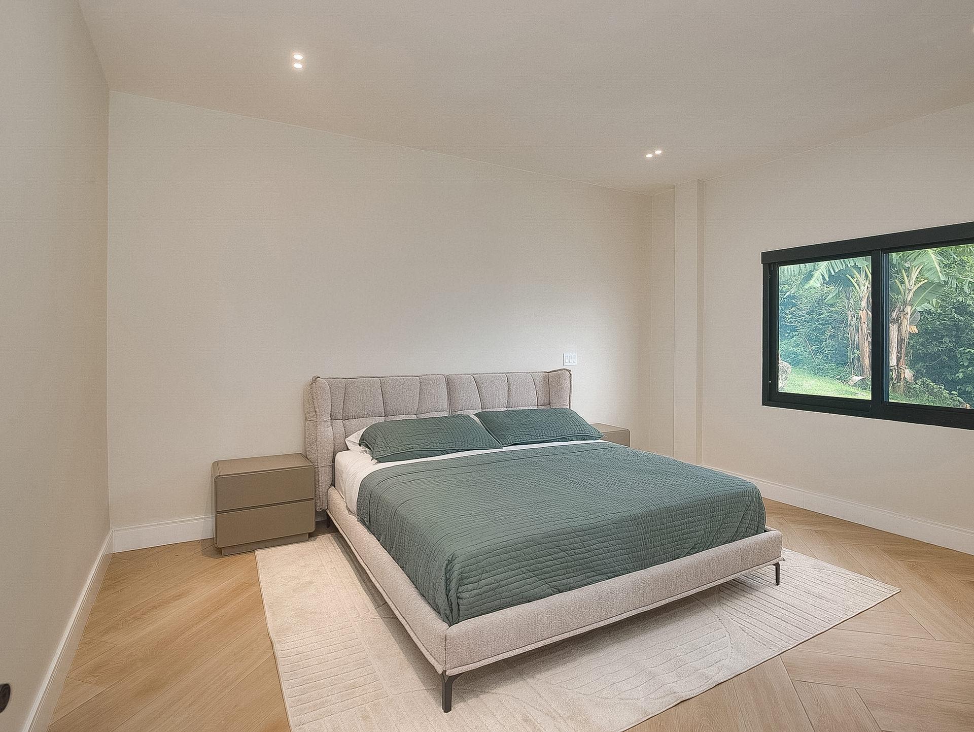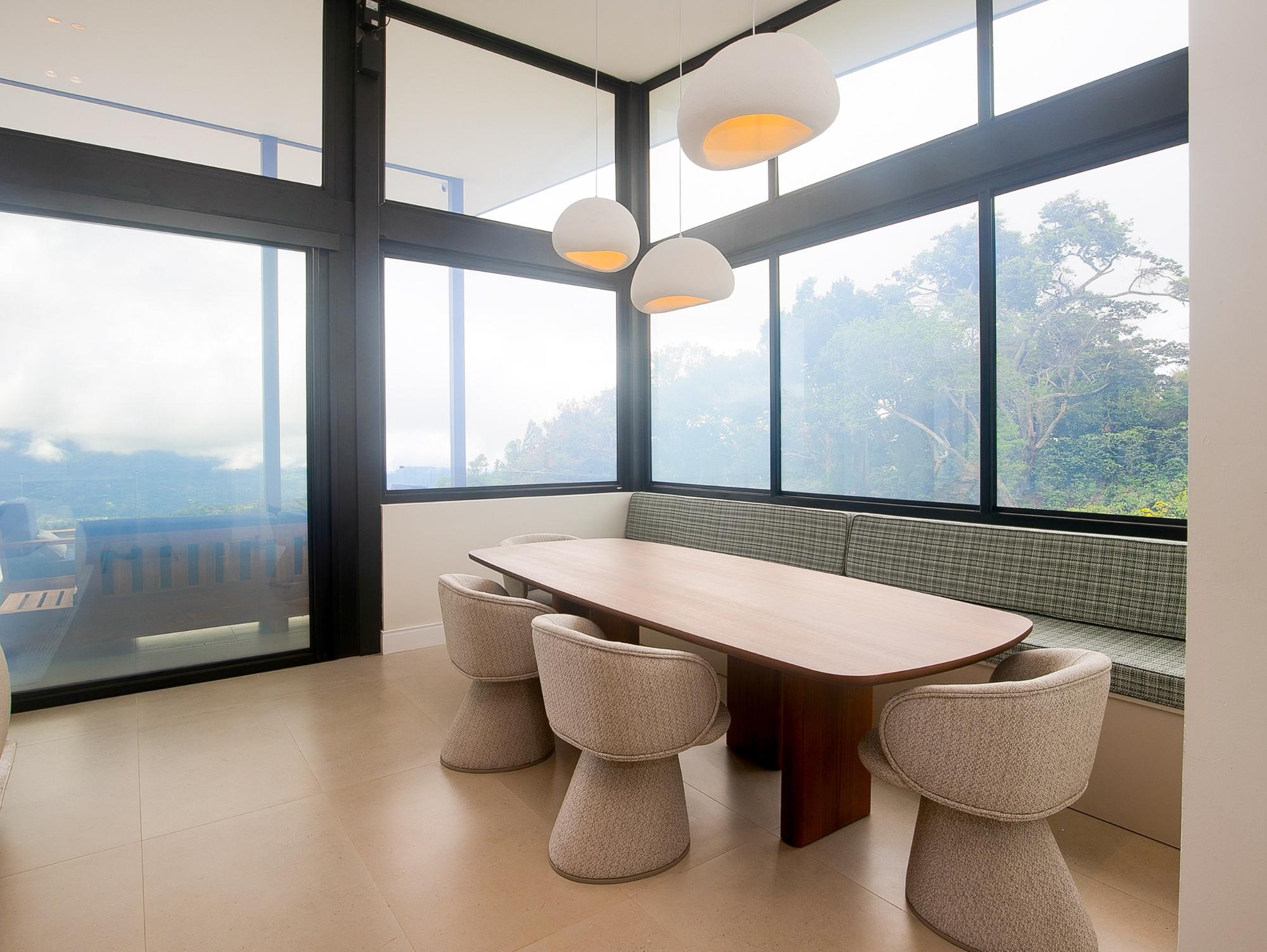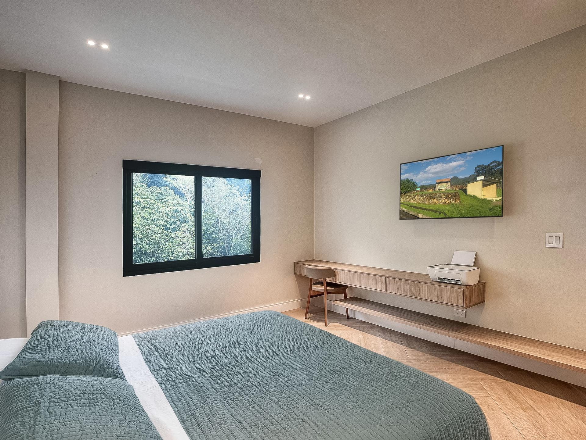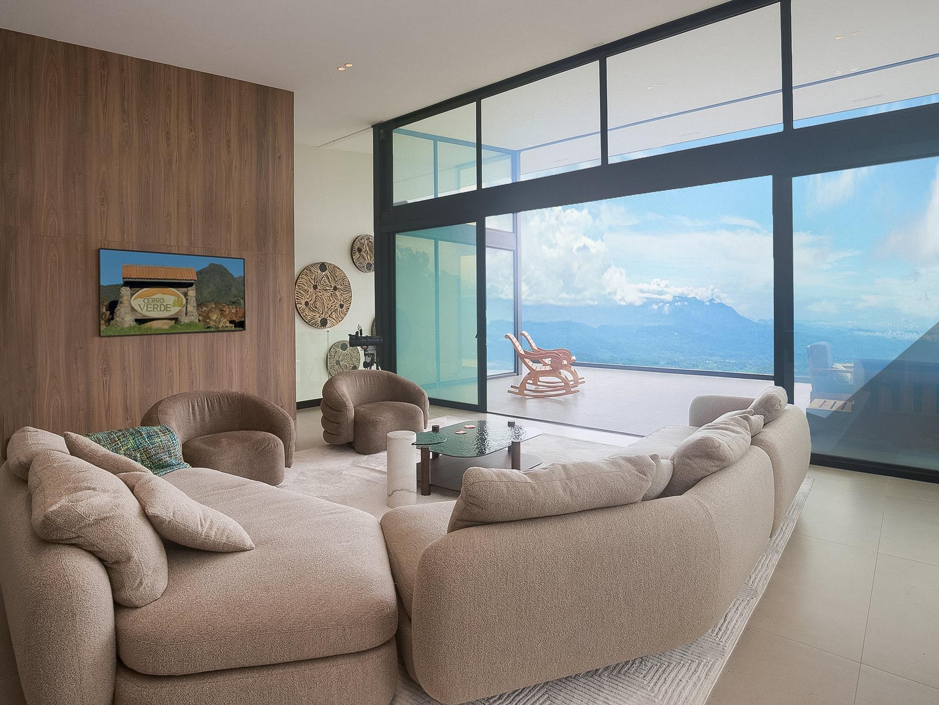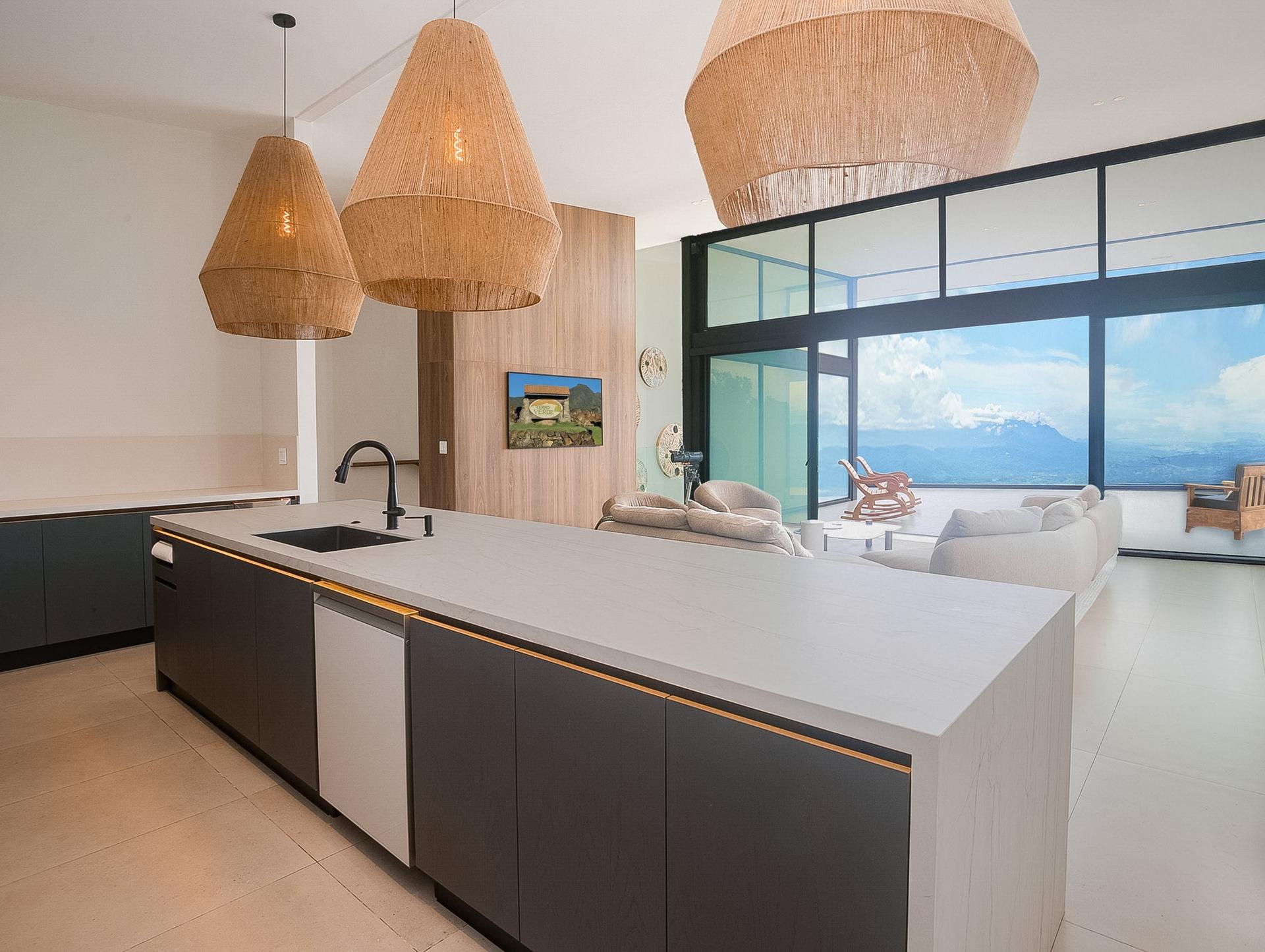 Perched in an upscale enclave in Volcancito, this contemporary home redefines mountain living. Newly constructed in 2025, this custom residence offers sweeping, unobstructed views of Boquete’s dramatic mountain landscape. With 324.5 m² of thoughtfully designed interior space and expansive tiled decks, the home captures the grandeur of the surrounding scenery from nearly every room. Walls of floor-to-ceiling glass let the outdoors in while maintaining a sleek and modern aesthetic. Step inside the stunning open-concept floor plan anchored by a high-end graphite-gray custom kitchen that is both functional and a designer’s dream. A generous walk-in pantry and laundry connect directly to the garage, adding smart flow and convenience. The showstopping primary suite features soaring vaulted ceilings and a tiled terrace to take in the views. The spa-like ensuite bathroom boasts integrated sinks, water closet, and a curbless zero-entry rain shower. Another upstairs bedroom easily doubles as a home office, complete with a built-in desk and adjacent full bath. Designed for flexibility, the lower level includes a fully self-contained lock-off apartment with its own entrance and is ideal for guests, rental income, or multigenerational living. The home is loaded with high-tech and redundant infrastructure. Every detail throughout the home speaks to high-end comfort and innovation. Outside, the yard is beautifully landscaped and fully irrigated. And your pet will thoroughly enjoy the fully walled backyard. Set within a peaceful, established neighbourhood just 10 minutes to downtown Boquete, this home is a lifestyle of thoughtful luxury, unmatched