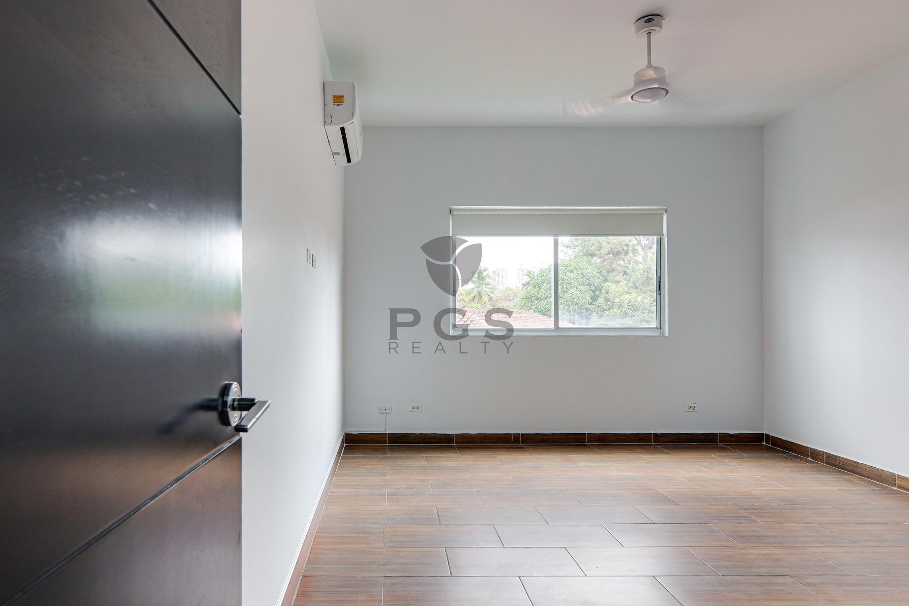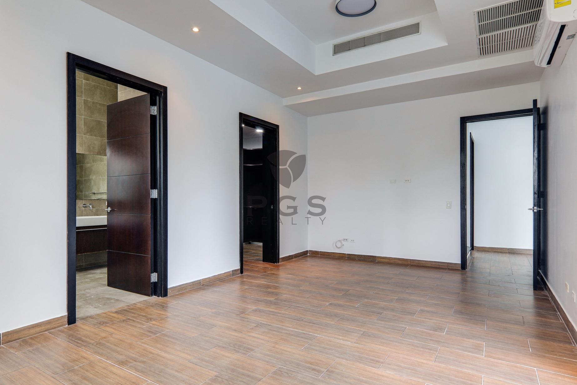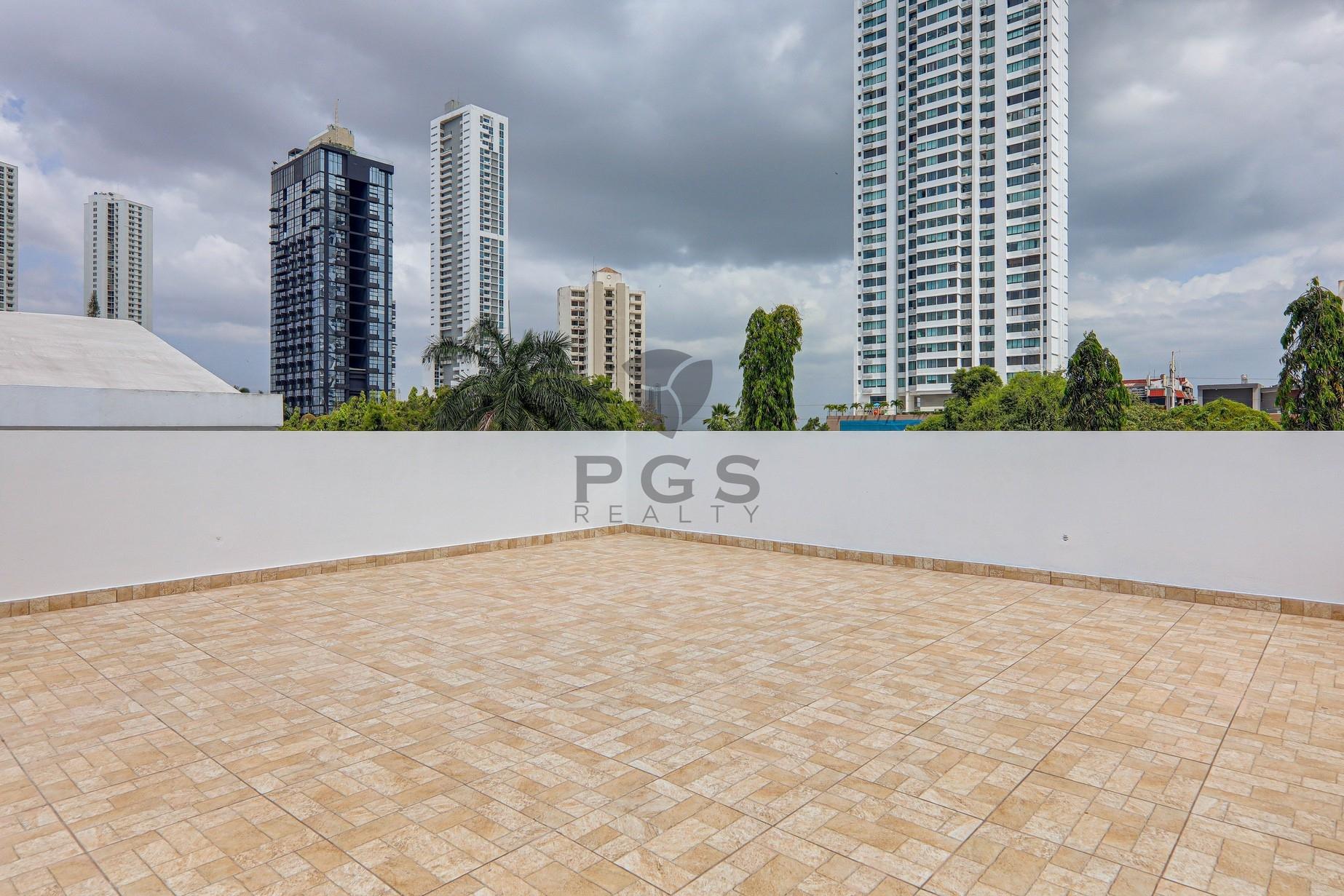 This large, three-story home with roof terrace is located in PH Minimal Houses, a small gated community of six modern townhouses within the exclusive Panama City neighborhood of Altos del Golf. The property is in very good condition and ready for immediate occupancy. Features: • 540 m2 of construction. • Four (4) bedrooms. Master bedroom features a huge walk-in closet. • Three (3) full bathrooms: two are in-suite and one is shared. • Half-bathroom in family room close to covered terrace. • Spacious modern kitchen and large dining area. • Split-level living room and large family room. • Private swimming pool. • BBQ area and outdoor covered dining space. • Huge rooftop terrace with views of the city skyline. • Rooftop studio, perfect for a home office, exercise room or play room. • Two (2) private parking spaces with remote-controlled access gate. • 24-hour security.
