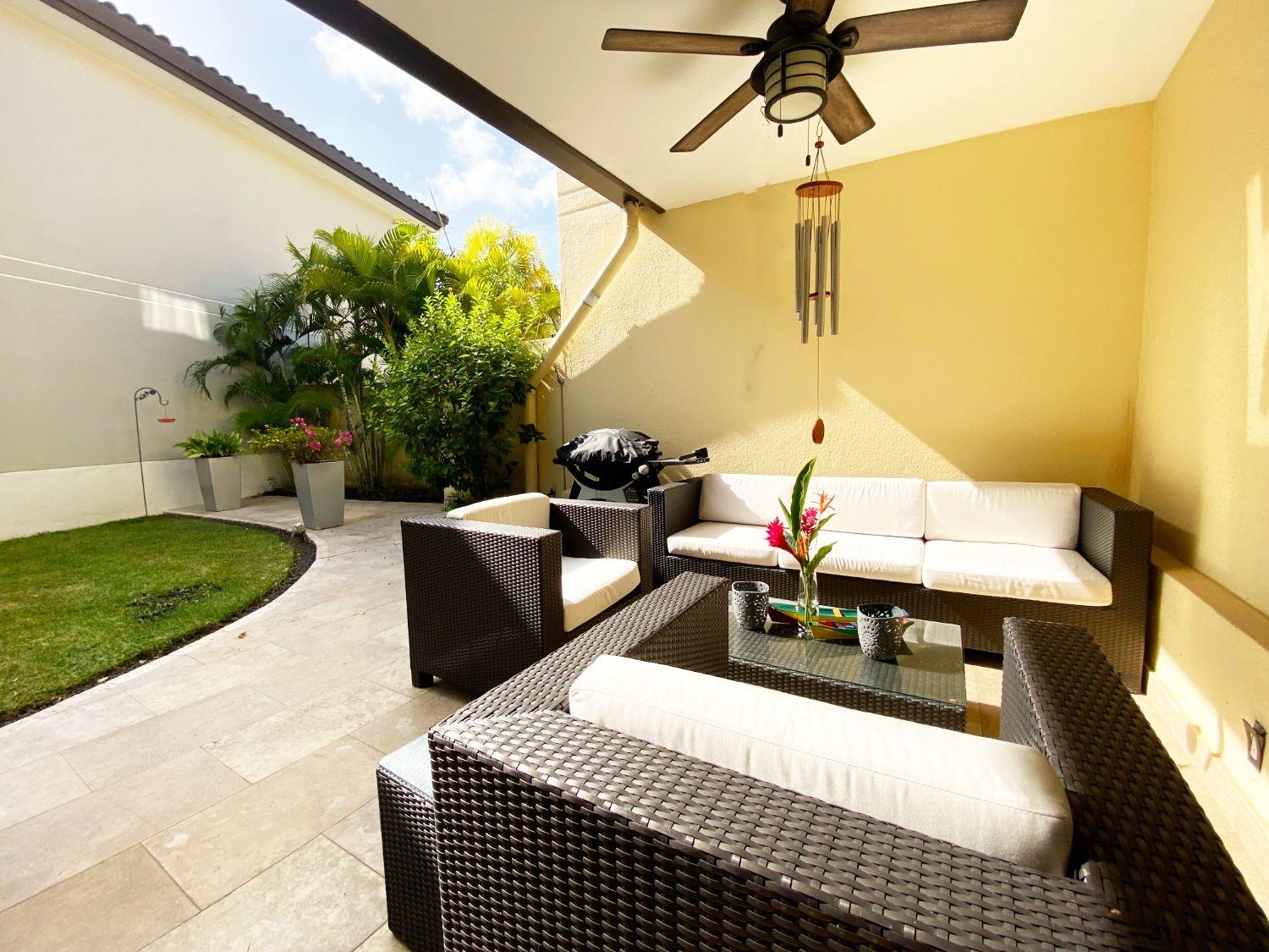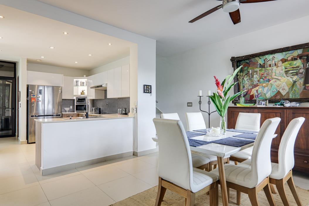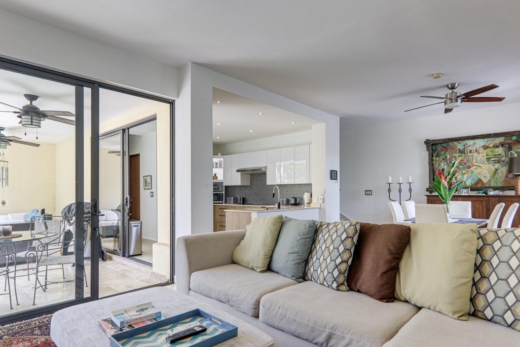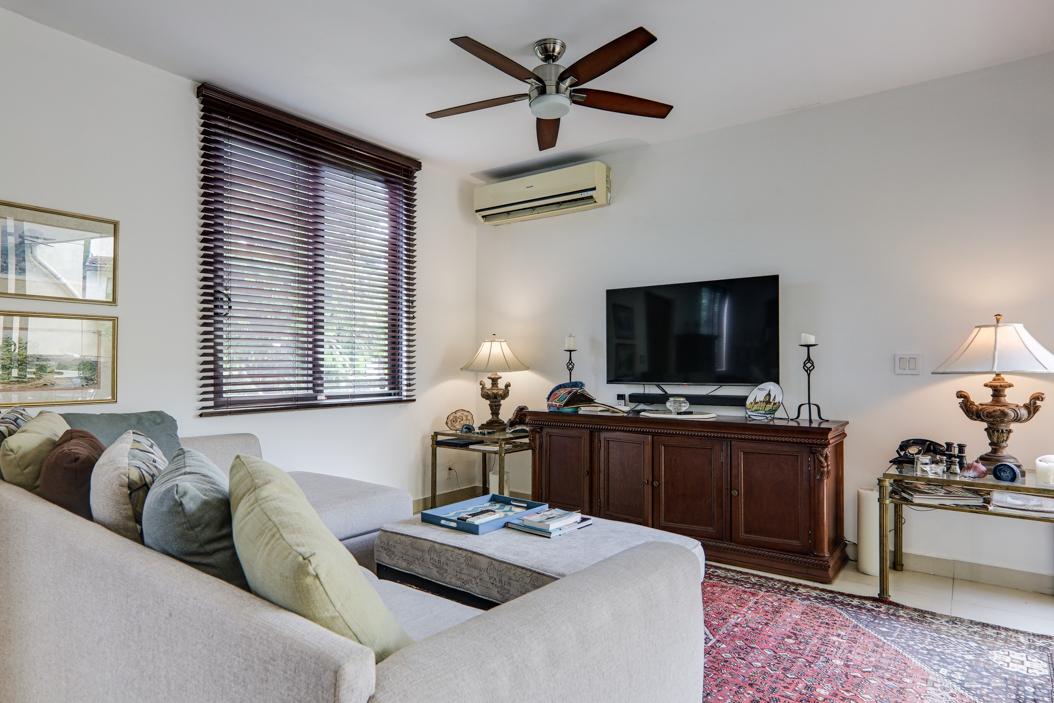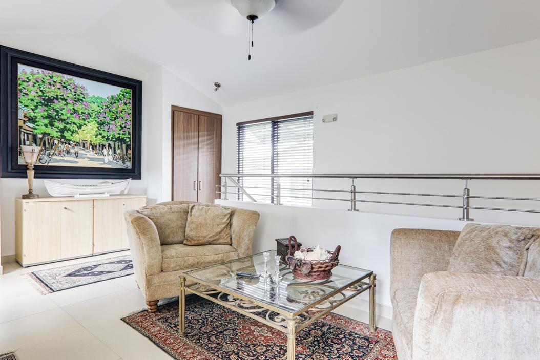 Enjoy the best of both worlds—nature at your doorstep and the city within easy reach—in this modernized two-story home in the sought-after River Valley neighborhood of Panama Pacífico. Set on one of the largest lots in the area, this fully detached home features a landscaped garden, terrace with travertine tiles, and parking for up to four vehicles. Inside, the open-plan layout connects the living, dining, and kitchen areas, with large sliding doors opening to the outdoor space. The brand-new German BLUM kitchen includes sleek cabinetry, induction cooktop, and built-in oven. A full service area with laundry, pantry, and staff quarters adds functionality. Upstairs, a den connects three bedrooms, including a spacious primary suite with walk-in closet and en-suite bath. The home is well maintained and easy to manage, with low-cost gardener and cleaning services in place.