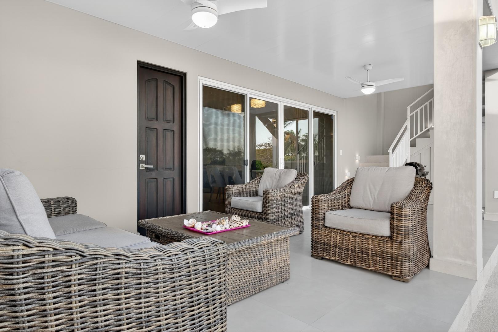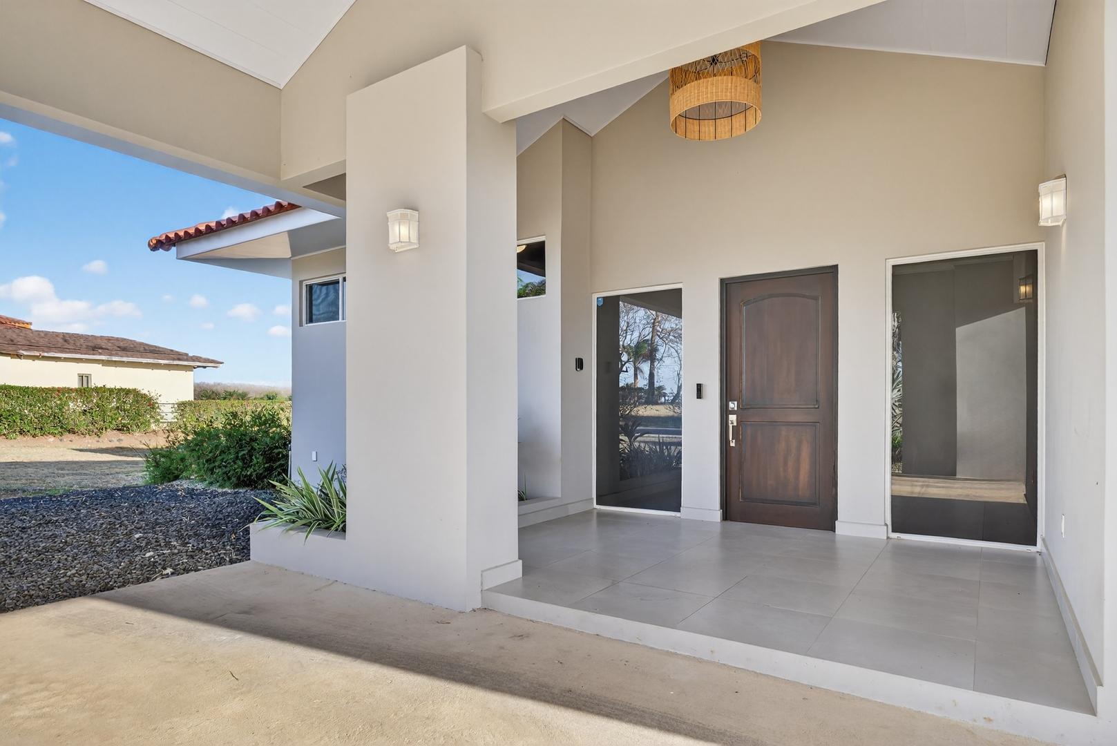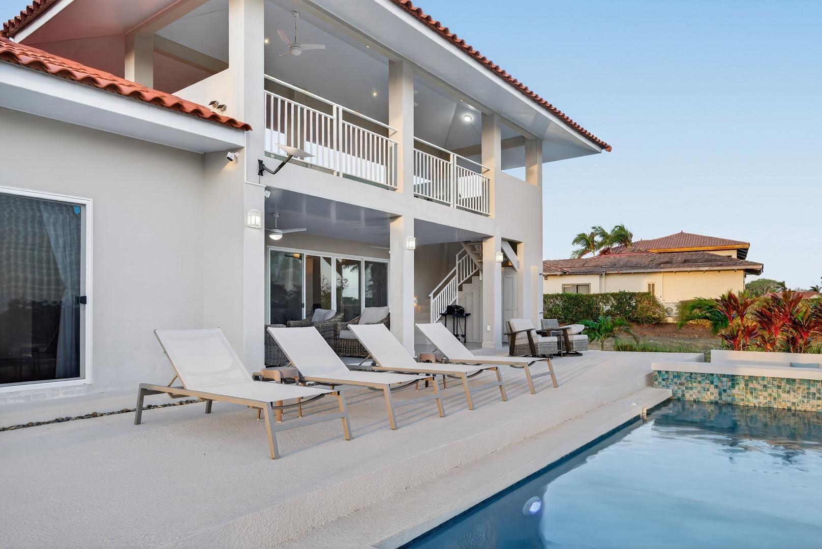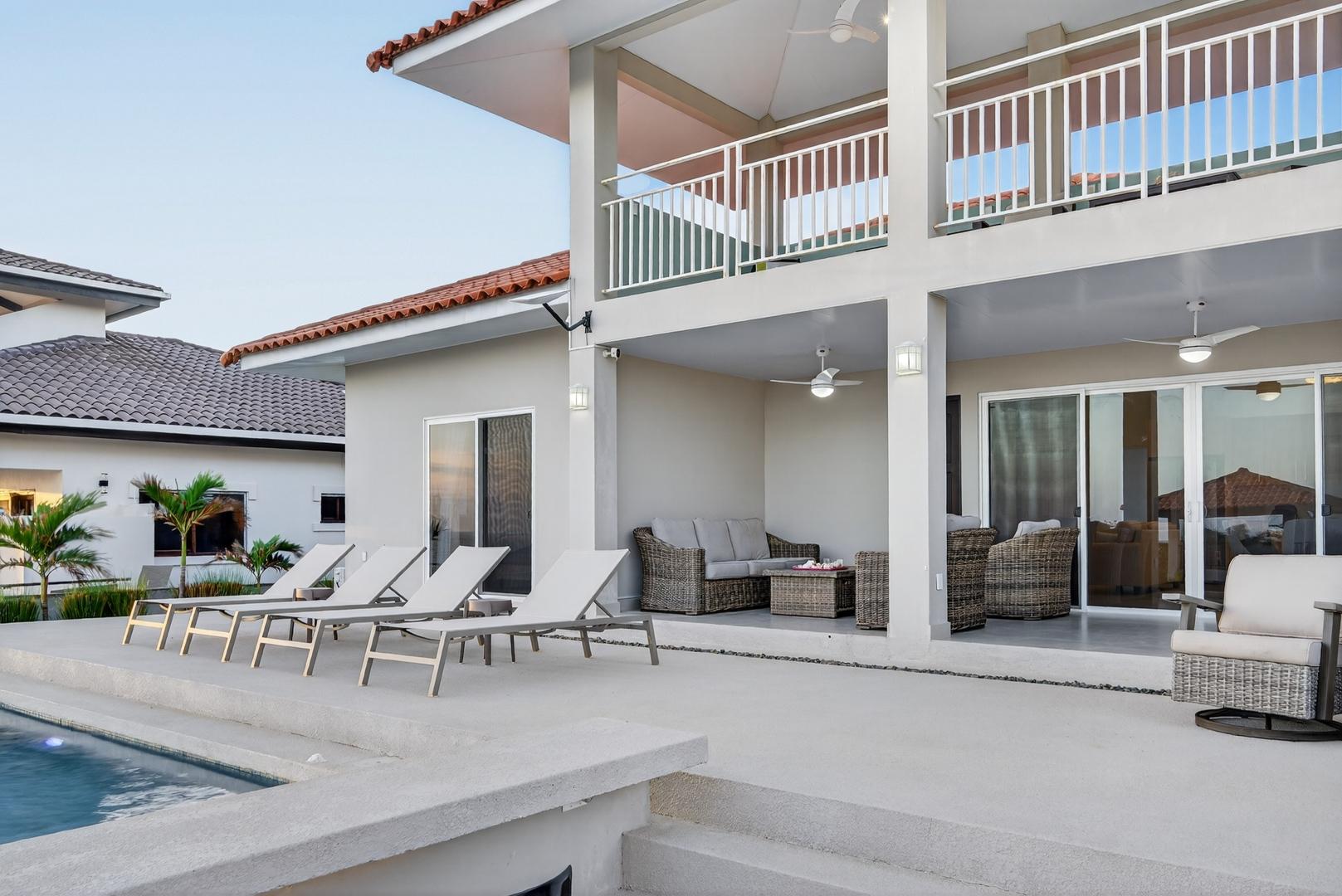 Completed in 2024–2025, this professionally designed ocean view home is located in Andromeda Ocean Estates, minutes from the beach and positioned to capture wide Pacific views, steady breezes, and direct sightlines toward Iguana Island. Set on an 841.76 m2 lot with approximately 230 m2 of construction, the home was designed for entertaining and comfortable everyday living. The layout blends indoor and outdoor areas, creating gathering spaces while maintaining privacy. The main terrace opens to a private elevated pool deck overlooking the ocean with unobstructed views and steady airflow. Integrated lighting enhances evening ambiance. A sunken lounge with built-in seating and a central fire feature overlooks both the pool and ocean horizon. The community beach club is nearby and visible from the property. Inside, high ceilings and sliding glass doors frame pool and ocean views. The kitchen integrates with the living and dining areas, and large sliding doors create seamless indoor-outdoor flow. The home includes 3 bedrooms and 2.5 bathrooms. The primary bedroom features ocean views and direct outdoor access. Secondary bedrooms are well sized and private. Concrete block construction with clay shingle roof. Electricity through Naturgy, community water, backup tank, central propane, filtration and irrigation systems. Carport for 2 vehicles. Monthly maintenance approximately $195.