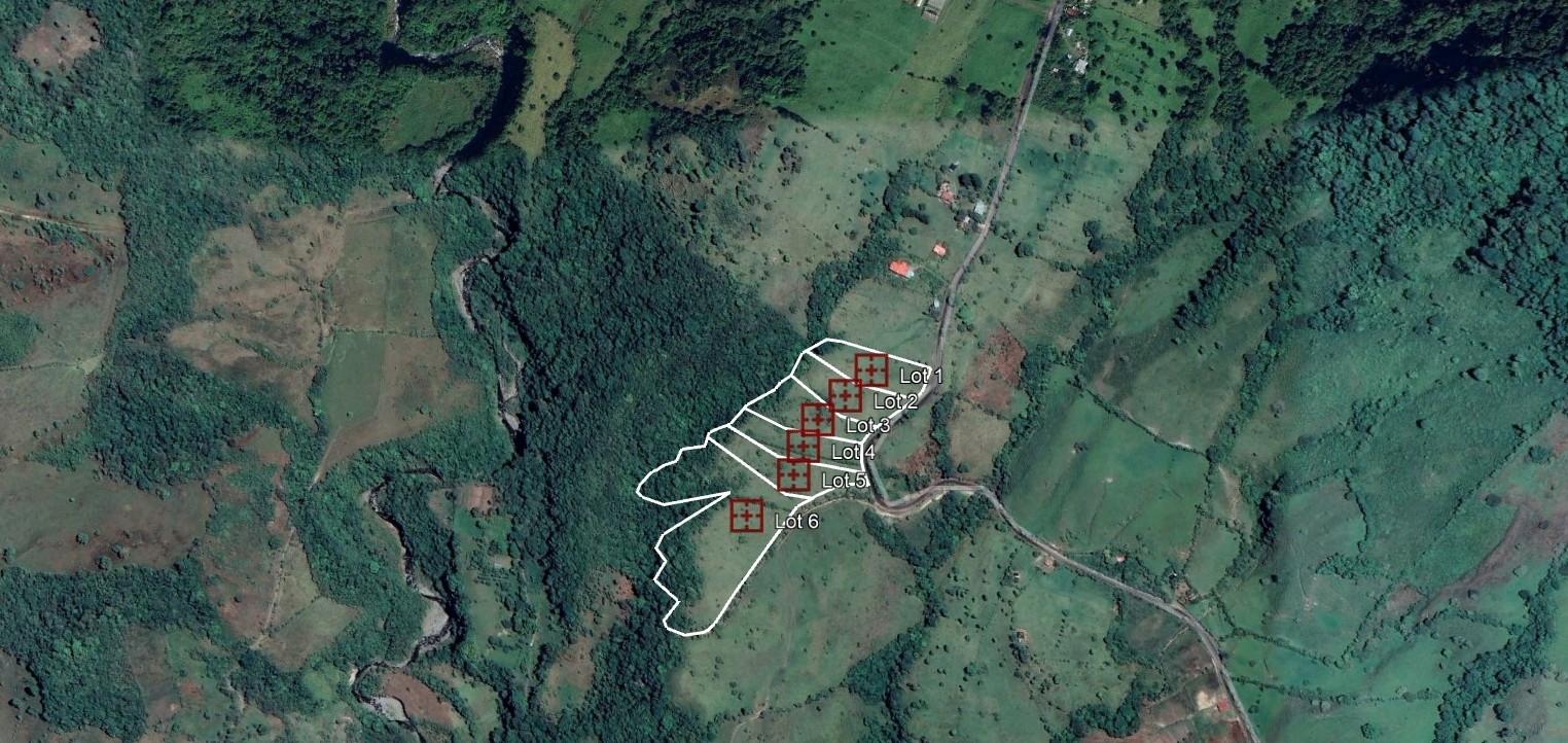 Discover a unique opportunity in the highlands of Cordillera Arriba, Boquerón – Chiriquí, where nature, comfort, and privacy exist in perfect harmony. These residential country lots, currently being subdivided, range from 7,340 m² to 3 hectares (1.8 to 7.4 acres) and are located at an approximate altitude of 1,300 meters above sea level, guaranteeing a cool climate year-round and unparalleled views. Lot 1 = 7,340m2 (1.81 ac) $132,200.00 Lot 2 = 8,118m2 (2.00 ac) $146,200.00 Lot 3 = 7,898m2 (1.95 ac) $142,200.00 Lot 4 = 7,700m2 (1.90 ac) $130,900.00 Lot 5 = 8,476m2 (2.09 ac) $152,600.00 Lot 6 = 30,367m2 (7.5 ac) SOLD Located just 9 kilometers (~5.6 miles) or 15 minutes from downtown Volcán, the property has access via paved road, offering excellent connectivity without losing its quiet and natural atmosphere. From each lot, you’ll enjoy panoramic views of the mountains, the Barú Volcano, and even the Pacific Ocean on clear days. One side of the property is bordered by a seasonal stream and a small, tree-lined canyon, creating a natural barrier and a serene, private setting. The gently rolling topography is ideal for building elevated homes with scenic views. Basic infrastructure is already available: water from the rural aqueduct, electricity at the edge of each lot, and high-speed internet via satellite (Starlink) or antenna. The area is surrounded by beautiful waterfalls, nature trails, and tourist attractions, making it a preferred destination for nature lovers, local residents, and foreigners seeking space, tranquility, and beauty.