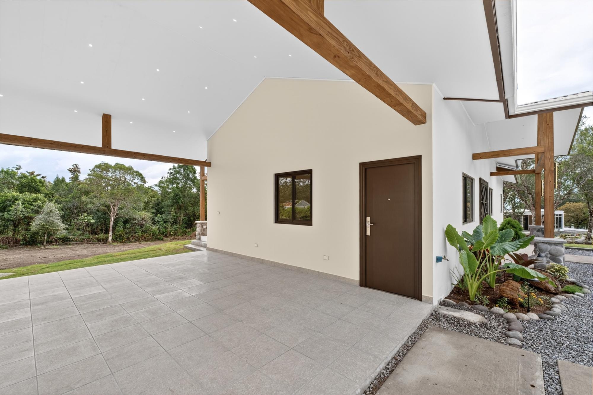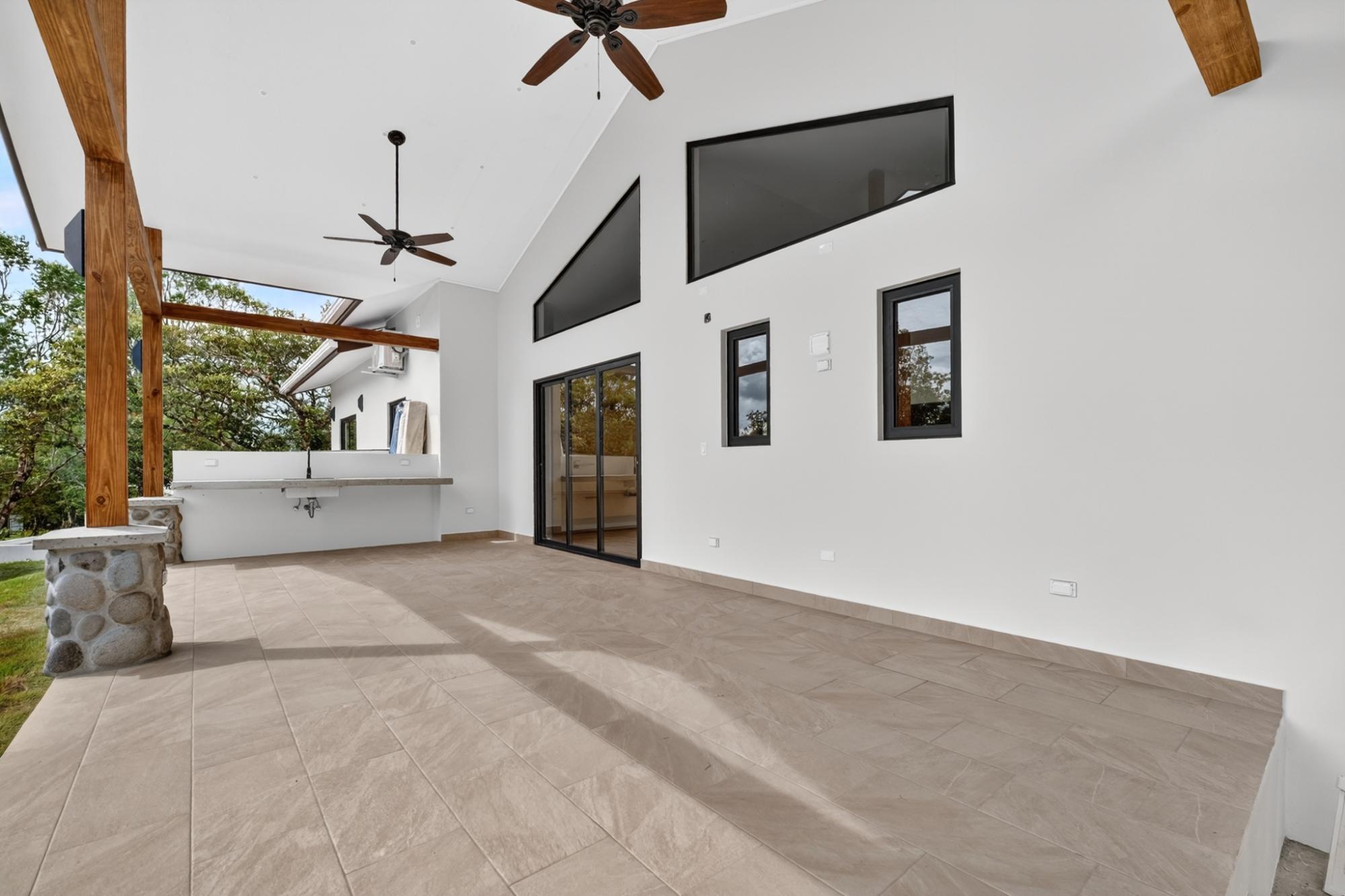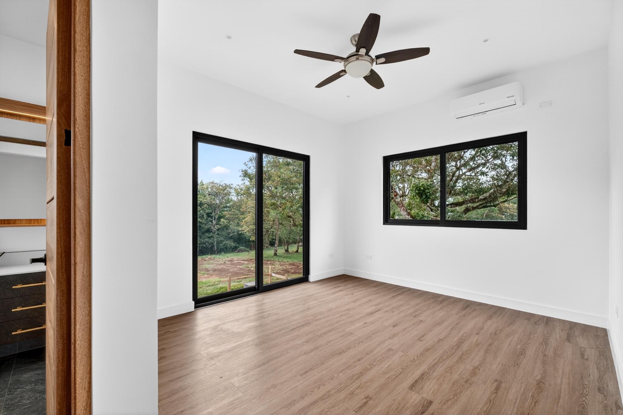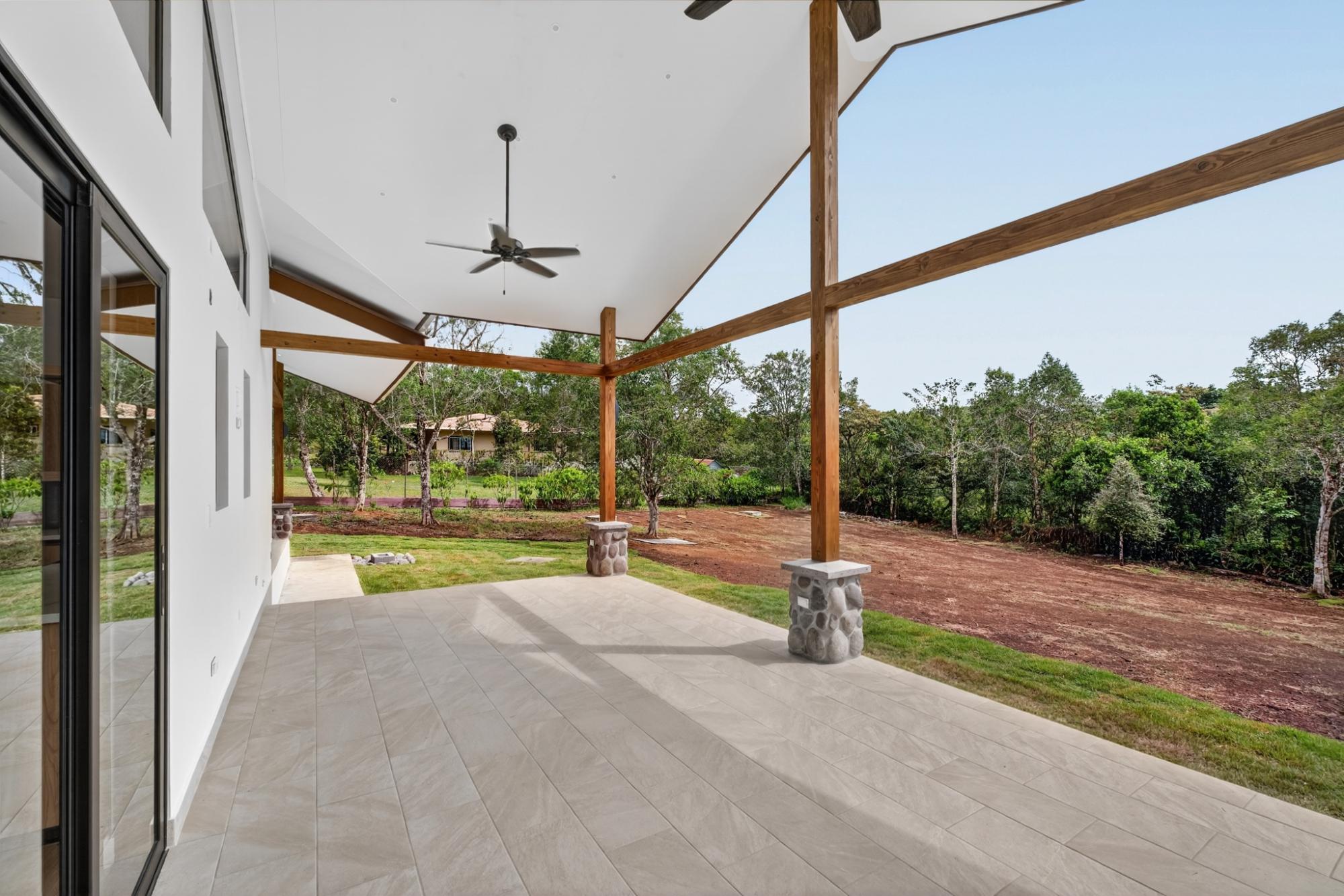Modern Potrerillos Home with Exceptional Finishes. Located in a small gated community in the peaceful highlands of Potrerillos, this brand new two bedroom, two bathroom home sits on a generous 3,027 m2 lot offering privacy and a tranquil natural setting within easy reach of Boquete and David. Clean architectural lines, warm wood accents, and stone detailing create an inviting presence. Inside, a light filled open concept design features soaring ceilings and expansive windows framing lush greenery. The living space flows seamlessly to a covered terrace with outdoor sink and prep area, perfect for entertaining. The modern kitchen offers custom cabinetry, sleek countertops, and a large central island. Bathrooms are beautifully finished with glass enclosed showers, custom vanities, and designer tile. A dedicated laundry room adds convenience to this thoughtfully designed home.