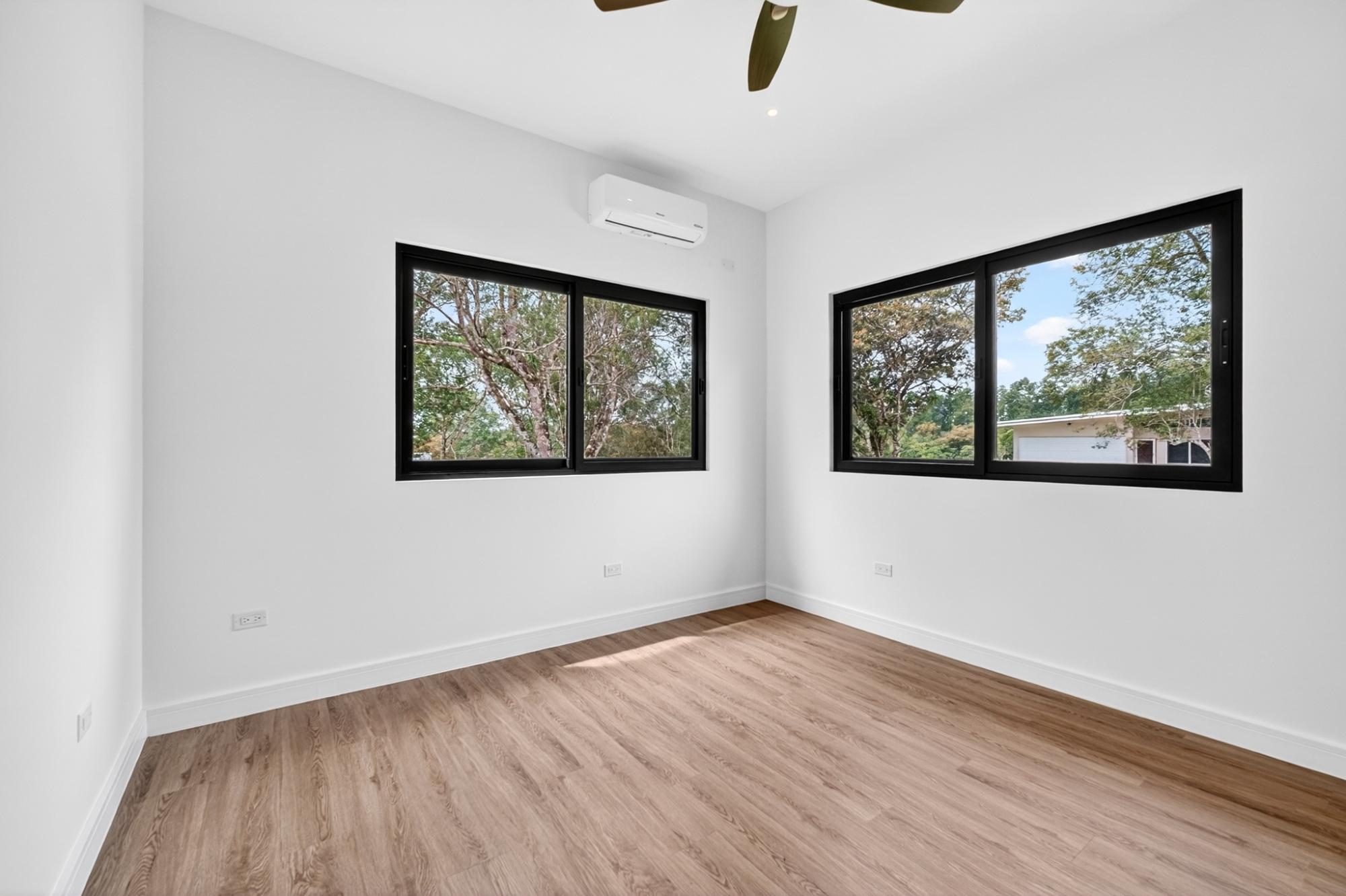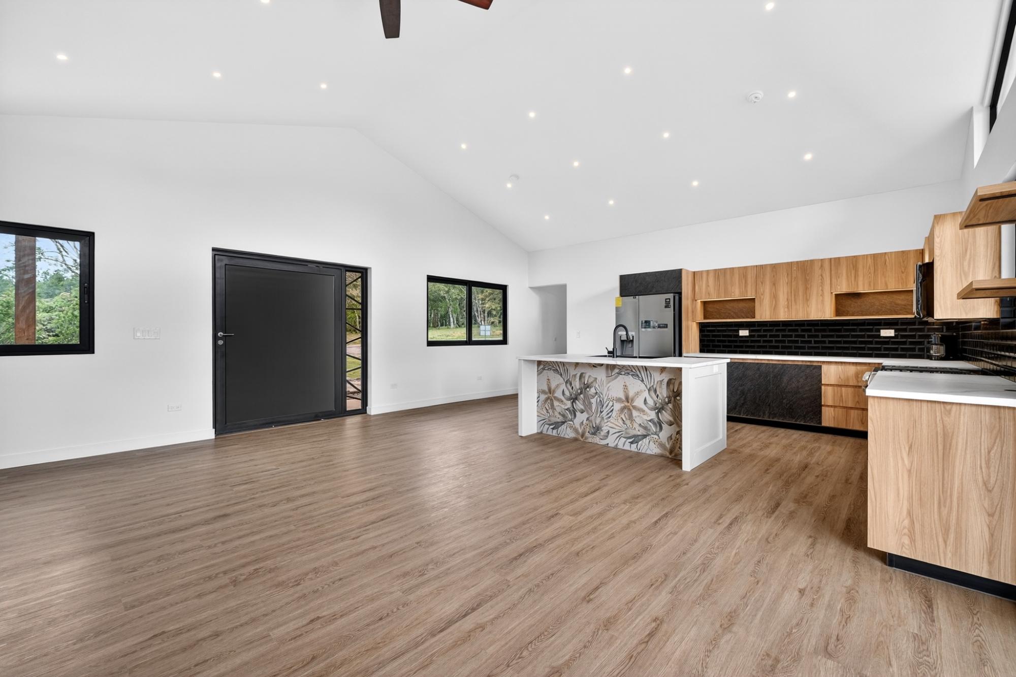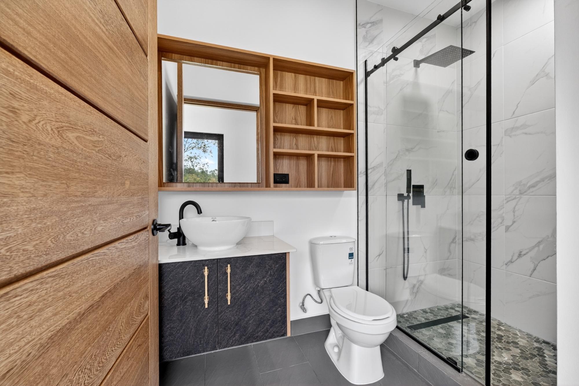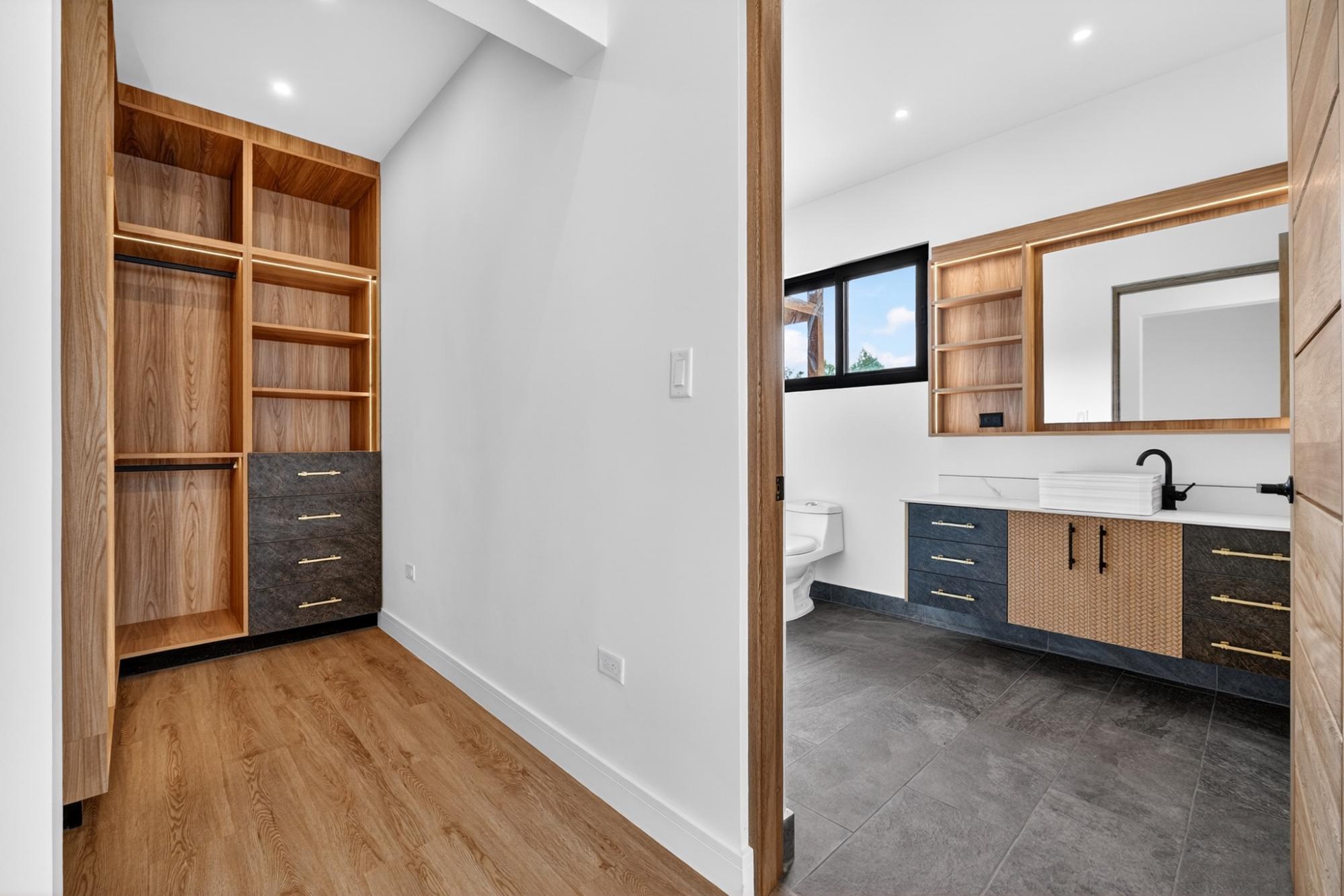 Modern Potrerillos Home with Exceptional Finishes. Located in a small gated community in the peaceful highlands of Potrerillos, this brand new two bedroom, two bathroom home sits on a generous 3,027 m2 lot offering privacy and a tranquil natural setting within easy reach of Boquete and David. Clean architectural lines, warm wood accents, and stone detailing create an inviting presence. Inside, a light filled open concept design features soaring ceilings and expansive windows framing lush greenery. The living space flows seamlessly to a covered terrace with outdoor sink and prep area, perfect for entertaining. The modern kitchen offers custom cabinetry, sleek countertops, and a large central island. Bathrooms are beautifully finished with glass enclosed showers, custom vanities, and designer tile. A dedicated laundry room adds convenience to this thoughtfully designed home.