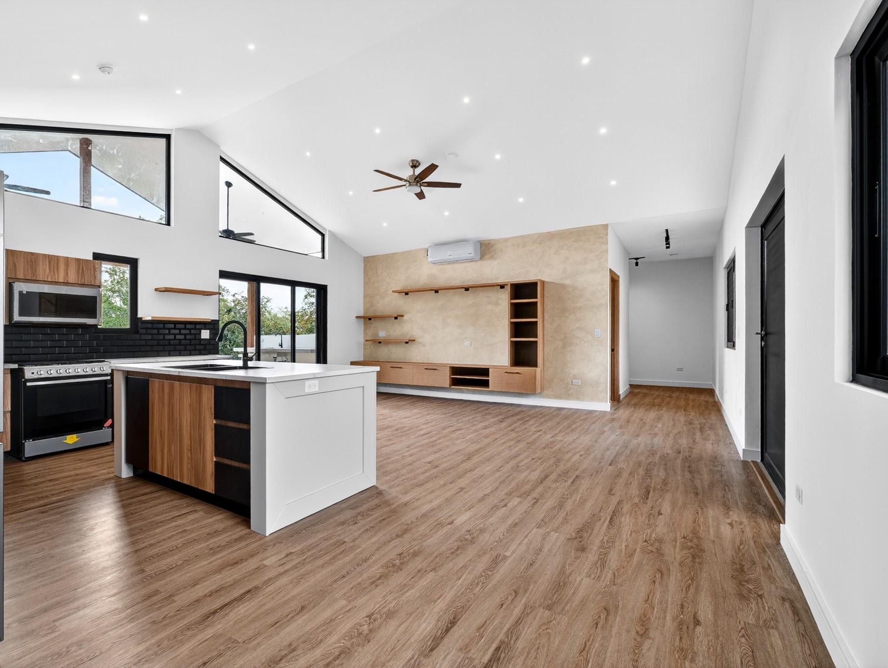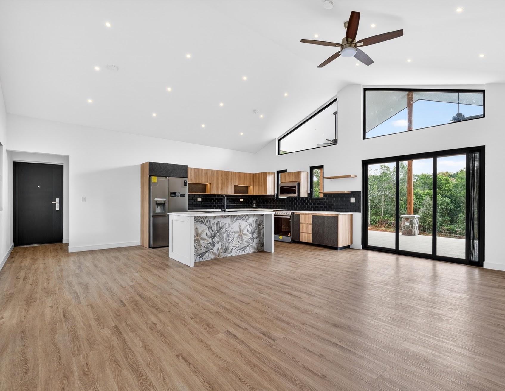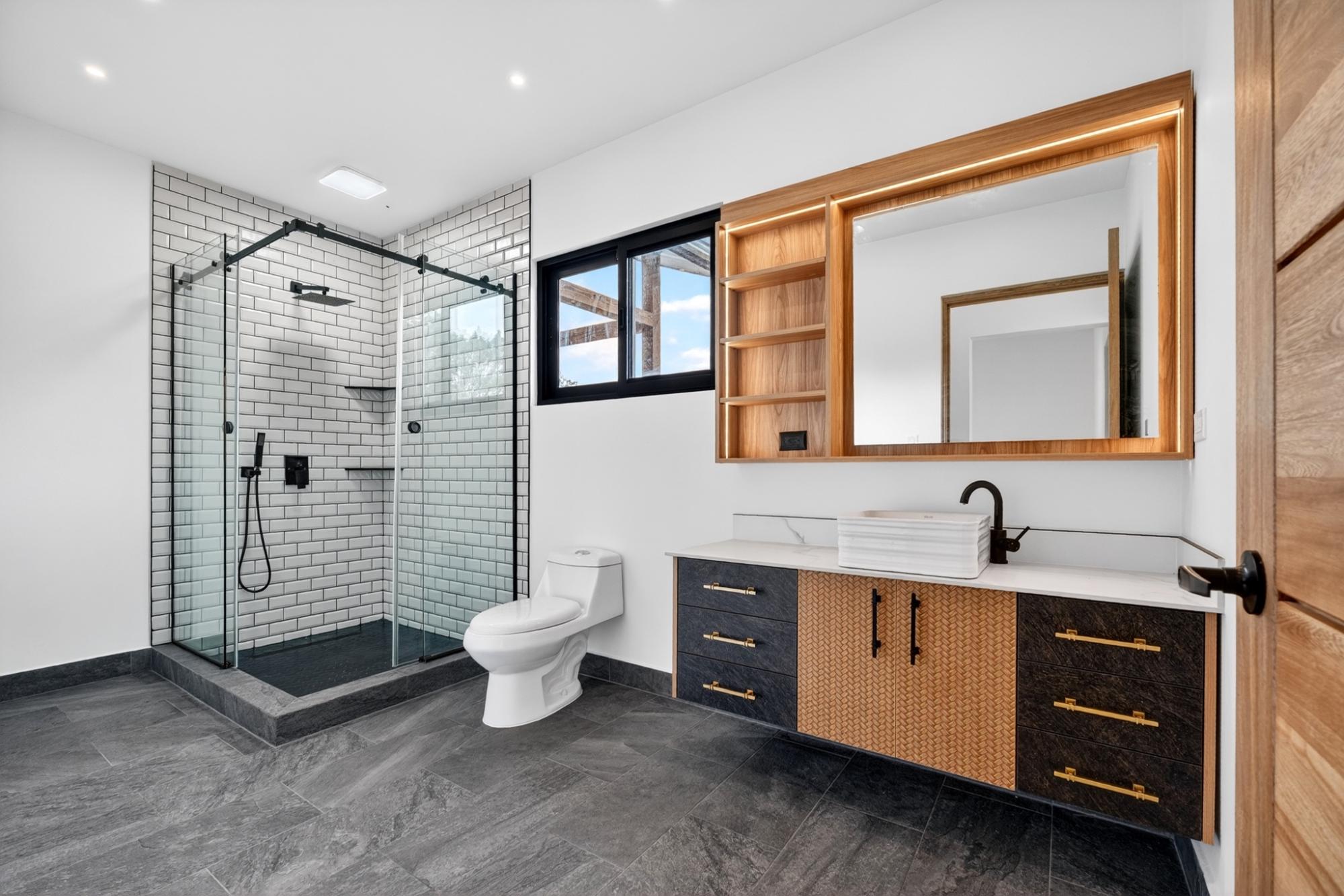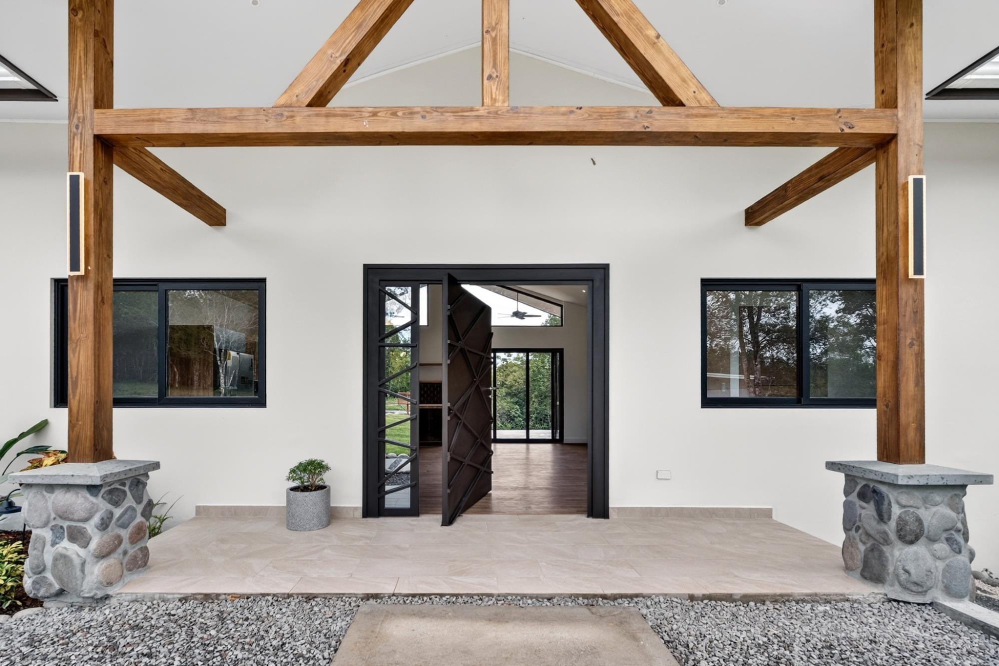 Modern Potrerillos Home with Exceptional Finishes. Located in a small gated community in the peaceful highlands of Potrerillos, this brand new two bedroom, two bathroom home sits on a generous 3,027 m2 lot offering privacy and a tranquil natural setting within easy reach of Boquete and David. Clean architectural lines, warm wood accents, and stone detailing create an inviting presence. Inside, a light filled open concept design features soaring ceilings and expansive windows framing lush greenery. The living space flows seamlessly to a covered terrace with outdoor sink and prep area, perfect for entertaining. The modern kitchen offers custom cabinetry, sleek countertops, and a large central island. Bathrooms are beautifully finished with glass enclosed showers, custom vanities, and designer tile. A dedicated laundry room adds convenience to this thoughtfully designed home.