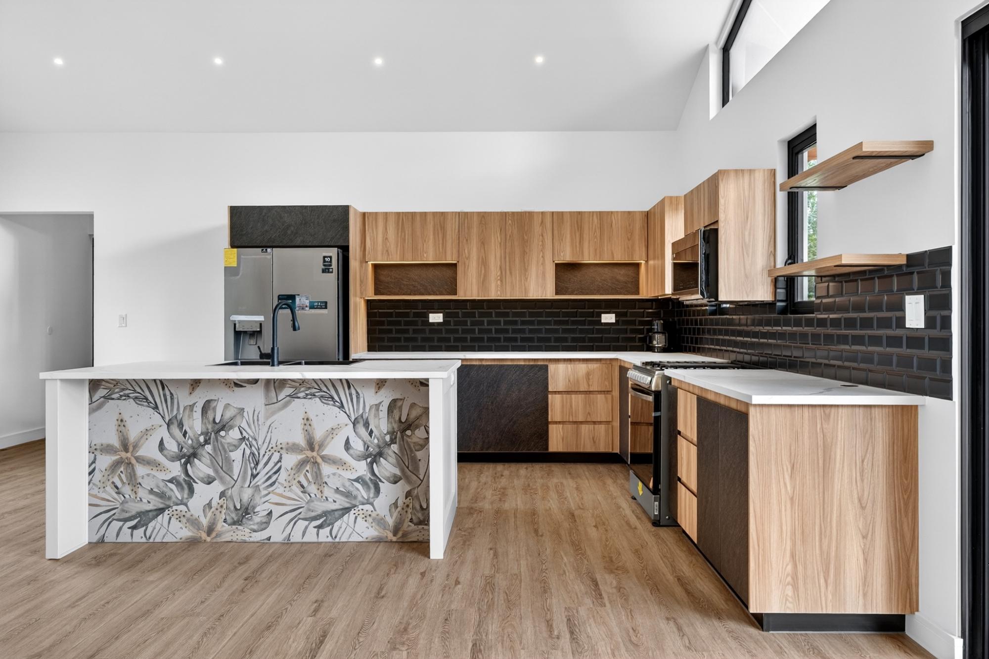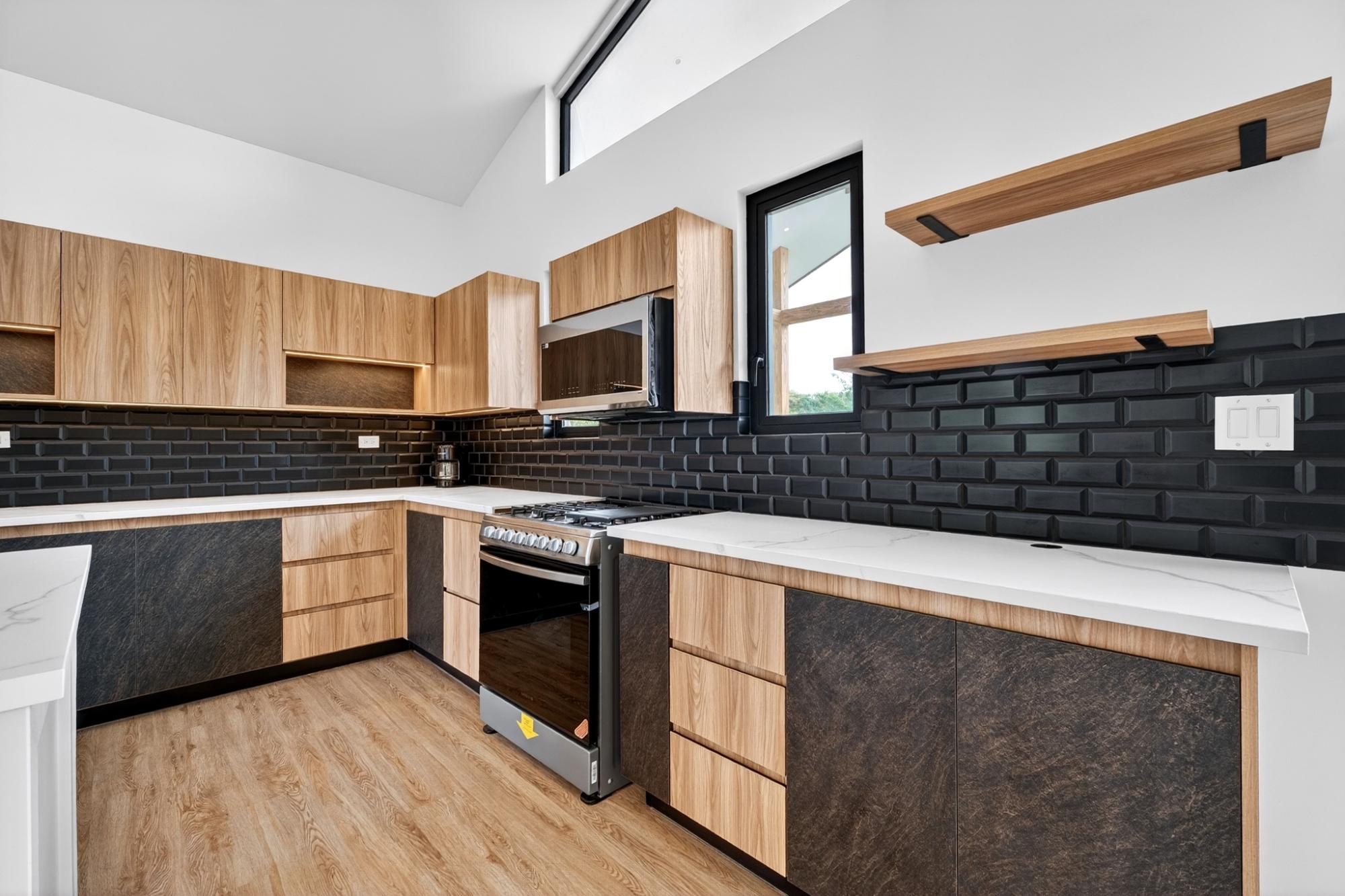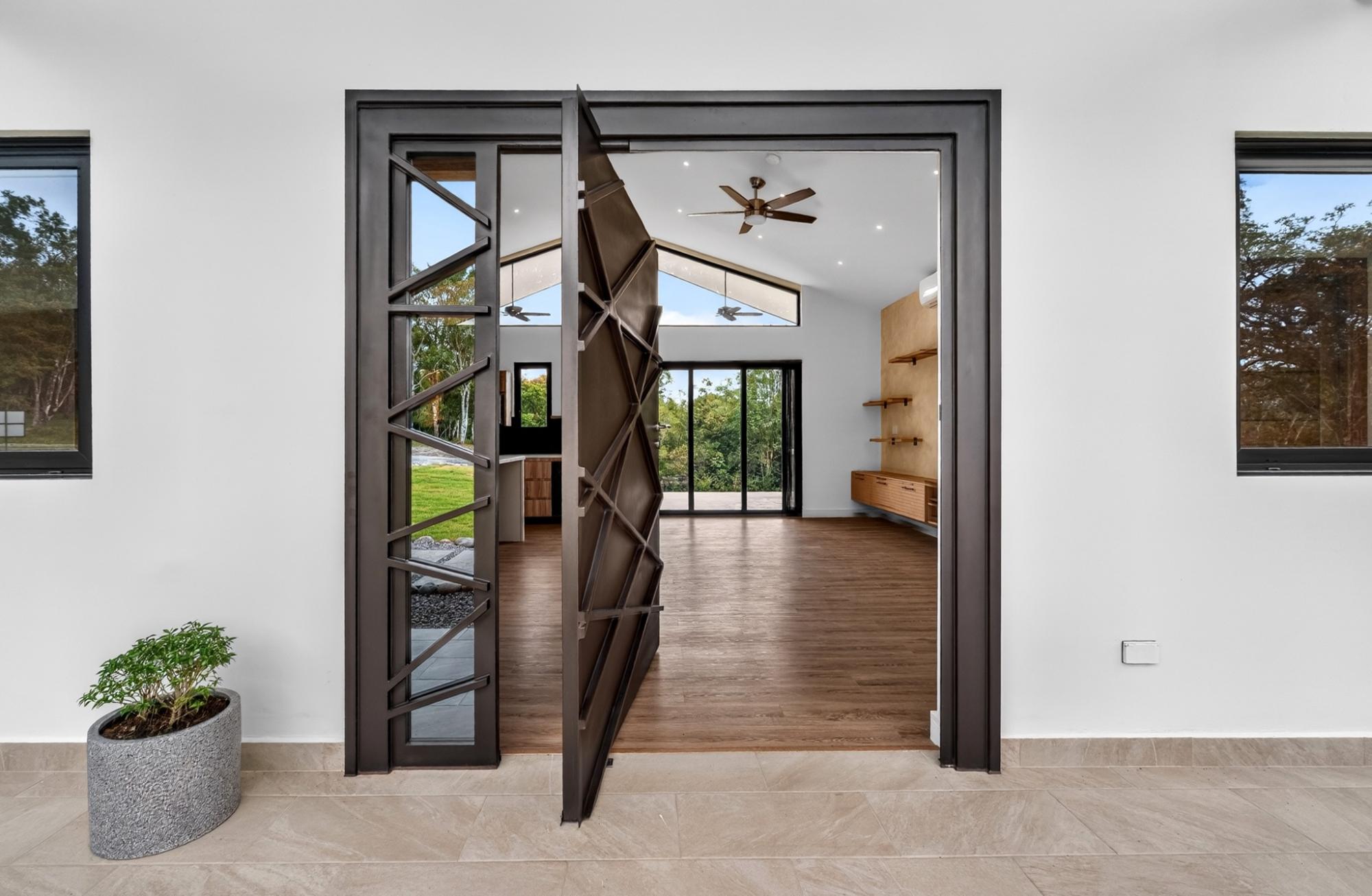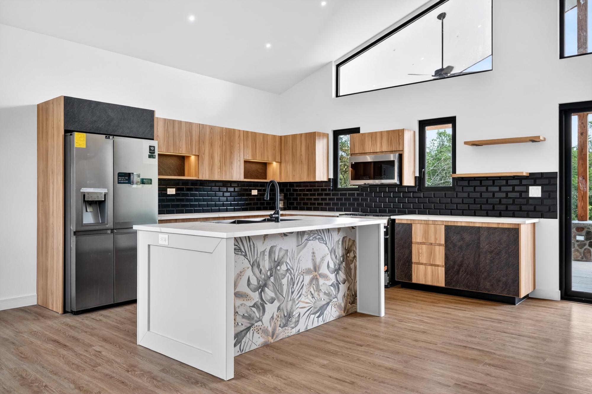 Modern Potrerillos Home with Exceptional Finishes. Located in a small gated community in the peaceful highlands of Potrerillos, this brand new two bedroom, two bathroom home sits on a generous 3,027 m2 lot offering privacy and a tranquil natural setting within easy reach of Boquete and David. Clean architectural lines, warm wood accents, and stone detailing create an inviting presence. Inside, a light filled open concept design features soaring ceilings and expansive windows framing lush greenery. The living space flows seamlessly to a covered terrace with outdoor sink and prep area, perfect for entertaining. The modern kitchen offers custom cabinetry, sleek countertops, and a large central island. Bathrooms are beautifully finished with glass enclosed showers, custom vanities, and designer tile. A dedicated laundry room adds convenience to this thoughtfully designed home.