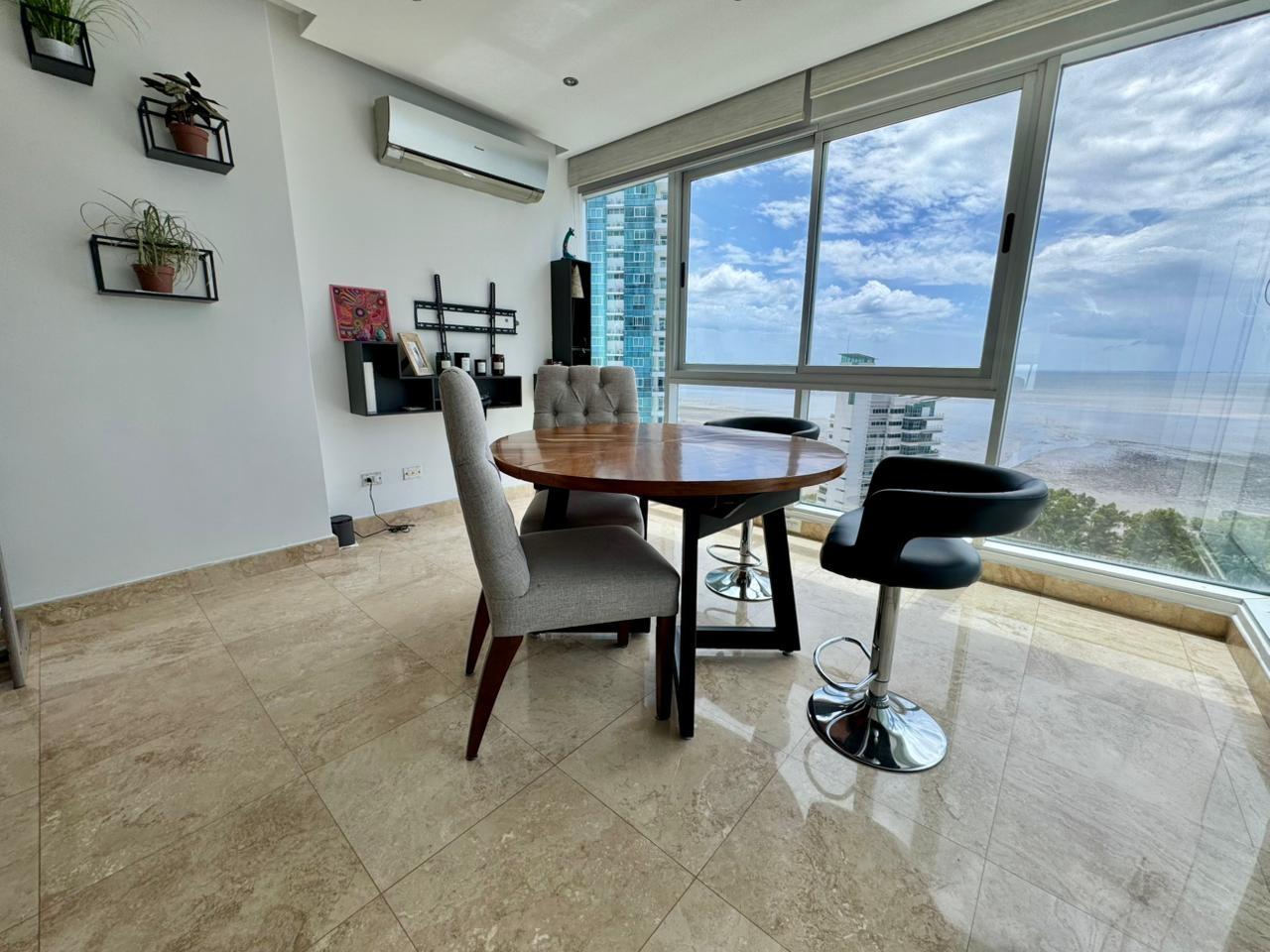 Size: 226 m² 2 parking spaces Property Features 3 spacious bedrooms designed for relaxation 3.5 bathrooms with modern finishes Living-dining room with direct access to the balcony Balcony with spectacular ocean and social area views Den (ideal for an office or family room) Remodeled and equipped kitchen Maid’s quarters with bathroom Internal laundry room 2 underground parking spaces This home offers elegance, spaciousness, and comfort in every detail, combining functional spaces with a privileged ocean view. Social Area Amenities Swimming pool for adults and children Fully equipped gym Party room BBQ area Spaces for family recreation Building Features 24/7 security and surveillance Elegant lobby High-speed elevators Excellent maintenance Generator and water reserve tank Living in Costa del Este is synonymous with comfort and prestige: a modern, safe, and planned area with immediate access to the Southern Corridor and quick connection to Tocumen International Airport. Surrounded by prestigious schools, supermarkets, restaurants, parks and business centers, PH Titanium offers an exclusive lifestyle where every day combines comfort, strategic location and an unparalleled view of the sea.