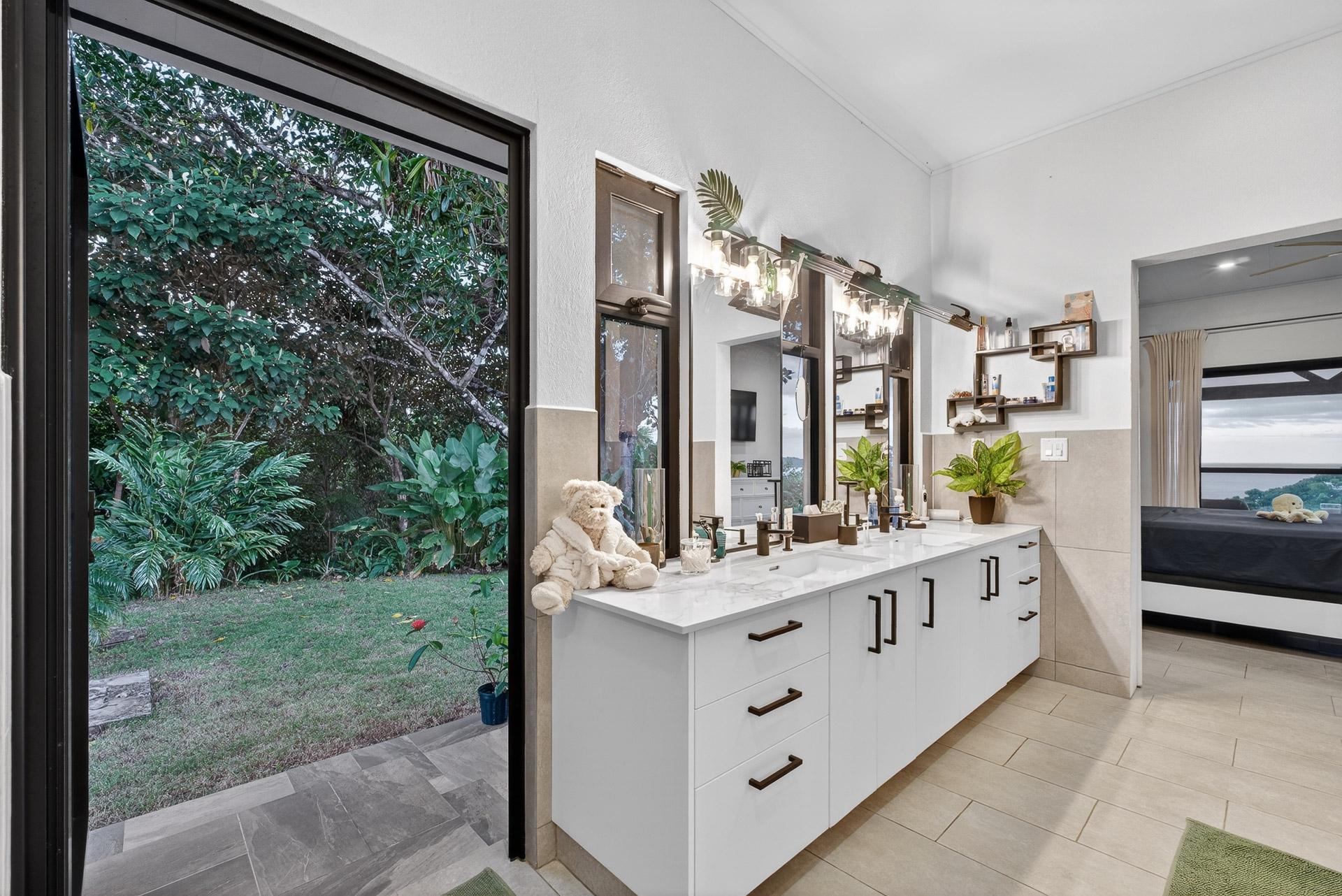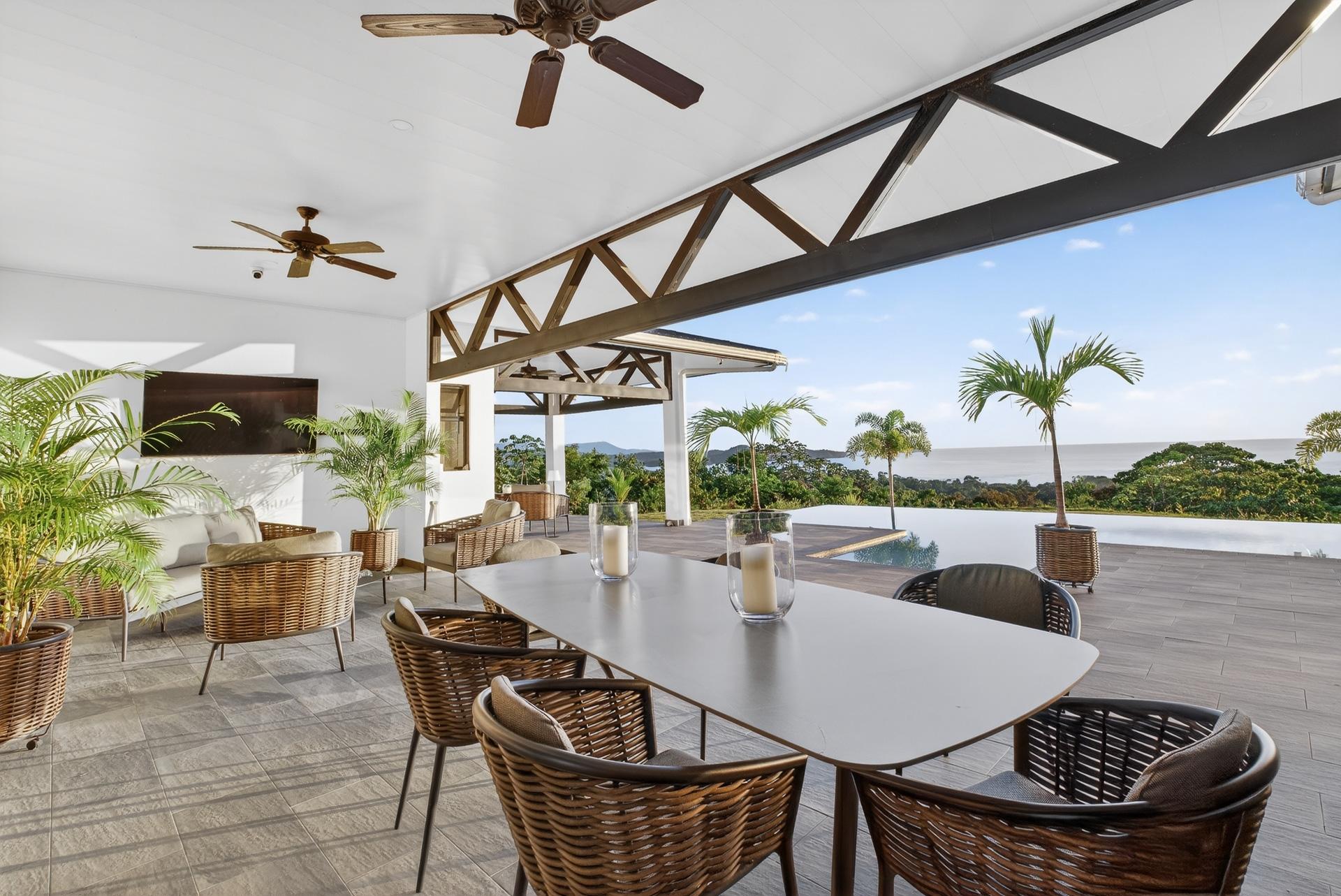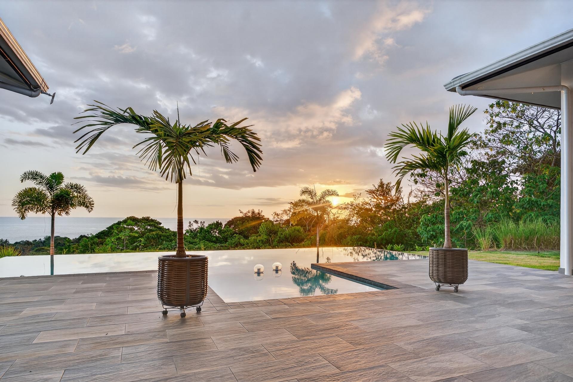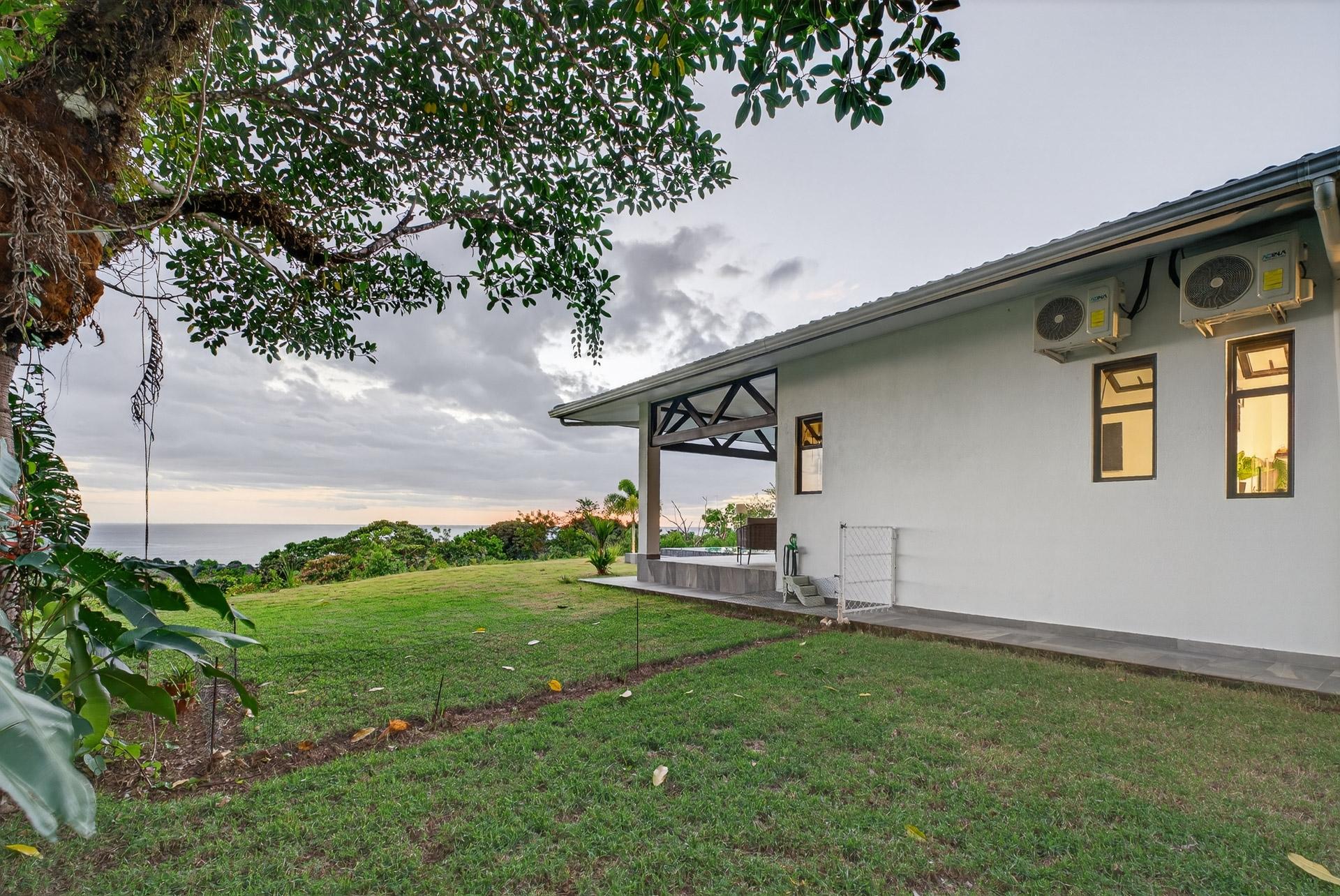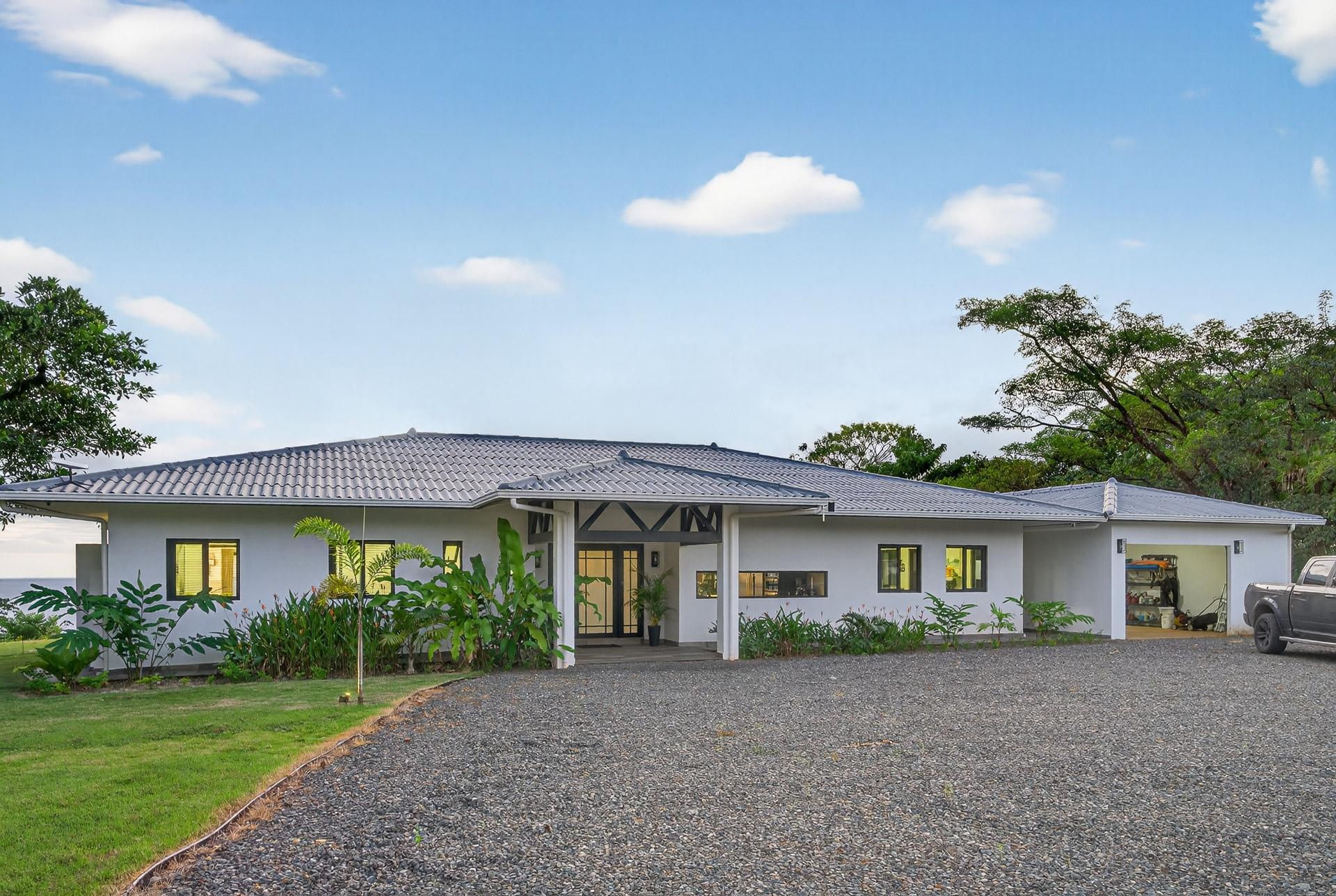 This oceanview residence is located in Morrillo, along the Azuero Peninsula’s west coast, and is positioned on an elevated lot that provides privacy while remaining only minutes from the beach. The setting allows the home to capture open views toward the Pacific and enjoy the region’s well-known sunset displays. The main living area of this 2-bedroom, 2.5-bathroom home follows an open-concept layout. Floor-to-ceiling windows frame the ocean views and allow natural light to enter throughout the day, creating a strong visual connection between the interior spaces and the surrounding landscape. Hardwood ceilings contrast with modern flooring, giving the residence a clean and contemporary feel. Both bedrooms are designed to take advantage of the ocean-facing orientation and include carefully selected finishes. The interior layout flows directly toward an outdoor deck, where an infinity pool overlooks the coastline and provides a comfortable space to enjoy the views and evening sunsets. The elevated position of the property enhances privacy while maintaining practical access to the beach via a short pathway. This is a titled property with water service and electricity available. Below the main living level, there are two independent studio apartments. Each studio includes a bathroom and a small kitchenette, offering flexible use for guests or additional living space. This thoughtful layout allows the property to function both as a private residence and as a multi-use coastal home.