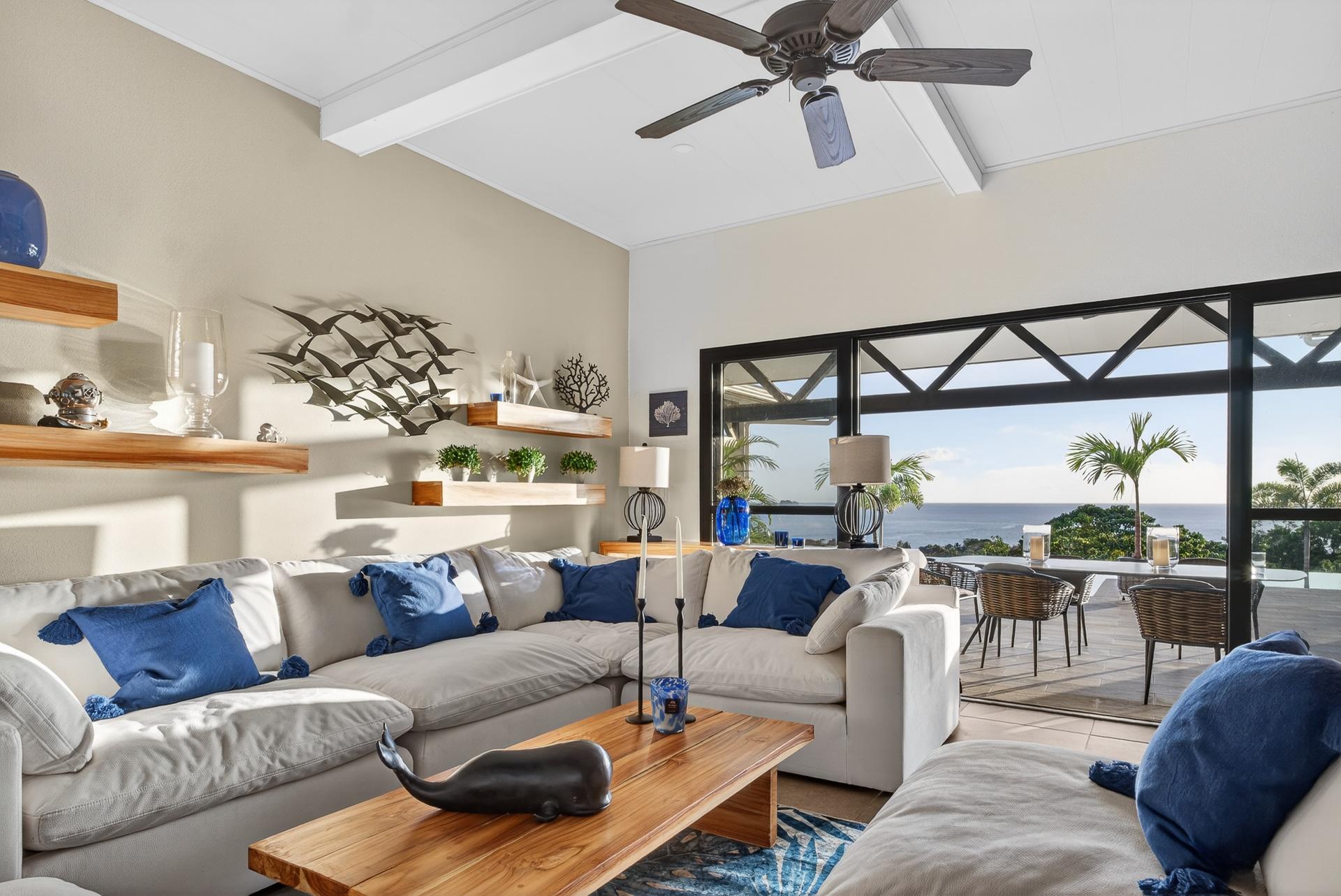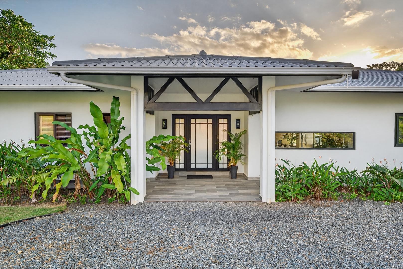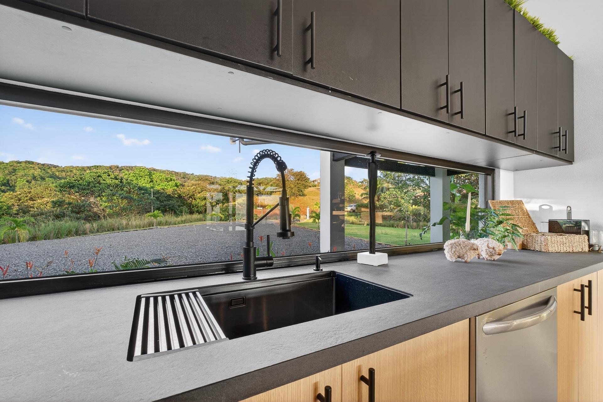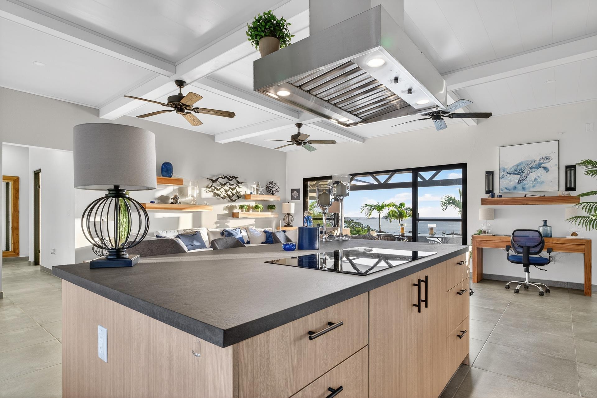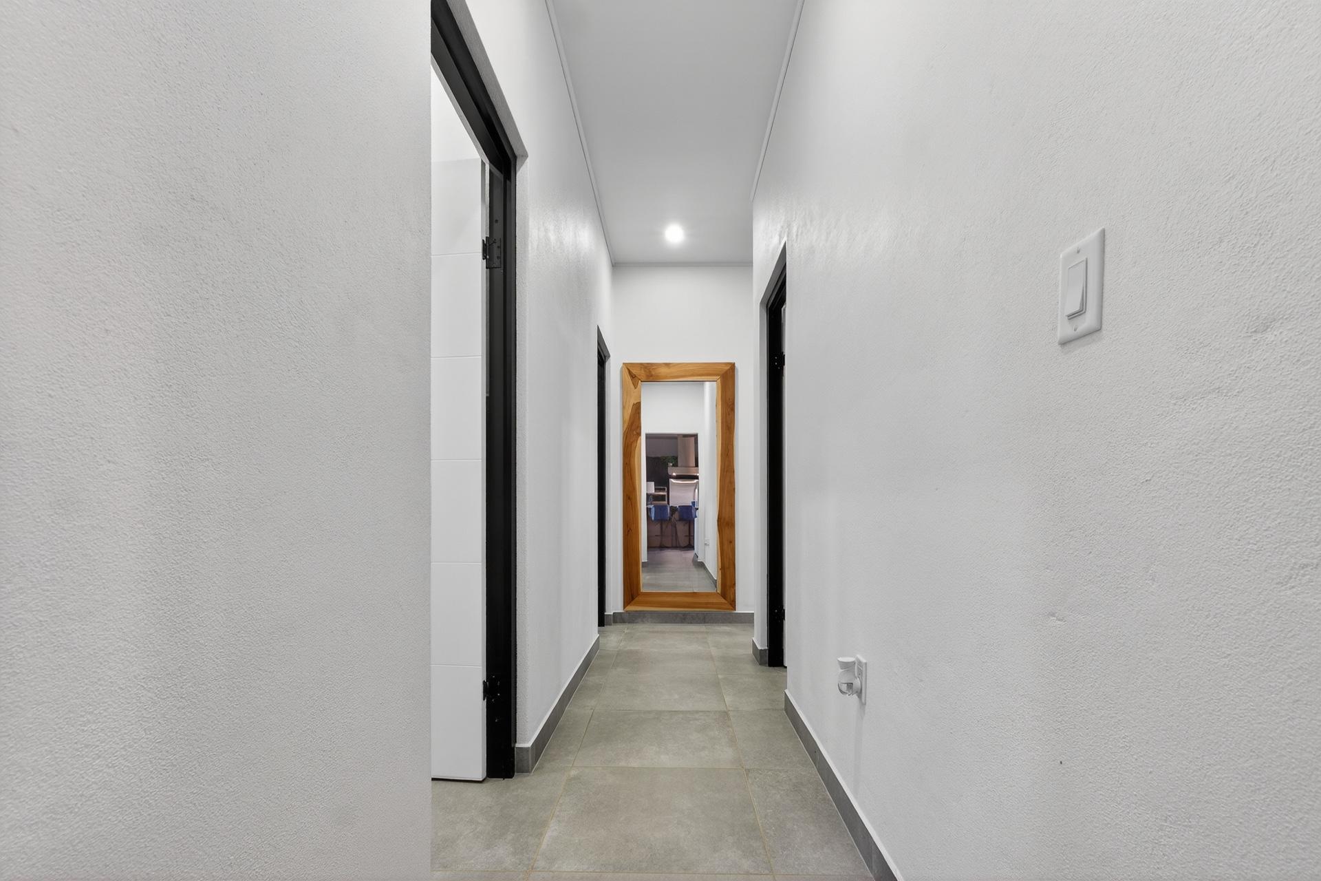 This oceanview residence is located in Morrillo, along the Azuero Peninsula’s west coast, and is positioned on an elevated lot that provides privacy while remaining only minutes from the beach. The setting allows the home to capture open views toward the Pacific and enjoy the region’s well-known sunset displays. The main living area of this 2-bedroom, 2.5-bathroom home follows an open-concept layout. Floor-to-ceiling windows frame the ocean views and allow natural light to enter throughout the day, creating a strong visual connection between the interior spaces and the surrounding landscape. Hardwood ceilings contrast with modern flooring, giving the residence a clean and contemporary feel. Both bedrooms are designed to take advantage of the ocean-facing orientation and include carefully selected finishes. The interior layout flows directly toward an outdoor deck, where an infinity pool overlooks the coastline and provides a comfortable space to enjoy the views and evening sunsets. The elevated position of the property enhances privacy while maintaining practical access to the beach via a short pathway. This is a titled property with water service and electricity available. Below the main living level, there are two independent studio apartments. Each studio includes a bathroom and a small kitchenette, offering flexible use for guests or additional living space. This thoughtful layout allows the property to function both as a private residence and as a multi-use coastal home.