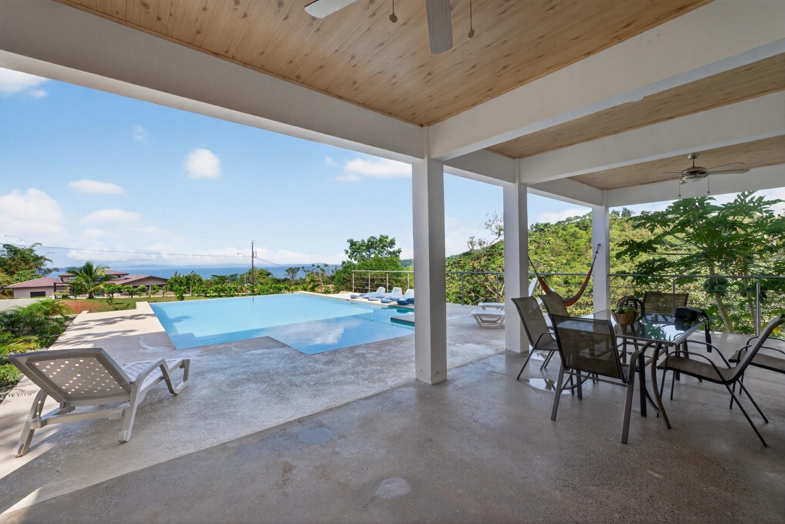 This modern ocean-view villa in Torio Hills is designed for easy living and effortless vacations. Built with comfort and practicality in mind, the home features a clean, contemporary design, a spacious covered terrace, and a large pool that overlooks the Pacific Ocean. It’s the kind of place where you can arrive, unpack, and immediately feel like you’re on holiday. Inside, the house offers open living areas with polished concrete floors, wood-paneled ceilings, and plenty of natural light. The kitchen is practical yet inviting, with concrete countertops, floating shelves, and all the essentials to prepare meals for family or guests. The bedrooms are simple and restful, equipped with air conditioning and large windows that frame the greenery outside. The outdoor spaces are where this home truly shines. The covered terrace with ceiling fans is perfect for outdoor dining and lounging, while the infinity-edge pool invites you to spend the day soaking up the sun and enjoying wide views of the coastline. With minimal landscaping maintenance, the property is easy to lock and leave, giving peace of mind when you’re away. As a vacation home, it offers flexibility. Use it for your own getaways and, when not in residence, rent it out to vacationers seeking the same Torio experience. The home is sold furnished and fully equipped, ready for immediate use. A reliable property management service is already in place, making the transition to part-time rental income seamless if desired. Practical details add to the ease of ownership: fiber optic internet, reliable water from the Torio Hills development, electricity by Naturgy, and minimal maintenance fees
