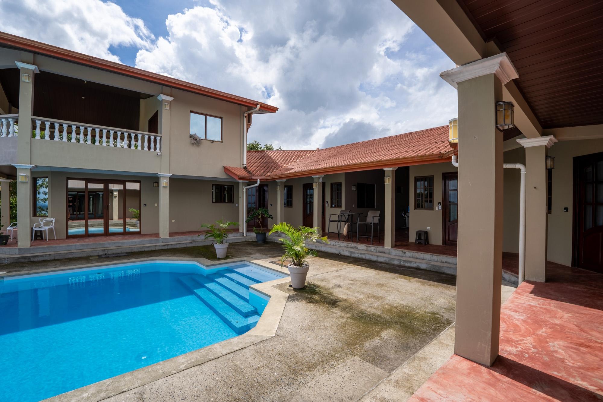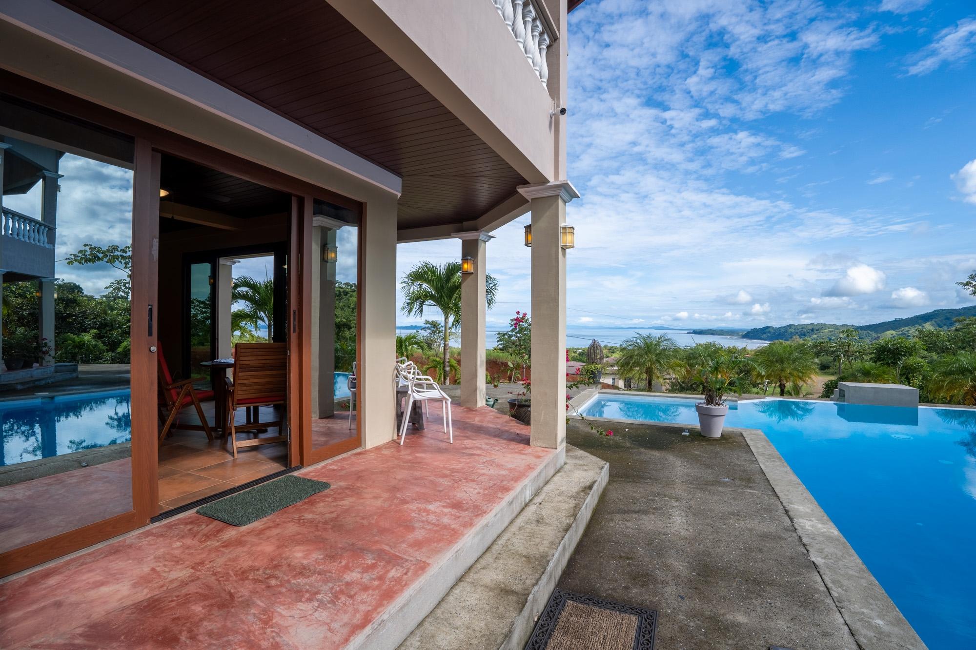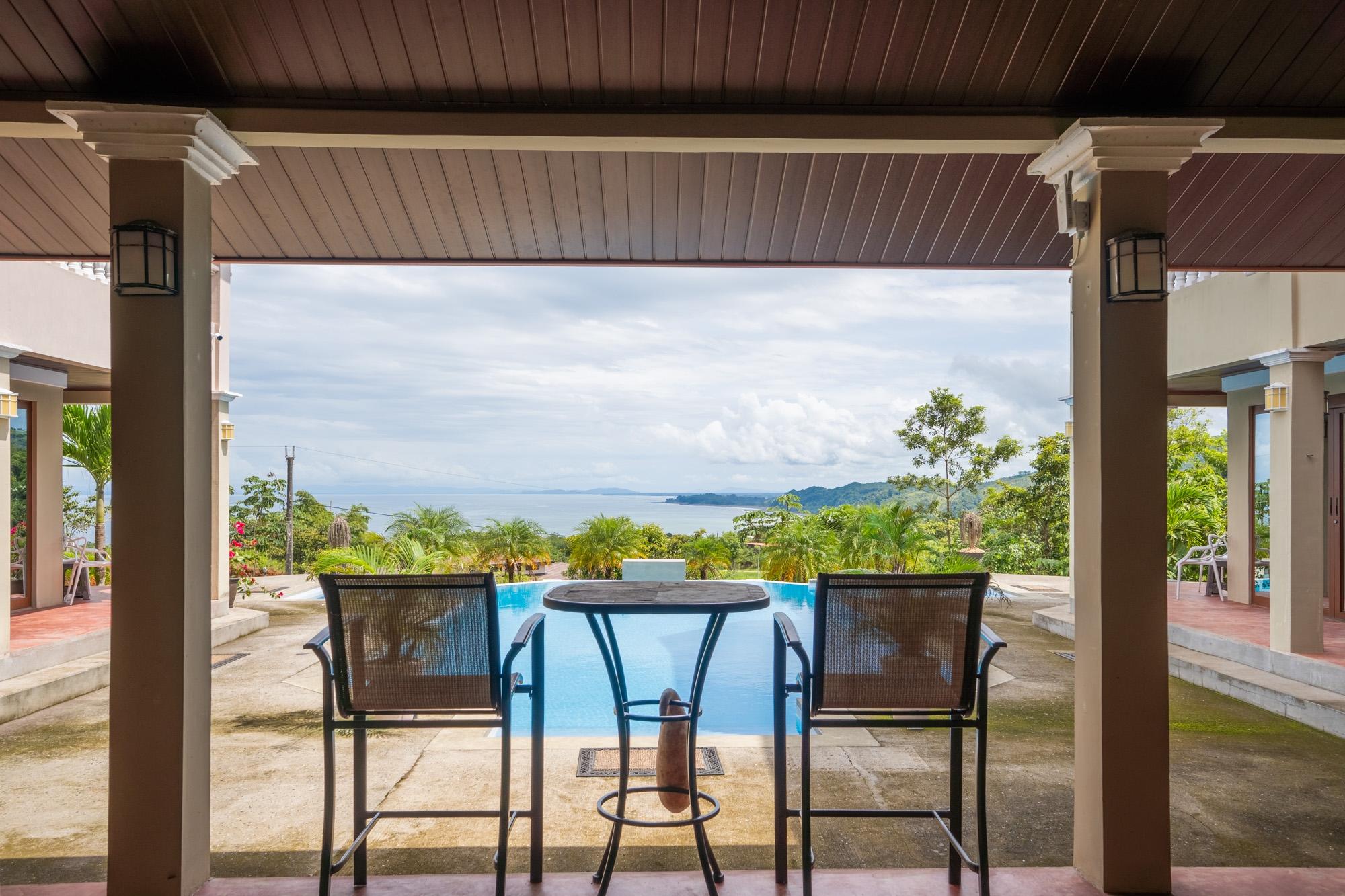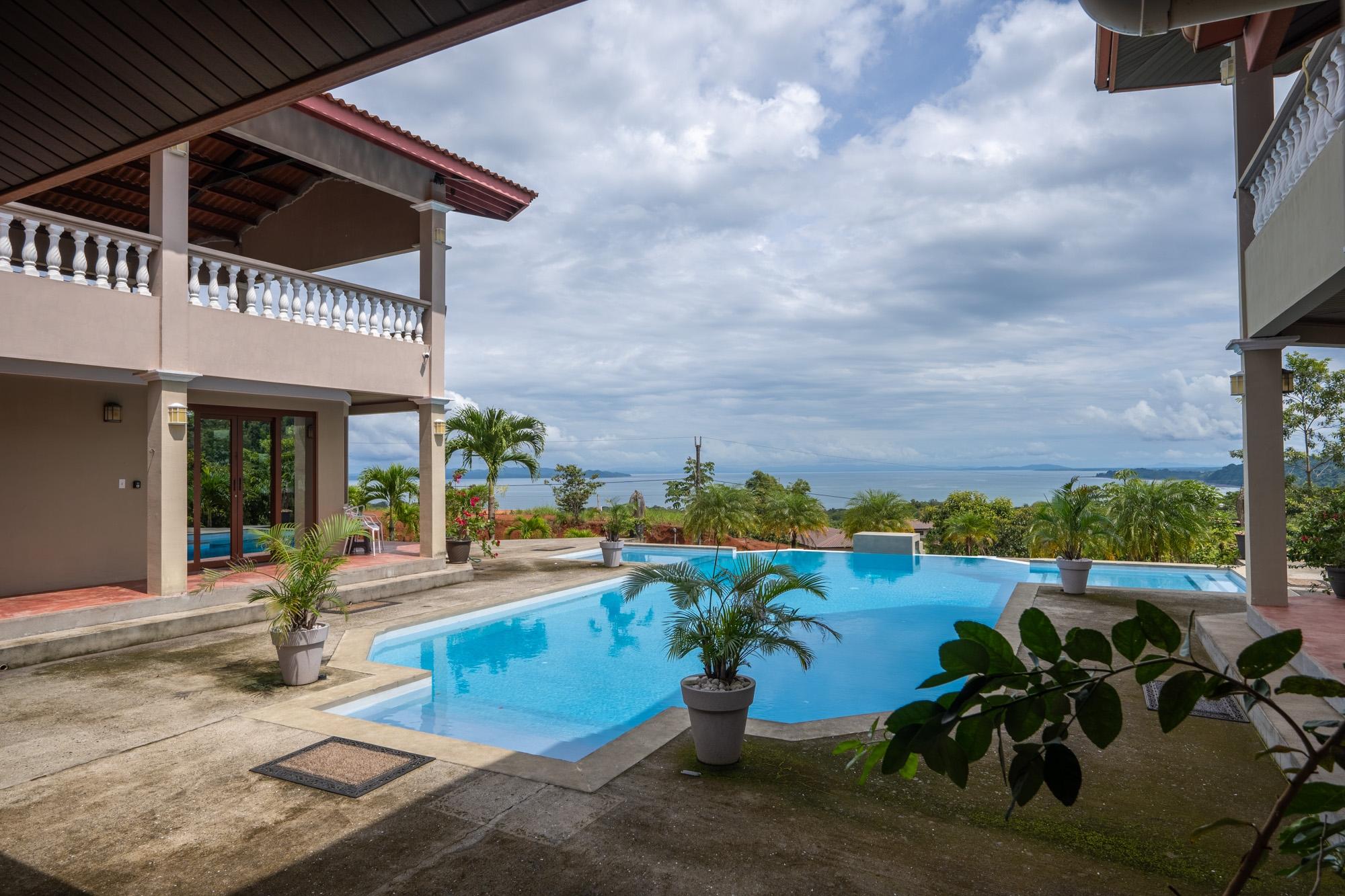 Now available for sale is this unique ocean-view villa located in the Sea View Phase of the Torio Property & Development community, just 2 km from the center of town and 1 km from the paved road. Titled and fully legal with an occupancy permit and declared improvements, this property has been operating as a successful Airbnb rental since March 2024 and is being sold furnished and move-in ready. The property spans around 5,500 m² of land with approximately 750 m² of construction, offering a total of 9 bedrooms and 8 bathrooms spread across six independent apartments arranged around a beautiful infinity pool. This layout provides strong rental flexibility for families, groups, or individual travelers, while also being well-suited for hosting private events, retreats, or even operating as a small hospitality business. At an elevation of 92 meters, the property benefits from cooler temperatures, steady ocean breezes, and less exposure to corrosive salt air – something you’ll notice over time in vehicles, AC units, and overall maintenance. The wide ocean view from this height is a standout feature, offering both comfort and scenery rarely found closer to sea level. Apartment Layout: A1: 1 queen bed, full kitchen, living room, TV A2: 1 double bed + 2 single beds A3: Studio with queen bed, kitchen A4: Studio with queen bed A5: 1 queen + 1 double bed A6: 1 queen bed, kitchen, living room Each apartment includes its own private bathroom with hot water, kitchen, air conditioning, and ceiling fans. The thoughtful layout also features step-free access to all apartments and common areas, making it friendly for guests with limited mobility.